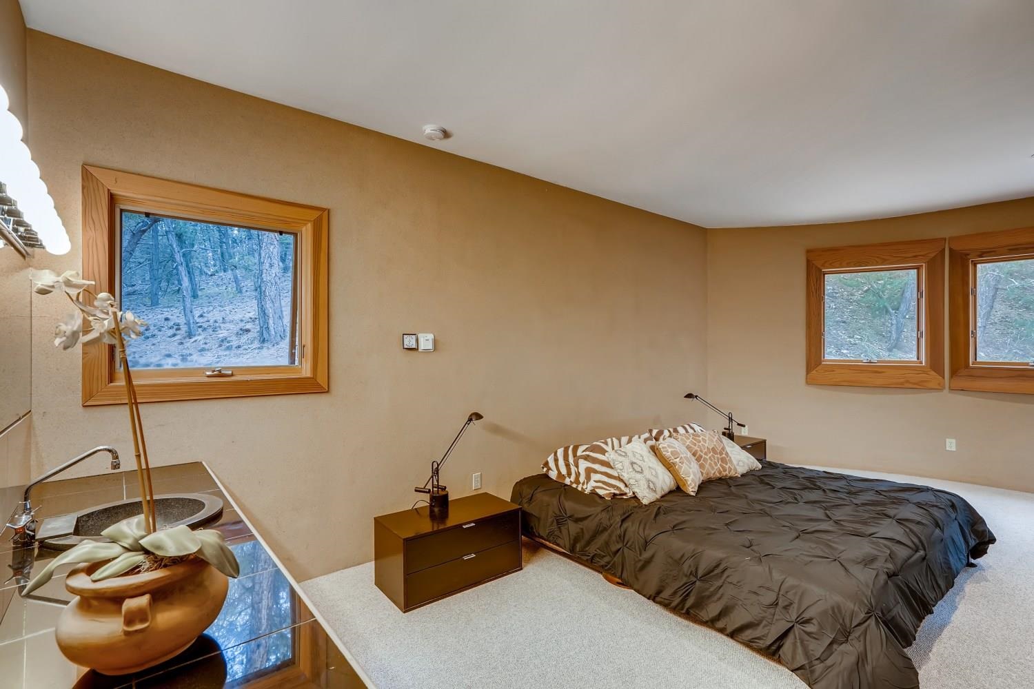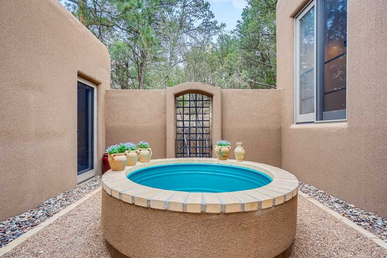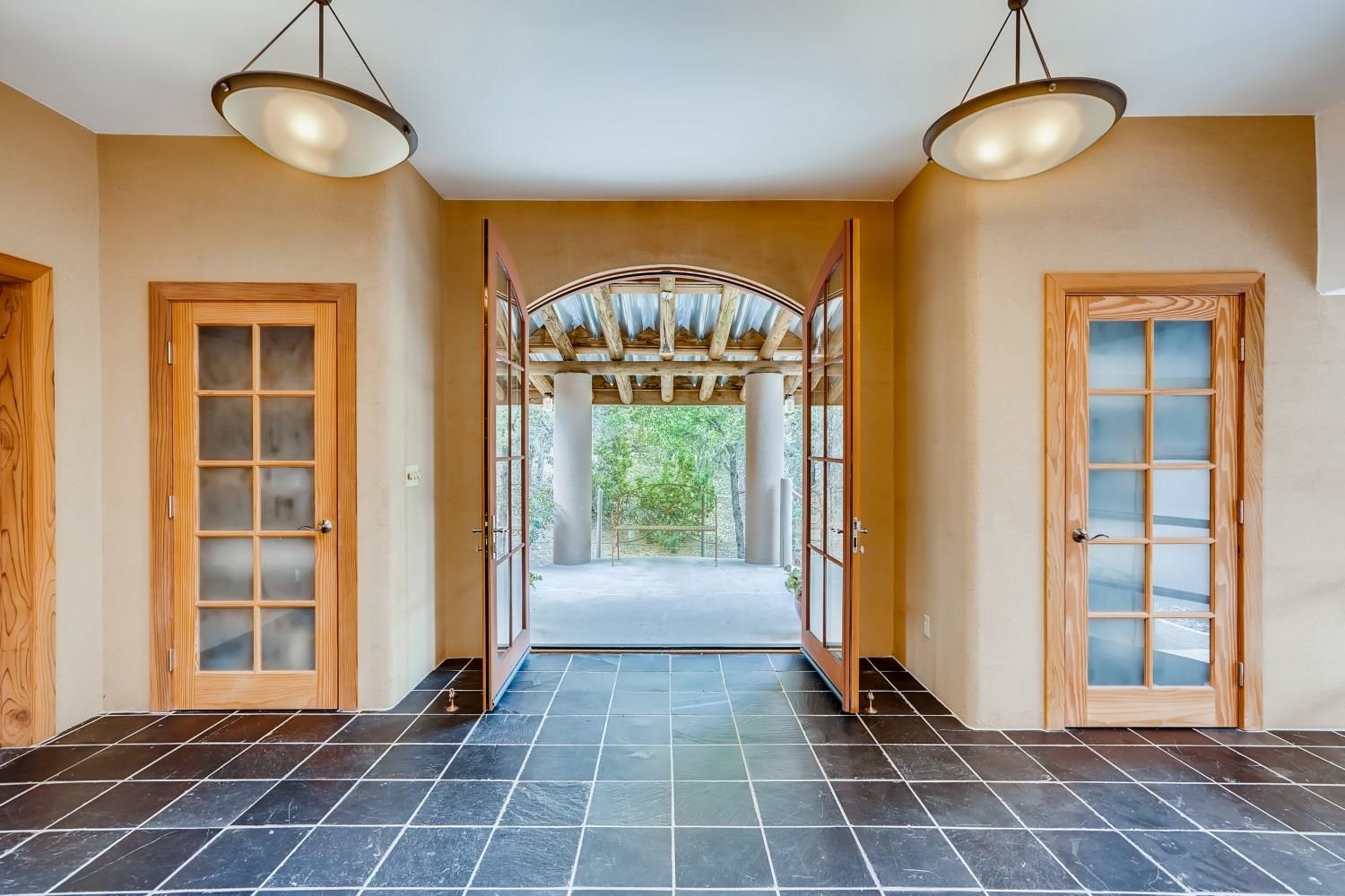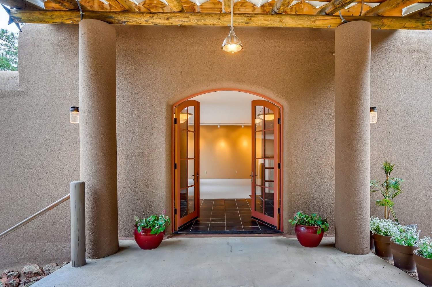 Come revive your spirit at the Santa Fe Summit in Casa Tesuque Creek. Adjacent to the Santa Fe National Forest - nestled in the foothills in a wooded setting that backs up to conservation land, this spectacular property is around the corner from 10,000 Waves Spa and Restaurant, a quick 4.5 miles on Hyde Park Road to downtown Santa Fe, and 12 miles from the closest development to the Santa Fe Ski Basin.Casa Tesuque Creek has accommodated an art gallery and a sculptureand painting studio within its primary residence. There are high ceilings throughout, with gallery lighting and ample wall display space.This contemporary home flows with an open floor plan and boasts two wood-burning natural gas fireplaces - one in a study off the primarybedroom and the other in the great room. You'll enjoy watching wildlife through expansive windows in the kitchen, and there is a generous walk-in closet & dressing area in the primary suite.Off-street parking - available for five cars, is convenient for guests, and the recent good news is that the 4-year construction of an adjacent residence is now completed, bringing Casa Tesuque Creek back into a place of harmony.