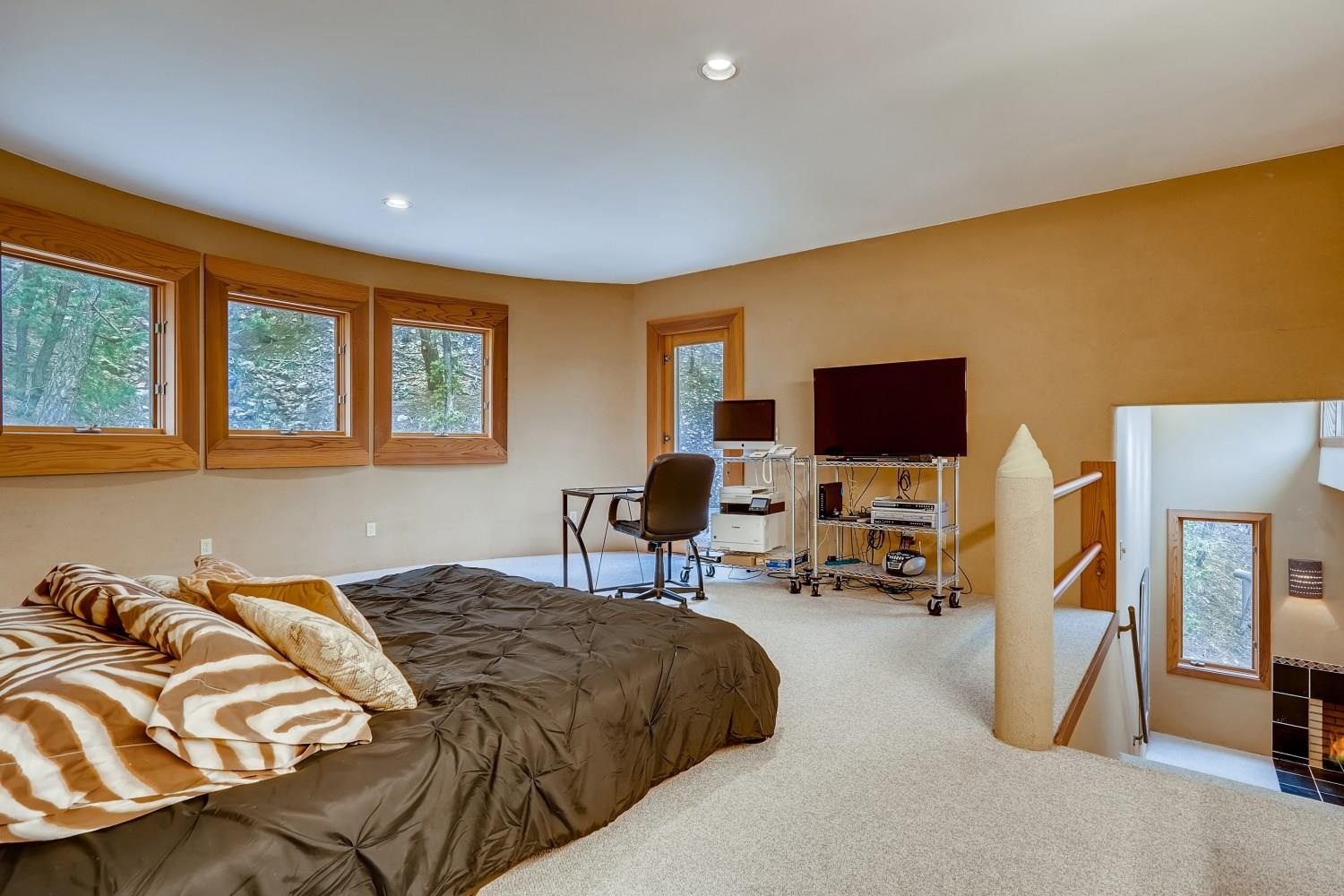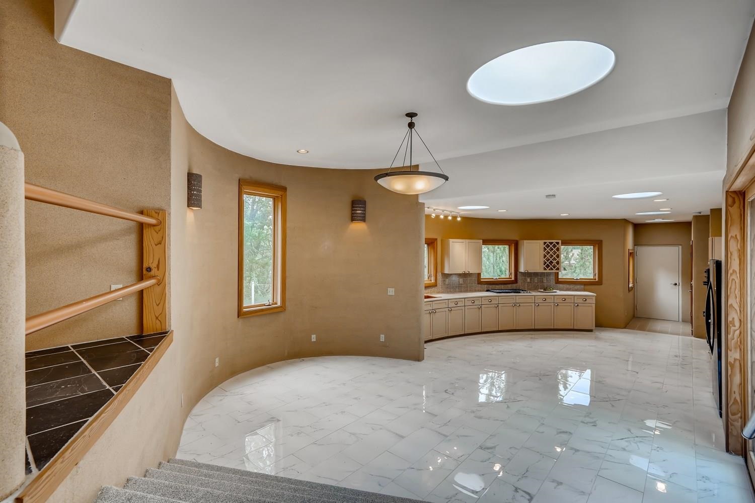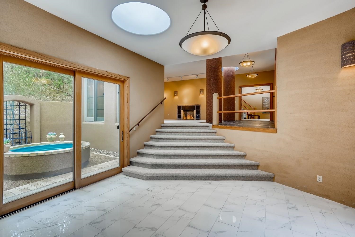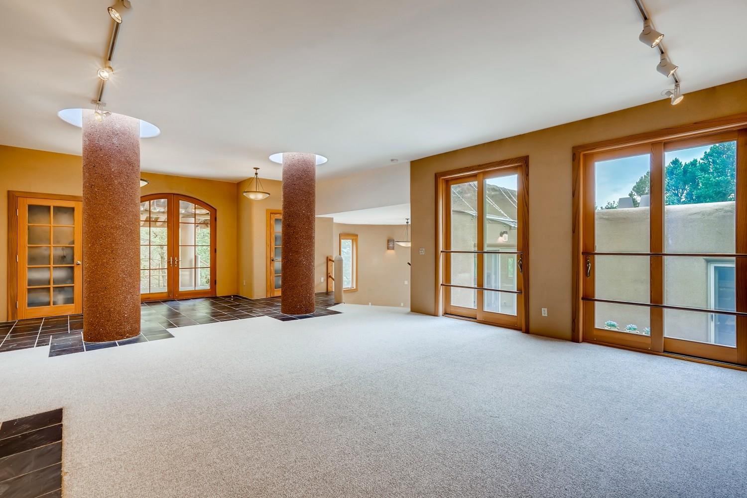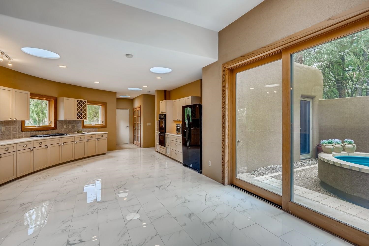 Come revive your spirit at the Santa Fe Summit in Casa Tesuque Creek. Adjacent to the Santa Fe National Forest - nestled in the foothills in a wooded setting that backs up to conservation land, this spectacular property is around the corner from 10,000 Waves Spa and Restaurant, a quick 4.5 miles on Hyde Park Road to downtown Santa Fe, and 12 miles from the closest development to the Santa Fe Ski Basin.Casa Tesuque Creek has accommodated an art gallery and a sculptureand painting studio within its primary residence. There are high ceilings throughout, with gallery lighting and ample wall display space.This contemporary home flows with an open floor plan and boasts two wood-burning natural gas fireplaces - one in a study off the primarybedroom and the other in the great room. You'll enjoy watching wildlife through expansive windows in the kitchen, and there is a generous walk-in closet & dressing area in the primary suite.Off-street parking - available for five cars, is convenient for guests, and the recent good news is that the 4-year construction of an adjacent residence is now completed, bringing Casa Tesuque Creek back into a place of harmony.