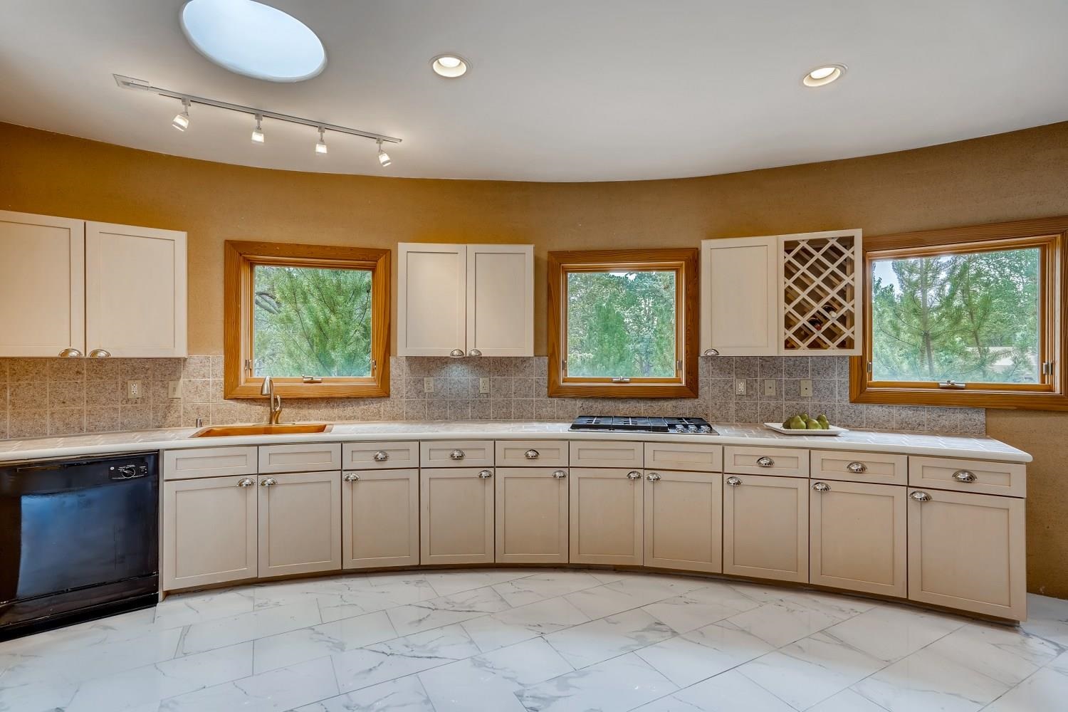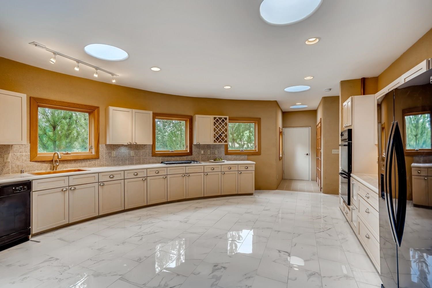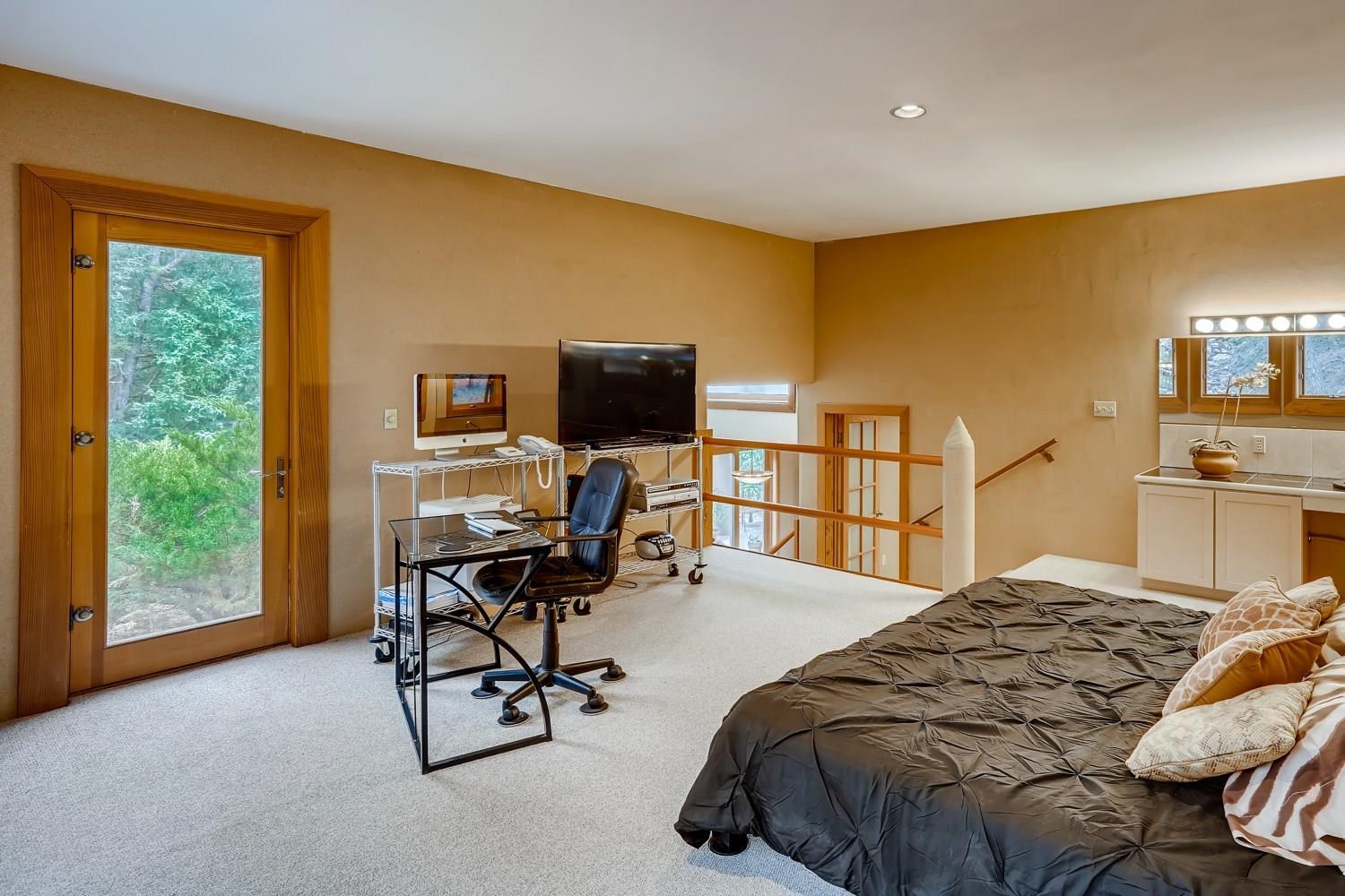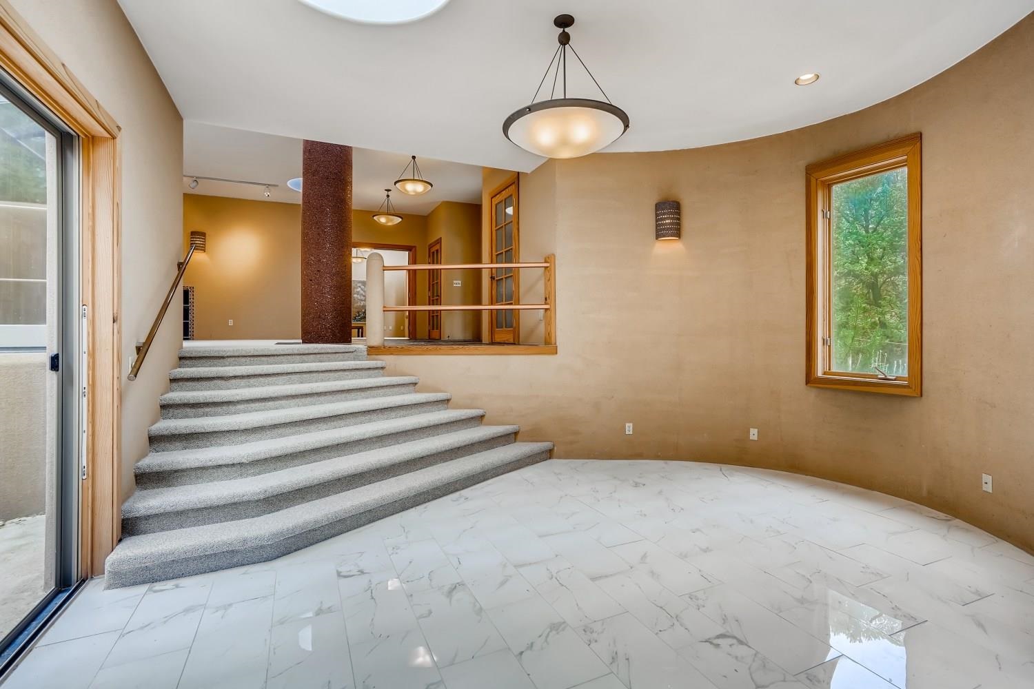 Come revive your spirit at the Santa Fe Summit in Casa Tesuque Creek. Adjacent to the Santa Fe National Forest - nestled in the foothills in a wooded setting that backs up to conservation land, this spectacular property is around the corner from 10,000 Waves Spa and Restaurant, a quick 4.5 miles on Hyde Park Road to downtown Santa Fe, and 12 miles from the closest development to the Santa Fe Ski Basin.Casa Tesuque Creek has accommodated an art gallery and a sculptureand painting studio within its primary residence. There are high ceilings throughout, with gallery lighting and ample wall display space.This contemporary home flows with an open floor plan and boasts two wood-burning natural gas fireplaces - one in a study off the primarybedroom and the other in the great room. You'll enjoy watching wildlife through expansive windows in the kitchen, and there is a generous walk-in closet & dressing area in the primary suite.Off-street parking - available for five cars, is convenient for guests, and the recent good news is that the 4-year construction of an adjacent residence is now completed, bringing Casa Tesuque Creek back into a place of harmony.