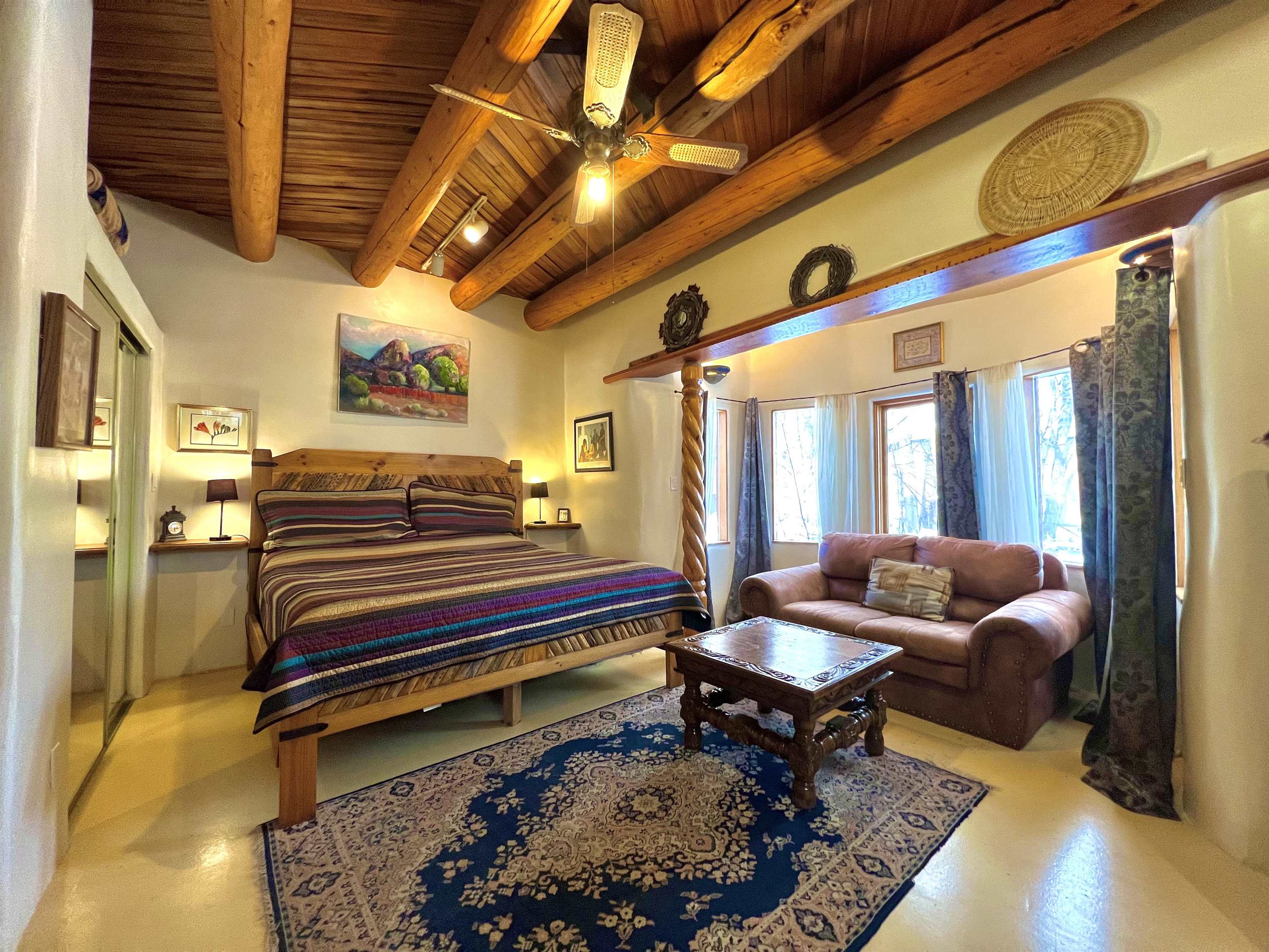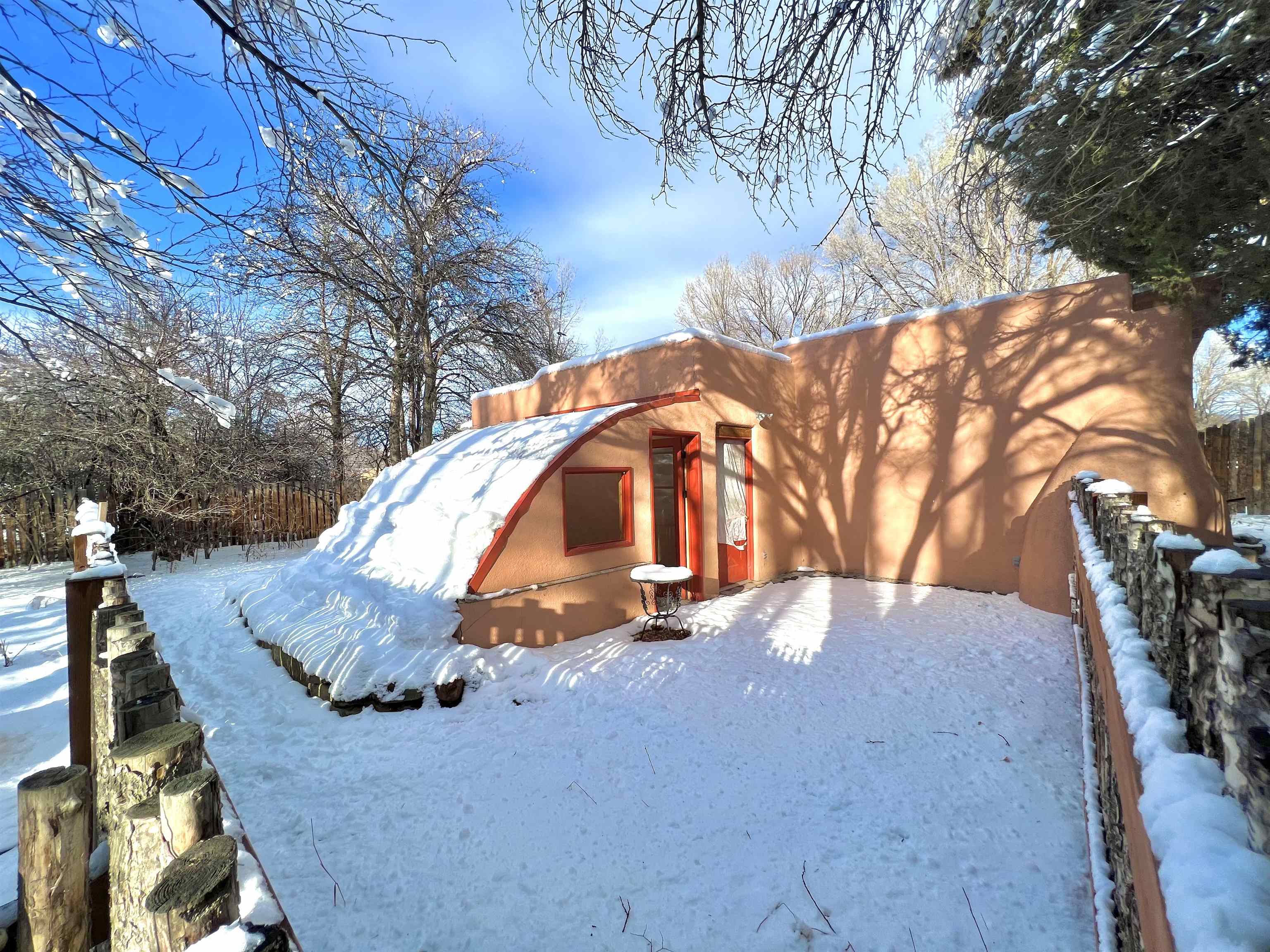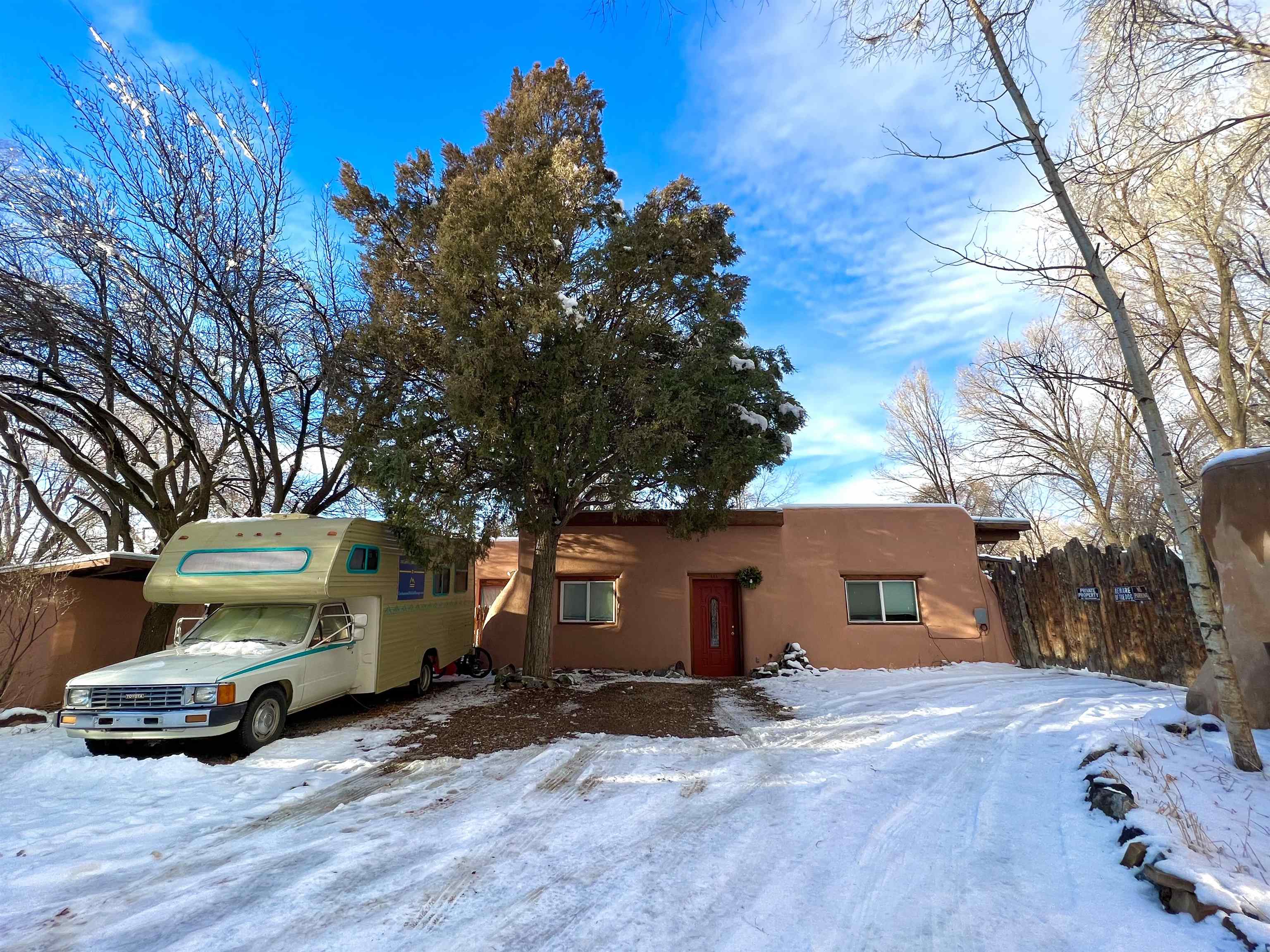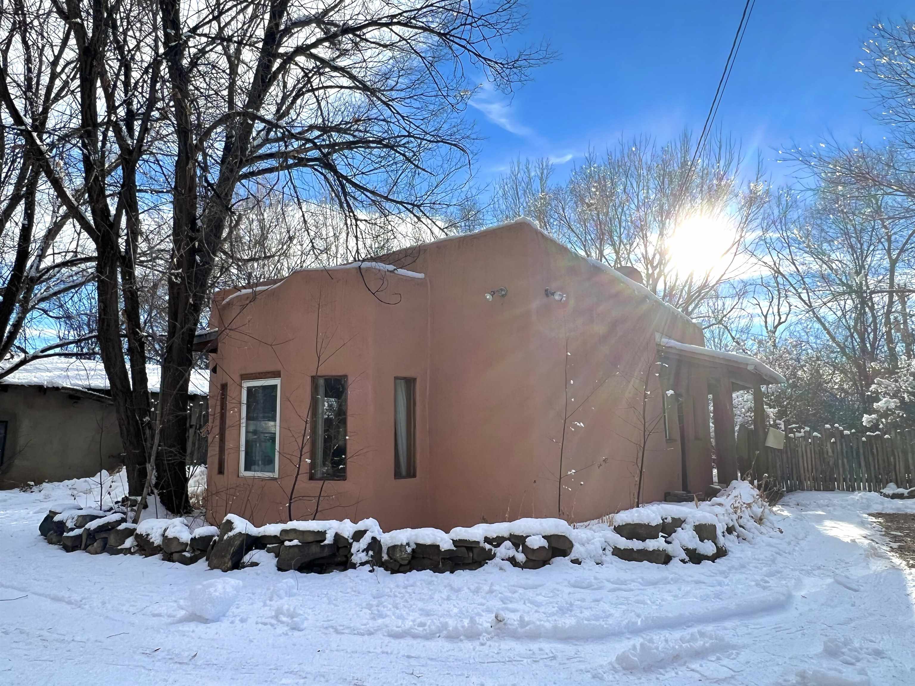 PhenomenalMulti-Family or Investment Opportunity just a few minutes from town...This triplex property is nestled at the end of a quiet and private street regarded as one of the original historic plazas in the region. The grounds themselves contain a variety of trees and well-maintained gardens sprawling with lush greenery during the warm months. All three homes have been thoughtfully updated, each possessing many customqualities with private yards perfect for the pets to roam, or kids to play. The main home has an open floor plan with centralheating, beautiful tile-work, and a mix of milled wood & plaster ceilings. The layout consists of two sizable living areas -- one with an efficient wood-burning stove and pergo flooring -- a spacious kitchen, three bedrooms, two bathrooms, and a large office, art studio, or yoga room. Fully equipped with appliances, ample storage, and washer/dryer hookups. The second home to the North is adobe and has a wide-open layout with a combined kitchen, dining room, office & living area kept warm by the radiant heated floors and kiva fireplace. Gorgeous finishing throughout -- vigas, T&G, and herringbonecedar ceilings. The bedroom and bathroom are spacious, well designed, and obtain plenty of natural light. The third adobe casita to the South is cozy & custom with beautiful woodwork. Establishedand consistent rental income stream is already in place; or perhaps make this your own private residence. Endless opportunities here!
