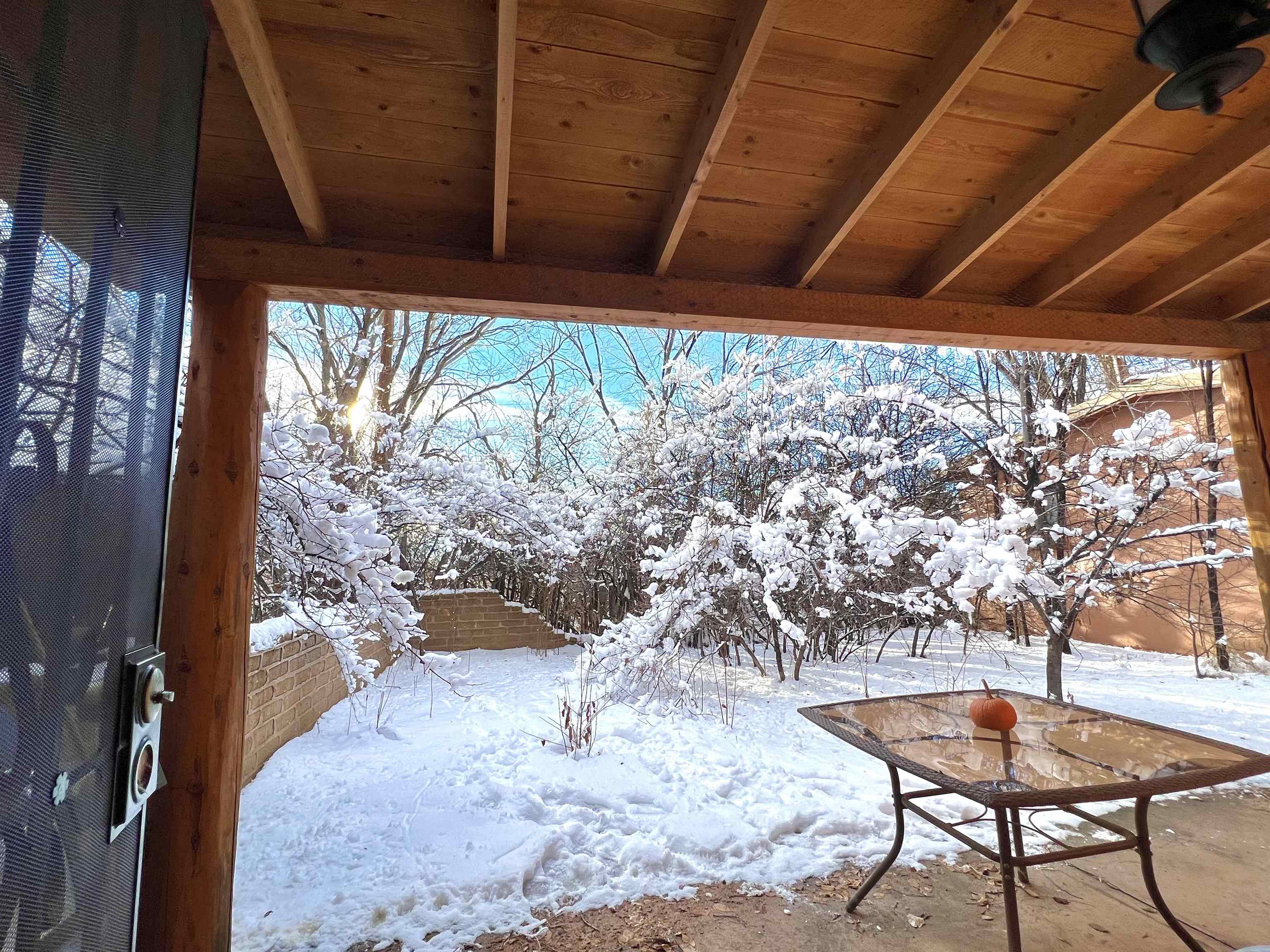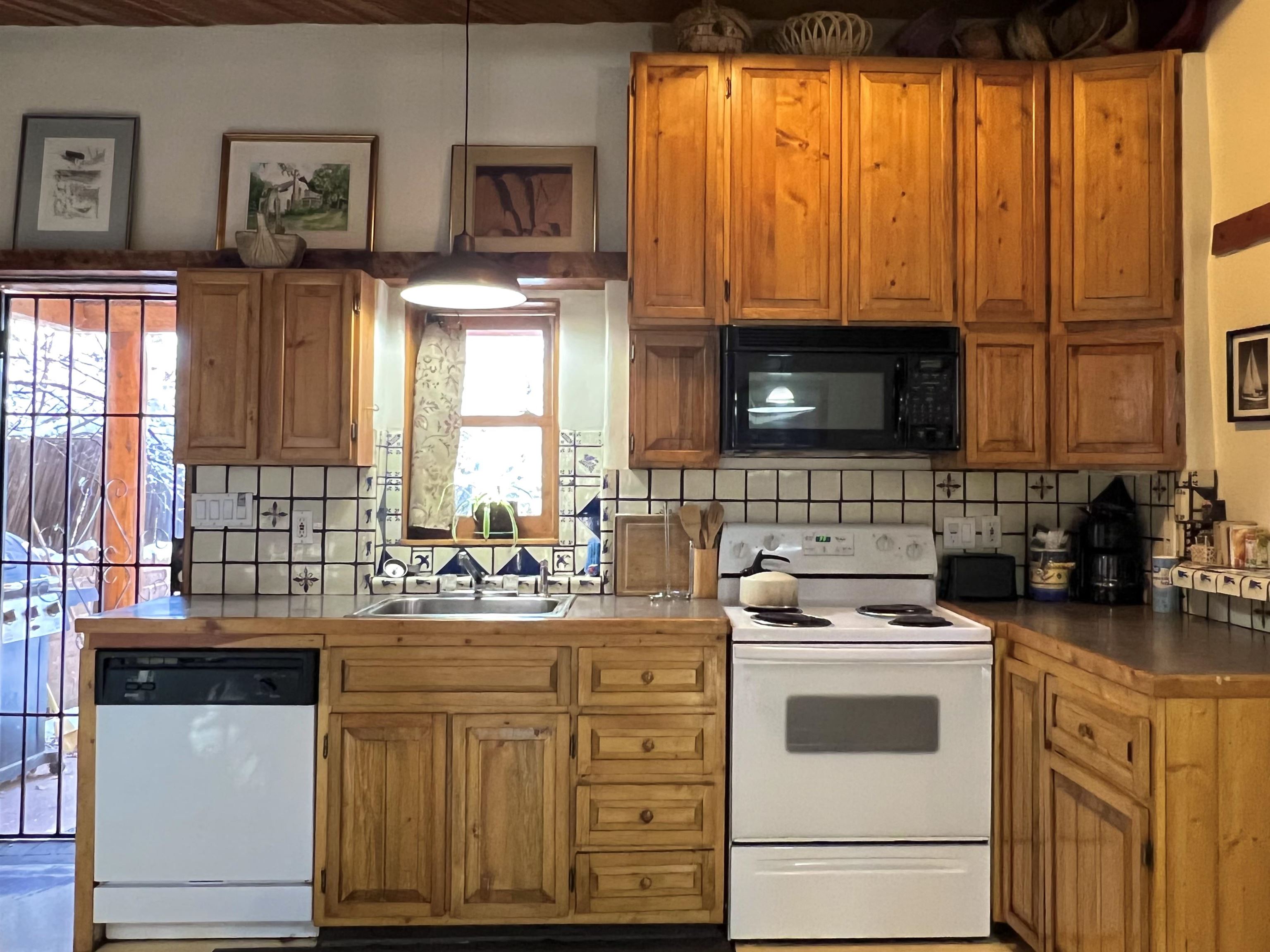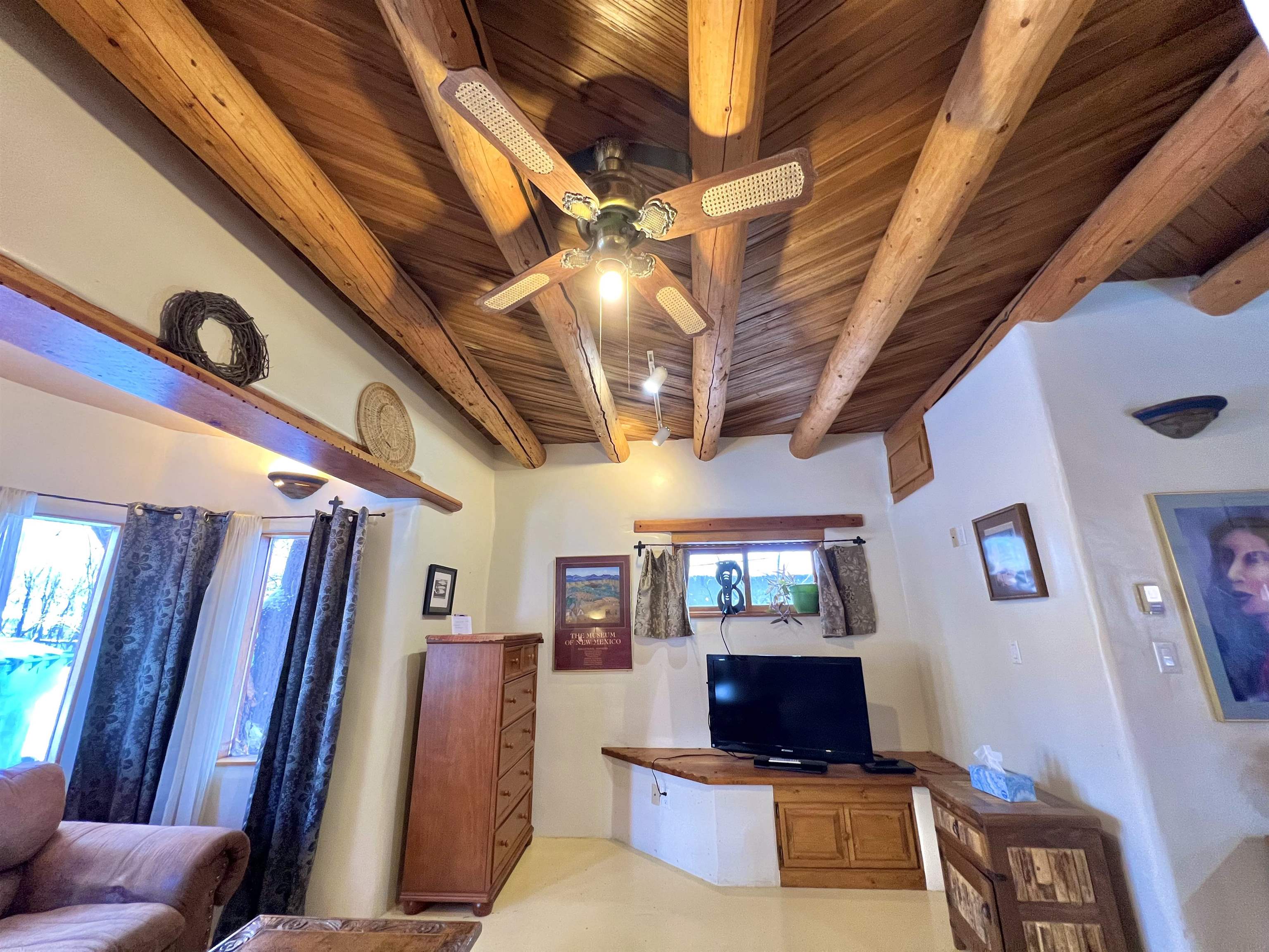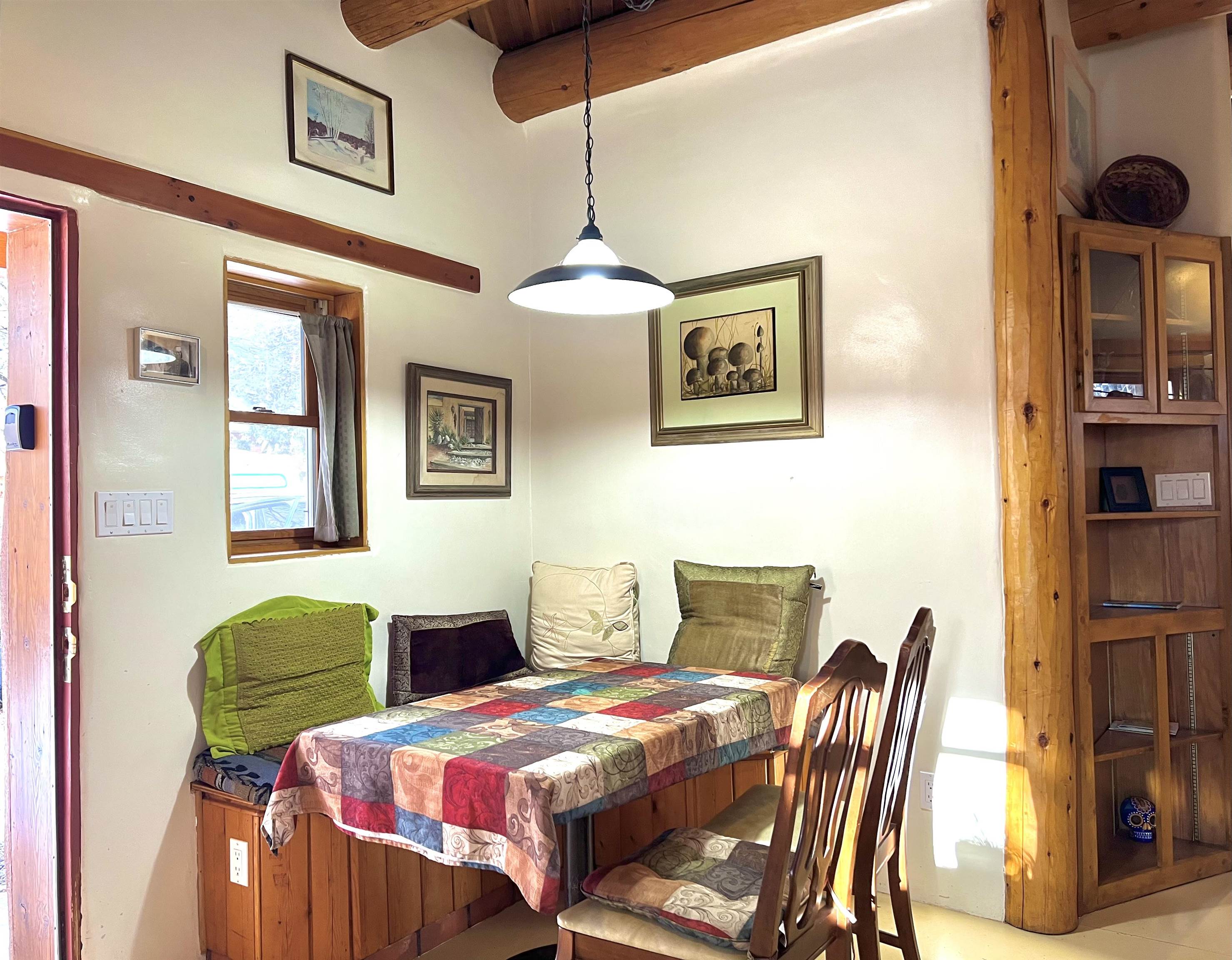 PhenomenalMulti-Family or Investment Opportunity just a few minutes from town...This triplex property is nestled at the end of a quiet and private street regarded as one of the original historic plazas in the region. The grounds themselves contain a variety of trees and well-maintained gardens sprawling with lush greenery during the warm months. All three homes have been thoughtfully updated, each possessing many customqualities with private yards perfect for the pets to roam, or kids to play. The main home has an open floor plan with centralheating, beautiful tile-work, and a mix of milled wood & plaster ceilings. The layout consists of two sizable living areas -- one with an efficient wood-burning stove and pergo flooring -- a spacious kitchen, three bedrooms, two bathrooms, and a large office, art studio, or yoga room. Fully equipped with appliances, ample storage, and washer/dryer hookups. The second home to the North is adobe and has a wide-open layout with a combined kitchen, dining room, office & living area kept warm by the radiant heated floors and kiva fireplace. Gorgeous finishing throughout -- vigas, T&G, and herringbonecedar ceilings. The bedroom and bathroom are spacious, well designed, and obtain plenty of natural light. The third adobe casita to the South is cozy & custom with beautiful woodwork. Establishedand consistent rental income stream is already in place; or perhaps make this your own private residence. Endless opportunities here!