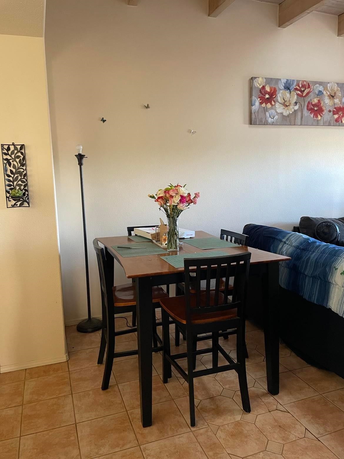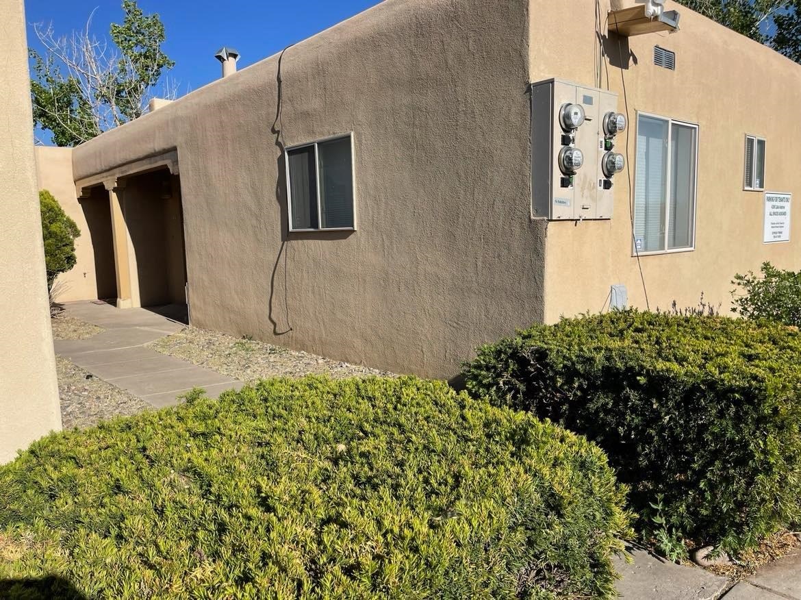 4 plex close to everything with easy access to I-25 and 599. The property has 4 units, each unit consists of a 2 bedroom, 2 bath with a kiva fireplace in each home. The apartments have custom saltillo tile as well as viga beam ceilings. Each unit has its own enclosed yard/patio area and have a washer and dryer. Roof was replaced in 2016 with a 10 year warranty. Each tenant has 2 parking spaces. Wonderful investment opportunity, gross average annual rental income is $62,400. all 4 units are currently occupied and is professional managed by Simply New Mexico Real Estate Services LLC>