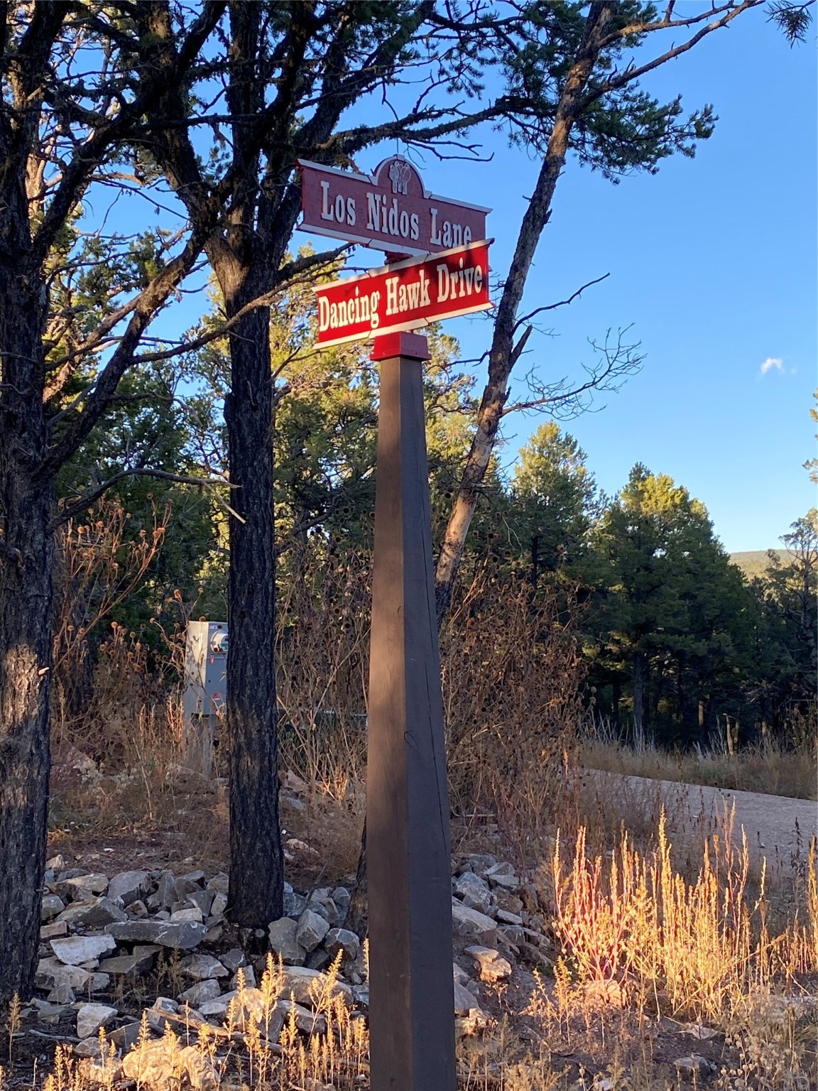 Very private and flat building site on a gorgeous 2.37 acre lot. Lots of large pine trees which when thinned will reveal more of the spectacular views of Glorieta/Rowe Mesa and meadows. Lot is located in the gated Birds of a Feather LGBTQ Community just 30 miles from Santa Fe.