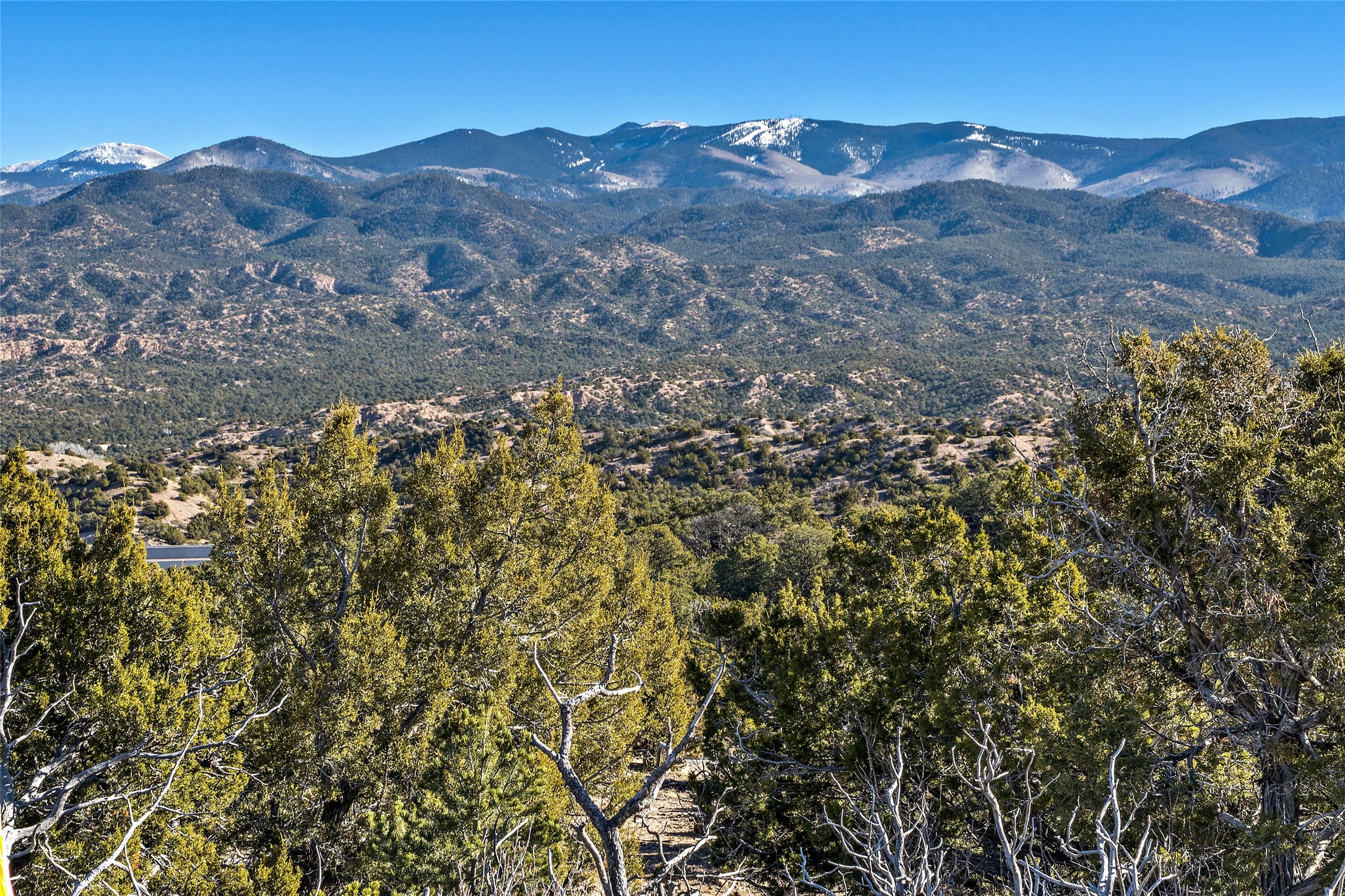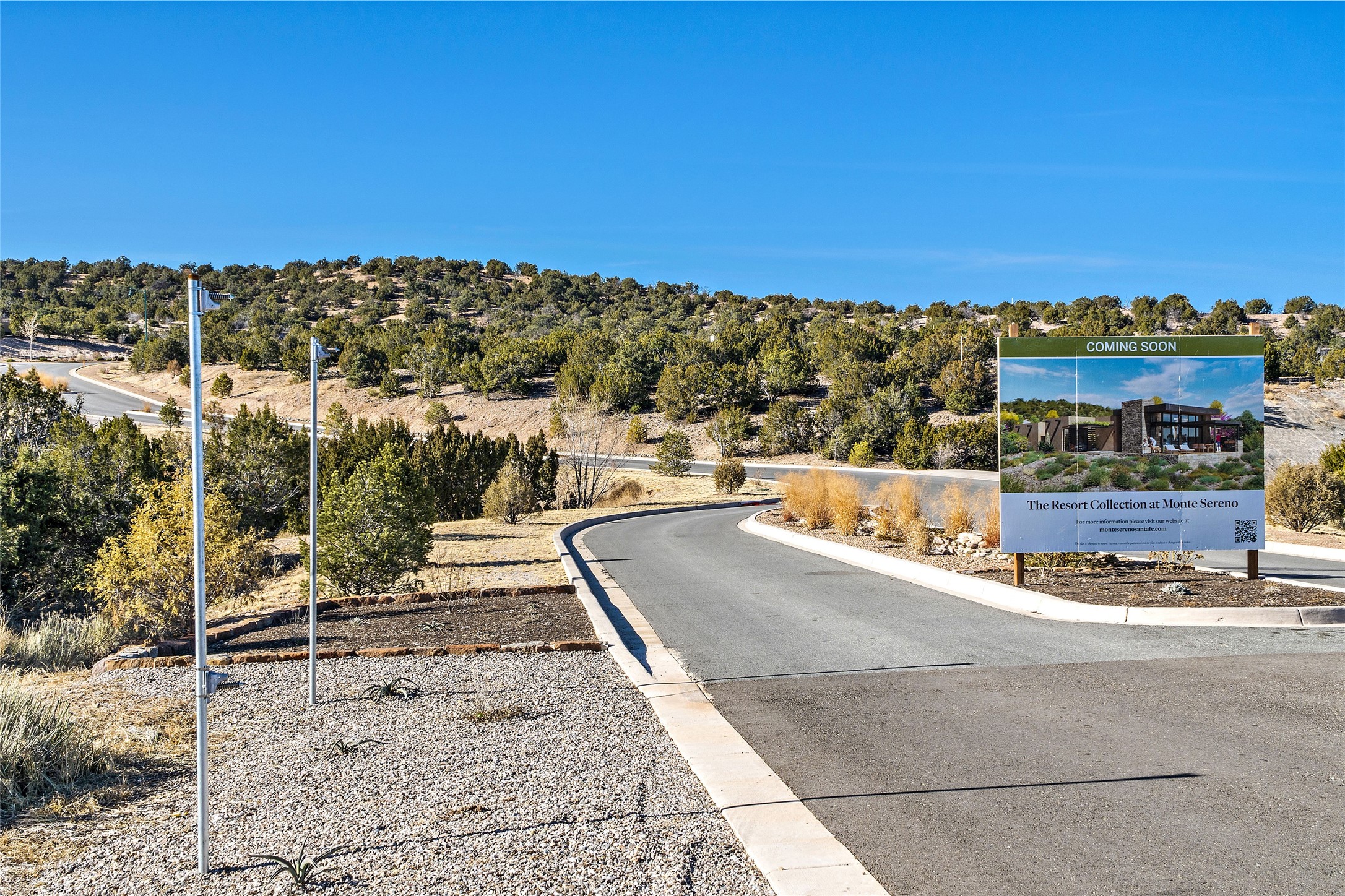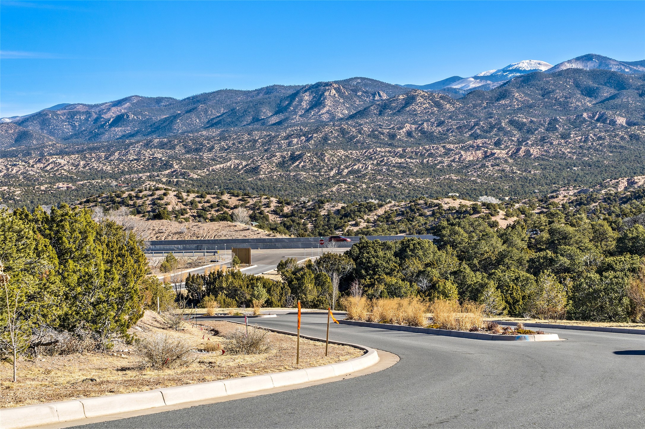 Spectacular Sangre de Cristo mountain views from this very easy, nearly level, 1 acre homesite with a large developable area. The property is offered with a full set of architectural house plans by Mathey & Associates Architects. The seamlessly designed home offers 2,600 square feet of heated living space, a large East facing portal, and 3 bedrooms and 3 baths, with an oversized 2-car garage. The plans were previously approved by the Monte Sereno Architectural Review Committee, and have been through a preliminary review by the City of Santa Fe. Choose your builder, obtain the permit, and start construction in Monte Sereno today! One level living with great views, just minutes from downtown Santa Fe, with sensible covenants and city utilities.