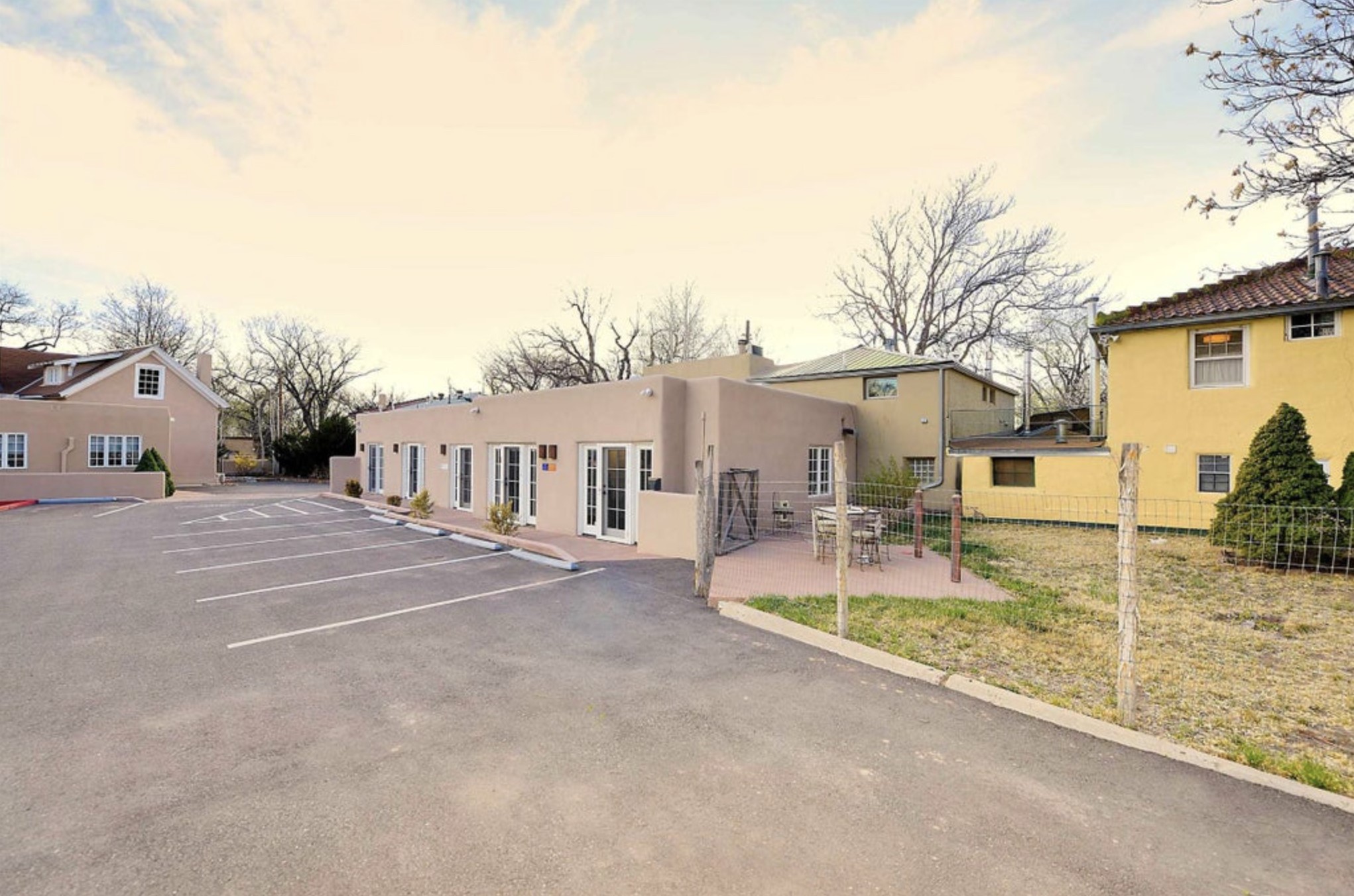 This Office Condo is a drive-up suite that offers all the conveniences of conducting business and being in walking distance of the Plaza. Janitorial for individual units is paid for by the owner. Newly paved onsite parking and internet Fiber service. For your business guests, you are 1 block to the La Posada and 2 blocks from the Drury Inn. See the attached brochure for complete details on the Palace Avenue Office Suites Condominium. Exceptional location on Palace Avenue. Condominium Fees are $240.77/month. All property taxes, utilities, internet services, AC/Heating, exterior maintenance, security and in addition a shared professional conference room and kitchen are included in the monthly condominium fees.