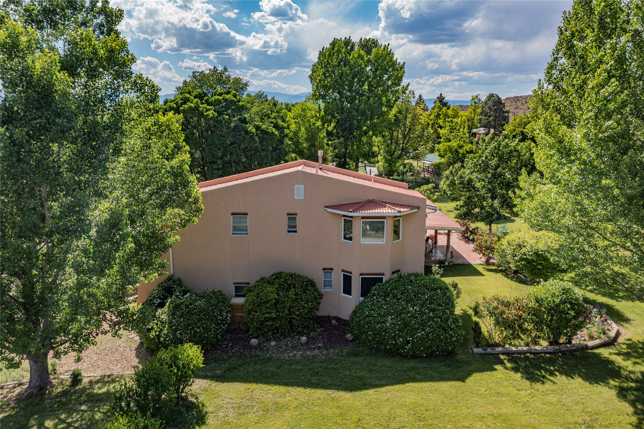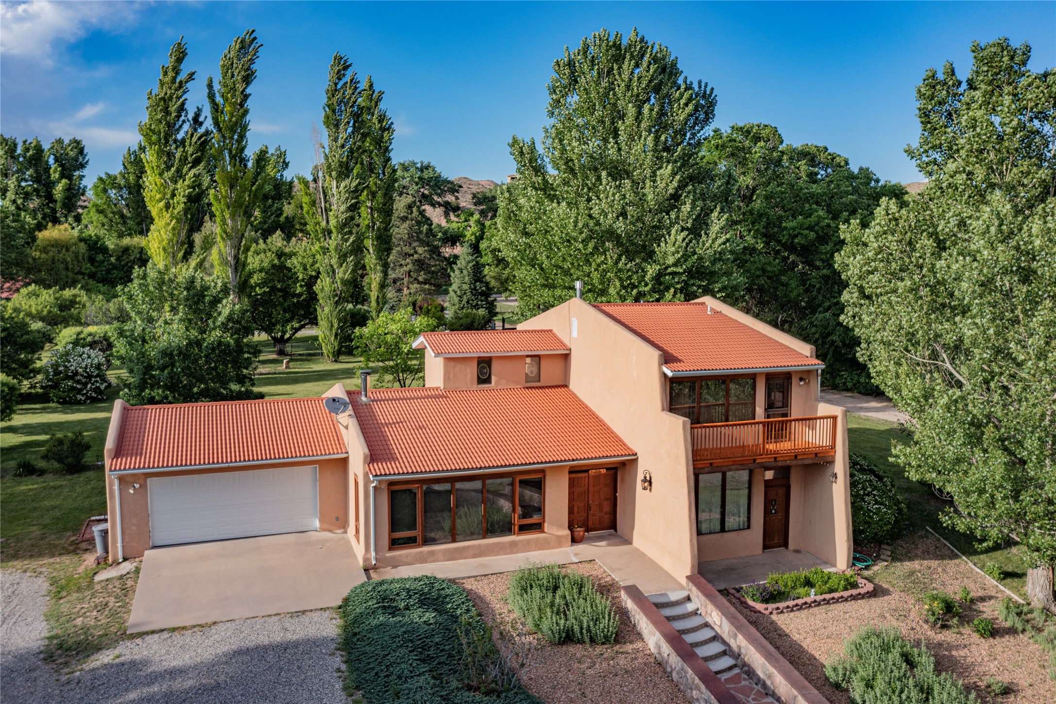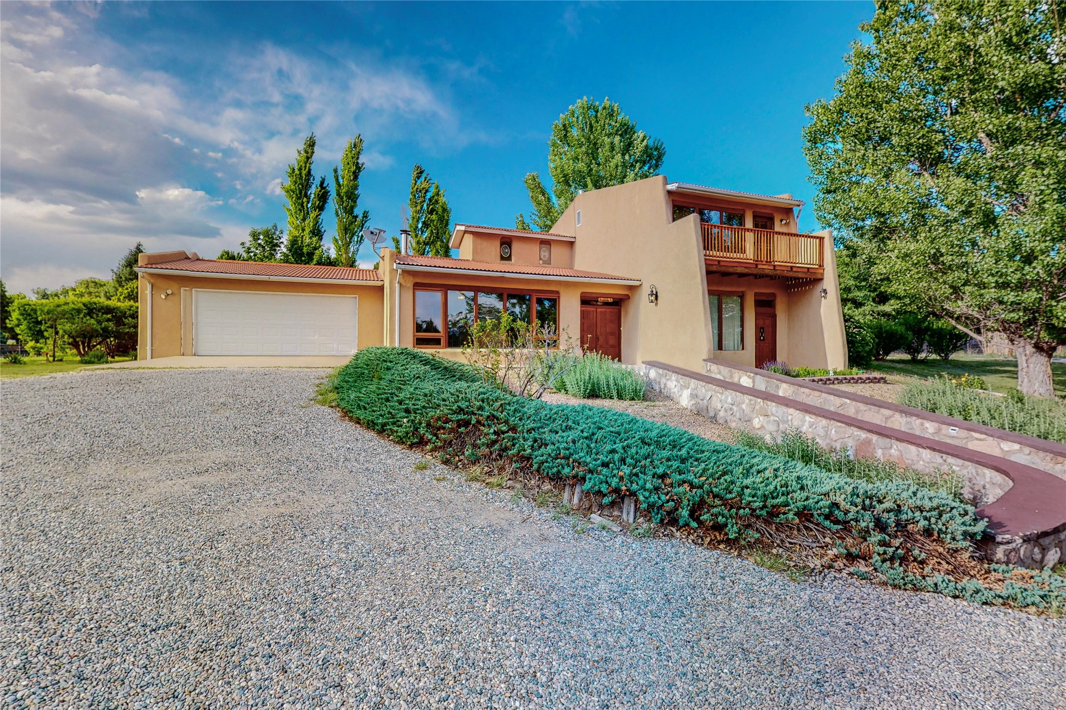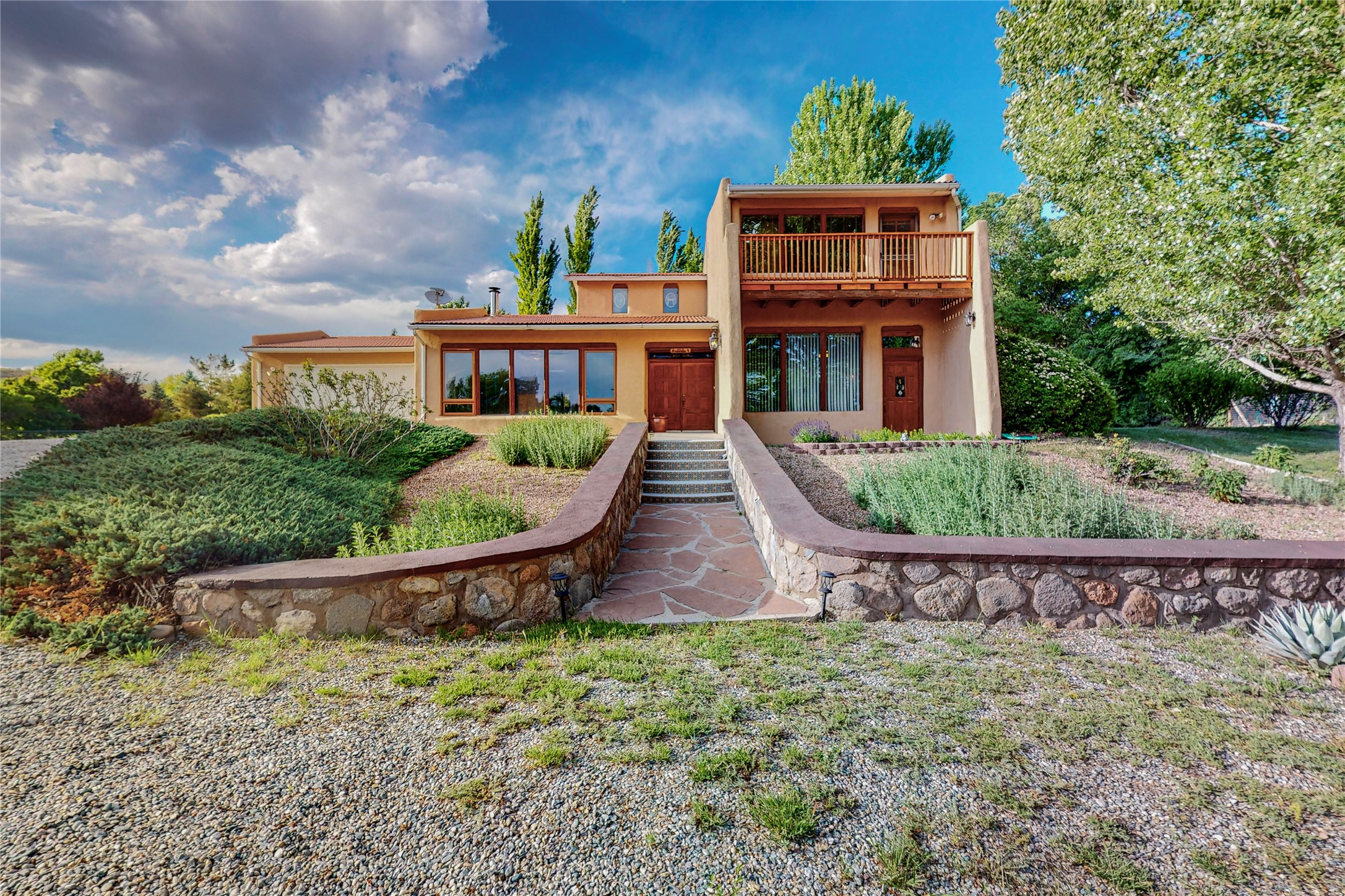 HUGE PRICE IMPROVEMENT. Looking for a home that is move in ready, with plenty of space for indoor and outdoor entertaining and/or everyday living? Let's start with the beautiful interior of this custom home. It has baseboard radiant heating throughout. The ground level has natural lighting, passive solar heating, and a wood stove. There is one bedroom and a bath downstairs, along with a formal living room that has long beams and a tongue and groove wood plank ceiling. In this room, there is a window with an evaporative unit that cools the lower level. The family room, also on the lower level, has a high ceiling made of vigas, with split cedar, between each viga. Step up to the dining room. To the left is the kitchen with the quartz countertop and stainless steel appliance, perfect for any designated Chef. The back yard is accessed through the dining room and has ample space for grilling, dining and entertaining. Upstairs could be considered a total owner suite with a hobby/gym/library space or that same area could be an extra bedroom. There is a beautiful bathroom. The owner's bedroom has hardwood flooring and opens up to a private deck overlooking the lush land, belonging to the property. The land offers opportunities to have domestic farm animals, like chickens, sheep, cows, or horses. There is space for organic gardening. There are several mature fruit trees. Irrigation water rights, will provide the water needed for successful gardening. The southern boundary is close to the Santa Cruz River, a great place for fishing or outside meditations. There is an open barn and tack room, and another outside storage unit. This is a must see home, now. The entrance to the property has a beautiful electric gate. The roof on the home is a thick gauge title pro panel. Must be prequalified to view in person.