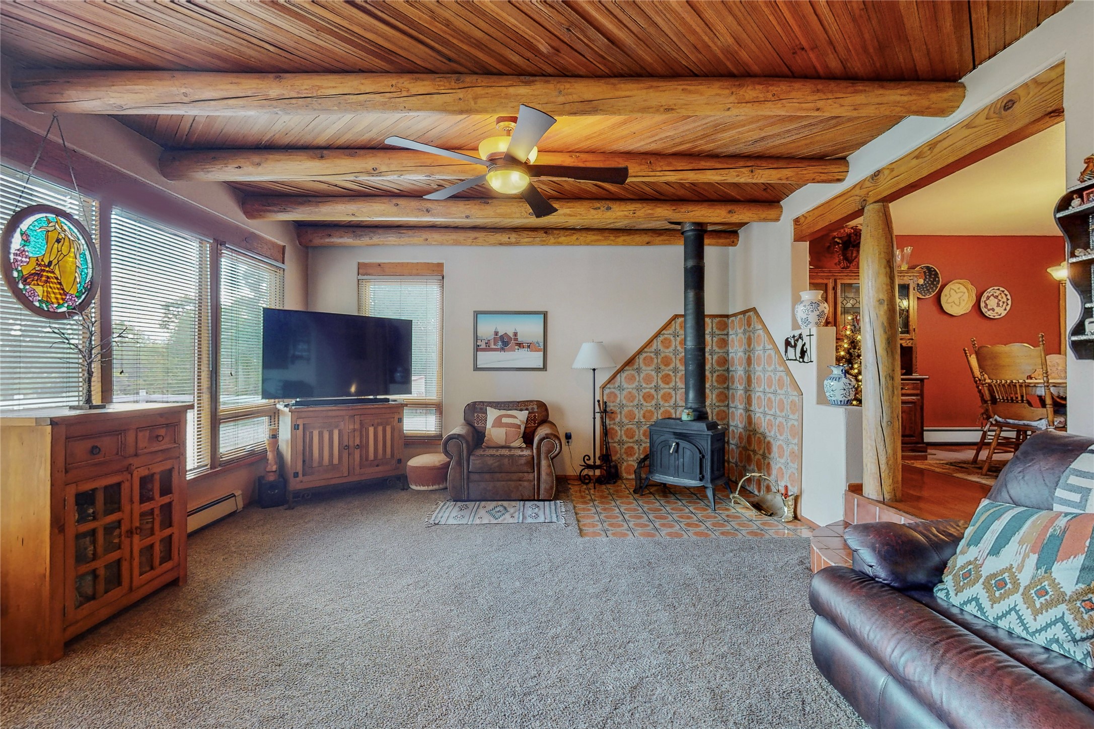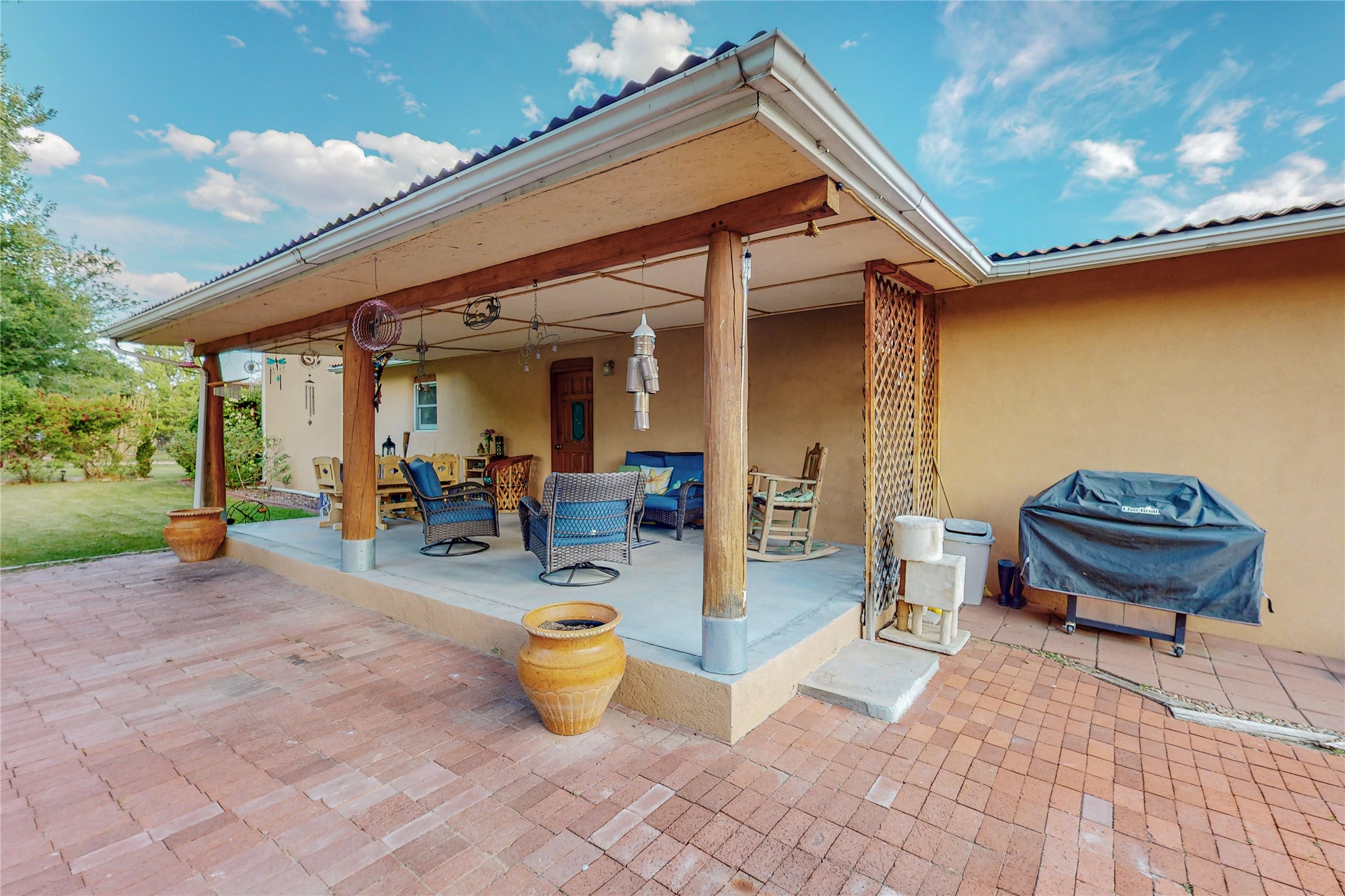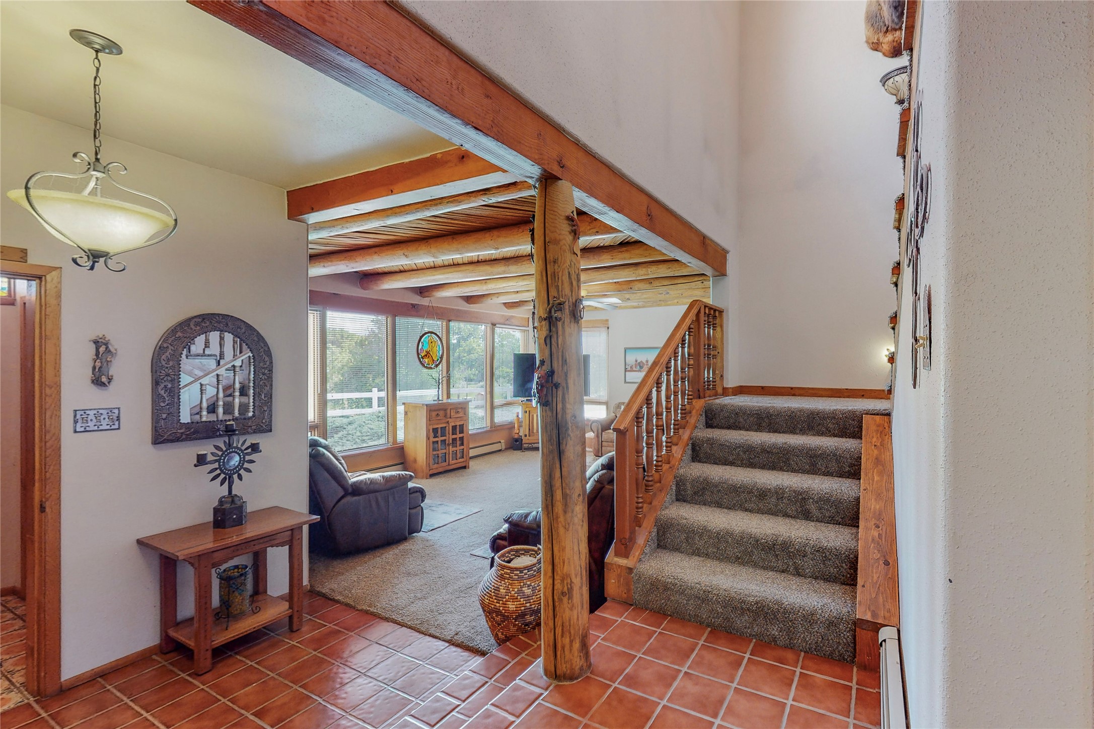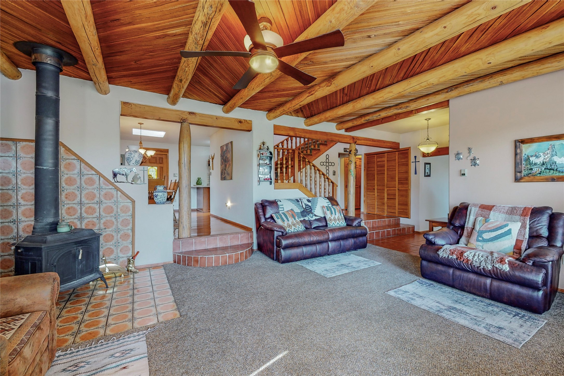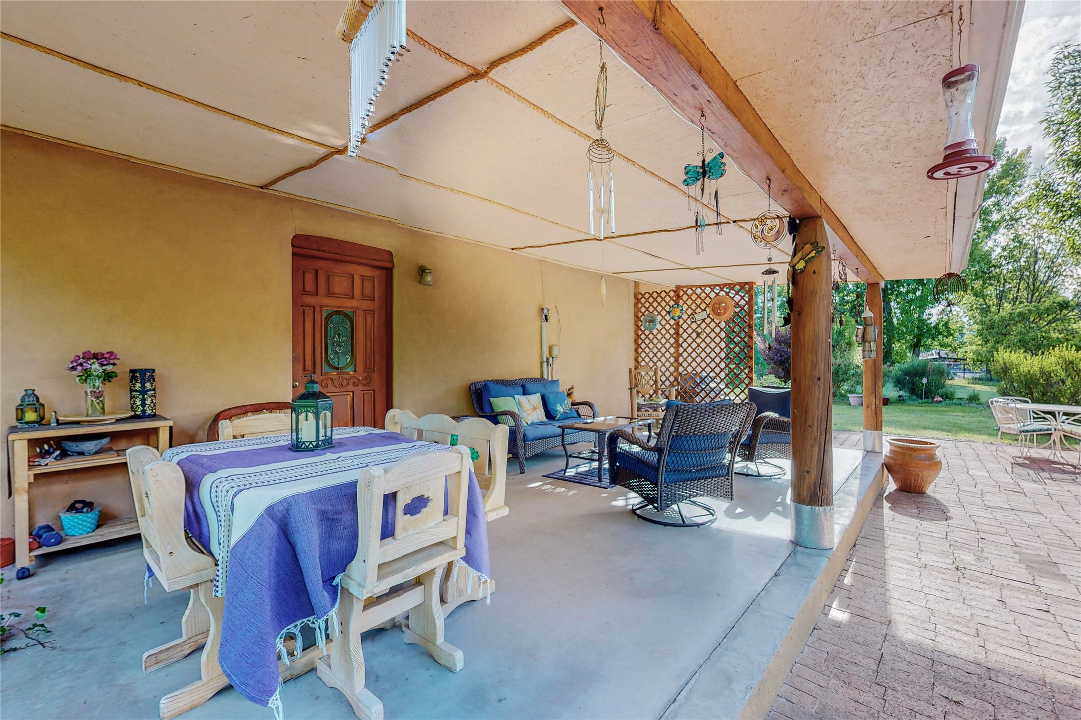 HUGE PRICE IMPROVEMENT. Looking for a home that is move in ready, with plenty of space for indoor and outdoor entertaining and/or everyday living? Let's start with the beautiful interior of this custom home. It has baseboard radiant heating throughout. The ground level has natural lighting, passive solar heating, and a wood stove. There is one bedroom and a bath downstairs, along with a formal living room that has long beams and a tongue and groove wood plank ceiling. In this room, there is a window with an evaporative unit that cools the lower level. The family room, also on the lower level, has a high ceiling made of vigas, with split cedar, between each viga. Step up to the dining room. To the left is the kitchen with the quartz countertop and stainless steel appliance, perfect for any designated Chef. The back yard is accessed through the dining room and has ample space for grilling, dining and entertaining. Upstairs could be considered a total owner suite with a hobby/gym/library space or that same area could be an extra bedroom. There is a beautiful bathroom. The owner's bedroom has hardwood flooring and opens up to a private deck overlooking the lush land, belonging to the property. The land offers opportunities to have domestic farm animals, like chickens, sheep, cows, or horses. There is space for organic gardening. There are several mature fruit trees. Irrigation water rights, will provide the water needed for successful gardening. The southern boundary is close to the Santa Cruz River, a great place for fishing or outside meditations. There is an open barn and tack room, and another outside storage unit. This is a must see home, now. The entrance to the property has a beautiful electric gate. The roof on the home is a thick gauge title pro panel. Must be prequalified to view in person.