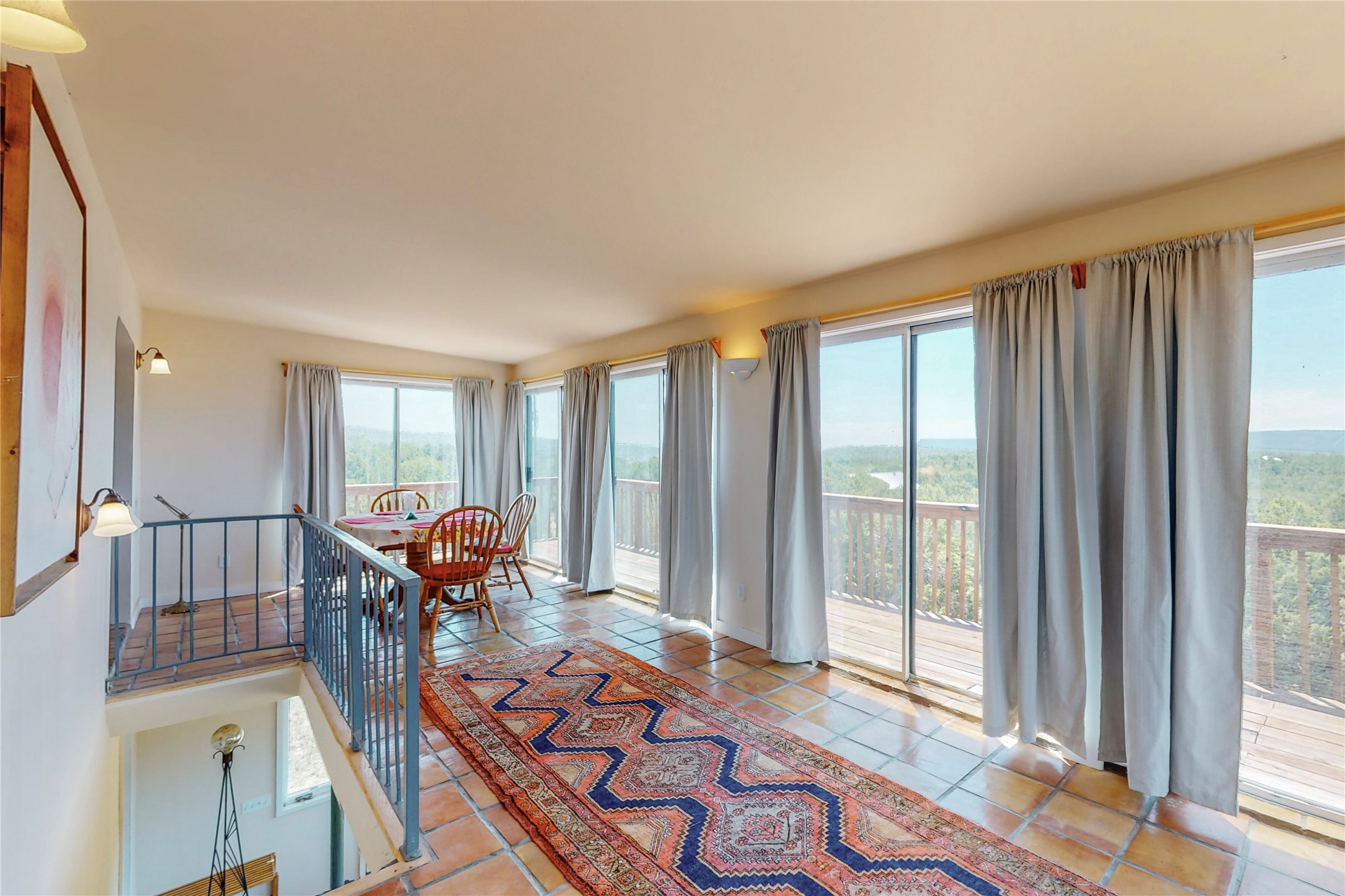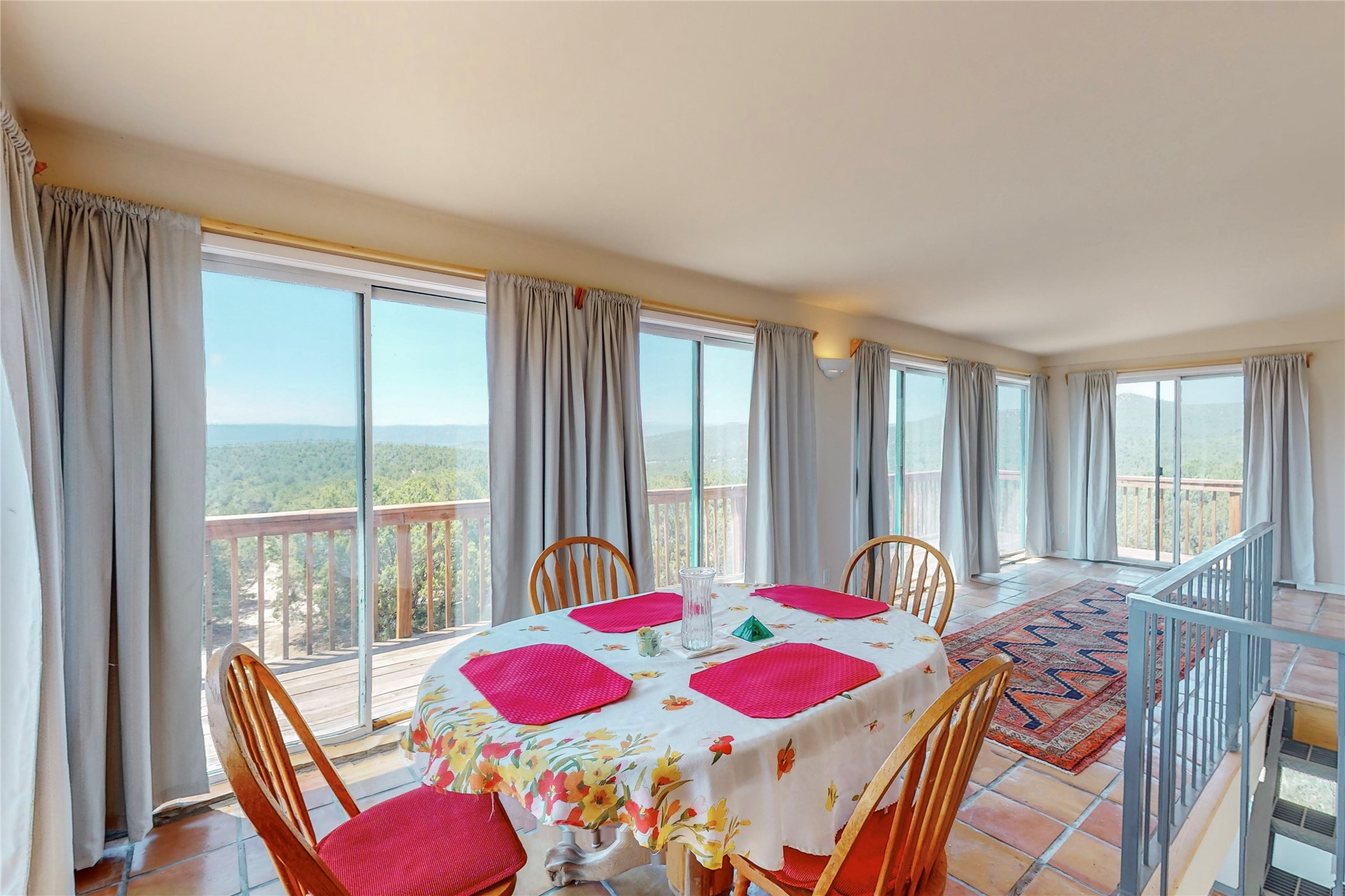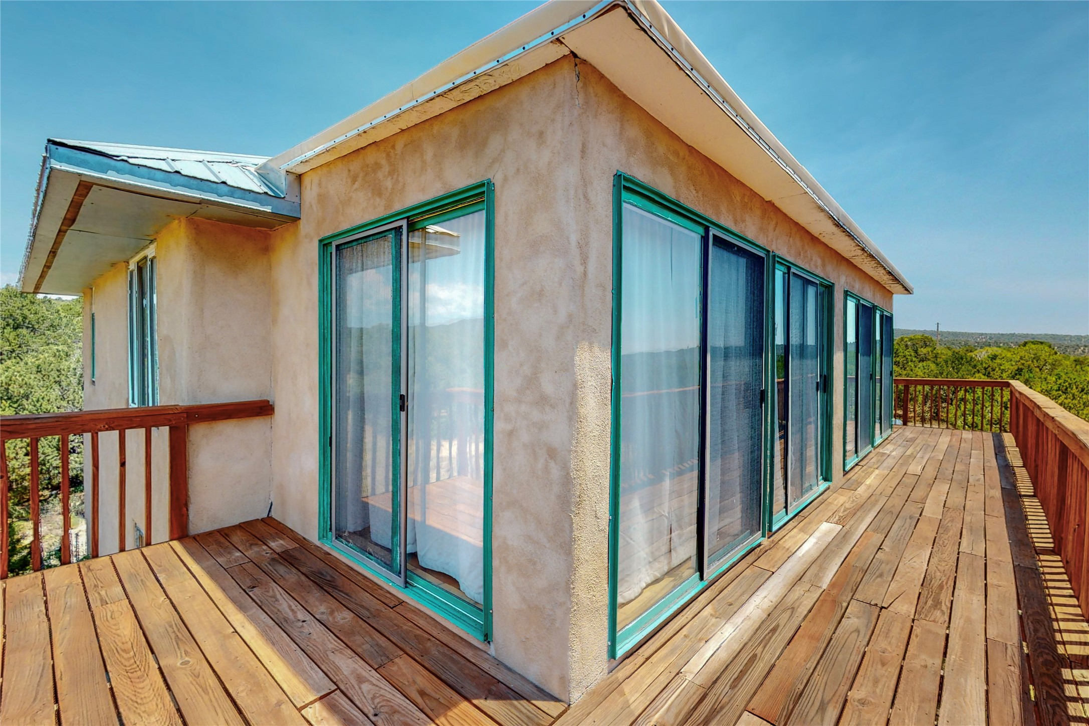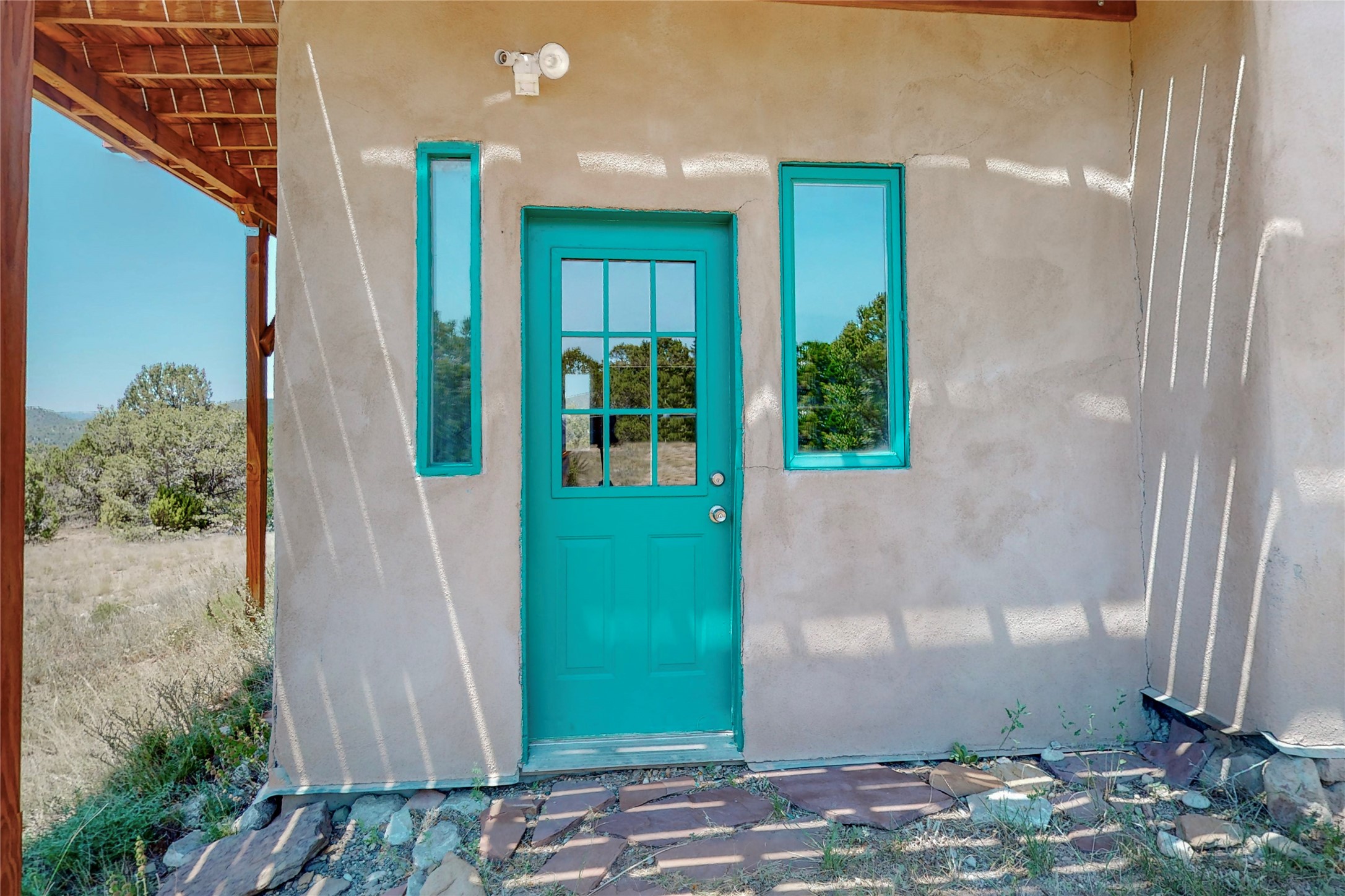 Country Living @ its best, 175 Hidden Valley Ranch Road, Ilfeld, on 5.025 acres, has much to offer buyers in a quiet rural setting. The land adjoins Val Kilmer's former ranch for 661 feet, and the house offers undisturbed views of Rowe Mesa to the west and Cow Creek Valley to the east. The creatively designed two-story home has wrap around deck, two sunrooms( 1 on each level) with heat retaining floors, and is sited for privacy and views. There are three bedrooms (two up, one down) 2 bathrooms with Talavera Mexican hand-painted sinks and tile counters, a country kitchen with a walk-in pantry, a living room with vaulted ceiling and Waterford wood burning stove backed by floor-to-ceiling artistic stone heat shield. Other features include one car garage/shop, a 16' by 12' storage shed with electricity, a private well, an inviting mud room, two stairways (one metal, one oak), 1000 gallon water storage tank, all appliances -washer, dryer, oven/stove, refrigerator, Saltillo, Oak and Maple flooring and 1 of the 5 acres is dog fenced. For folks looking for a destination property 50 minutes from Santa Fe and 35 minutes from Las Vegas, please consider 175 Hidden Valley Ranch Road.