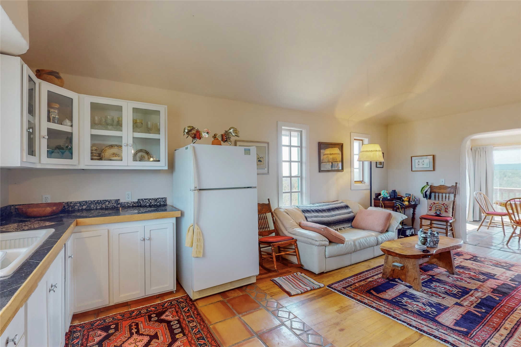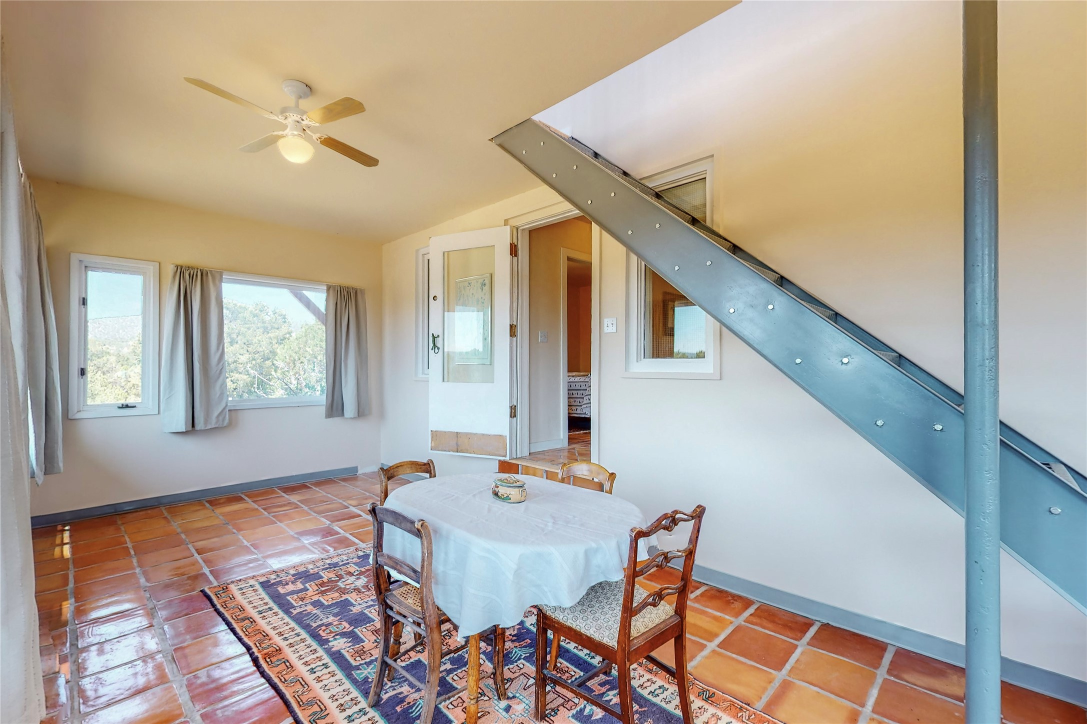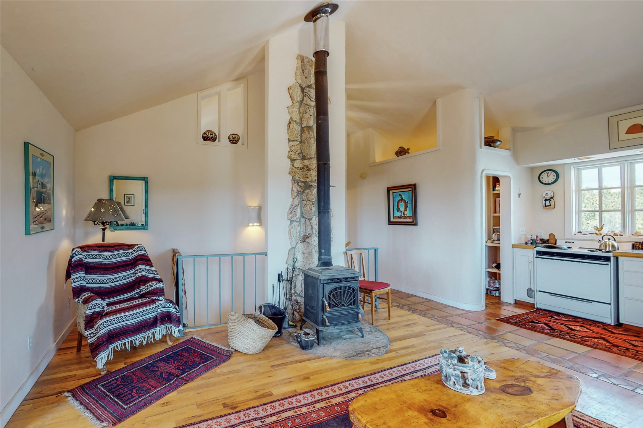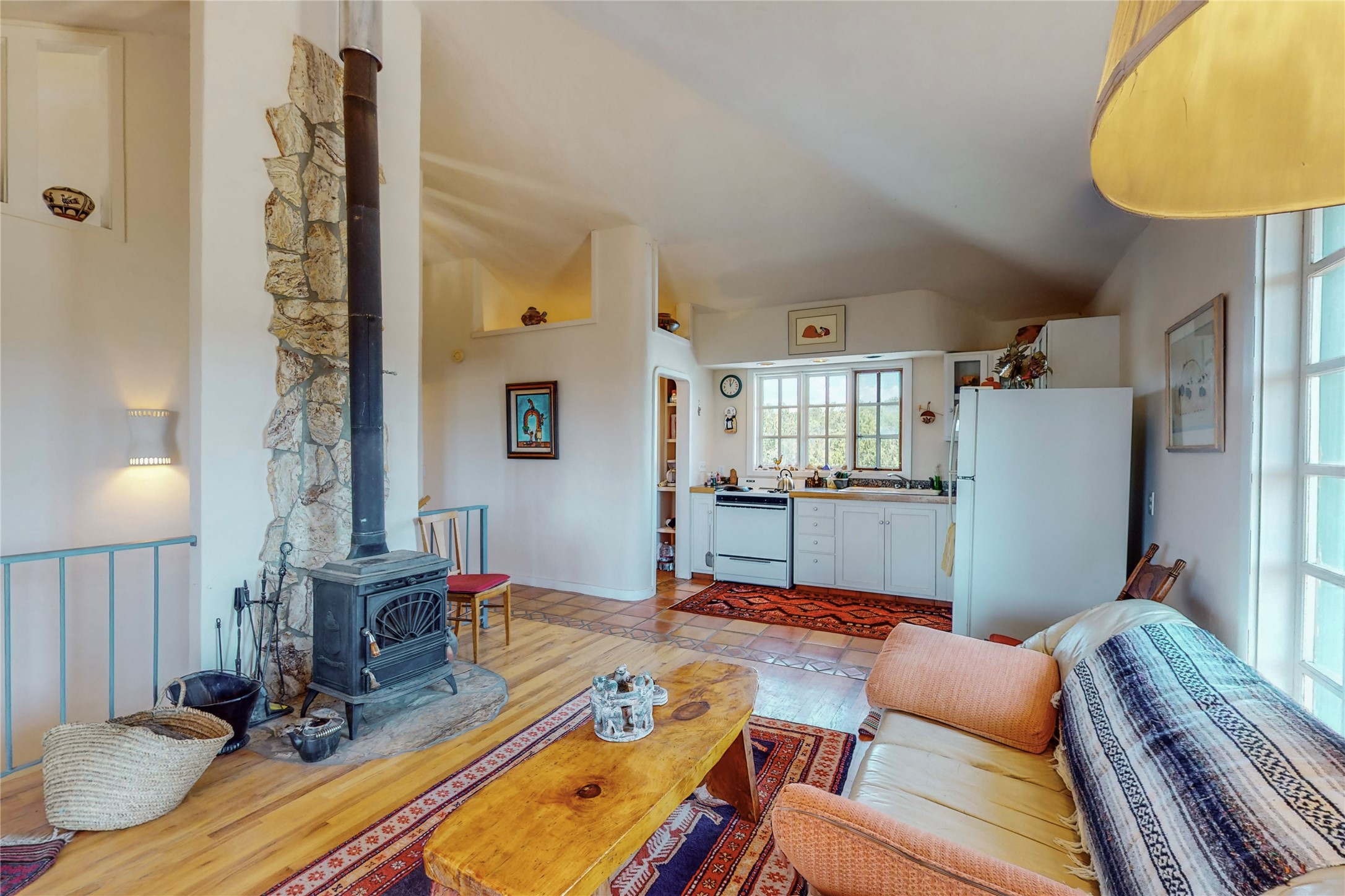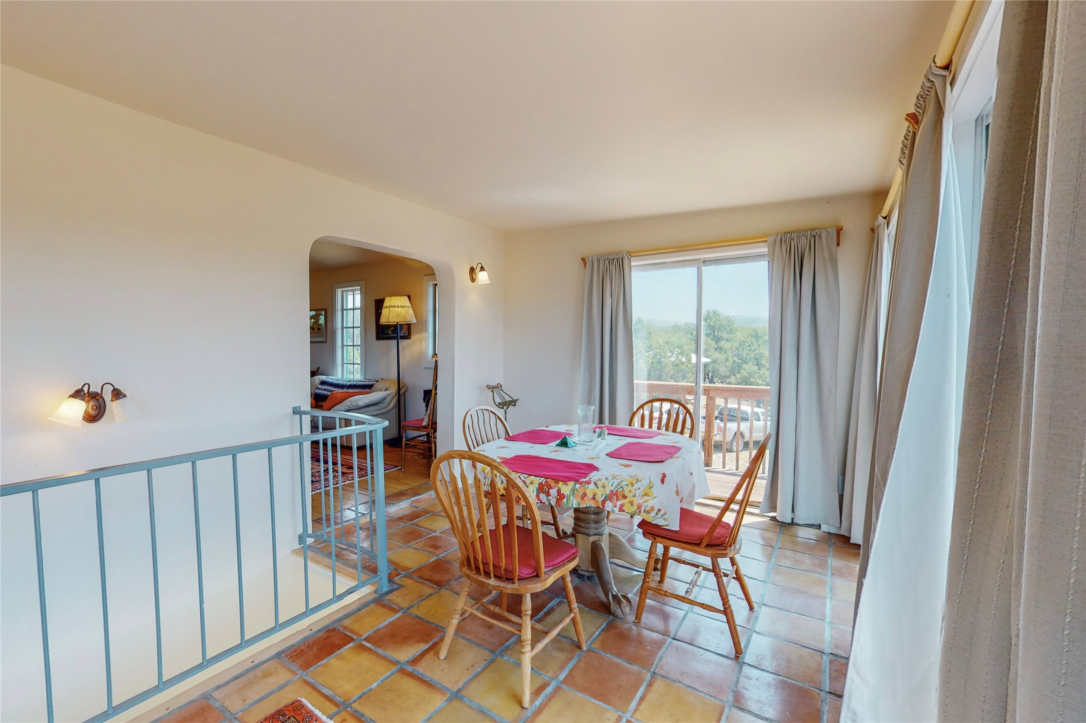 Country Living @ its best, 175 Hidden Valley Ranch Road, Ilfeld, on 5.025 acres, has much to offer buyers in a quiet rural setting. The land adjoins Val Kilmer's former ranch for 661 feet, and the house offers undisturbed views of Rowe Mesa to the west and Cow Creek Valley to the east. The creatively designed two-story home has wrap around deck, two sunrooms( 1 on each level) with heat retaining floors, and is sited for privacy and views. There are three bedrooms (two up, one down) 2 bathrooms with Talavera Mexican hand-painted sinks and tile counters, a country kitchen with a walk-in pantry, a living room with vaulted ceiling and Waterford wood burning stove backed by floor-to-ceiling artistic stone heat shield. Other features include one car garage/shop, a 16' by 12' storage shed with electricity, a private well, an inviting mud room, two stairways (one metal, one oak), 1000 gallon water storage tank, all appliances -washer, dryer, oven/stove, refrigerator, Saltillo, Oak and Maple flooring and 1 of the 5 acres is dog fenced. For folks looking for a destination property 50 minutes from Santa Fe and 35 minutes from Las Vegas, please consider 175 Hidden Valley Ranch Road.