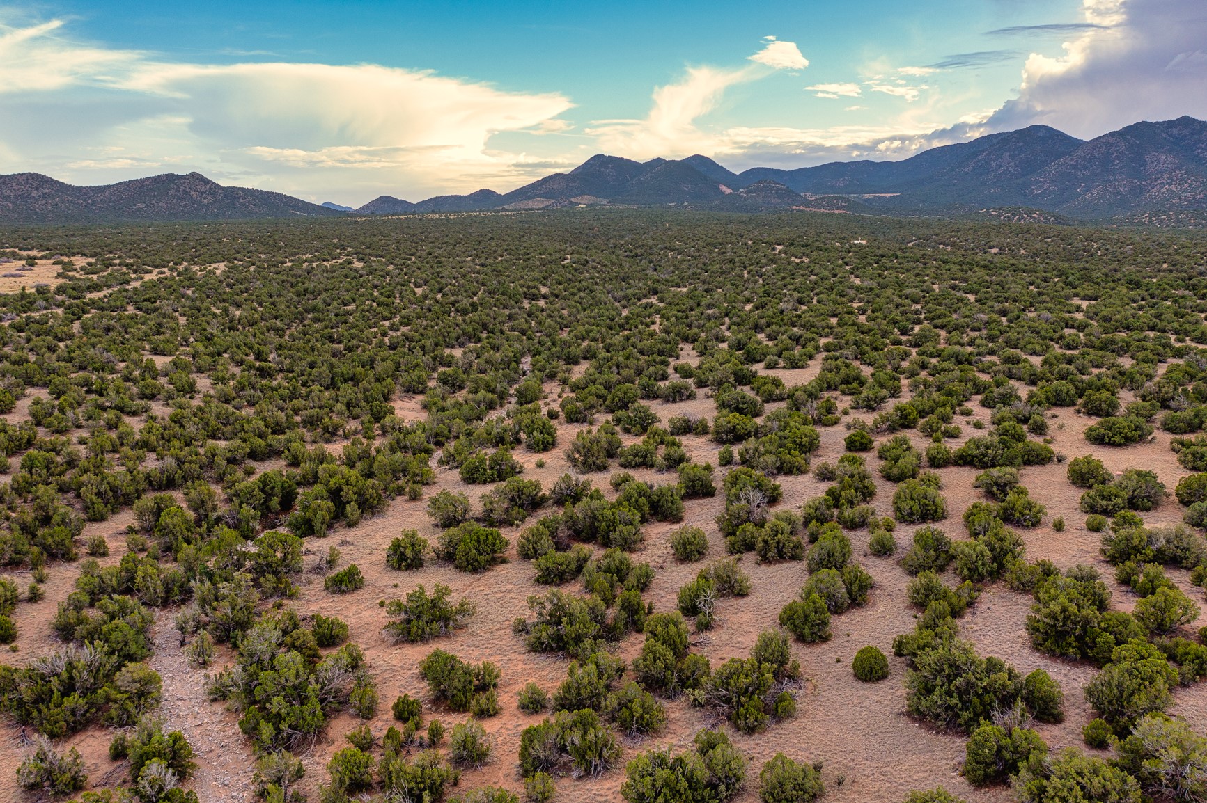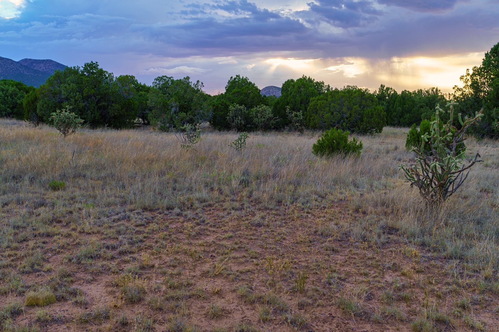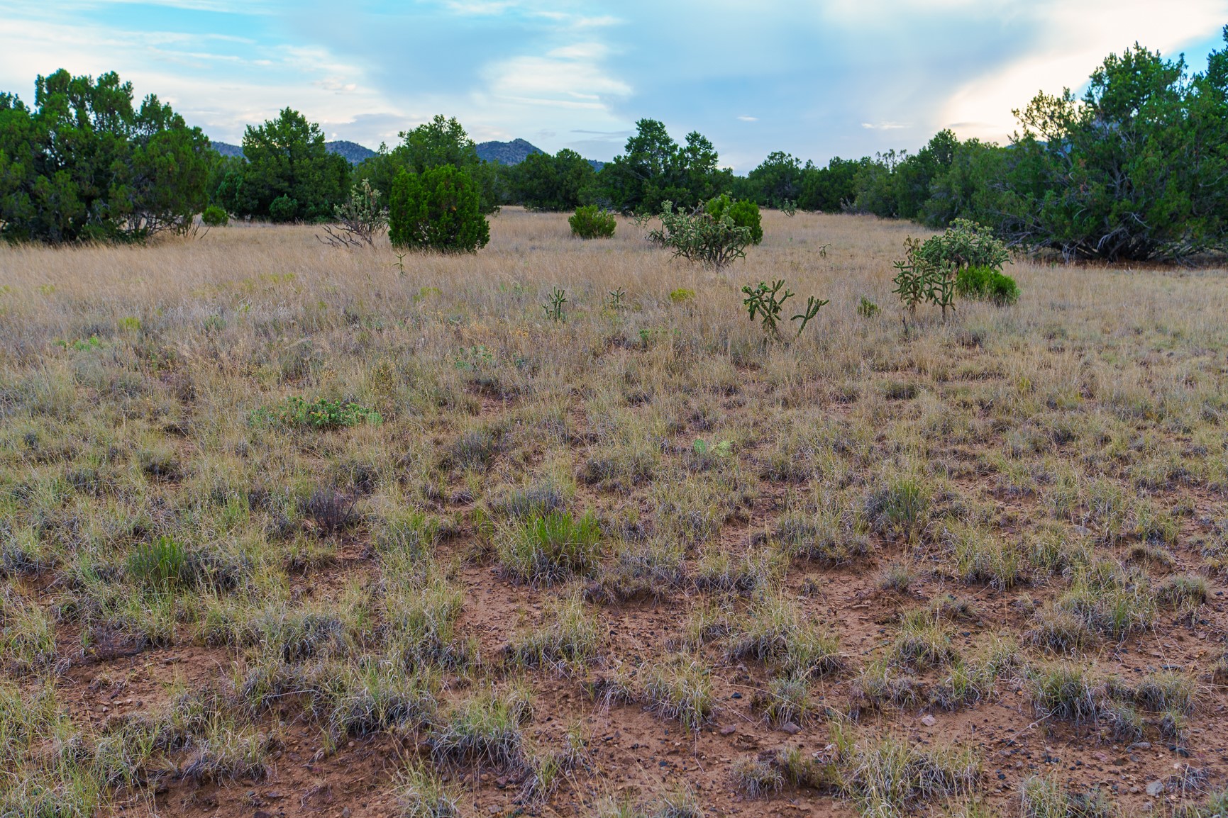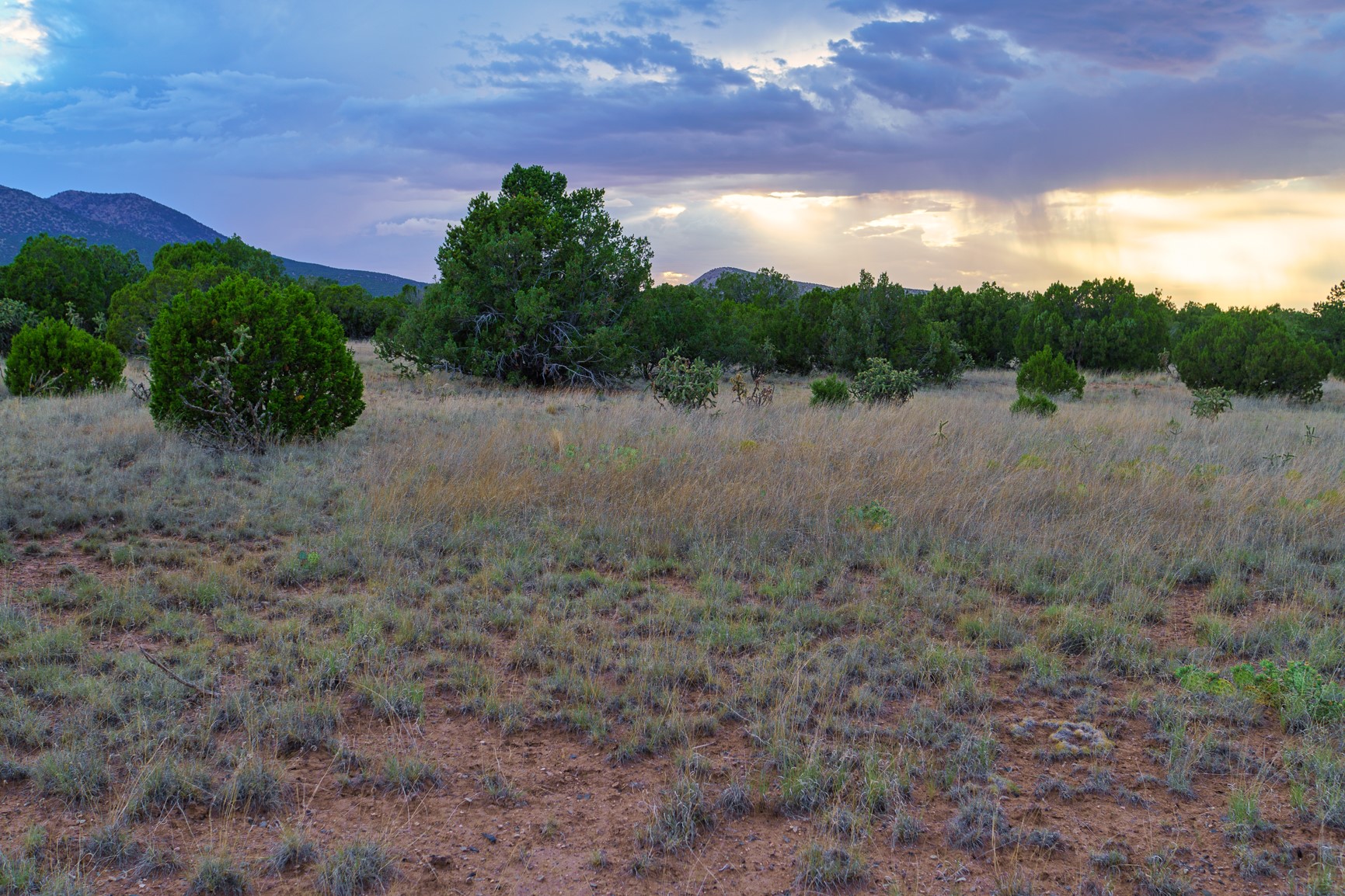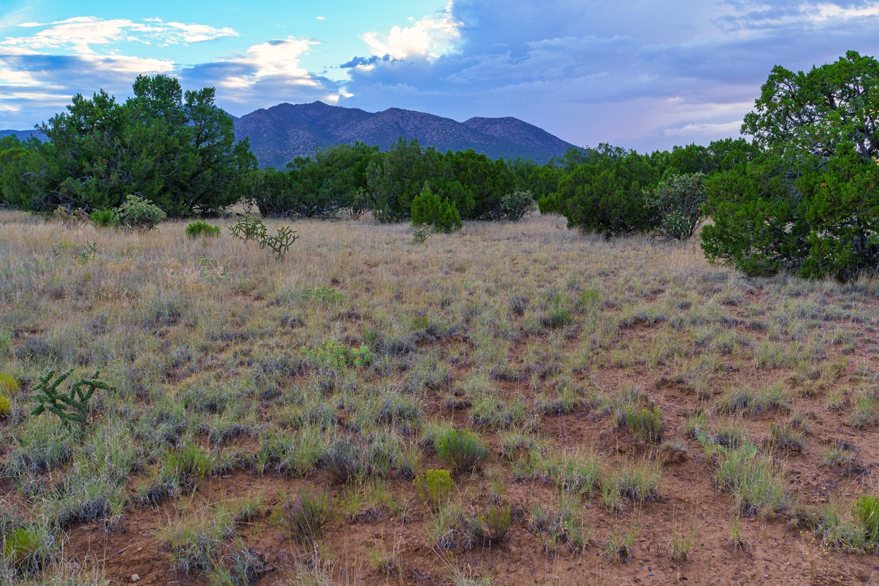 Elevated lot in the foothills of the Ortiz mountains, this 40 acre parcel features views of the Sangre de Cristos, the Cerrillos hills, and up close views of the Ortiz. It backs to a large ranch for extra privacy, features a mix of pinon, juniper and grassland. The lot has has varied topography, with an arroyo near the eastern boundary and significant flat areas for building. Situated in the gated community of Ranchitos de Santa Fe, just off of Goldmine Road, the subdivision features spacious parcels with a forty acre minimum lot size, extremely low fees, well-maintained roads, and moderate covenants. This property has underground electric and phone at the road. 22 miles from Santa Fe, and near Madrid and Cerrillos for dining and entertainment.