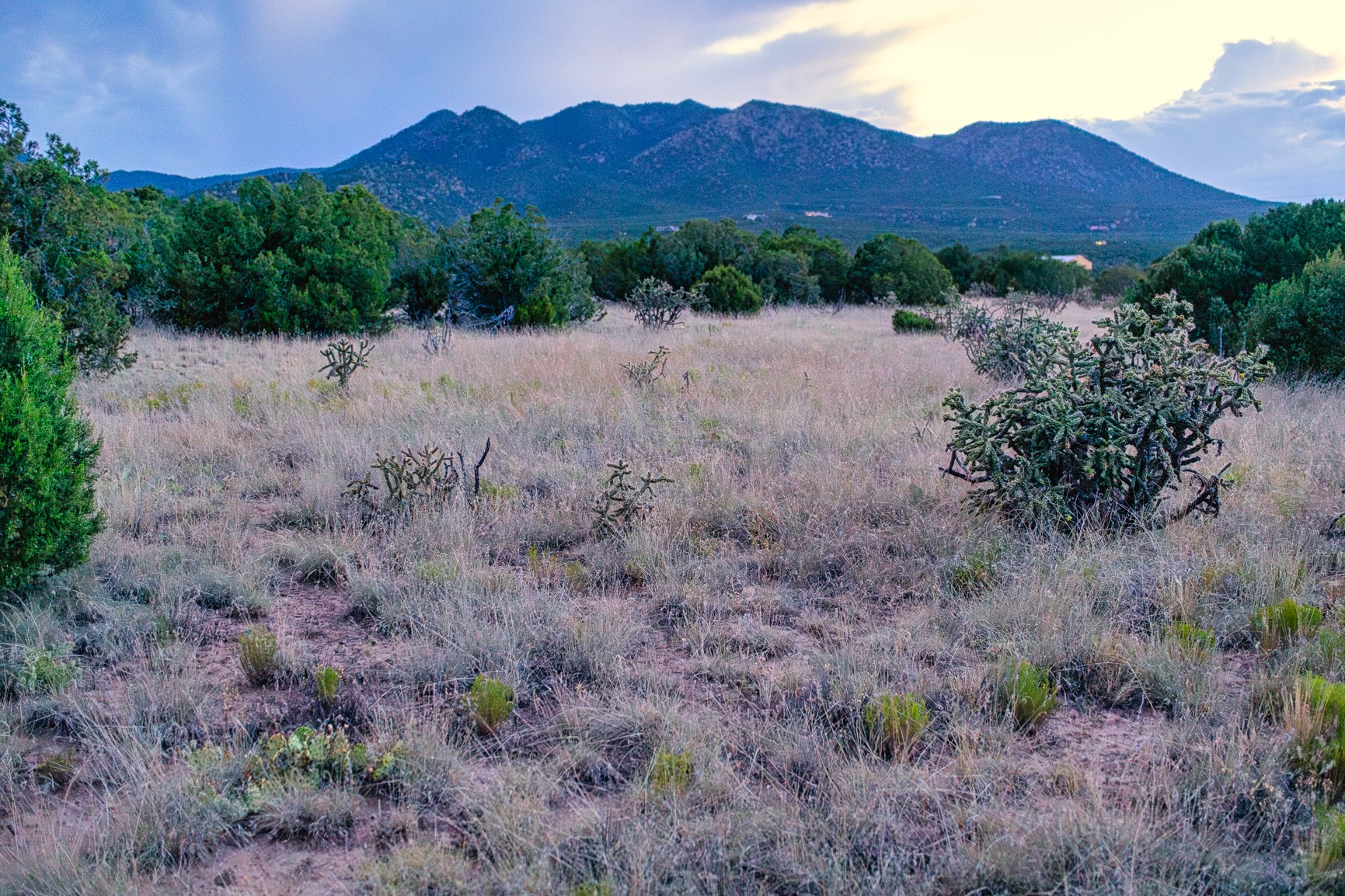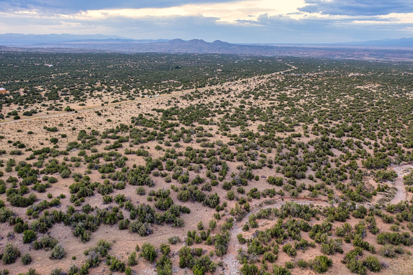 Nearly sixty-five view acres located in the the foothills of the Ortiz mountains. Paved access along Goldmine Road, power at the road. Elevated lot provides across the valley views of the Sangre De Cristo's and city lights at night, the Ortiz mountains feel so close. Much of the property is fairly level, allowing for considerable options when siting a home. Lot is adjacent to 2.6 miles long open space for horseback riding, hiking, walking. Within an HOA with low fees, minimal restrictions. Horses welcome.