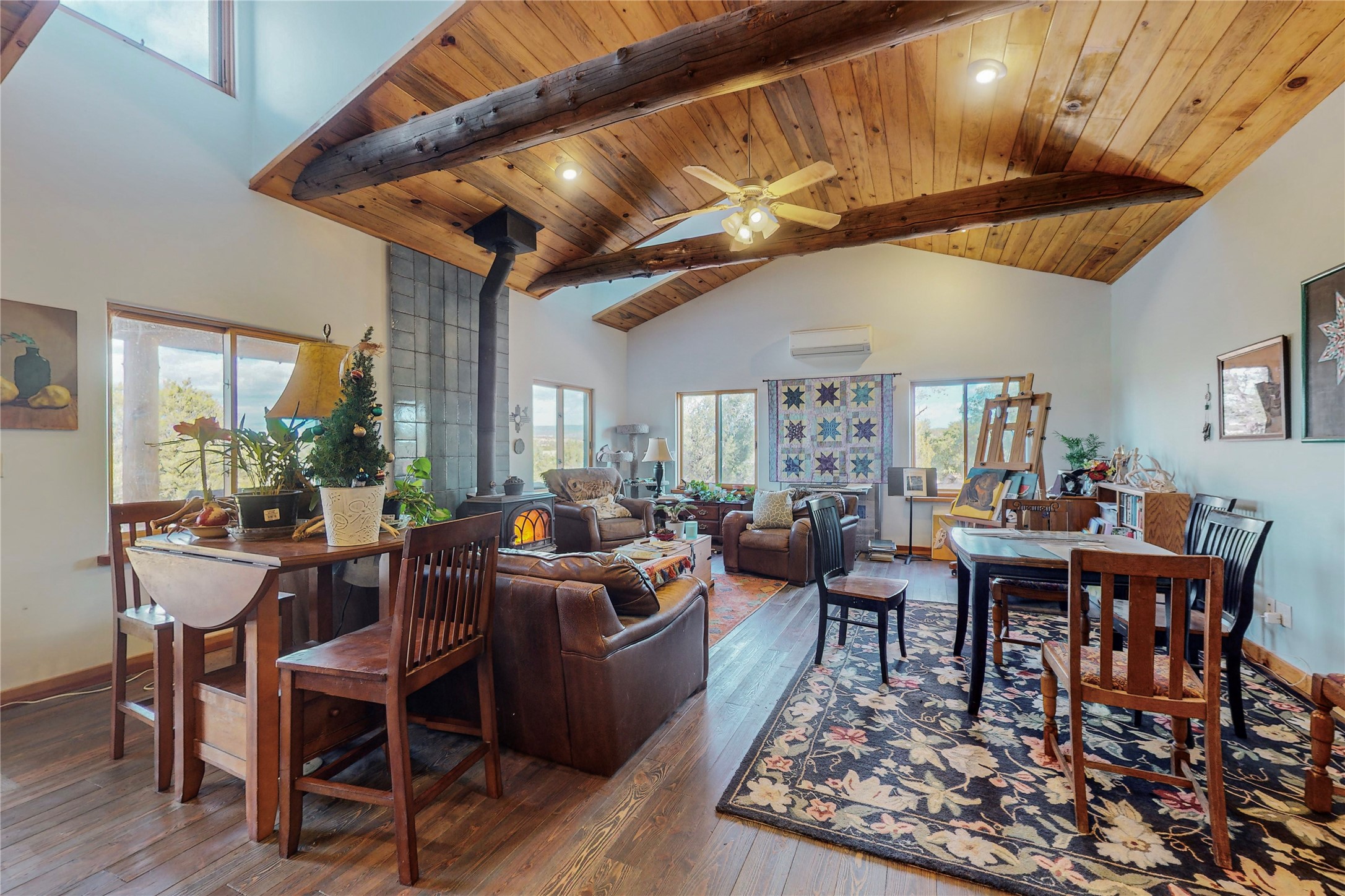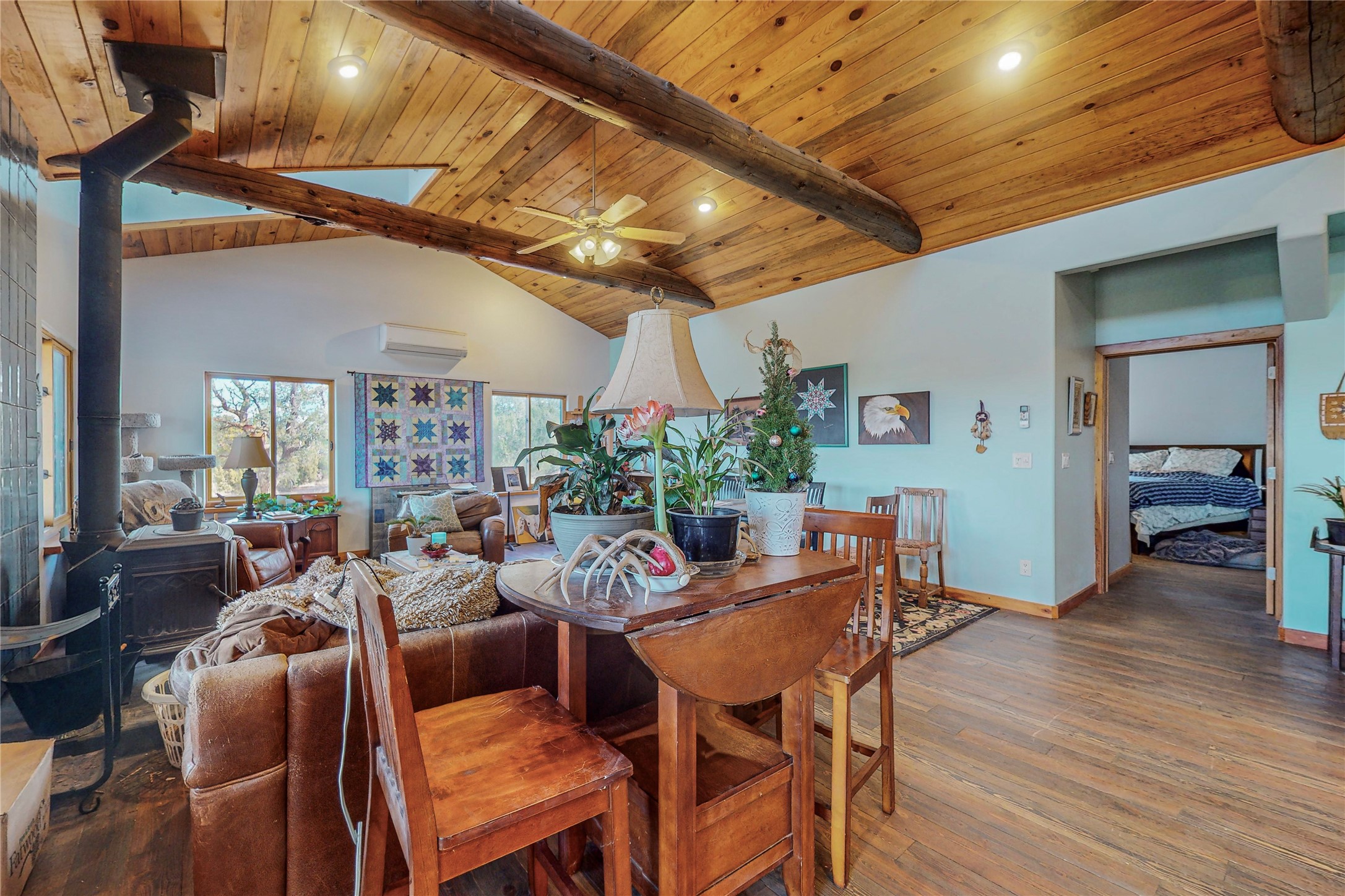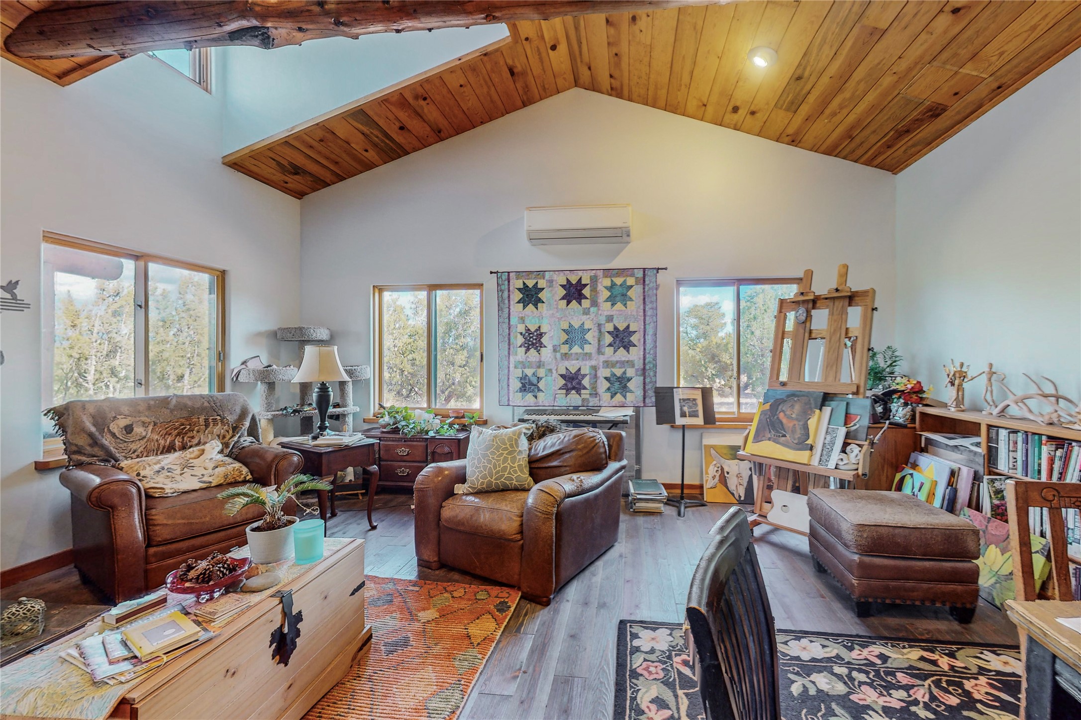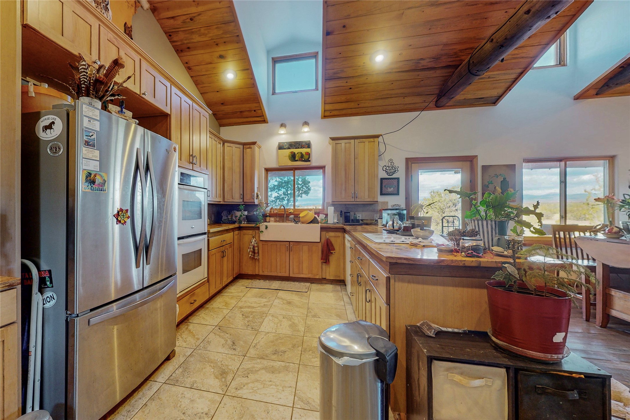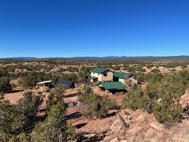 Country living at its best on 39+ acres (2 lots) with rocky outcroppings, a natural spring, open landscape and rich red earth all around. Located just outside the historic village of Ribera down a private dirt road nestles this iconic Northern NM style two story home complete with chicken coop, and a small barn/stable with turn out fencing. Photovoltaic array to help power the house. Inside find an open plan kitchen/living/dining with locally resourced Douglas fir floors, high ceilings, a wood burning stove and access to a portal that runs along the back of the house for shady afternoons enjoying the sweeping views. The second floor consists entirely of a good sized living area (office/studio?) and a separate en-suite bedroom. Mini-split heating and cooling throughout the house. New propanel roof in 2021. Well. Septic. Small fenced side garden. Easy access to Las Vegas, Albuquerque and Santa Fe (40 minutes). Seller would prefer a short lease back after closing.