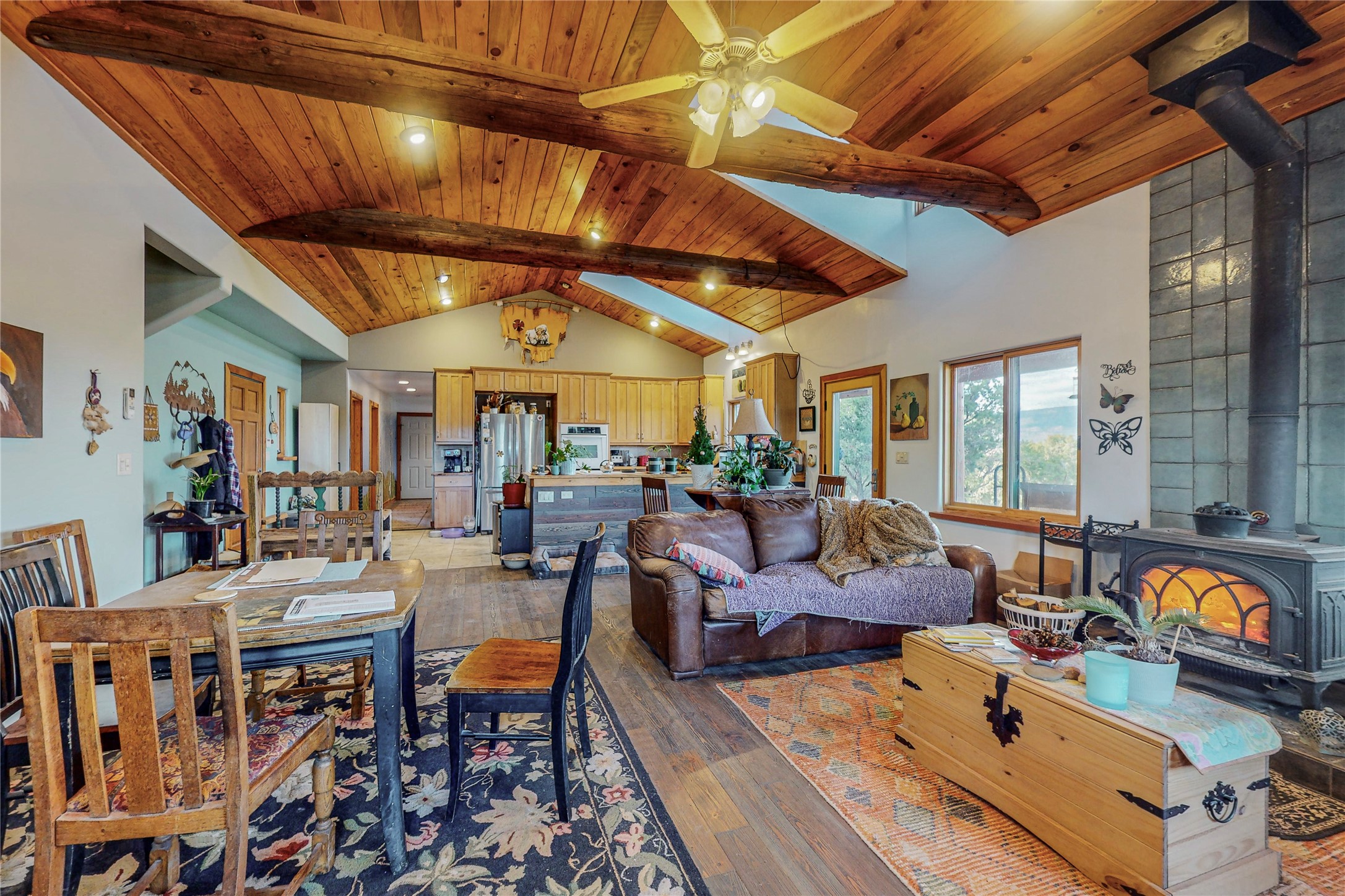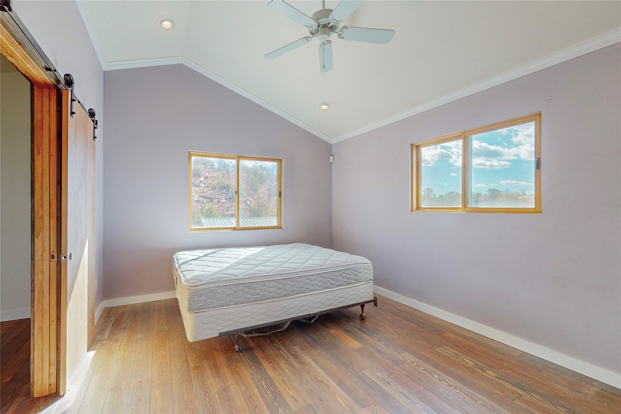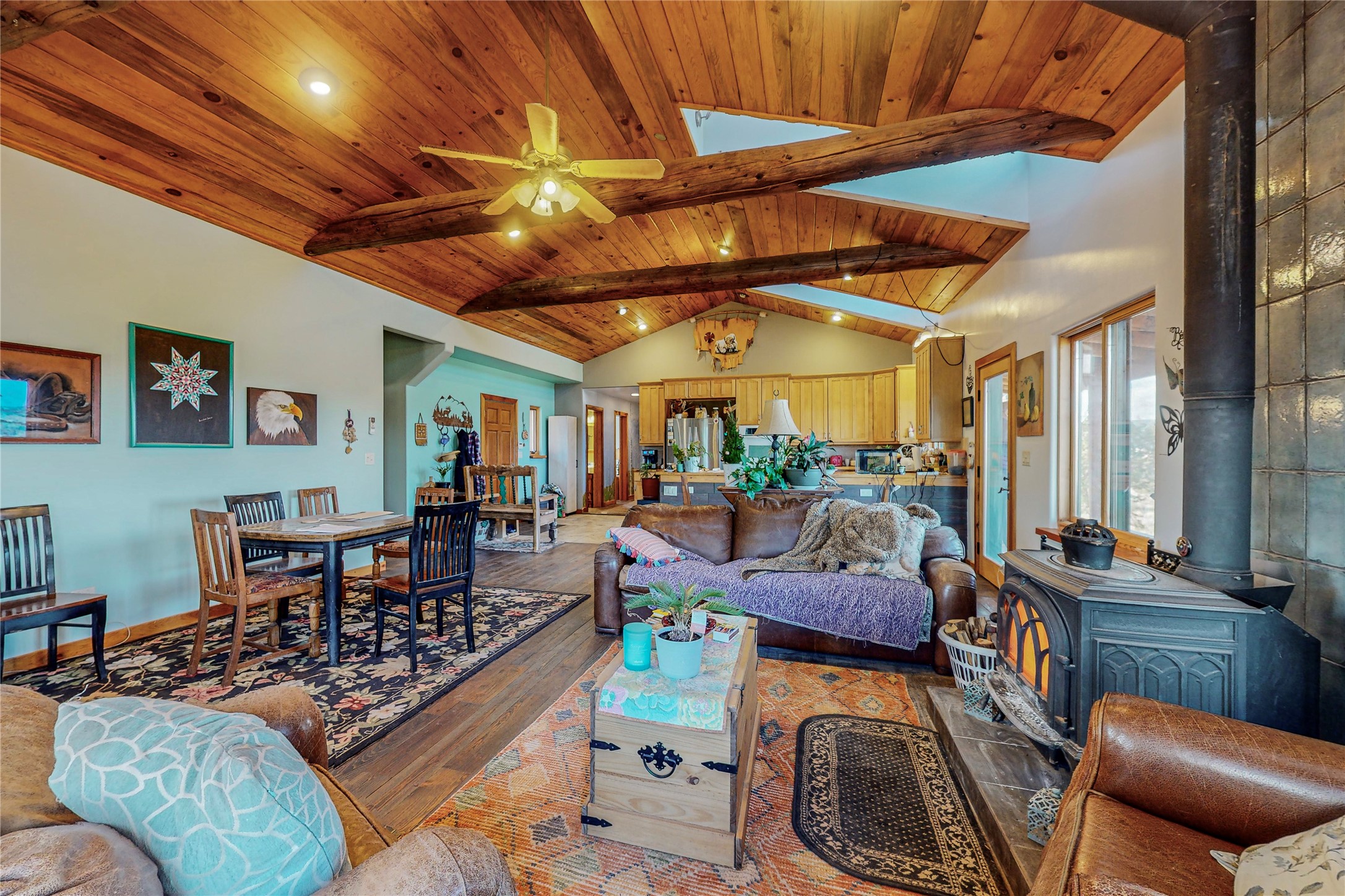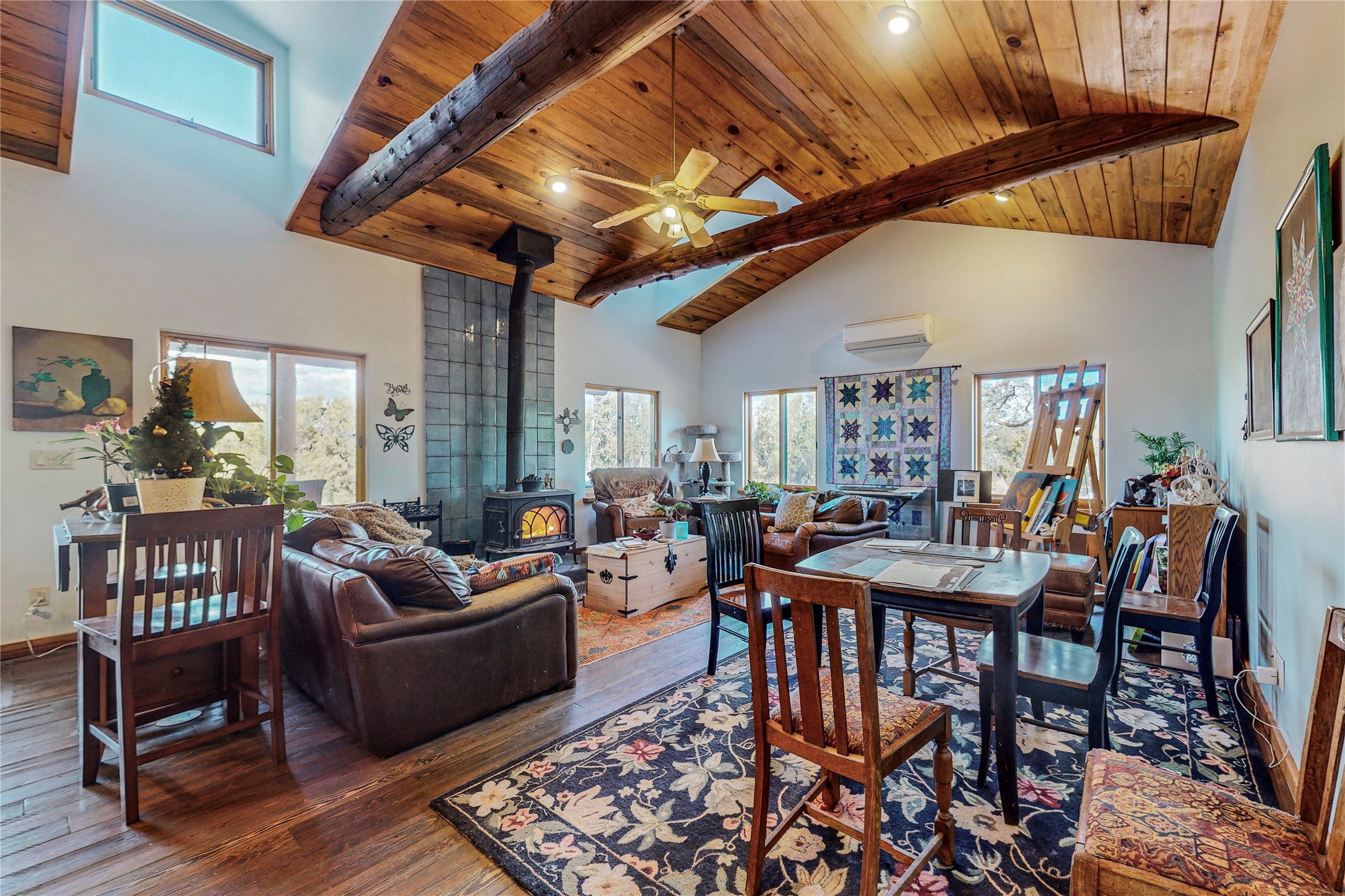 Country living at its best on 39+ acres (2 lots) with rocky outcroppings, a natural spring, open landscape and rich red earth all around. Located just outside the historic village of Ribera down a private dirt road nestles this iconic Northern NM style two story home complete with chicken coop, and a small barn/stable with turn out fencing. Photovoltaic array to help power the house. Inside find an open plan kitchen/living/dining with locally resourced Douglas fir floors, high ceilings, a wood burning stove and access to a portal that runs along the back of the house for shady afternoons enjoying the sweeping views. The second floor consists entirely of a good sized living area (office/studio?) and a separate en-suite bedroom. Mini-split heating and cooling throughout the house. New propanel roof in 2021. Well. Septic. Small fenced side garden. Easy access to Las Vegas, Albuquerque and Santa Fe (40 minutes). Seller would prefer a short lease back after closing.