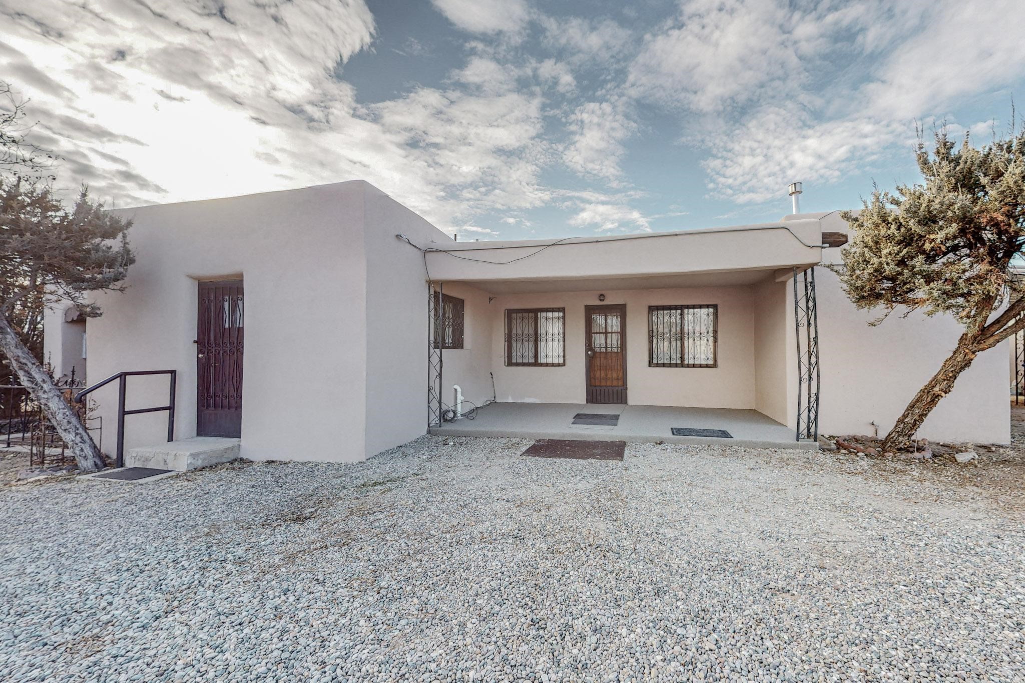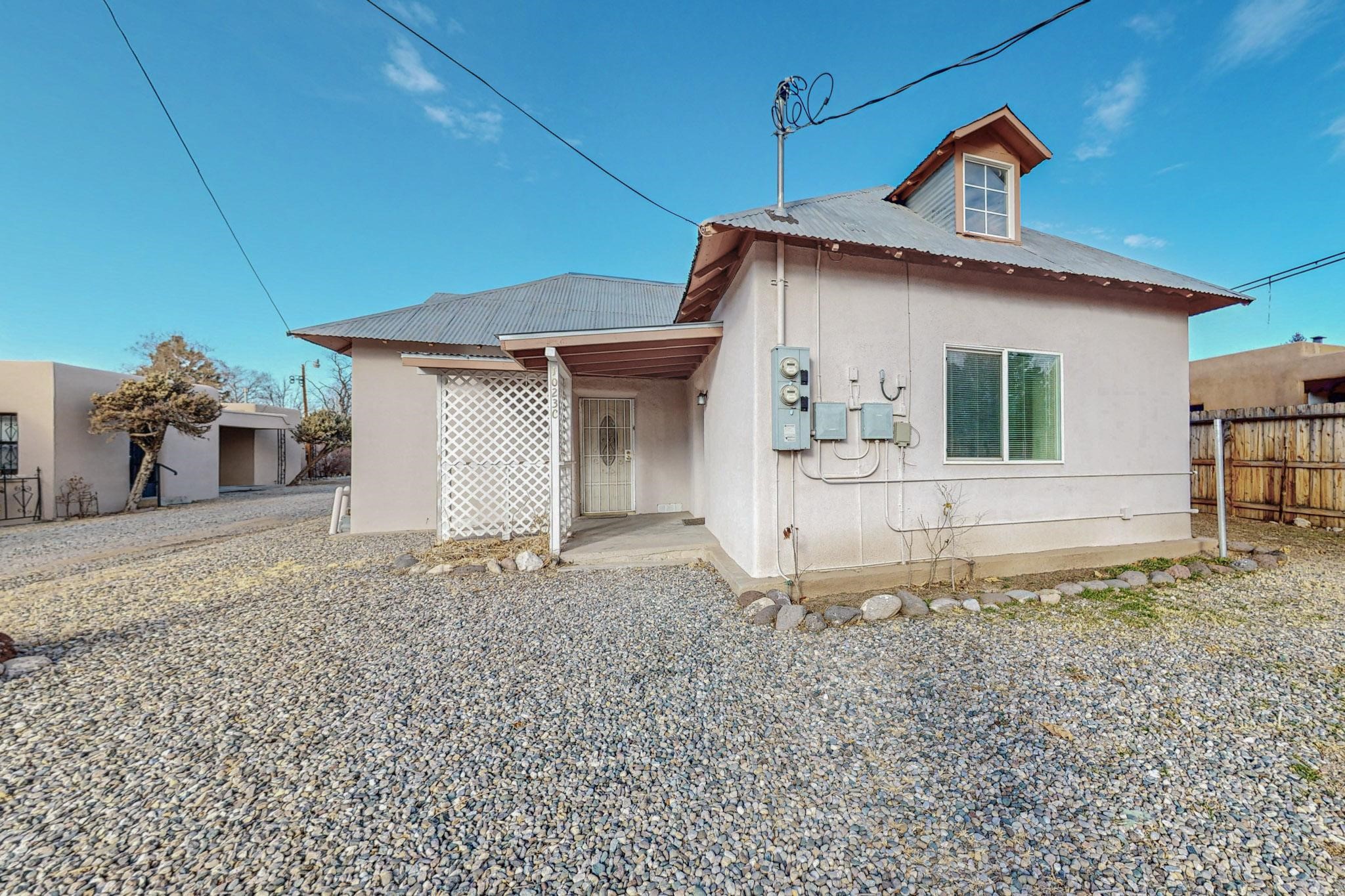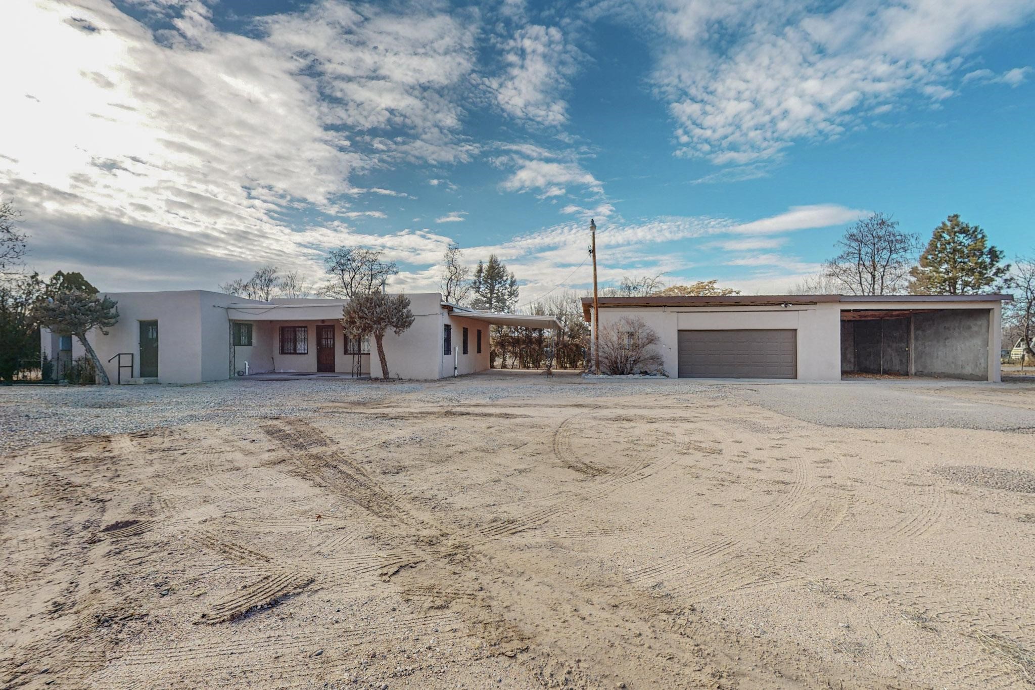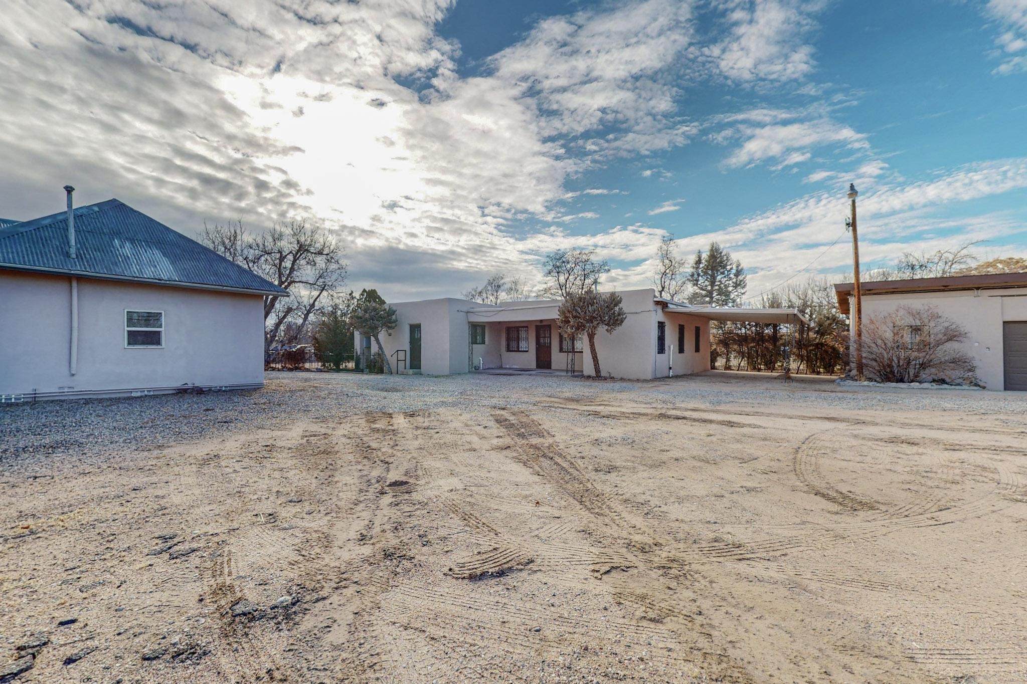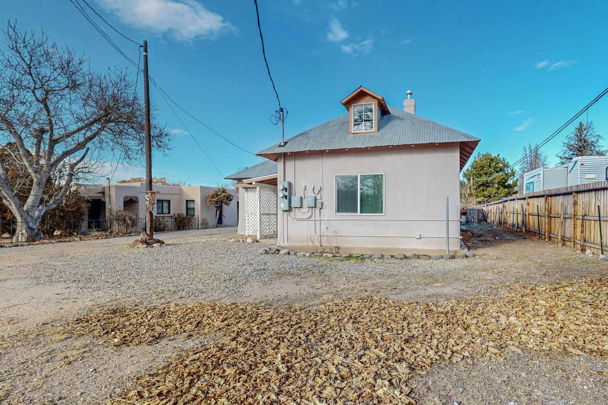 Historic adobe house with 2 adobe apartments. Recently reduced price! Pricing is now under appraised value. Contact your broker for details. Well cared for 1.22 acres is completely fenced and gated. This property has 6 covered parking spaces and one carport. Workshop and garage have electricity. Apartments each have their own meters for separate billing. Thick adobe walls in both apartments. Unknown build date of the completely renovated apartments but owners think they were built over 100 years ago. Ditch irrigation is available, but please confirm with the local irrigation authority. Functional well on the property is used for yard irrigation only. This property has fruit trees and vehicle access through a back gate via Calle Lucia. Roof (tar and gravel) on the main house is relatively new (within the last 3 years). New carpet throughout.