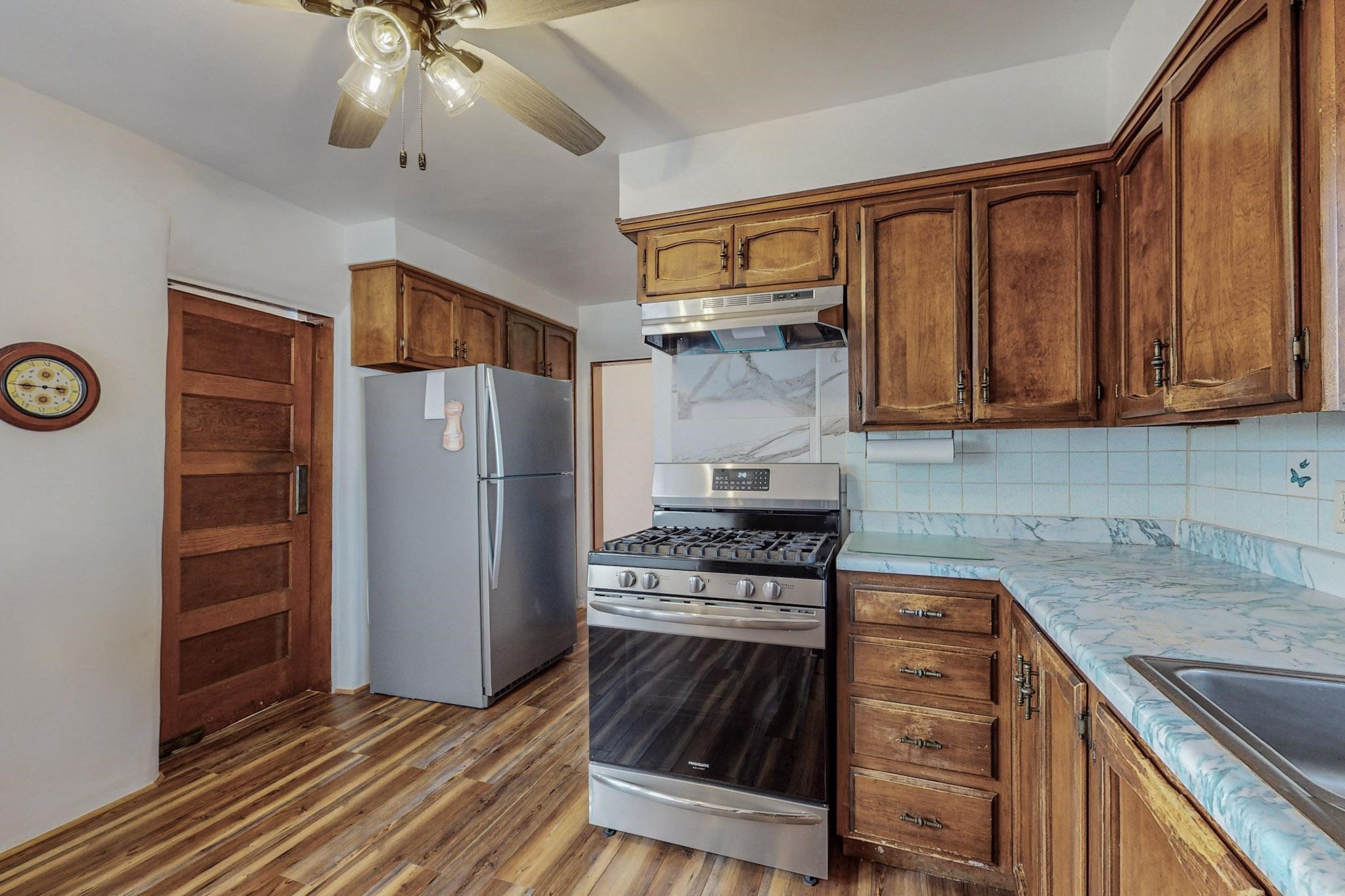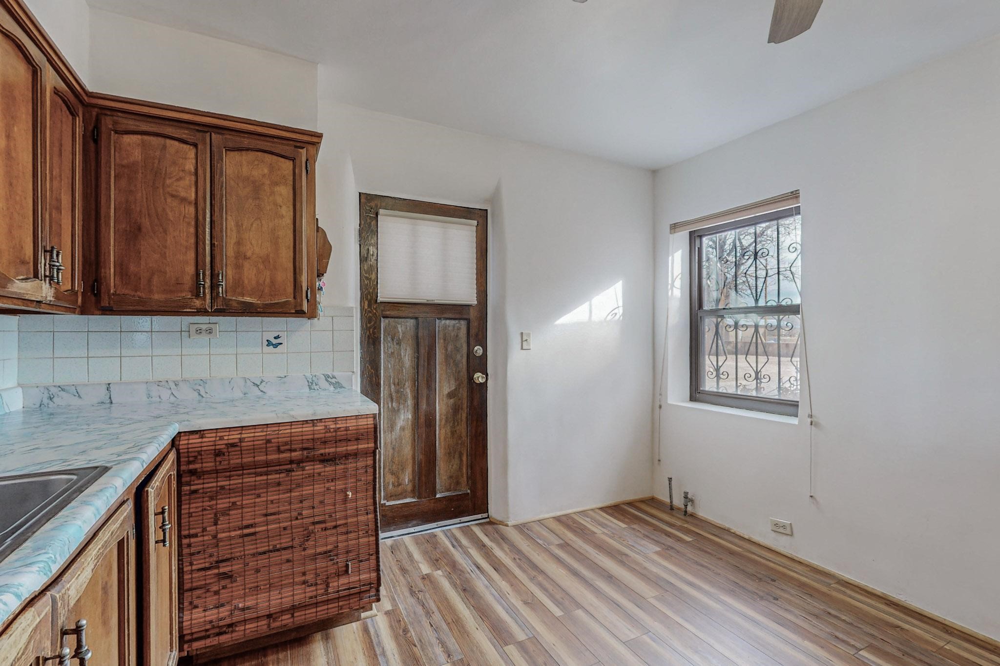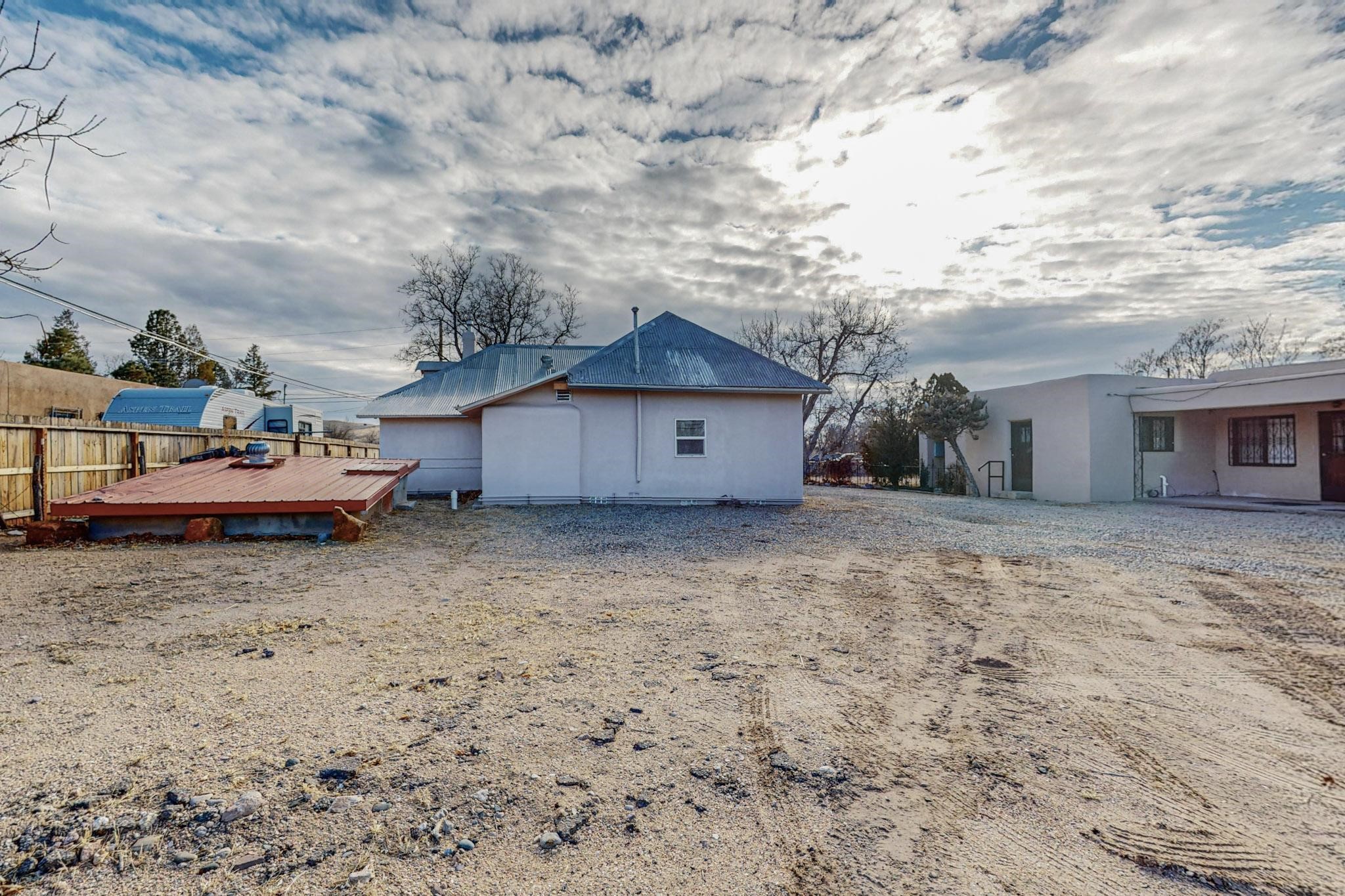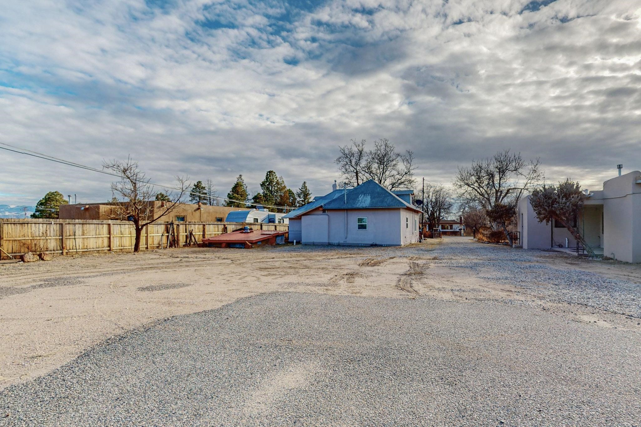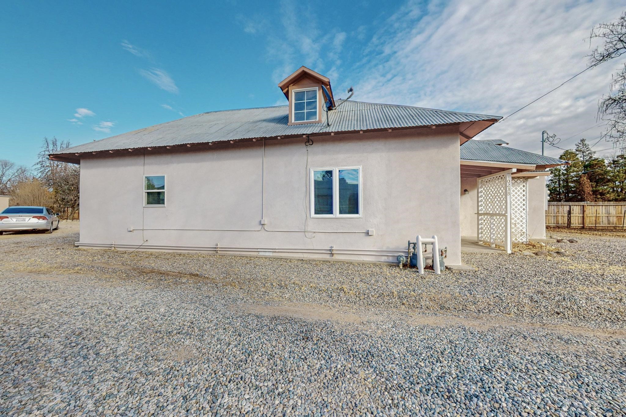 Historic adobe house with 2 adobe apartments. Recently reduced price! Pricing is now under appraised value. Contact your broker for details. Well cared for 1.22 acres is completely fenced and gated. This property has 6 covered parking spaces and one carport. Workshop and garage have electricity. Apartments each have their own meters for separate billing. Thick adobe walls in both apartments. Unknown build date of the completely renovated apartments but owners think they were built over 100 years ago. Ditch irrigation is available, but please confirm with the local irrigation authority. Functional well on the property is used for yard irrigation only. This property has fruit trees and vehicle access through a back gate via Calle Lucia. Roof (tar and gravel) on the main house is relatively new (within the last 3 years). New carpet throughout.