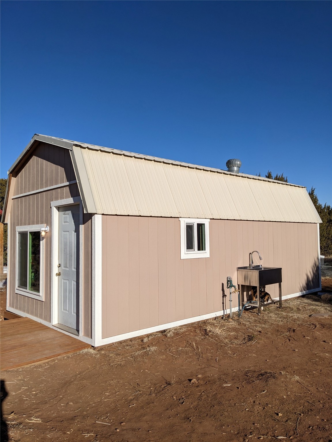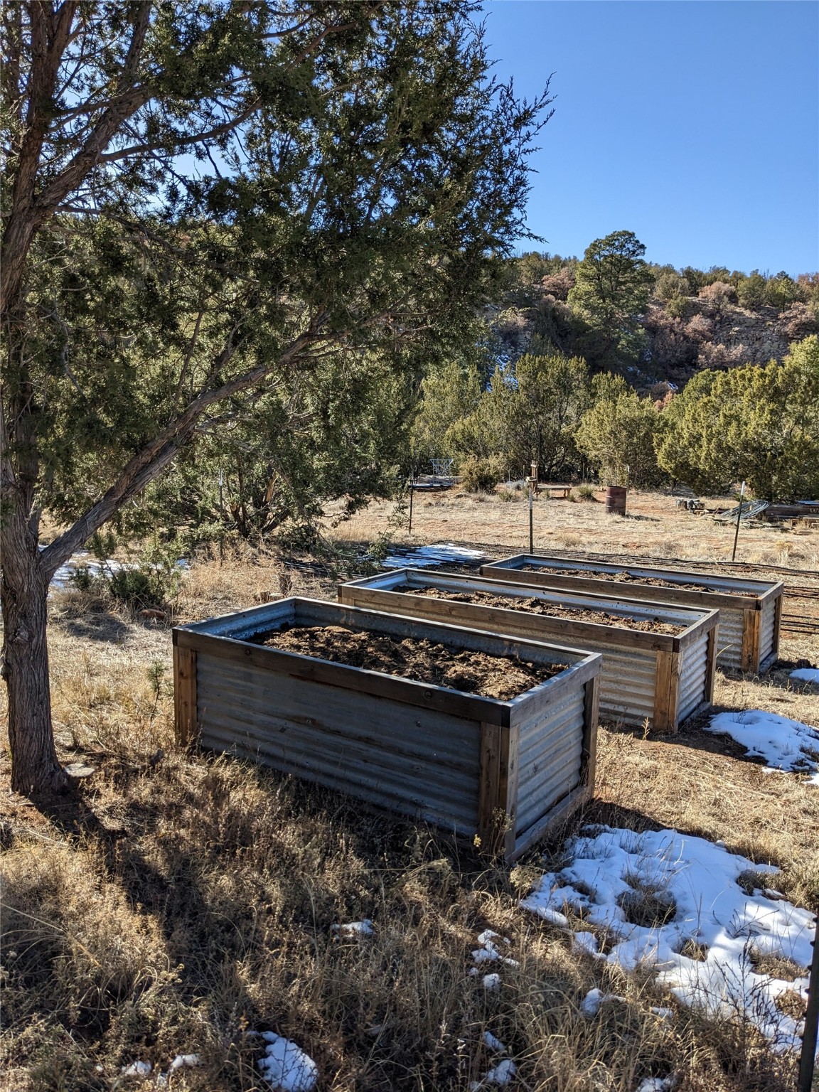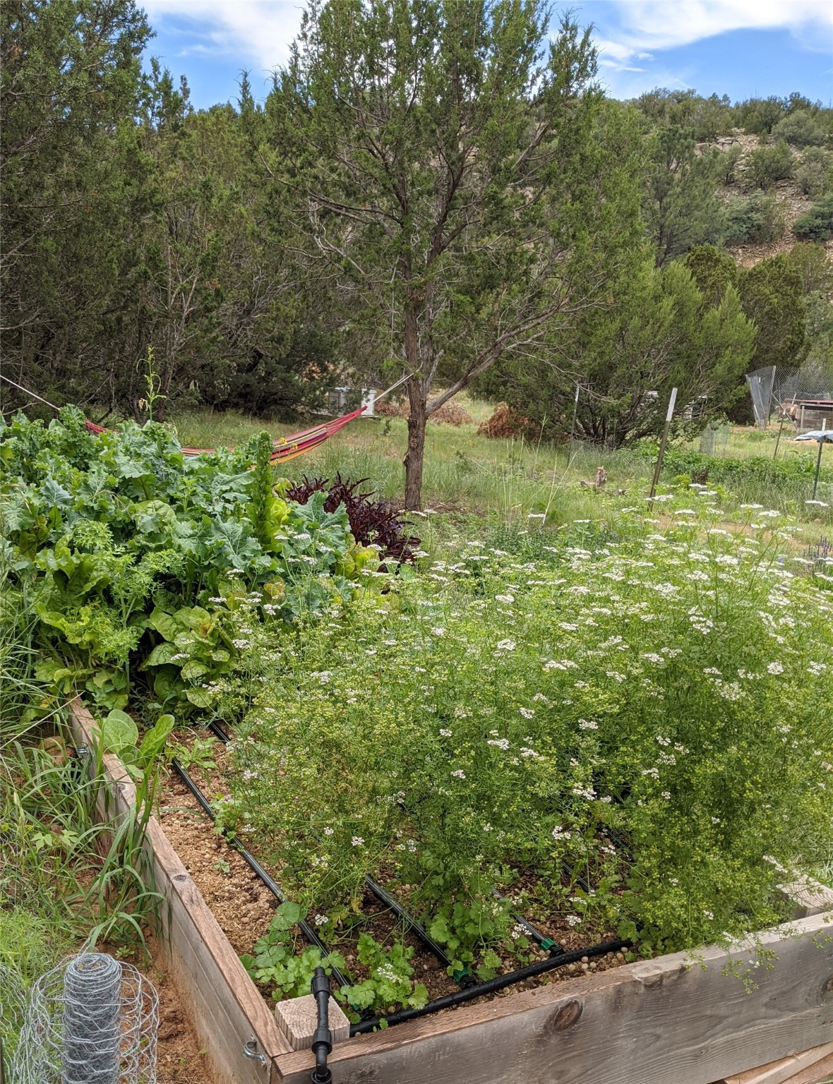 Retreat to your own private oasis...on this gorgeous 160-acre property near Villanueva with convenient newly installed, high-speed fiber-optic internet. A unique meeting of NM ecosystems - pion forest, fertile canyonlands and grasslands, scrub oak, juniper, and ponderosas. Wildlife abounds - bobcats, foxes, black bears, turkeys, deer, axolotl salamanders, and a huge variety of birds have all been spotted, often coming to the large seasonal arroyo to get water. Established small perennials include currants, quince, jujubes, apples, pomegranates, cherries, horseradish, rhubarb, comfrey, horehound, spearmint, lavender, yarrow, and other herbs. Put your study of permaculture into action with productive garden beds with amended soil and drip irrigation. Only organic and non-GMO enrichments and seeds used. The thoughtfully designed 300 sq. ft. cottage has all the modern conveniences, equipped with a fully-functioning kitchen, bathroom with artisan plastered Milestone shower, laundry area, and loft.Property has a private well and septic. It is connected to the power grid, but has a transfer switch for generator/alternative energy backup. There is an RV hookup site (water, electric, and septic connected). It has a heated bunk house, a teepee (that could be used as a hipcamp, but is currently used as a space for zoom meetings), and a chicken mansion with nicely fenced run.Heed the call and come back-to-the-land!
