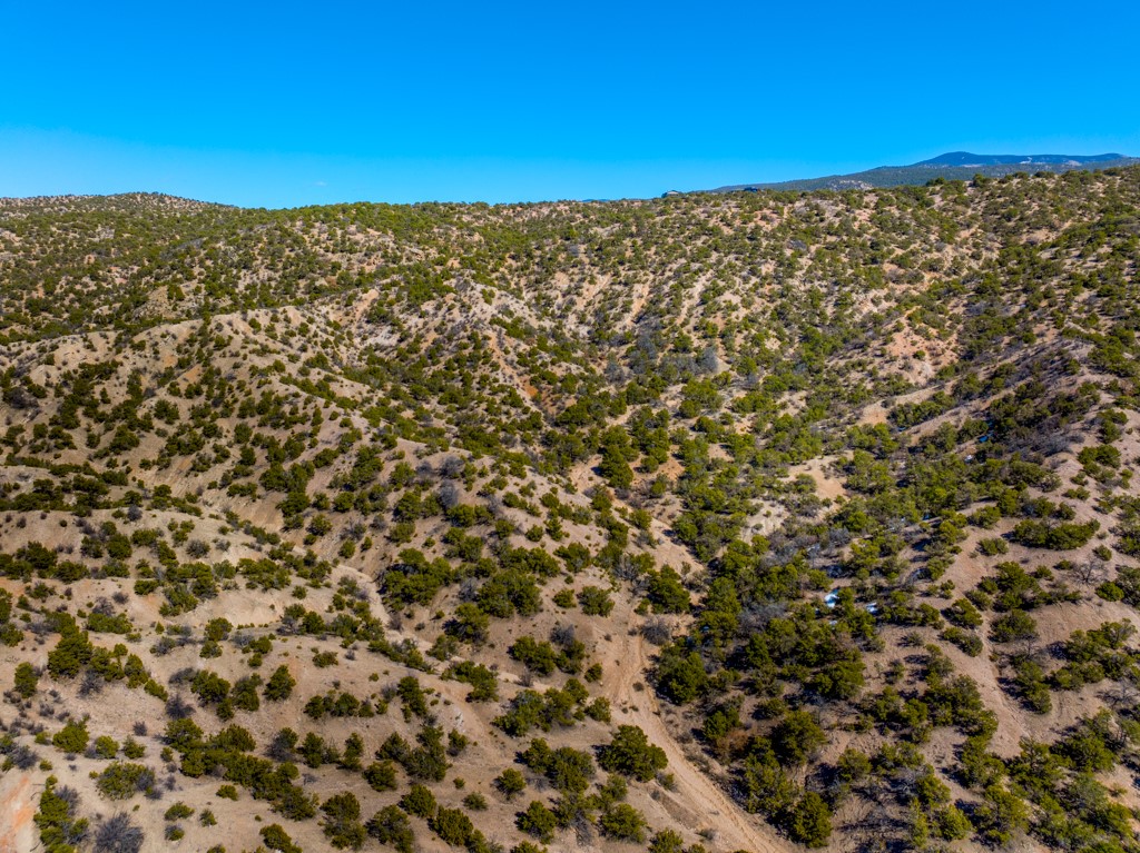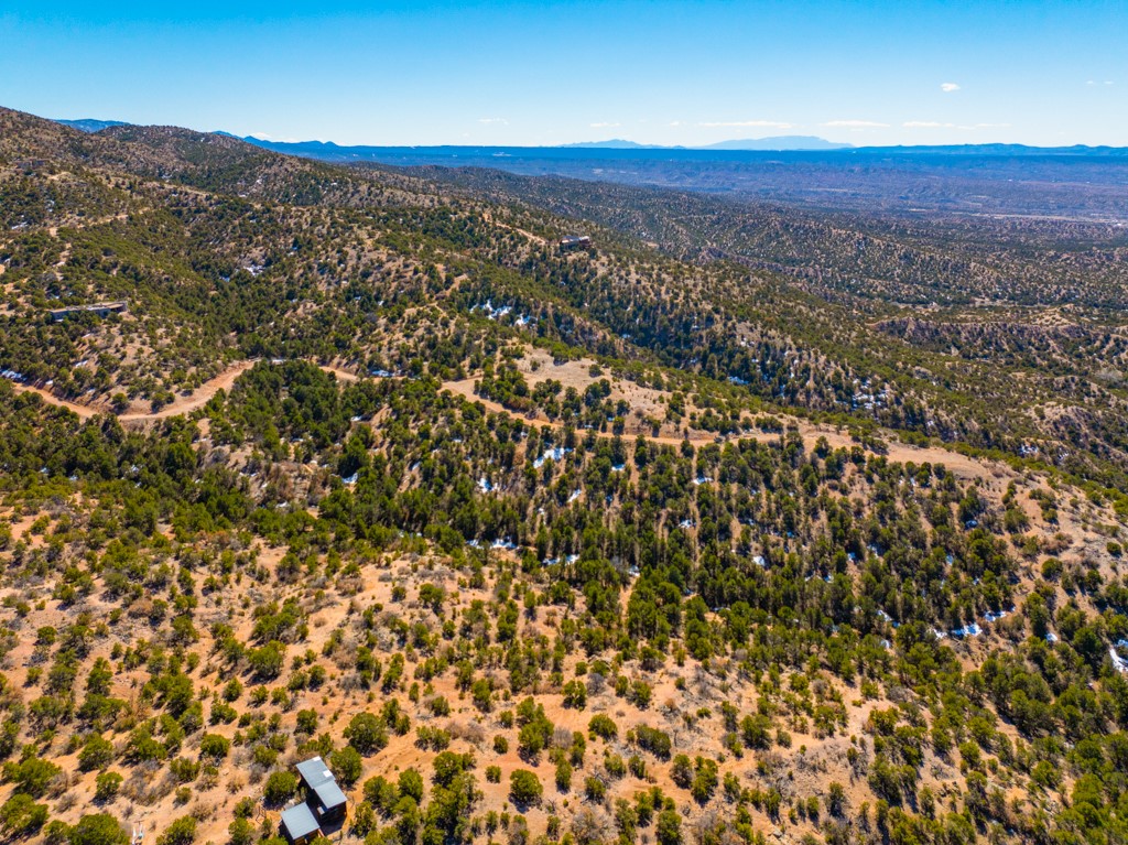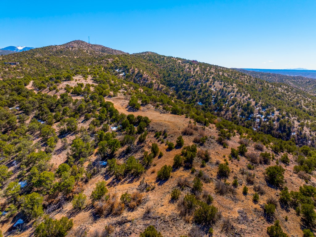 New lower price! The perfect spot for a private sanctuary, these three elevated lots totaling 53 acre are hidden in a canyon above Nambe, on a west facing slope of the Sangre de Cristo Mountains. In an enclave of 18 privately held lots surrounded on all sides by Forest Service land, these lots are bounded by Forest Service land on two sides. Experience amazing sunsets, incredible western views of the Jemez Mountains and the Rio Grande Valley, and intimate glimpses of the high peaks of the Sangres. Lots have two leveled building sites, electrical transformers, two shared wells, and established driveways/roads to building sites. Behind two gates for maximum privacy. Well maintained county roads bring you to the first gate, property is 29 miles from the plaza. Make an appointment to see today.