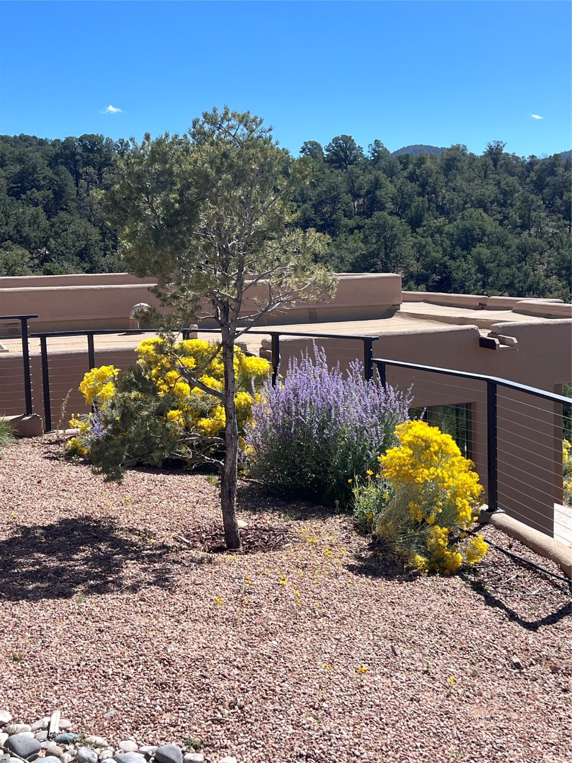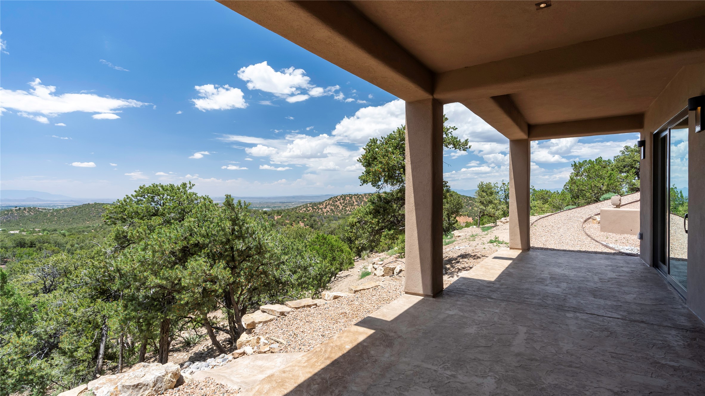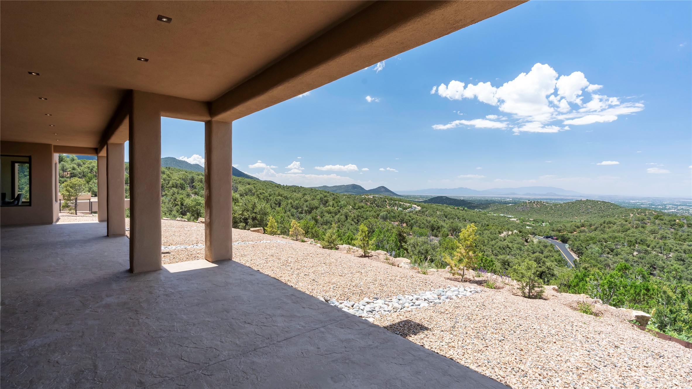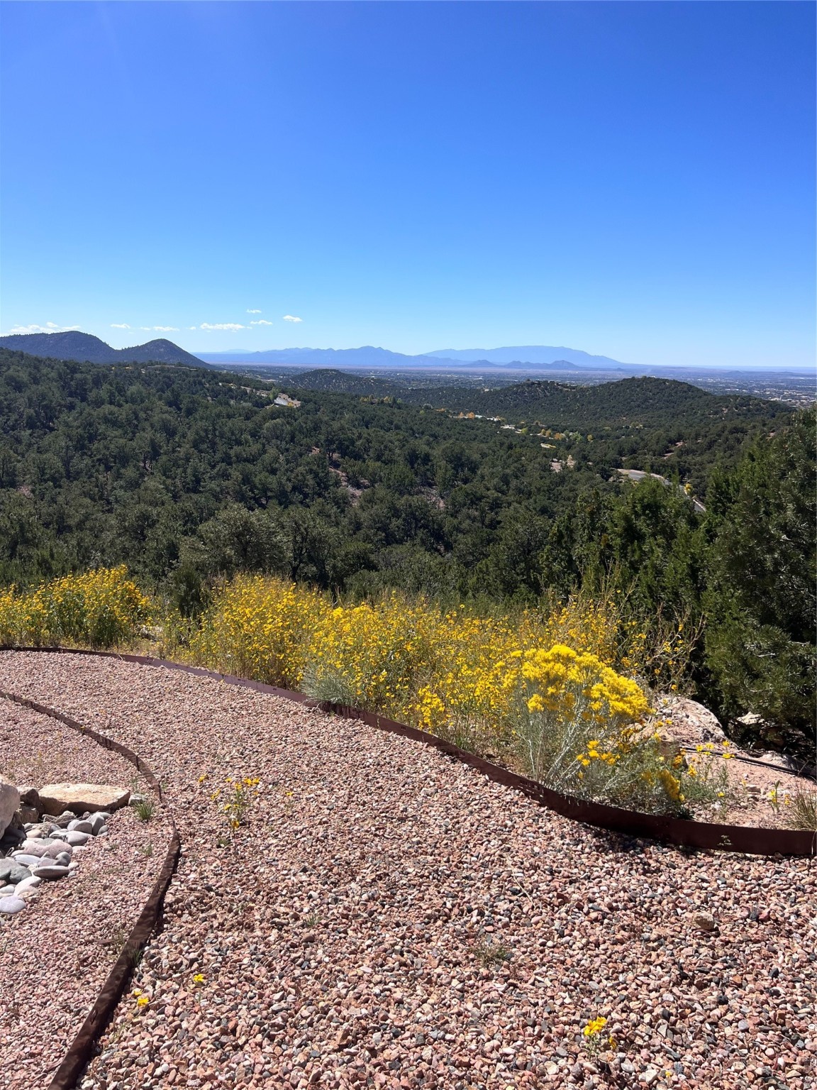 Mountain Living with Breathtaking Views! Discover the perfect blend of luxury and nature in the highly sought-after gated High Summit subdivision. This exceptional property features two contemporary, independent homes perched on a sprawling 2.8 acre lot, offering unparalleled views and tranquility. Prime Location: Just minutes from Santa Fe Plaza, Ski Santa Fe, and scenic hiking and biking trails right outside your door. Main House: 2,461 sq. ft. 2 bedrooms, 2 full baths, an office, and an attached 2-car garage. Guest House: 1,564 sq. ft.2 bedrooms, 2 full baths. Both homes are thoughtfully designed on a single level with no interior steps, offering effortless accessibility. The open-concept layouts boast high-end finishes, including marble and travertine bathrooms, solid wood floors, 8-foot walnut doors, Pella windows, and radiant heating throughout. Each home also features spacious walk-in closets, ductless AC, and expansive covered patios, perfect for outdoor dining or entertaining while soaking in the stunning sunsets. The newly added heated-paved driveway ensures convenience year-round, while the professional landscaping and custom stonework with drip irrigation system enhance the property's natural beauty. Why Choose This Property? Enjoy the serenity of mountain living without sacrificing proximity to Santa Fe's vibrant cultural scene. With world-class restaurants, art galleries, shopping, and entertainment just minutes away, this property offers the ultimate lifestyle for those who cherish both peace and excitement. Don't miss your chance to own this extraordinary retreat!