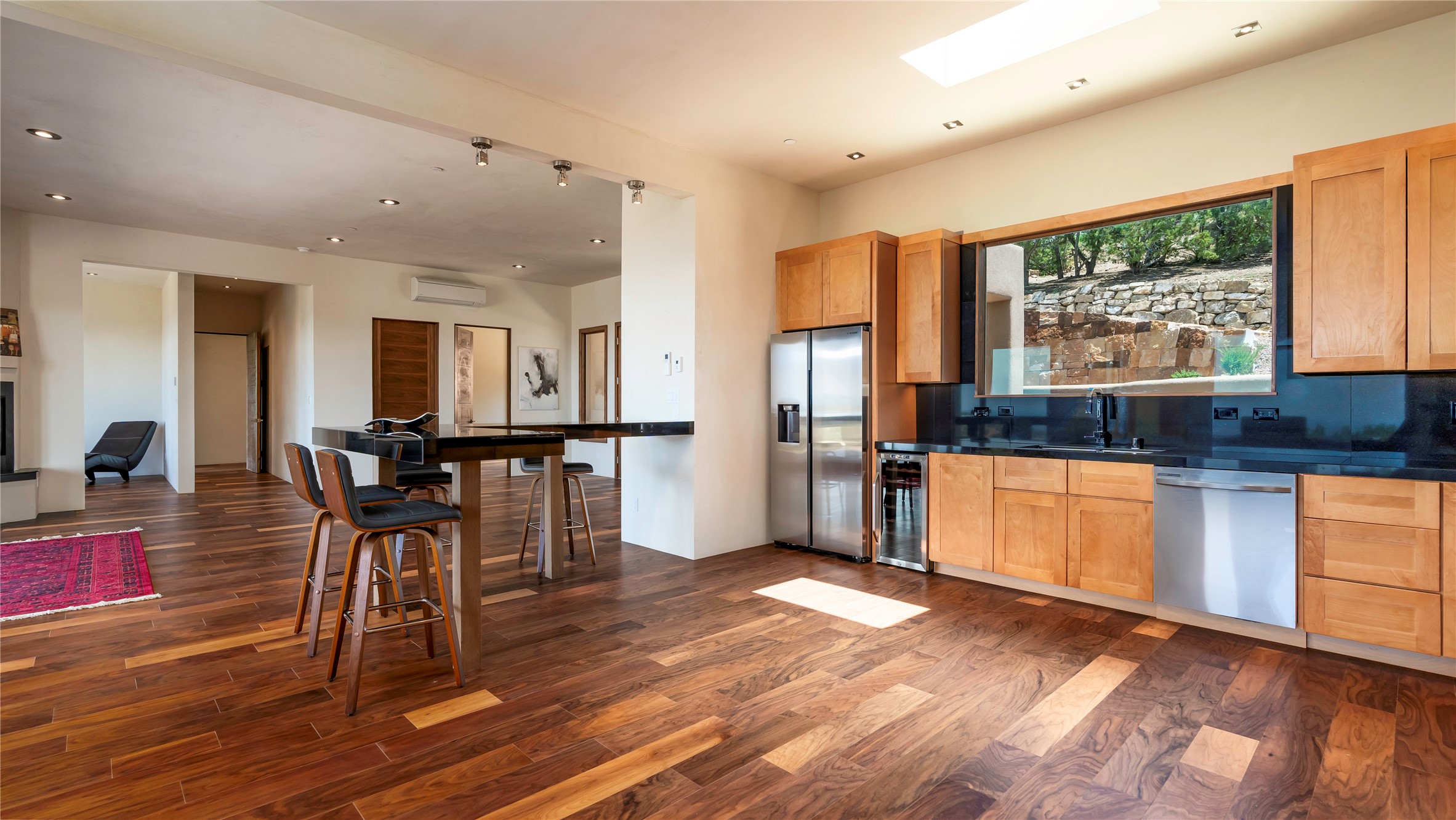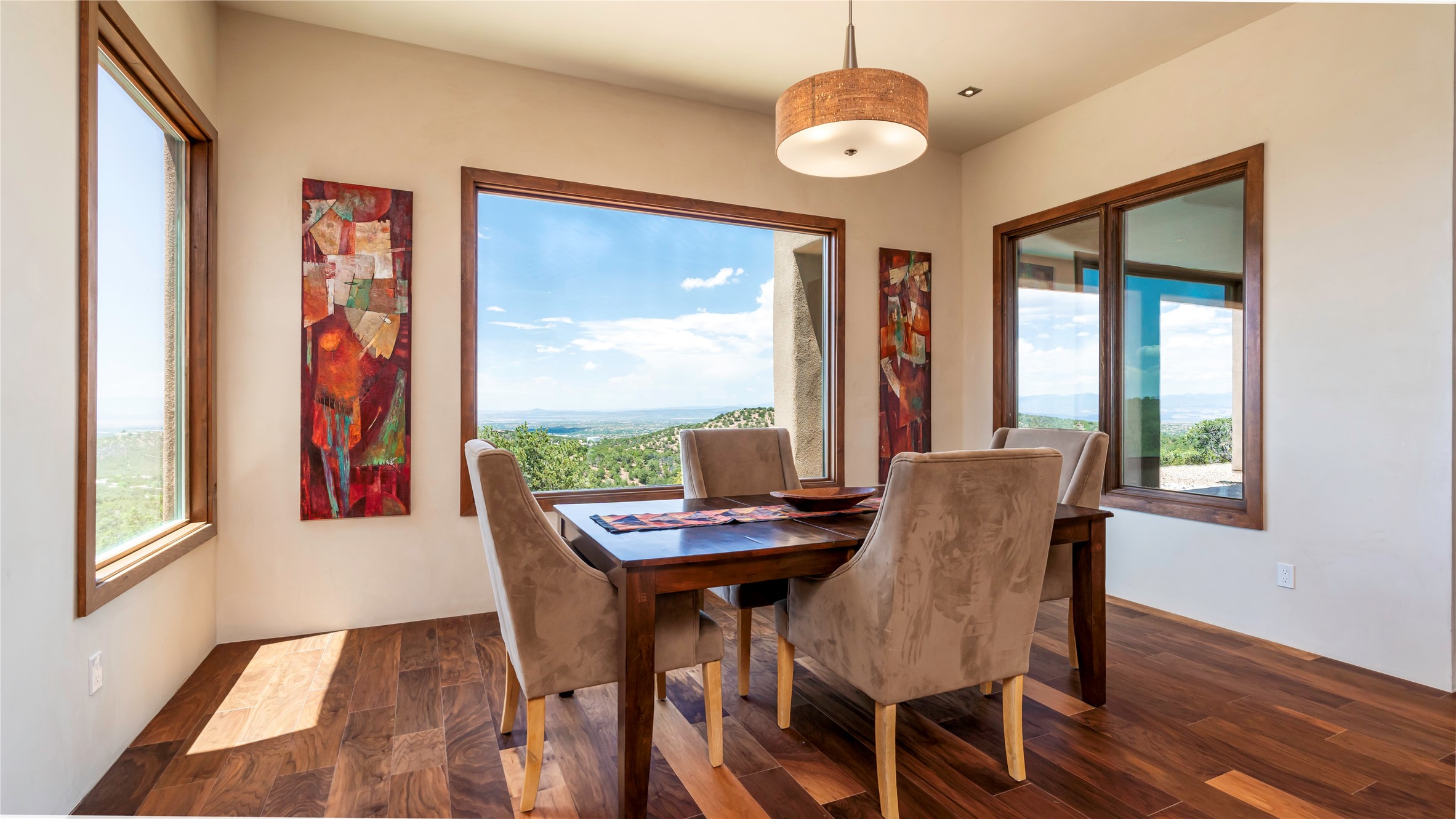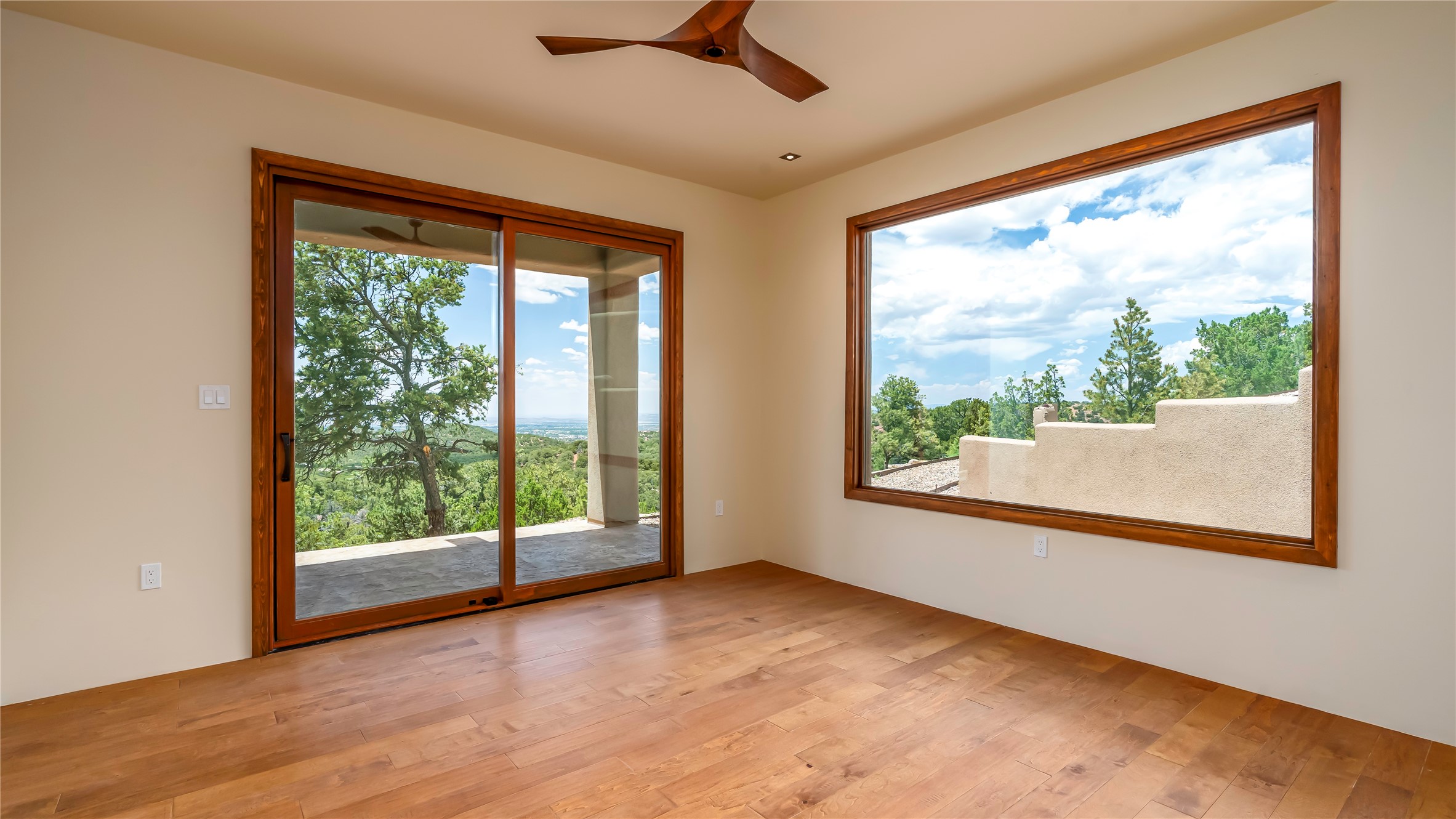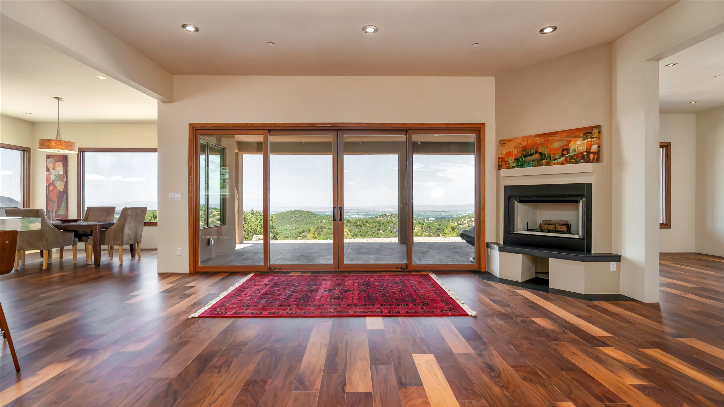 Mountain Living with Breathtaking Views! Discover the perfect blend of luxury and nature in the highly sought-after gated High Summit subdivision. This exceptional property features two contemporary, independent homes perched on a sprawling 2.8 acre lot, offering unparalleled views and tranquility. Prime Location: Just minutes from Santa Fe Plaza, Ski Santa Fe, and scenic hiking and biking trails right outside your door. Main House: 2,461 sq. ft. 2 bedrooms, 2 full baths, an office, and an attached 2-car garage. Guest House: 1,564 sq. ft.2 bedrooms, 2 full baths. Both homes are thoughtfully designed on a single level with no interior steps, offering effortless accessibility. The open-concept layouts boast high-end finishes, including marble and travertine bathrooms, solid wood floors, 8-foot walnut doors, Pella windows, and radiant heating throughout. Each home also features spacious walk-in closets, ductless AC, and expansive covered patios, perfect for outdoor dining or entertaining while soaking in the stunning sunsets. The newly added heated-paved driveway ensures convenience year-round, while the professional landscaping and custom stonework with drip irrigation system enhance the property's natural beauty. Why Choose This Property? Enjoy the serenity of mountain living without sacrificing proximity to Santa Fe's vibrant cultural scene. With world-class restaurants, art galleries, shopping, and entertainment just minutes away, this property offers the ultimate lifestyle for those who cherish both peace and excitement. Don't miss your chance to own this extraordinary retreat!