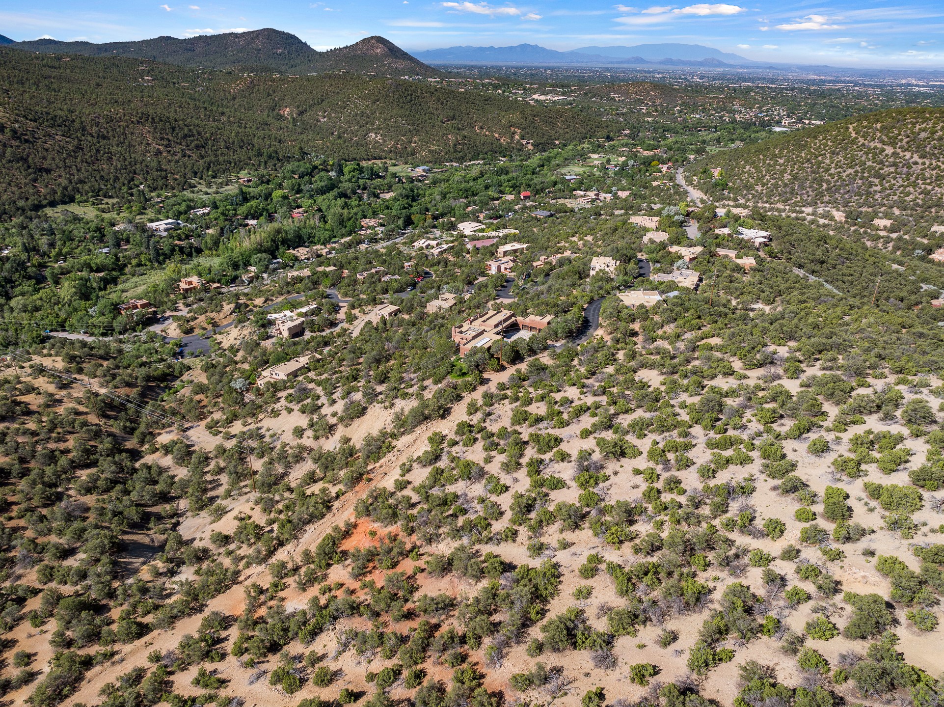 This 2.34-acre lot is located in a private gated community in the foothills of downtown Santa Fe, NM. Beautiful mountain views, popular hiking trails, The Nature Conservancy, The Audubon Center, the old reservoir, and the Santa Fe River are all within walking distance. Local parks, galleries, shopping, museums, and dining are minutes away. The property is the last lot of the subdivision on top of the hill. It faces south, east, and west on a southern slope, with fantastic southern exposure. City water and electric are at the lot line. City sewer and natural gas are also available. Engineering plans have been completed and meet all Escarpment District requirements. The views are spectacular and the location is stellar!