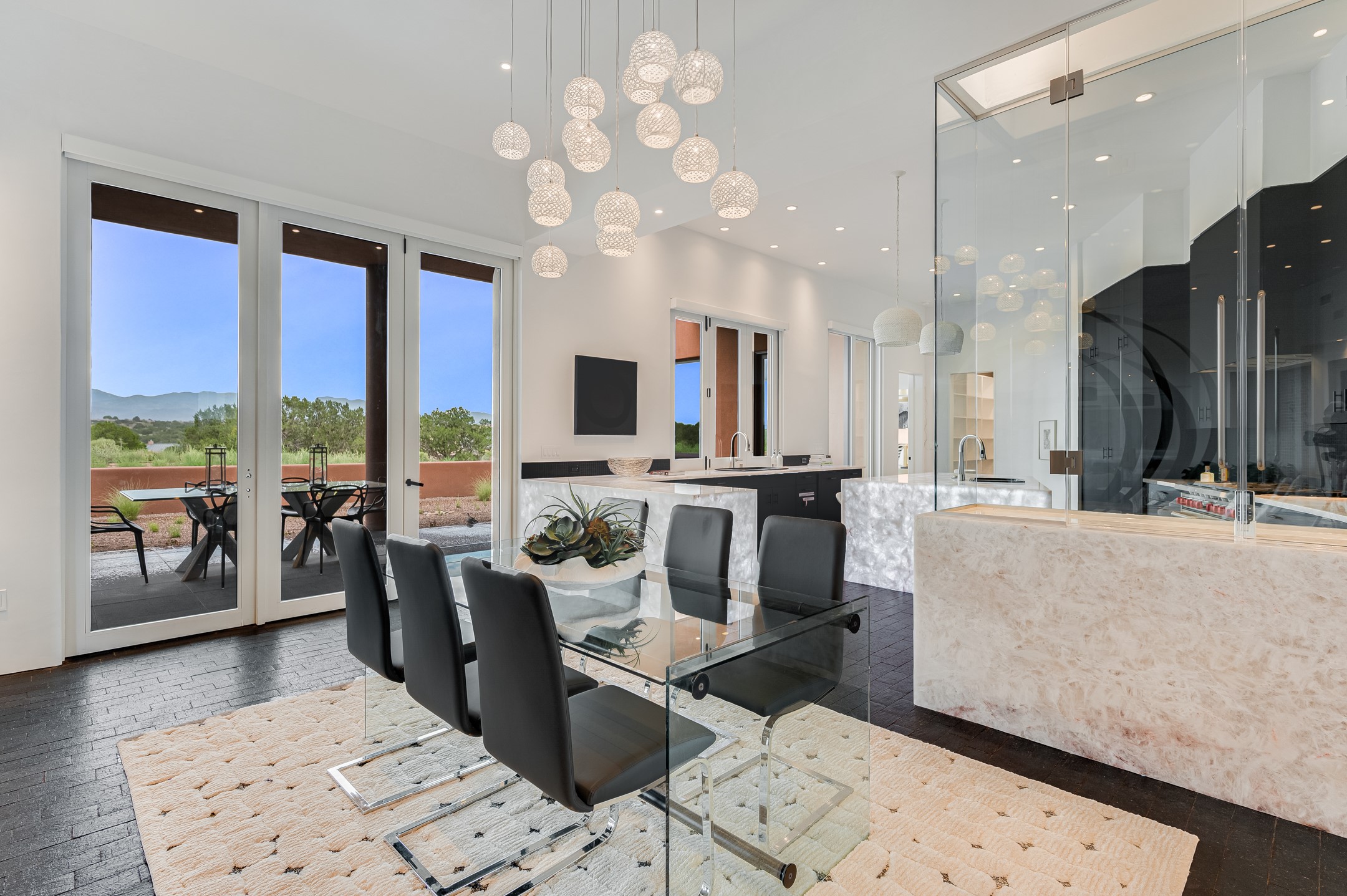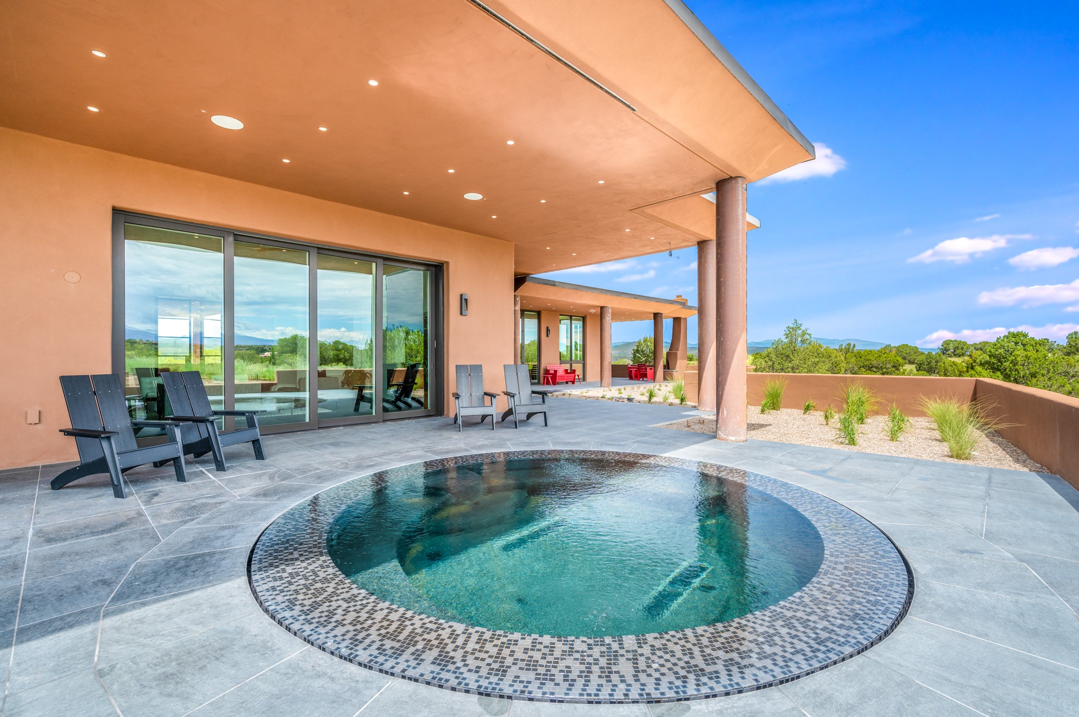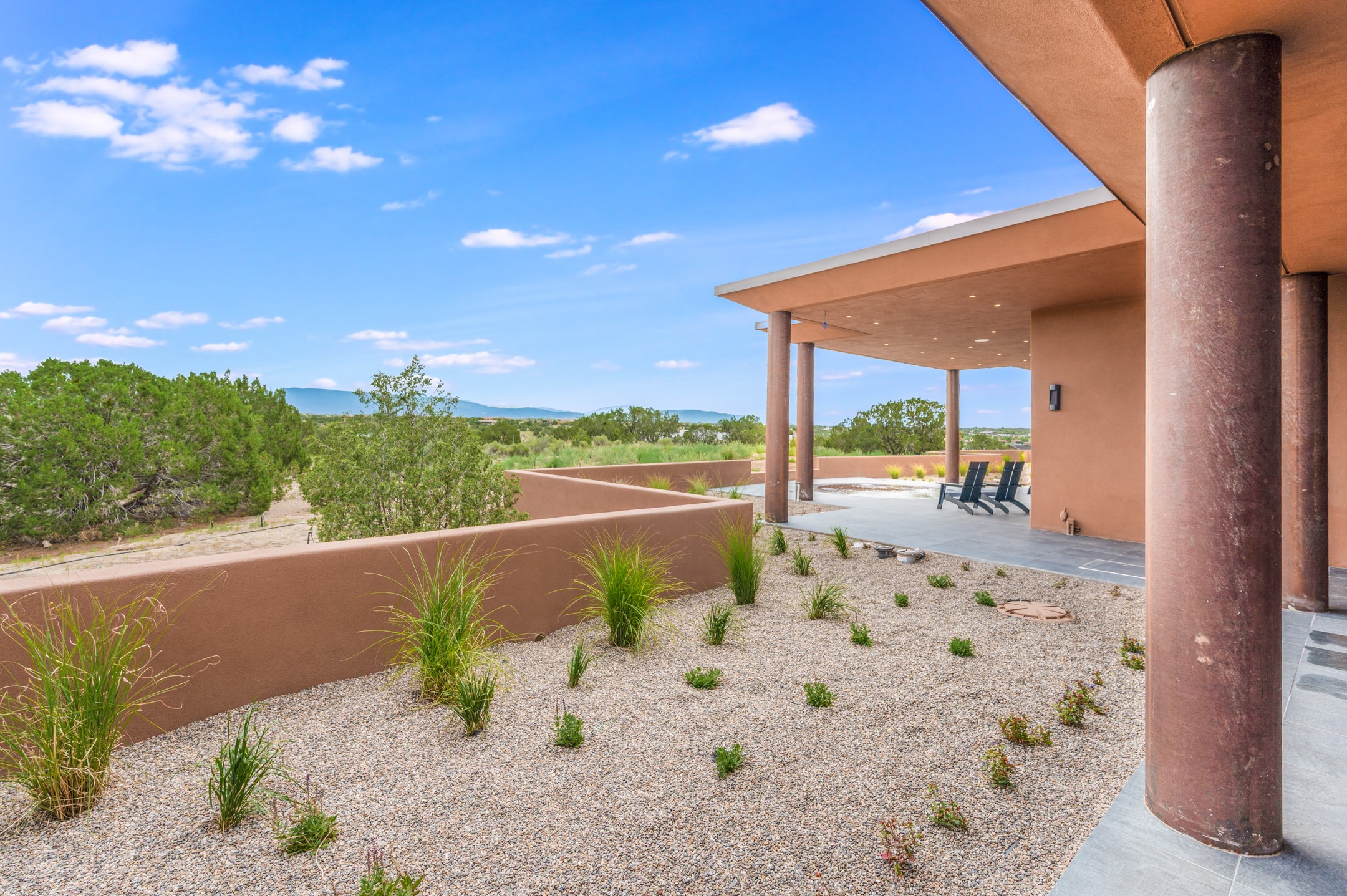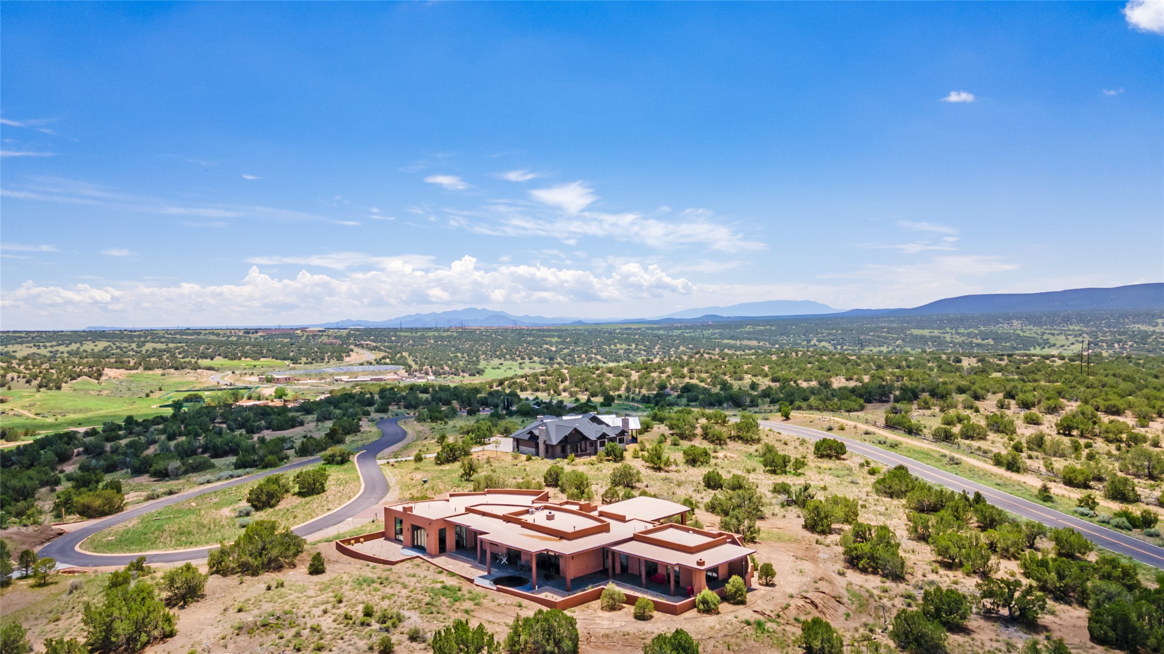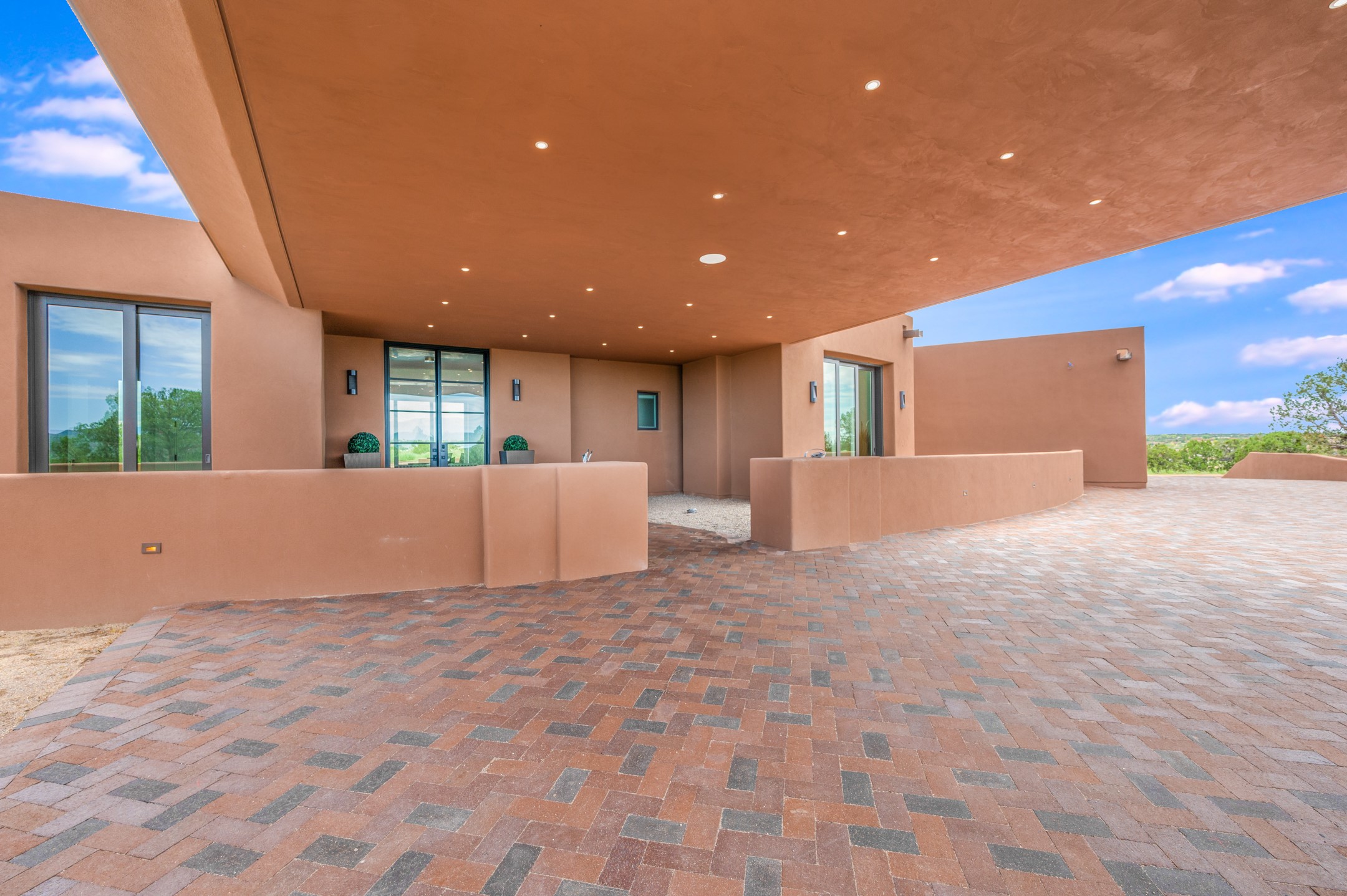 Price Improvement! Casa Tranquila an exquisite Contemporary Pueblo built by Native Son Builders in the gated community of Las Campanas. With over 4200 square feet of indoor living space paired with over 1600 square feet of perfect outdoor living including covered portals, kiva fireplace and a 12-14 person infinity spa. The floor plan generously flows from room to room with unobstructed views of the Sangre de Cristo mountains at every turn. Entertain with ease in the open yet intimate great room with a custom gas fireplace and finishes that elevate the mood for all to enjoy. Specialty brick floors and expansive motorized sliding walls seamlessly connect for outdoor/indoor living. The impressive porte-cochere welcomes your guests with grandeur. Attached casita provides privacy and flexibility for guests with a lovely kitchenette, living space and private portal with Kiva fireplace. Interior finishes have been carefully curated by a design team that blends form and function and walls that accommodate the most discerning art collector. A bespoke kitchen to delight any chef, accompanied with a custom refrigerated wine rack, Quartzite back lit countertops, Wolf appliances, Subzero refrigerator/freezer, two Asko dishwashers, plus a walk in pantry. A large mud room-laundry area is off the 3 car garage featuring elegant Envy garage doors with glass panels. This stunning home adds ease and comfort to your day to day living. Las Campanas offers many amenities: 2 Jack Nicklaus golf courses, clubhouse, restaurants, indoor/outdoor pools, spa, fitness center, racquet sports, equestrian center and 24 hour security plus EMT services. Membership is optional and can be purchased separately. Don't miss seeing this Santa Fe modern masterpiece!