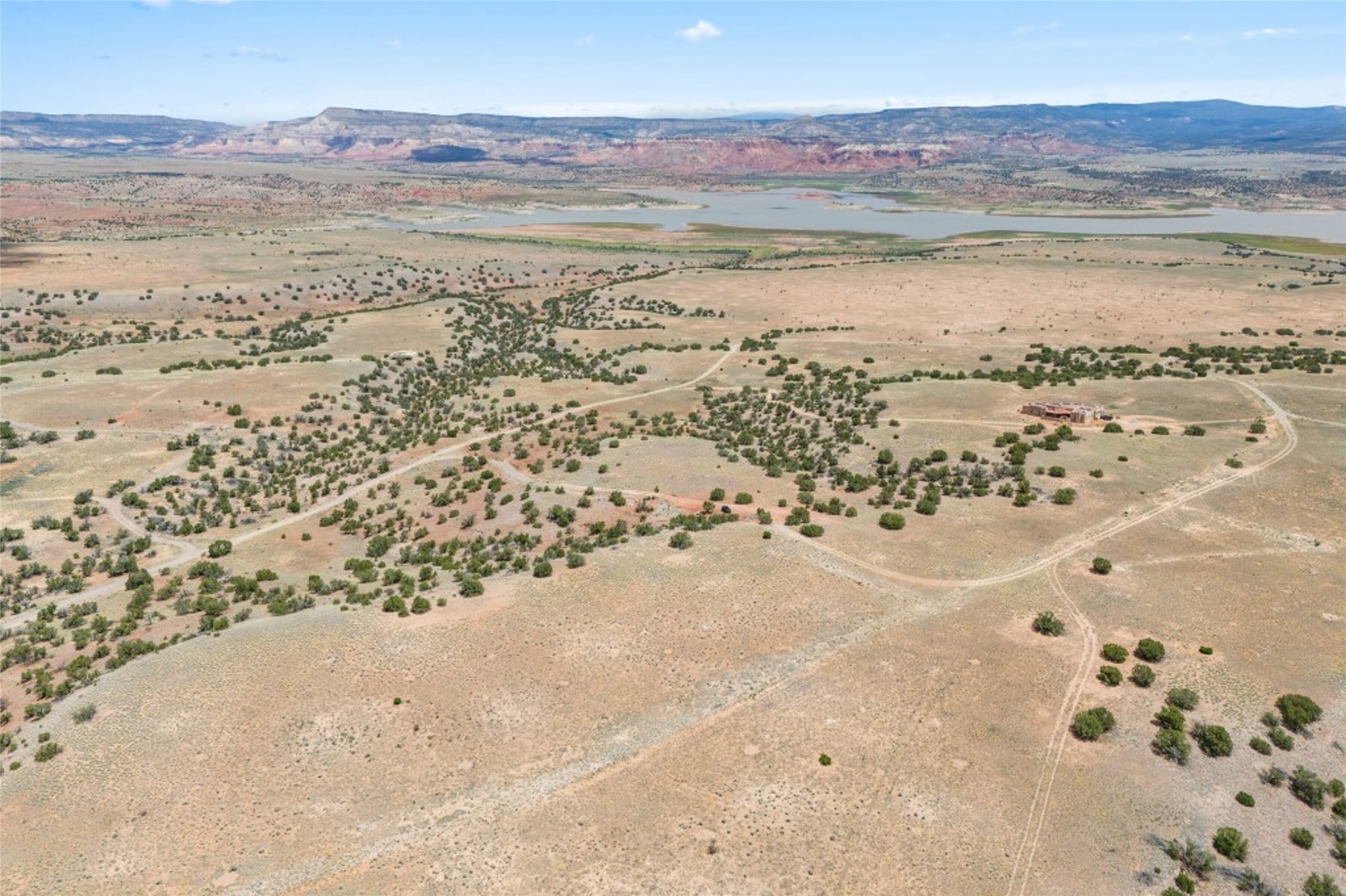 Spectacular 20.95 acre property to enjoy or build your desert retreat. Impressive views of Abiquiu Lake, Rio Chama, Cerro Pedernal, Georgia O'Keefe's famous Ghost Ranch, and the Red Cliffs. This parcel is located in a gated community with an HOA, consisting of large lots, beautiful homes, and access to a private boat ramp. This lot has electricity at the property and accessible roads. The building site is large enough to accommodate a main home and a casita or studio. Savor the feelings of both privacy and a sense of community in the Land of Enchantment. Abiquiu Lake is a quiet and peaceful lake, 5,200 acres and twelve miles long. Abiquiu is located 1 hour northwest of Santa Fe and 1.5 hours southwest of Taos. The lot is across the lake from Ghost Ranch, where many popular movies have been filmed.