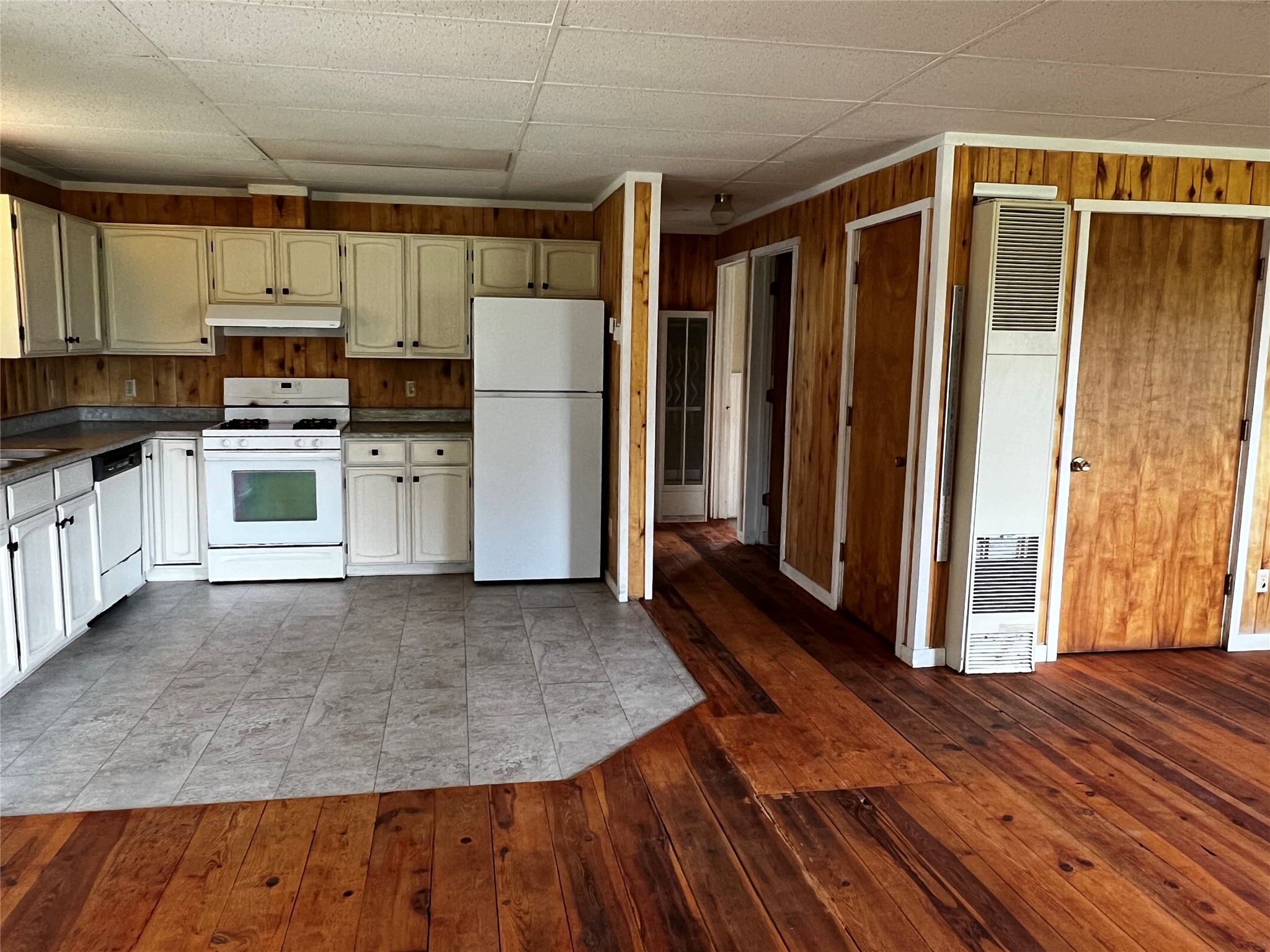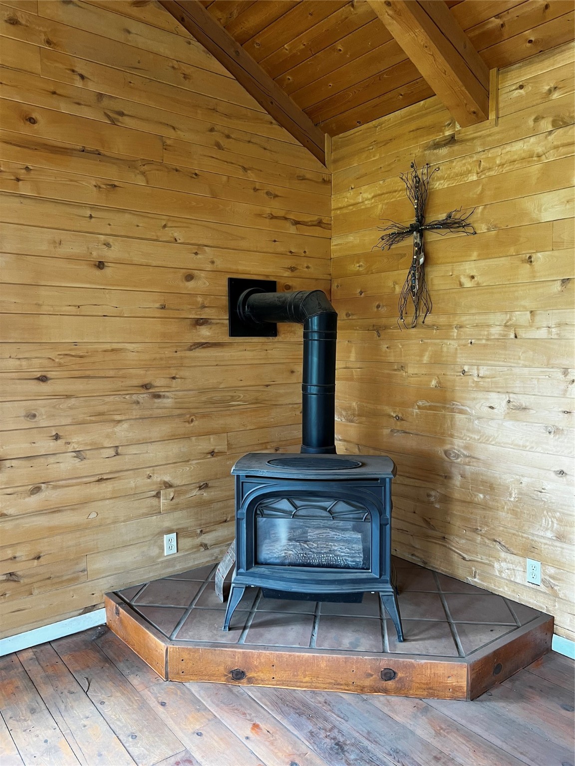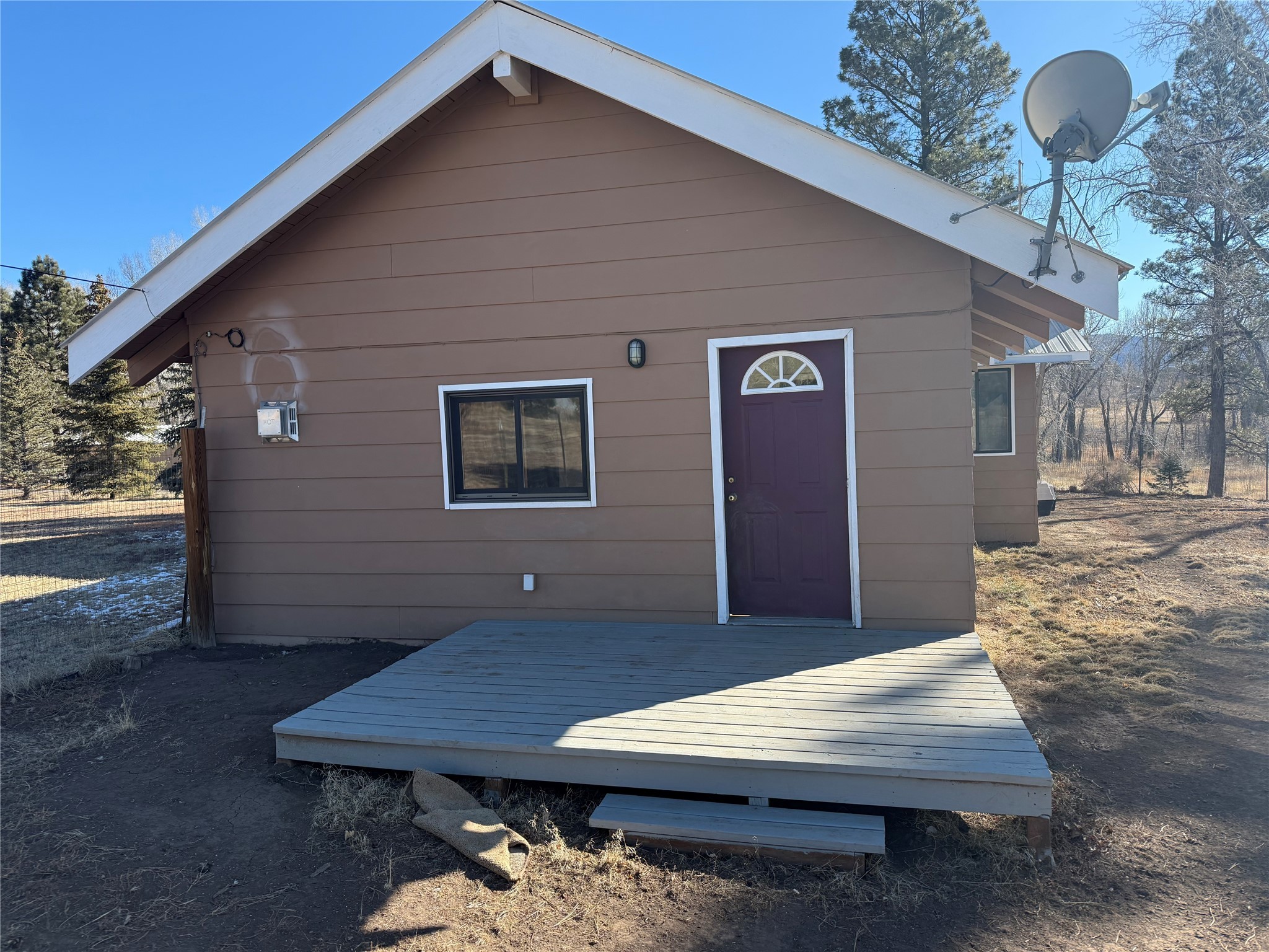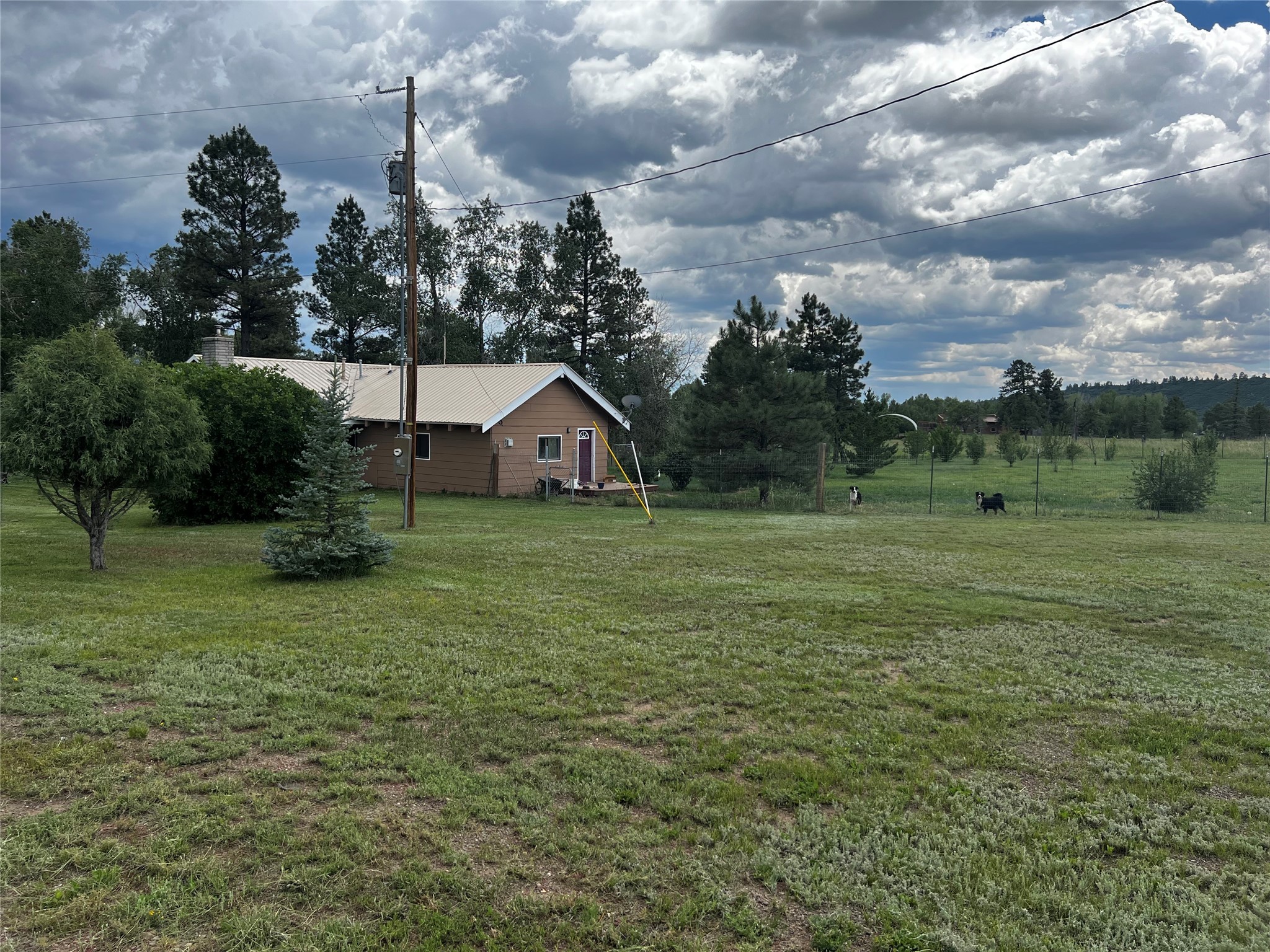 Come see this beautiful and spacious mountain property on a 6.72 acre lot with year round access nestled in the Rocky Mountains at 7,800 ft. elevation. This 1500 +/- square foot home has two bedrooms and two full bathrooms. The nicely arranged kitchen with plenty of hard-top counter space and wood cabinets includes a dishwasher, Whirlpool natural gas range and stove with new vent, and a new Hisense refrigerator with ice maker. It also has new tile floors. The open floor plan runs into the first living room with pine wood floors. This comfortable room has a wood fire place with blowers and there is a natural gas wall heater, as well. The second gas wall furnace is in the hallway. The two bedrooms have new vinyl floors. Each bathroom has a washer and dryer hookup. The front bathroom has new vinyl flooring and the back bathroom has ceramic tile and a clawfoot bathtub. The Great Room can double as a third bedroom or as a second living area. This sizeable room has pine wood for the floors, walls, and vaulted ceiling. There is a free standing fire place that is a gas log heater, a ceiling fan, and picture windows that offer wonderful natural light to this Great Room. It also features a back door that leads to patio seating on an approximately 20 ft. by 12 ft. deck. Owner has plans to resurface this back deck. From the back deck, you see a large fenced yard with a Northern New Mexican variety of trees; including aspen, blue spruce, and pines. There is an orchard in a deer proof fenced area with more than 35 fruit trees; including pear, peach, apple, and apricot. This wide open property has a mixture of open grasslands, forest, and the Los Alamos Creek that flows through the bosque. There is an asphalt driveway leading from highway 84/64 to the house and garage/shop, providing convenient access. There is an acequia on the westward boundary that could be potential water rights if application was made through the OSE. The second structure is an 800 sq. ft. Butler Metal building to be used as a one car garage or as a shop. There is a bathroom and hot water heater in this building that the current owner has not used. The third structure is a roomy shed with space for an office, studio, or extra storage.There is an RV hookup. The property has village water, public electric, and its own septic.