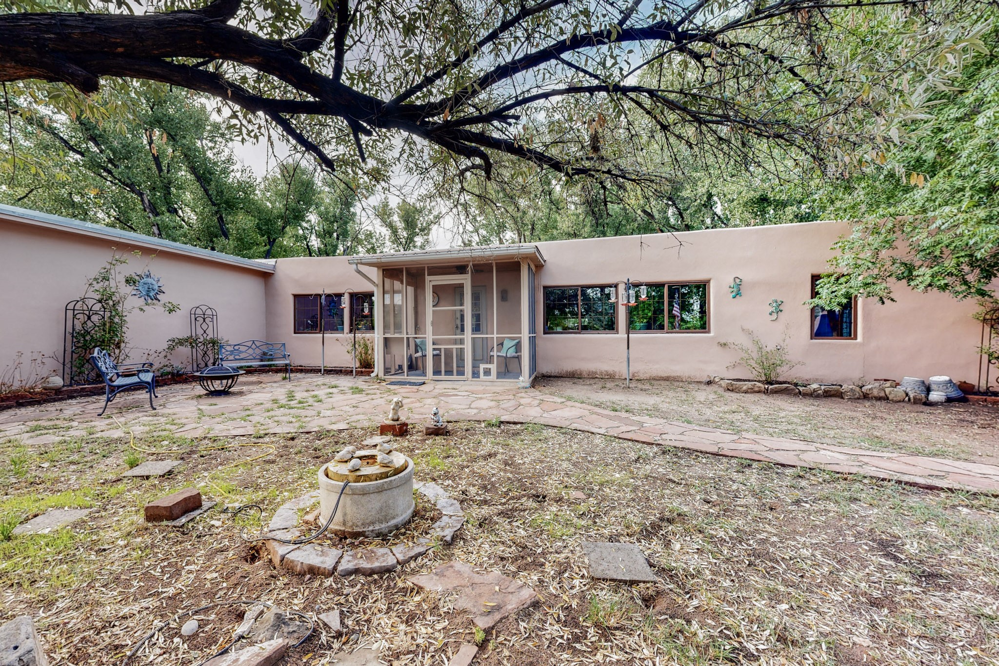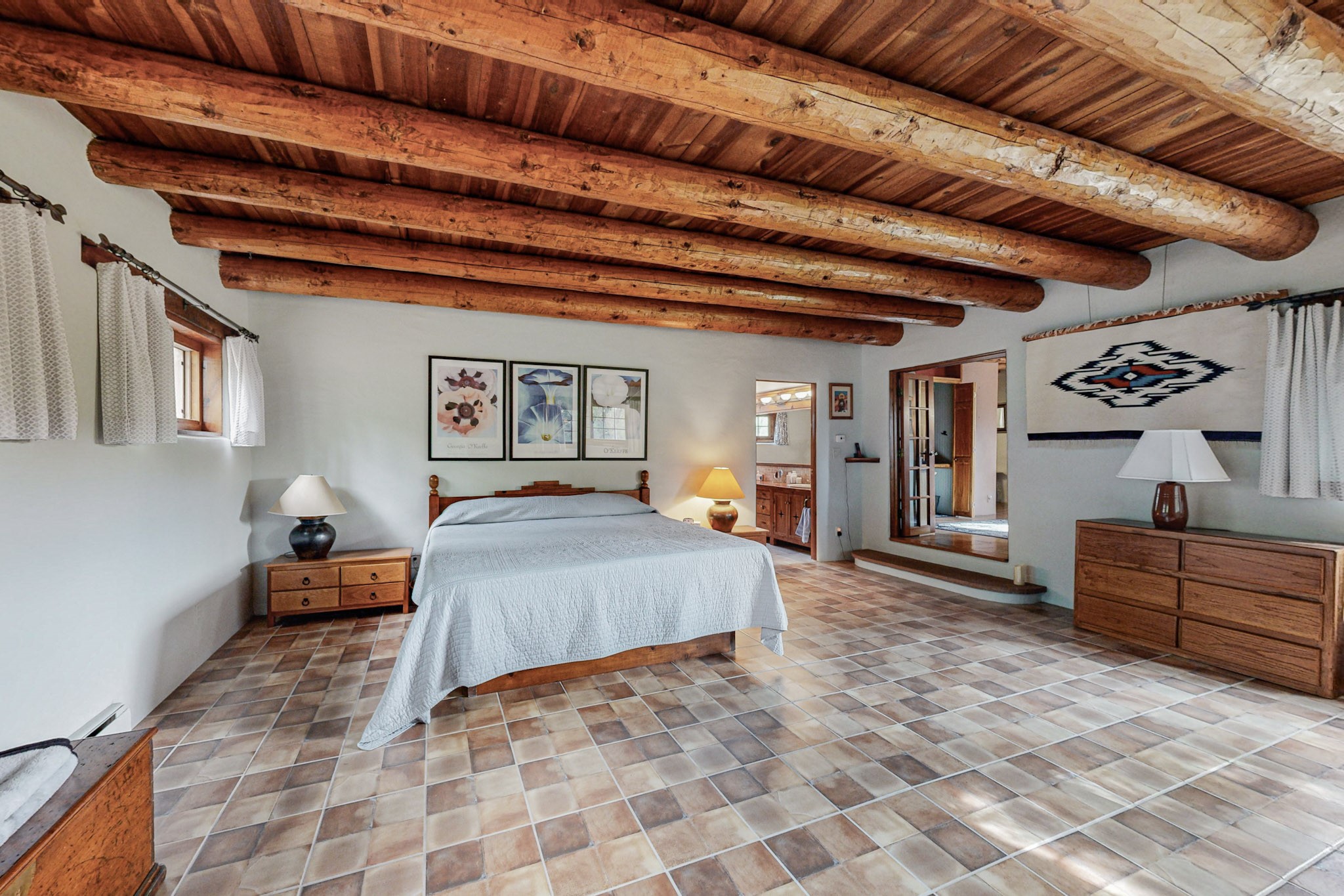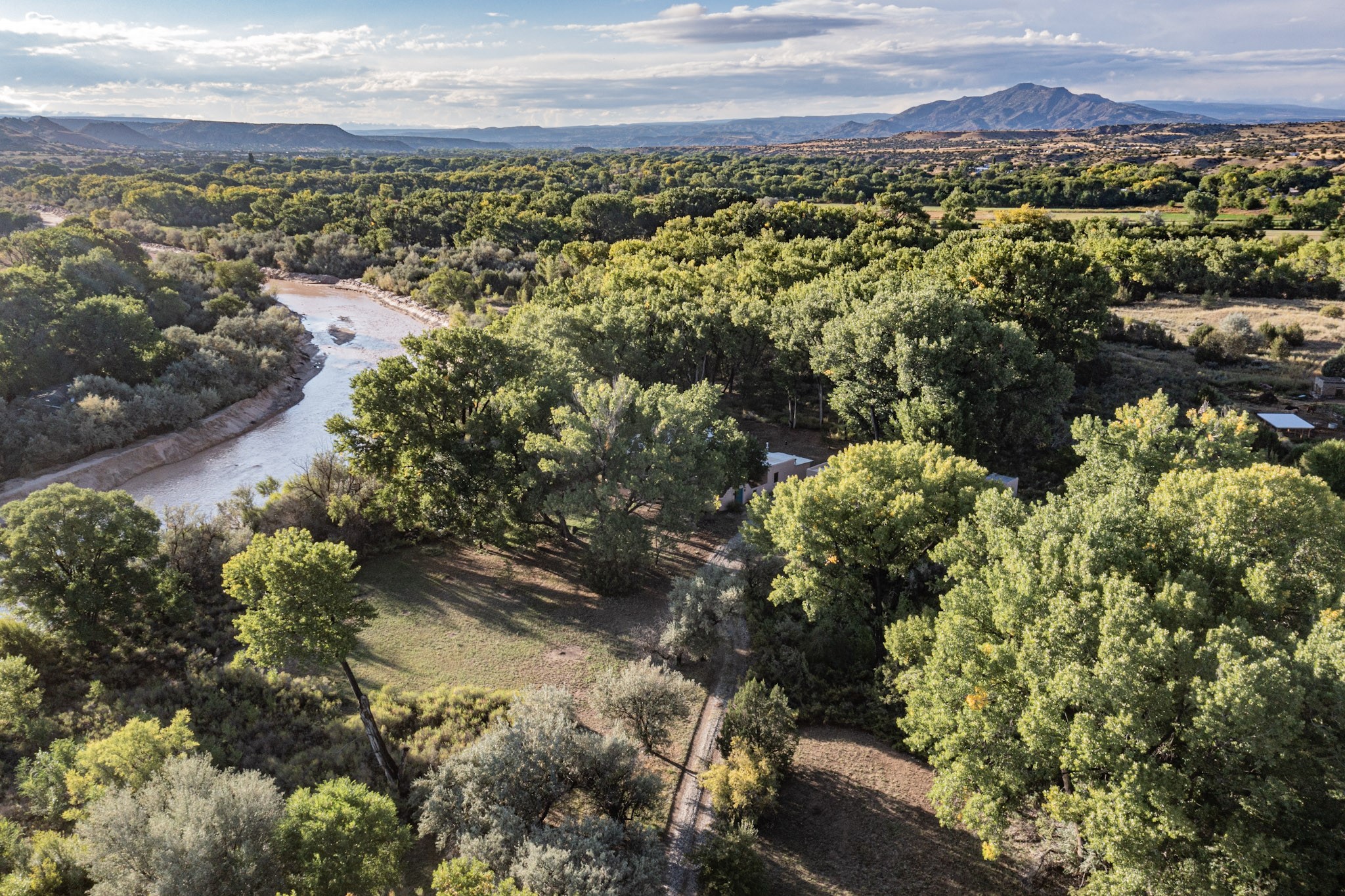 HUGE PRICE REDUCTION. A beautiful 2,588 square foot adobe home, surrounded by trees, shrubs, and wild flowers is a home and land that are rarely found together. As one approaches the house, there is a walled courtyard, with a flagstone sidewalk and flower beds, ready to make yours. Upon entering the home, one is welcomed into the living-room/ family room, by the view of a kiva fireplace to the right, the beautiful ceilings, with the vigas, separated by wood planks, the beautiful bright and shiny wood floors, and then there are the double adobe walls that are visible as one looks at the windowsill that once showcased many plants. The initial part of the house has double adobe walls. This part of the home has the kitchen, dining area, family/living room and a 3/4 bath. The kitchen/dining area is a sight. The stainless steel refrigerator and freezer do stand separately. Having a full-size freezer in the kitchen is very convenient. The bedrooms and owner suite bathroom is large, and spacious. The beautiful kiva fireplace makes this en suit very cozy and inviting. A good sized office, craft room, study, whatever the new owner wants to make it, is between the two bedrooms. The second bedroom, spacious as it is, could easily be more than just a bedroom. There is a detached, two car garage and another separate building for storage. Although the Chama river does not run directly alongside the land, one can watch the river meander and listen to the water flow. Imagine what this beautiful running body of water has to offer, a chance to relax and listen to the splashing water, and observe the sky and grandeur of nature. Minutes away from Los Alamos, Espanola, Santa Fe, and Abiquiu, this just may be the home you had only dreamed of. Time to make your dream come true.