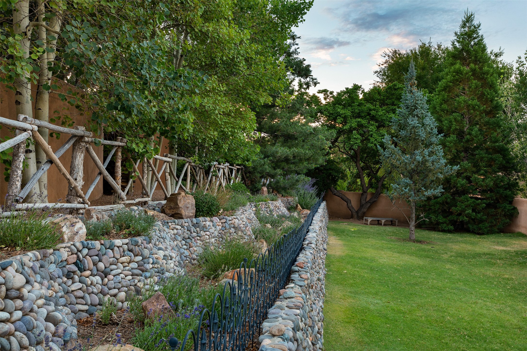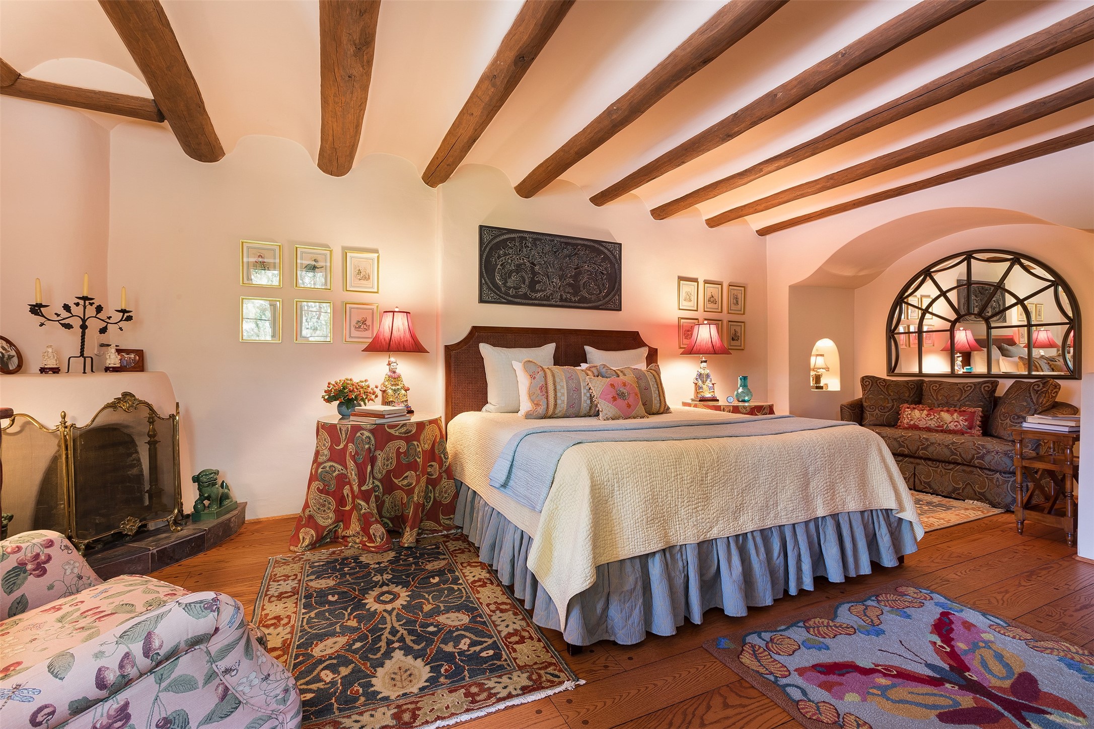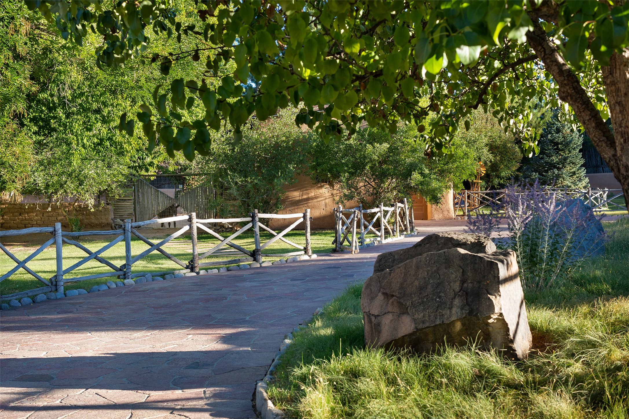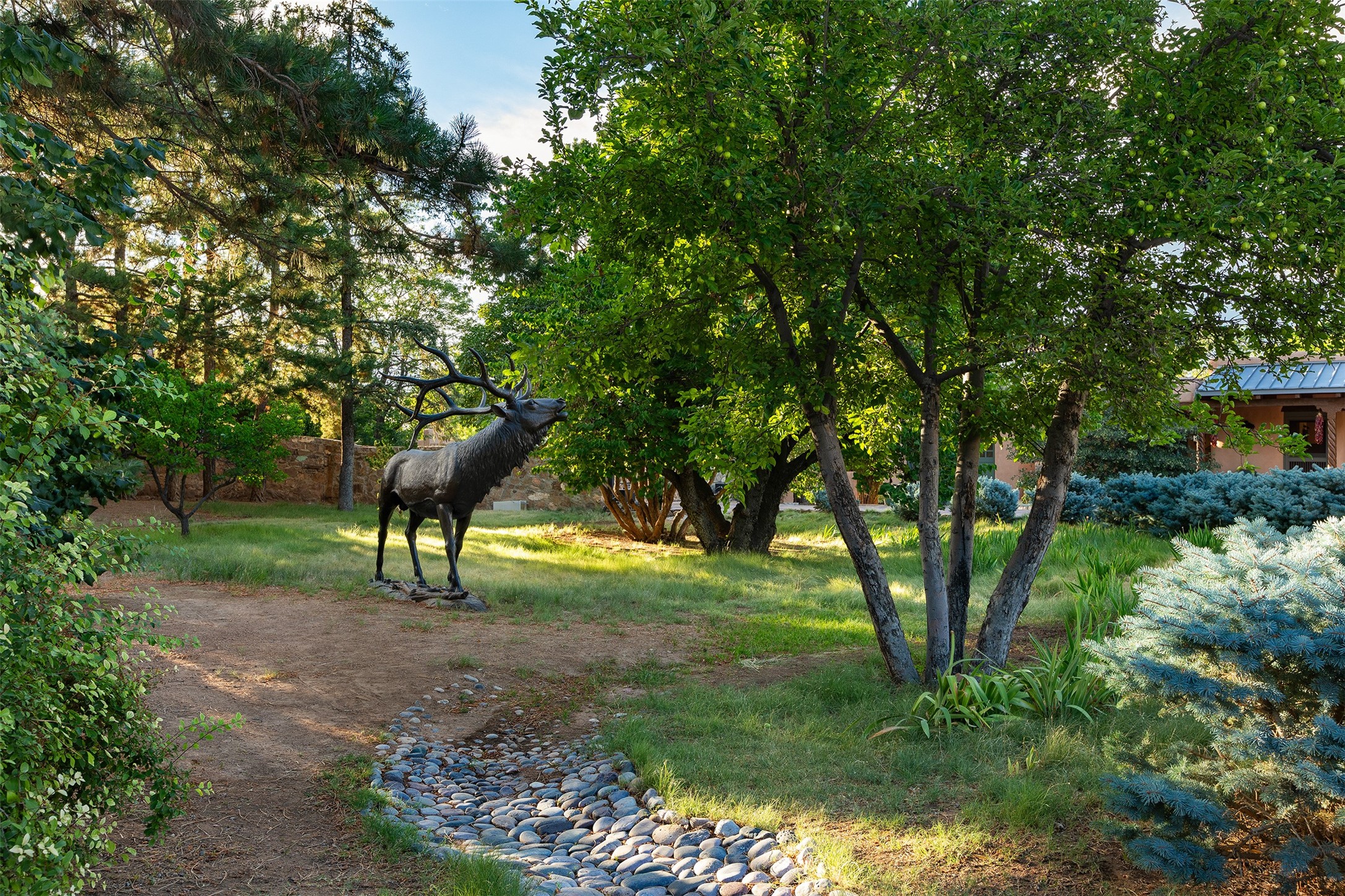 Historic Compound being offered for the first time in 40 years!Strolling up the historic Camino del Monte Sol in the heart of Santa Fe, you come upon the entrance of a quintessential example of sophisticated Santa Fe style, a historic versatile compound surrounded by magnificent grounds, trees, and stone walls. As you enter the gates and leave the world behind... you step back in time and are embraced by the immediately tranquil privacy of a secret oasis of gardens and meadows with views of the Sangre de Cristo Mountains. The multiple dwelling compound is the finest example of Pueblo style Spanish Colonial architecture in Santa Fe, built in 1918 and fully restored with original doors, windows, lintels, vigas, and extraordinary coved and carved ceilings, with spacious volume throughout. The serene portal with mature topiaries overlooks the elegant terrace and magical fountain. The charming gatehouse is a quiet, calm refuge enveloped in nature. The historic casitas are nestled between winding walkways, exploding with flowering gardens and a field of specimen trees. This unique estate was the epicenter of collaboration of Los Cinco Pintores and the Taos School Artists. Resting on 2.21 acres, the expansive estate is zoned R5, offering a multitude of exceptional development opportunities to elevate the property. It is, in every sense, incomparable.
