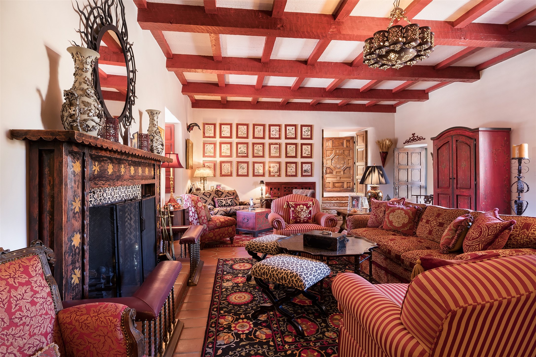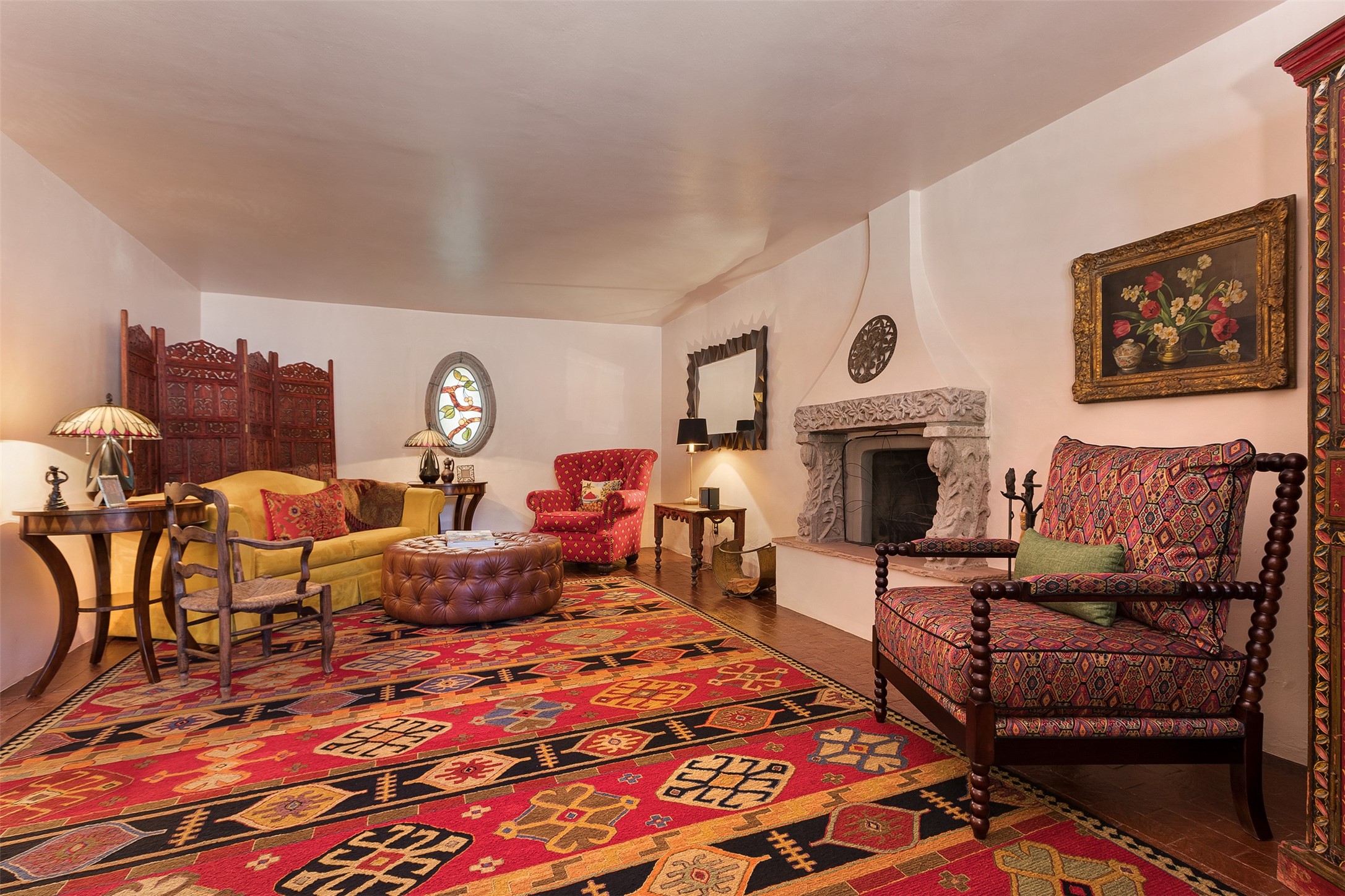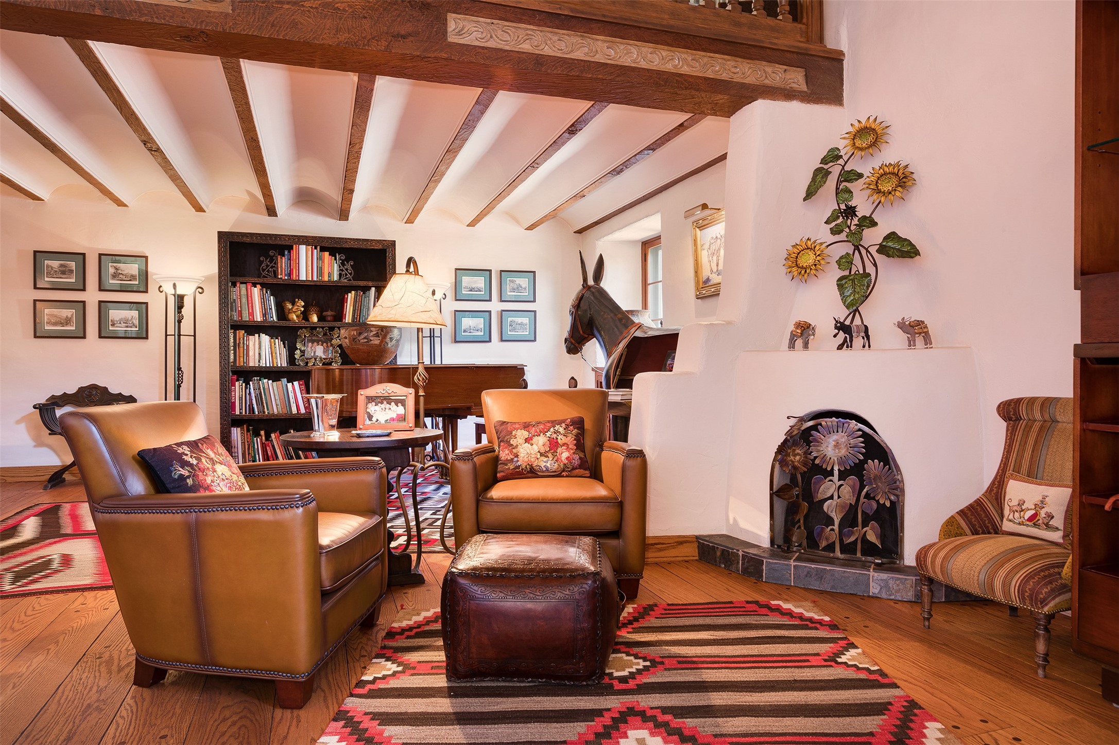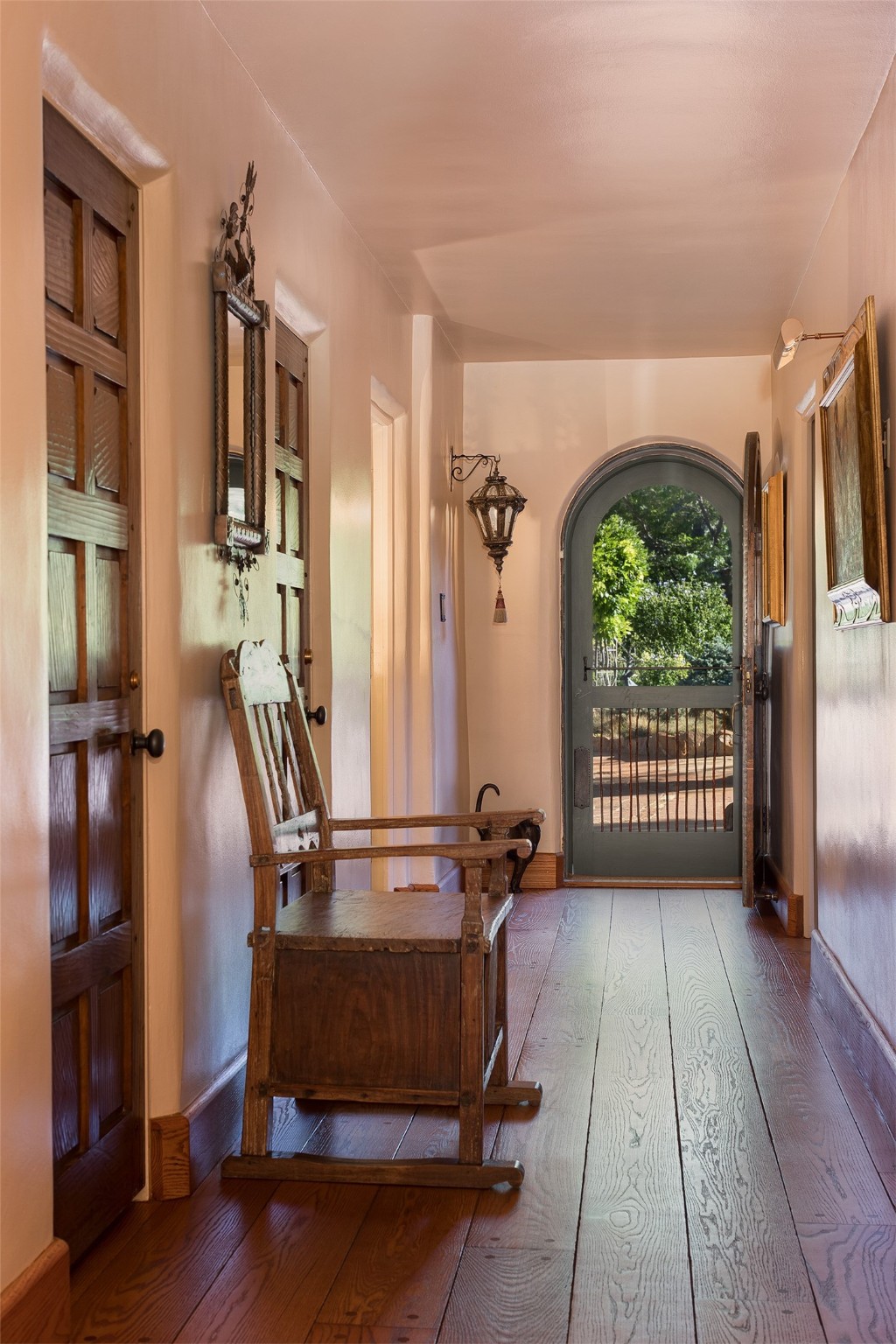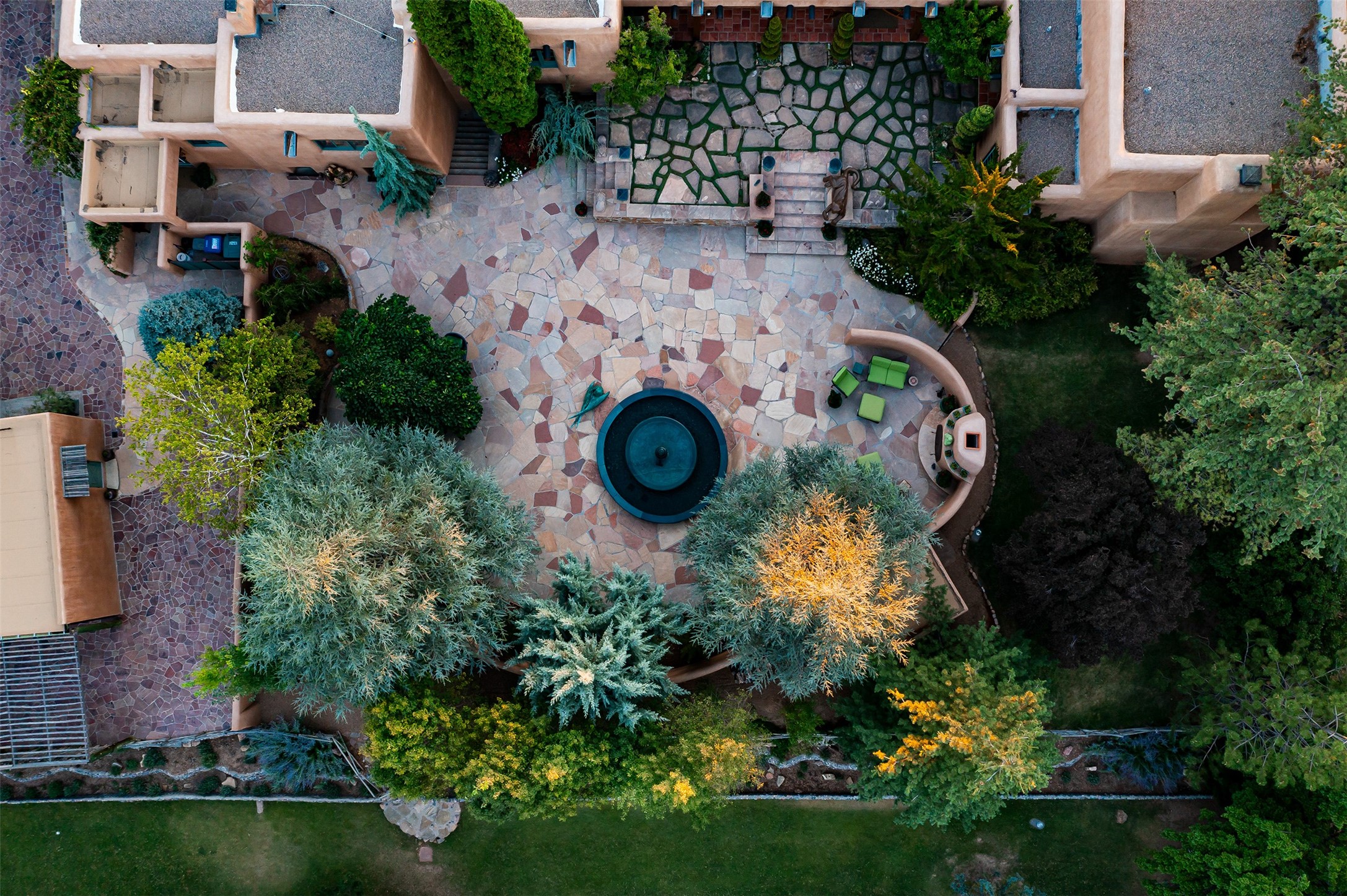 Historic Compound being offered for the first time in 40 years!Strolling up the historic Camino del Monte Sol in the heart of Santa Fe, you come upon the entrance of a quintessential example of sophisticated Santa Fe style, a historic versatile compound surrounded by magnificent grounds, trees, and stone walls. As you enter the gates and leave the world behind... you step back in time and are embraced by the immediately tranquil privacy of a secret oasis of gardens and meadows with views of the Sangre de Cristo Mountains. The multiple dwelling compound is the finest example of Pueblo style Spanish Colonial architecture in Santa Fe, built in 1918 and fully restored with original doors, windows, lintels, vigas, and extraordinary coved and carved ceilings, with spacious volume throughout. The serene portal with mature topiaries overlooks the elegant terrace and magical fountain. The charming gatehouse is a quiet, calm refuge enveloped in nature. The historic casitas are nestled between winding walkways, exploding with flowering gardens and a field of specimen trees. This unique estate was the epicenter of collaboration of Los Cinco Pintores and the Taos School Artists. Resting on 2.21 acres, the expansive estate is zoned R5, offering a multitude of exceptional development opportunities to elevate the property. It is, in every sense, incomparable.