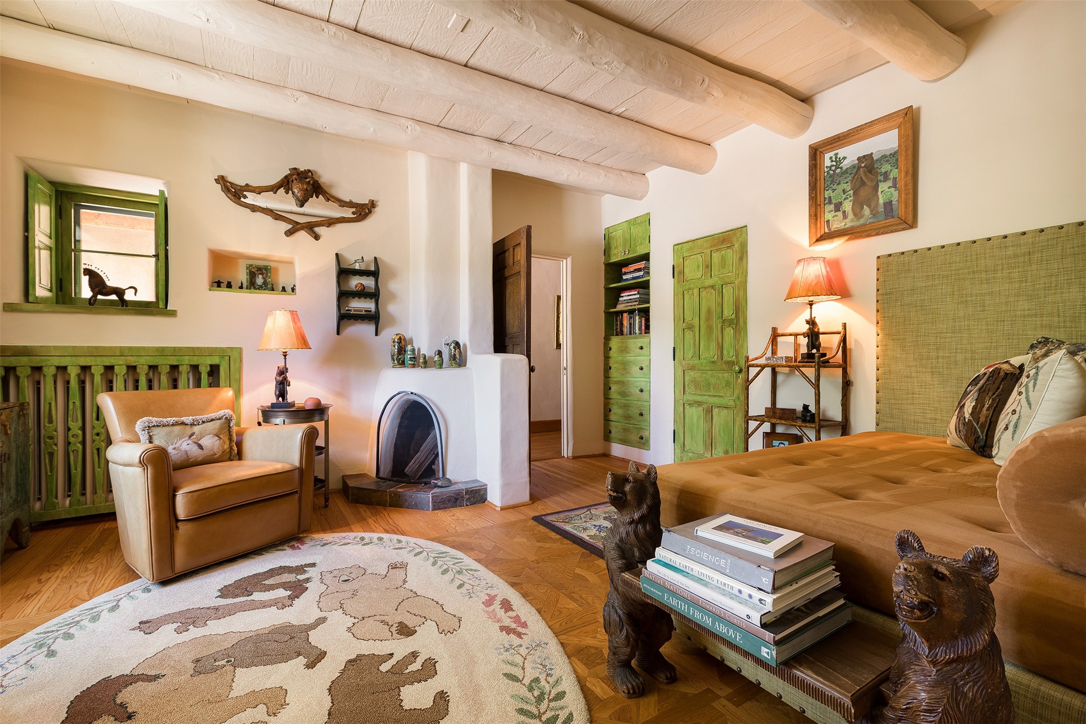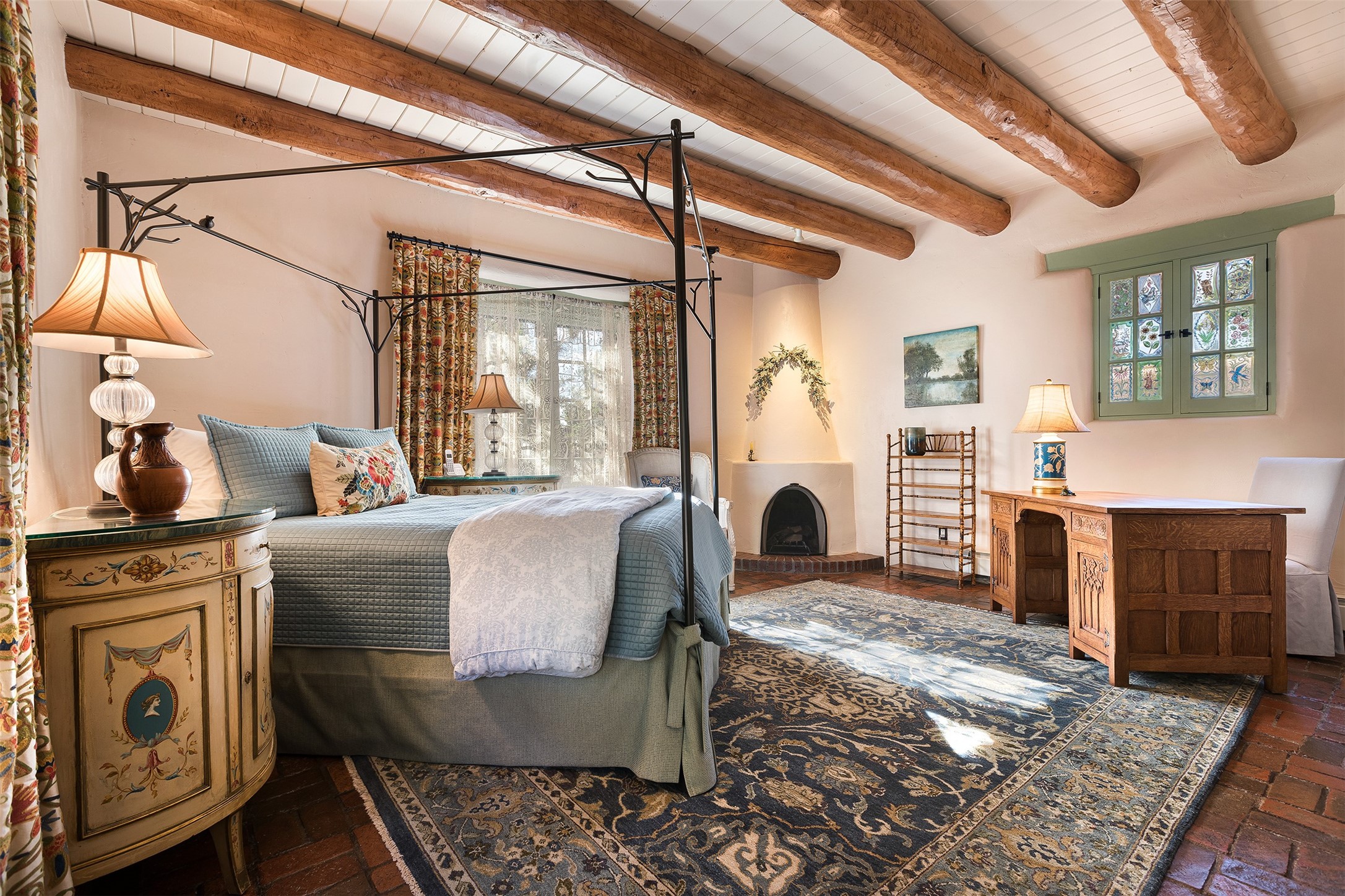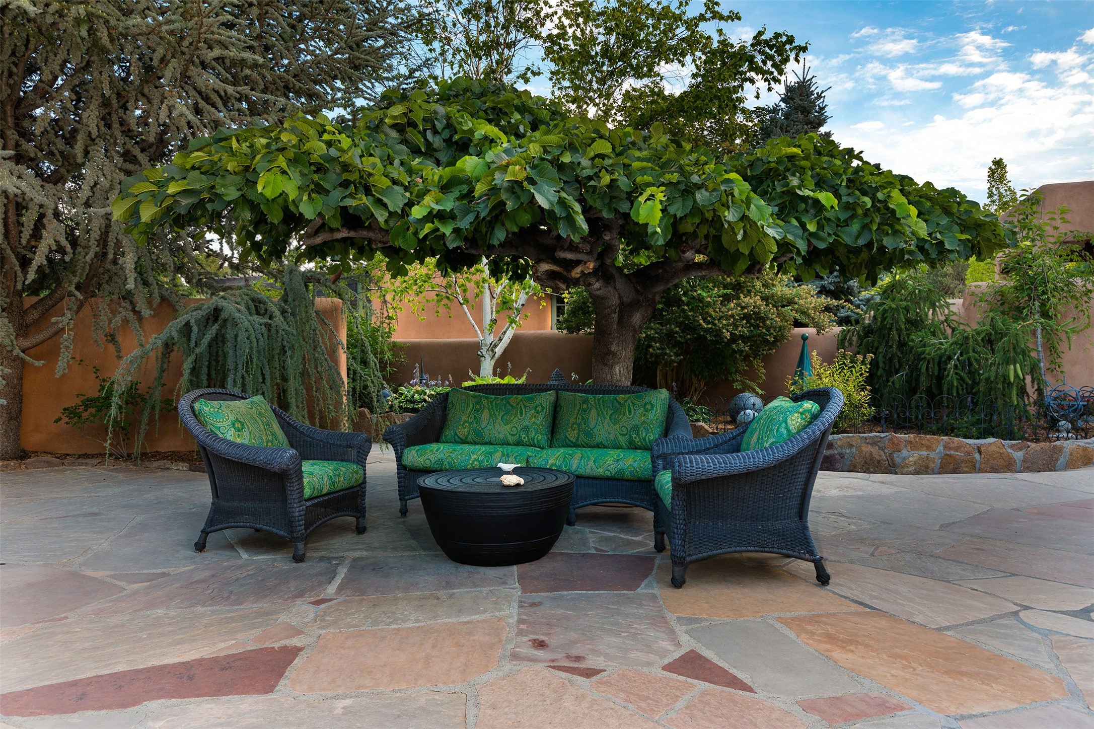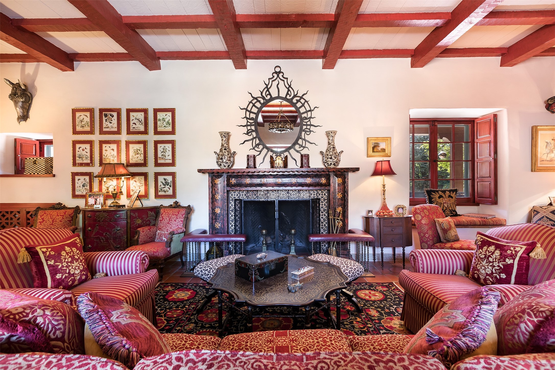 Historic Compound being offered for the first time in 40 years!Strolling up the historic Camino del Monte Sol in the heart of Santa Fe, you come upon the entrance of a quintessential example of sophisticated Santa Fe style, a historic versatile compound surrounded by magnificent grounds, trees, and stone walls. As you enter the gates and leave the world behind... you step back in time and are embraced by the immediately tranquil privacy of a secret oasis of gardens and meadows with views of the Sangre de Cristo Mountains. The multiple dwelling compound is the finest example of Pueblo style Spanish Colonial architecture in Santa Fe, built in 1918 and fully restored with original doors, windows, lintels, vigas, and extraordinary coved and carved ceilings, with spacious volume throughout. The serene portal with mature topiaries overlooks the elegant terrace and magical fountain. The charming gatehouse is a quiet, calm refuge enveloped in nature. The historic casitas are nestled between winding walkways, exploding with flowering gardens and a field of specimen trees. This unique estate was the epicenter of collaboration of Los Cinco Pintores and the Taos School Artists. Resting on 2.21 acres, the expansive estate is zoned R5, offering a multitude of exceptional development opportunities to elevate the property. It is, in every sense, incomparable.