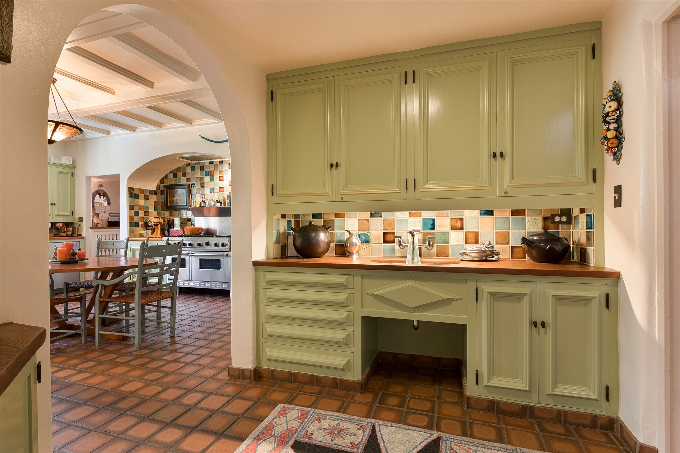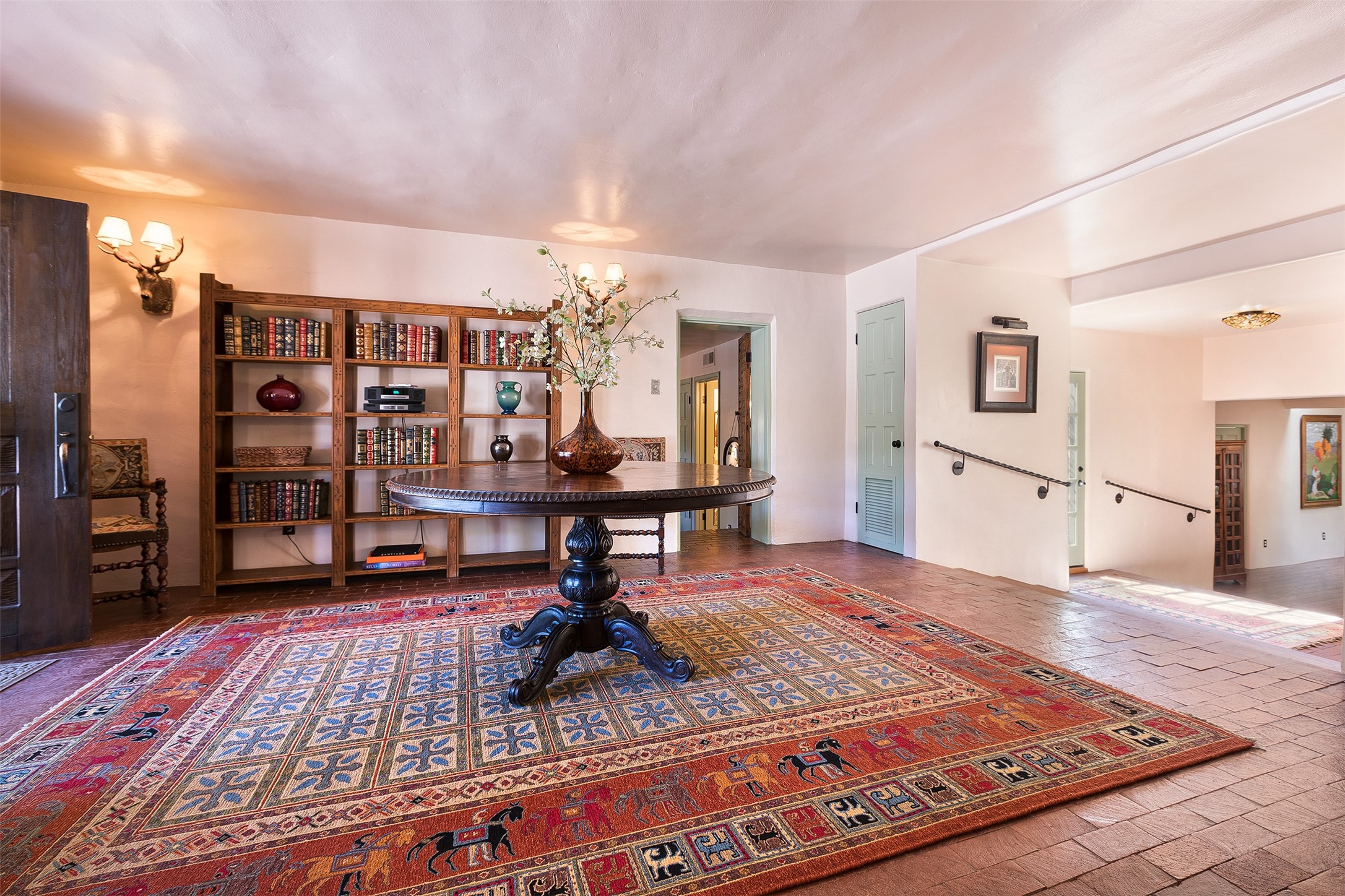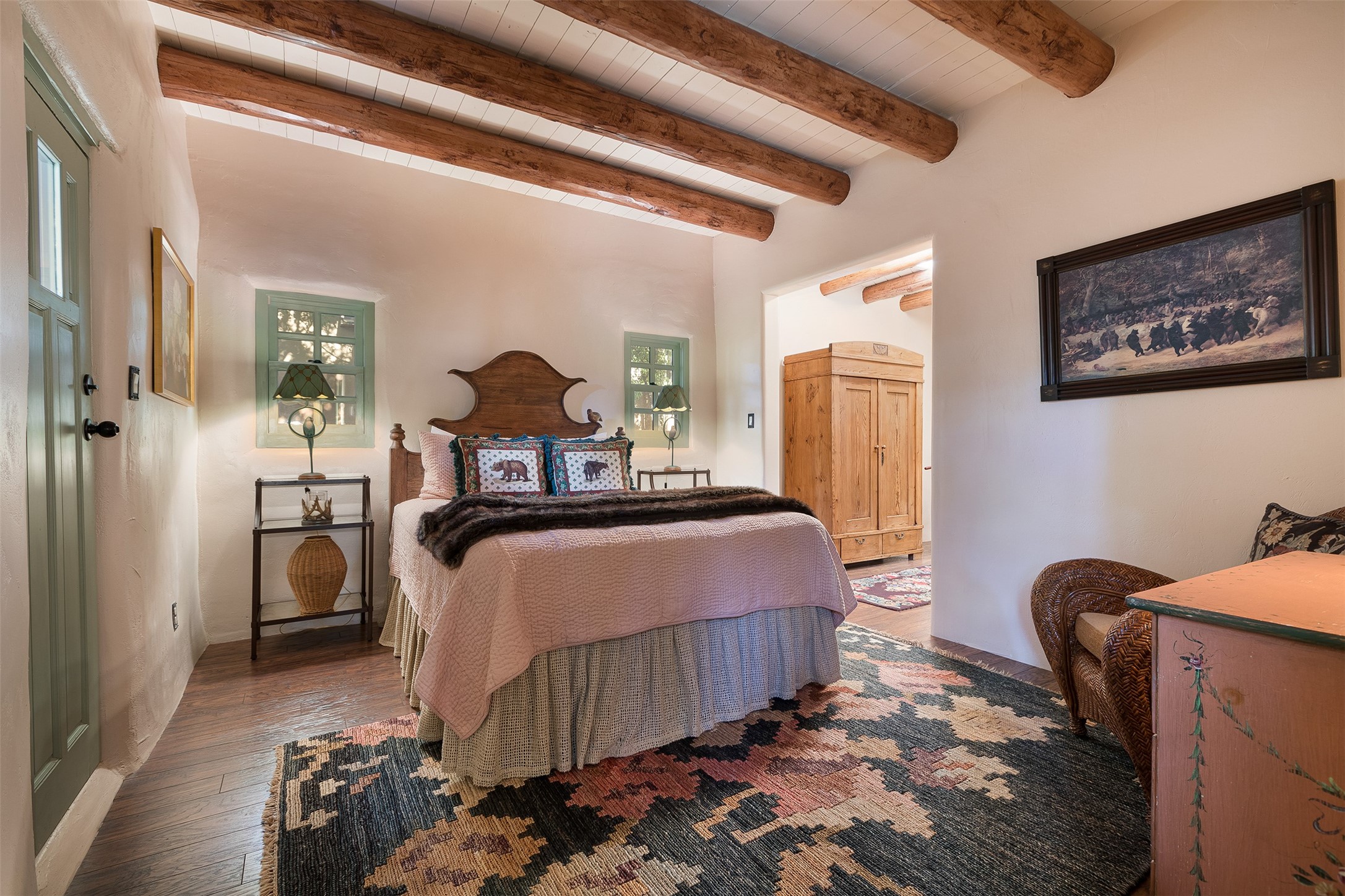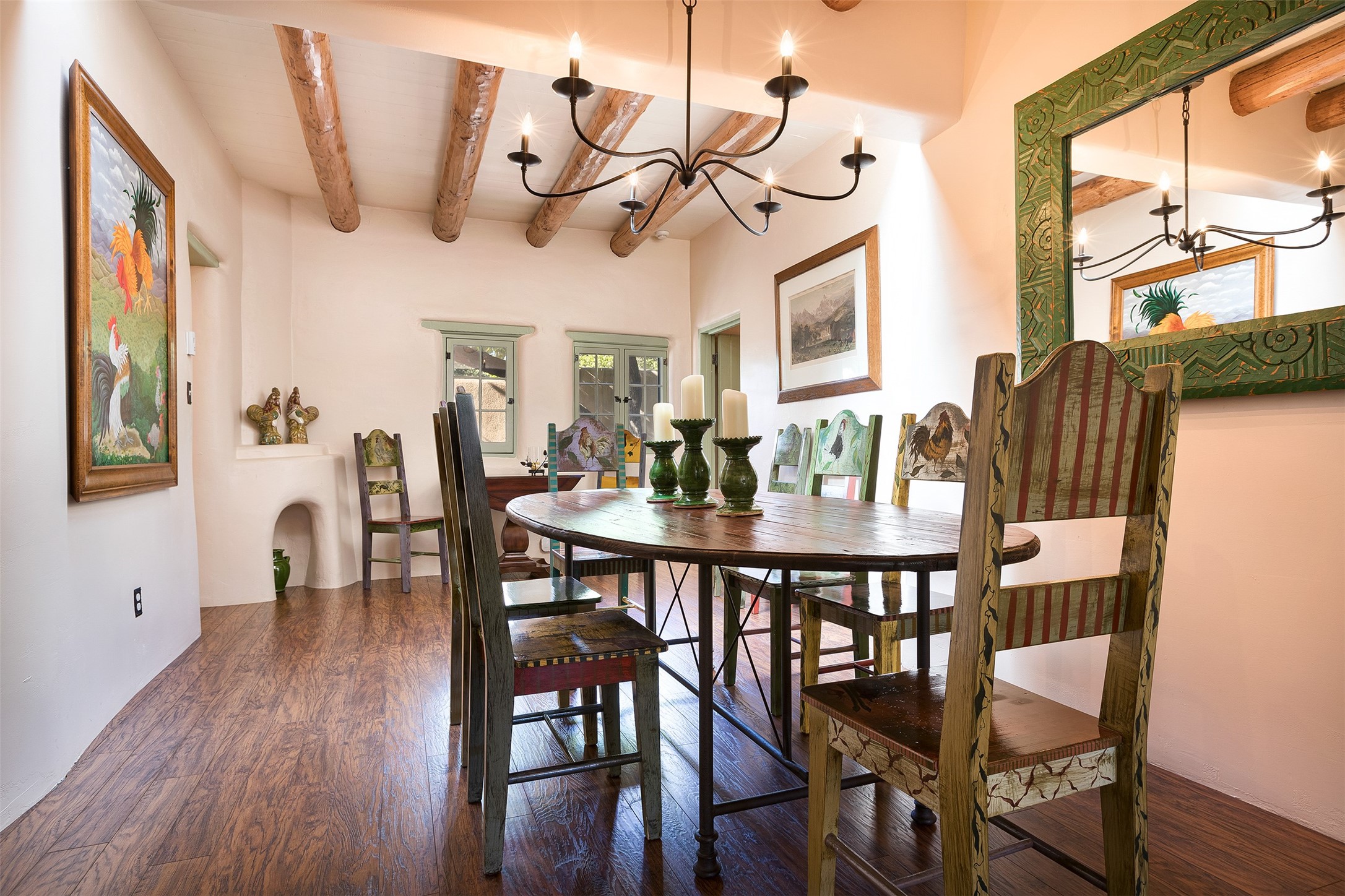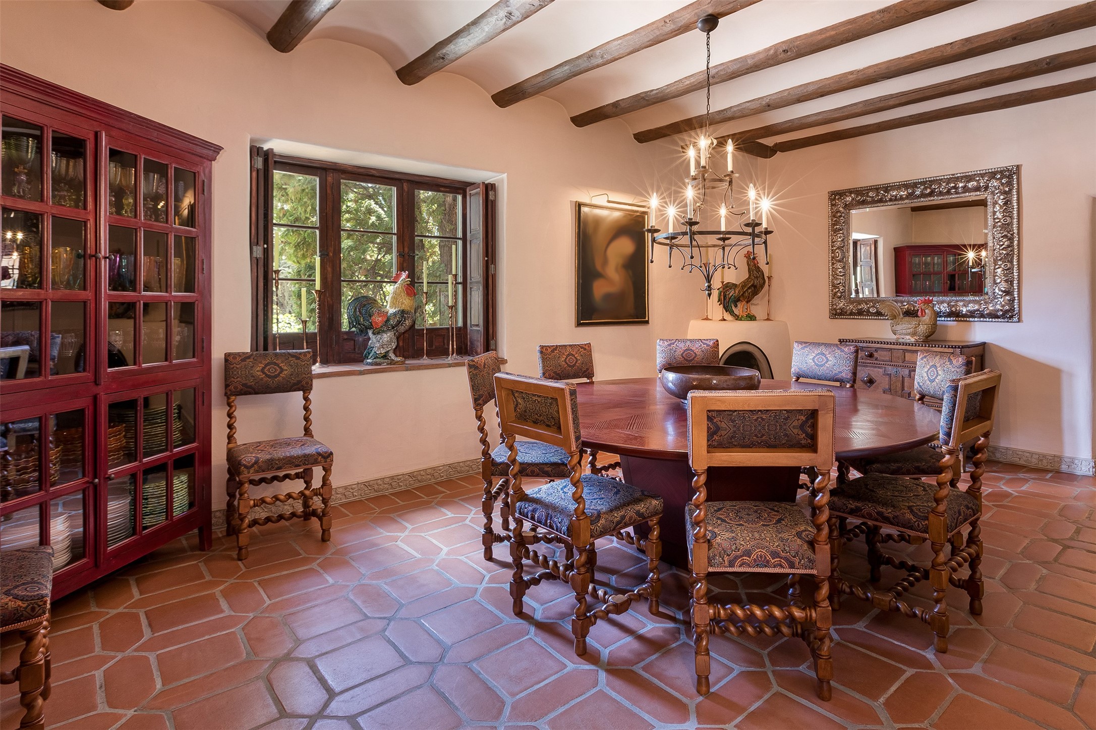 Historic Compound being offered for the first time in 40 years!Strolling up the historic Camino del Monte Sol in the heart of Santa Fe, you come upon the entrance of a quintessential example of sophisticated Santa Fe style, a historic versatile compound surrounded by magnificent grounds, trees, and stone walls. As you enter the gates and leave the world behind... you step back in time and are embraced by the immediately tranquil privacy of a secret oasis of gardens and meadows with views of the Sangre de Cristo Mountains. The multiple dwelling compound is the finest example of Pueblo style Spanish Colonial architecture in Santa Fe, built in 1918 and fully restored with original doors, windows, lintels, vigas, and extraordinary coved and carved ceilings, with spacious volume throughout. The serene portal with mature topiaries overlooks the elegant terrace and magical fountain. The charming gatehouse is a quiet, calm refuge enveloped in nature. The historic casitas are nestled between winding walkways, exploding with flowering gardens and a field of specimen trees. This unique estate was the epicenter of collaboration of Los Cinco Pintores and the Taos School Artists. Resting on 2.21 acres, the expansive estate is zoned R5, offering a multitude of exceptional development opportunities to elevate the property. It is, in every sense, incomparable.