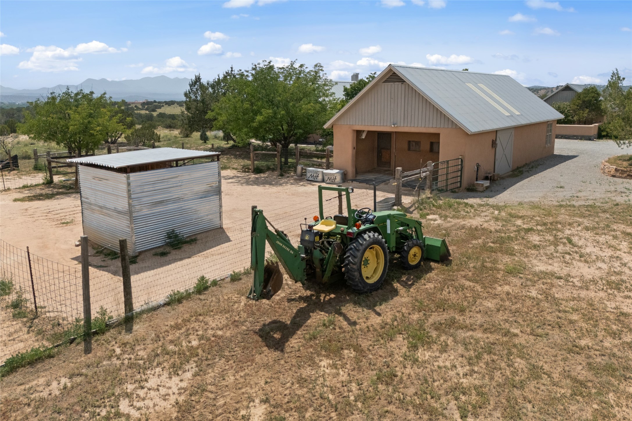 Nestled in the charming, historic artistic village of Galisteo, 794 Camino Los Abuelos and its two adjacent lots offer a unique 70-acre equestrian compound full of western charm and ripe with opportunity. The property features five fenced pastures and two horse/hay barns, catering perfectly to equestrian needs. Additionally, the estate's two adjoining separately deeded lots offer potential for enhancement. The primary lot boasts a Northern New Mexican style 2-bedroom main house, exuding substance and warmth with its plaster walls and a cozy living room fireplace. The brick-floored portal off the back of the house, with a covered outdoor dining area and a hot tub, offers breathtaking southern mountain views overlooking the Galisteo Basin and the Cerro Pelon Ranch - a stunning setting for sunset views on a cool summer evening. Complementing the main house, the compound includes a 1-bedroom casita, a standalone bunk shed, and a large 2-car garage with an extensive storage room, all connected to one of the horse barns. The property is gated for added privacy and security, and the expansive acreage, which was carefully manicured with horse riding in-mind, invites enjoyment of the serene high desert lifestyle. Whether you seek a tranquil sanctuary to savor desert vistas or a canvas for creating a substantial compound, 794 Camino Los Abuelos delivers a rare opportunity in Galisteo's picturesque landscape.