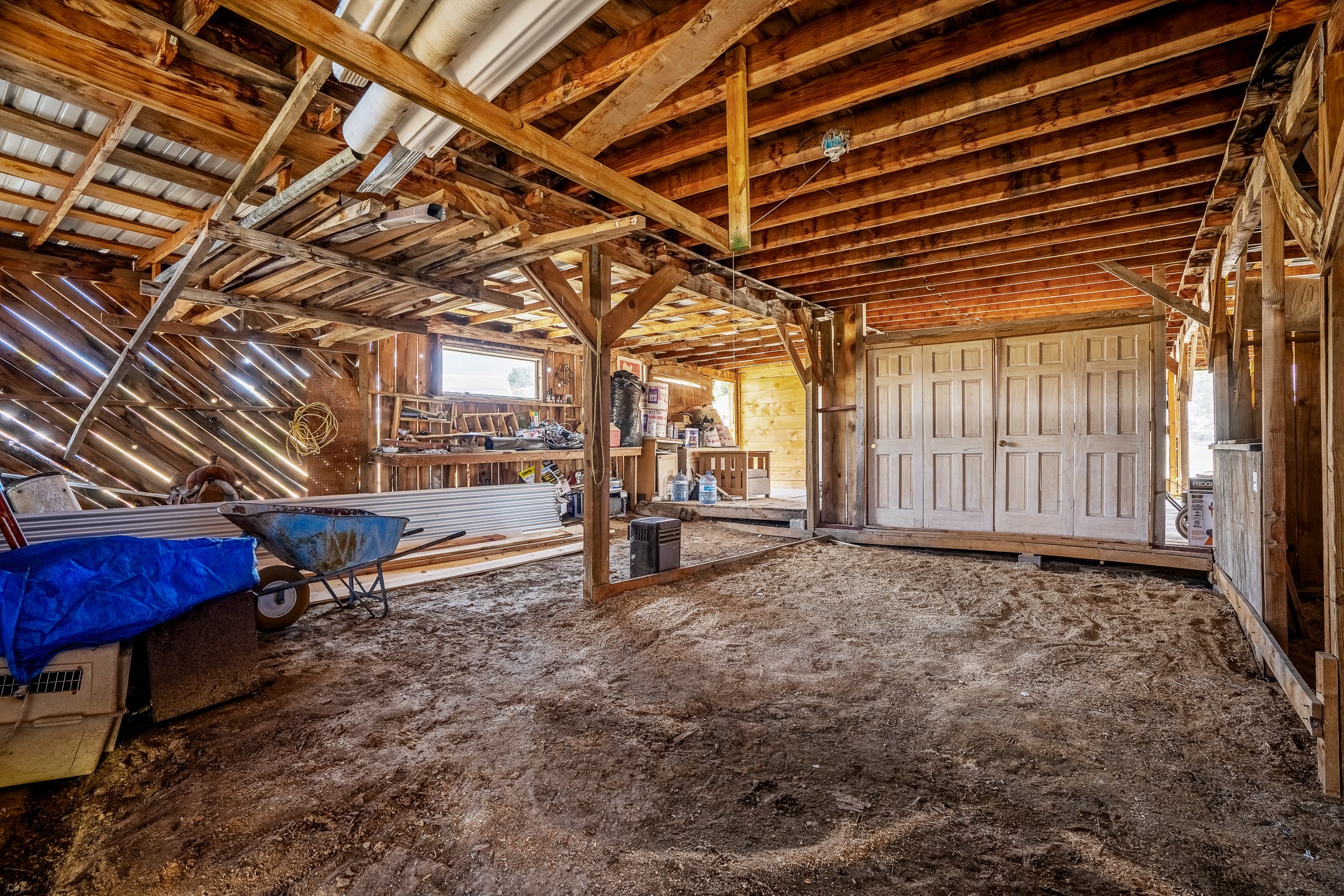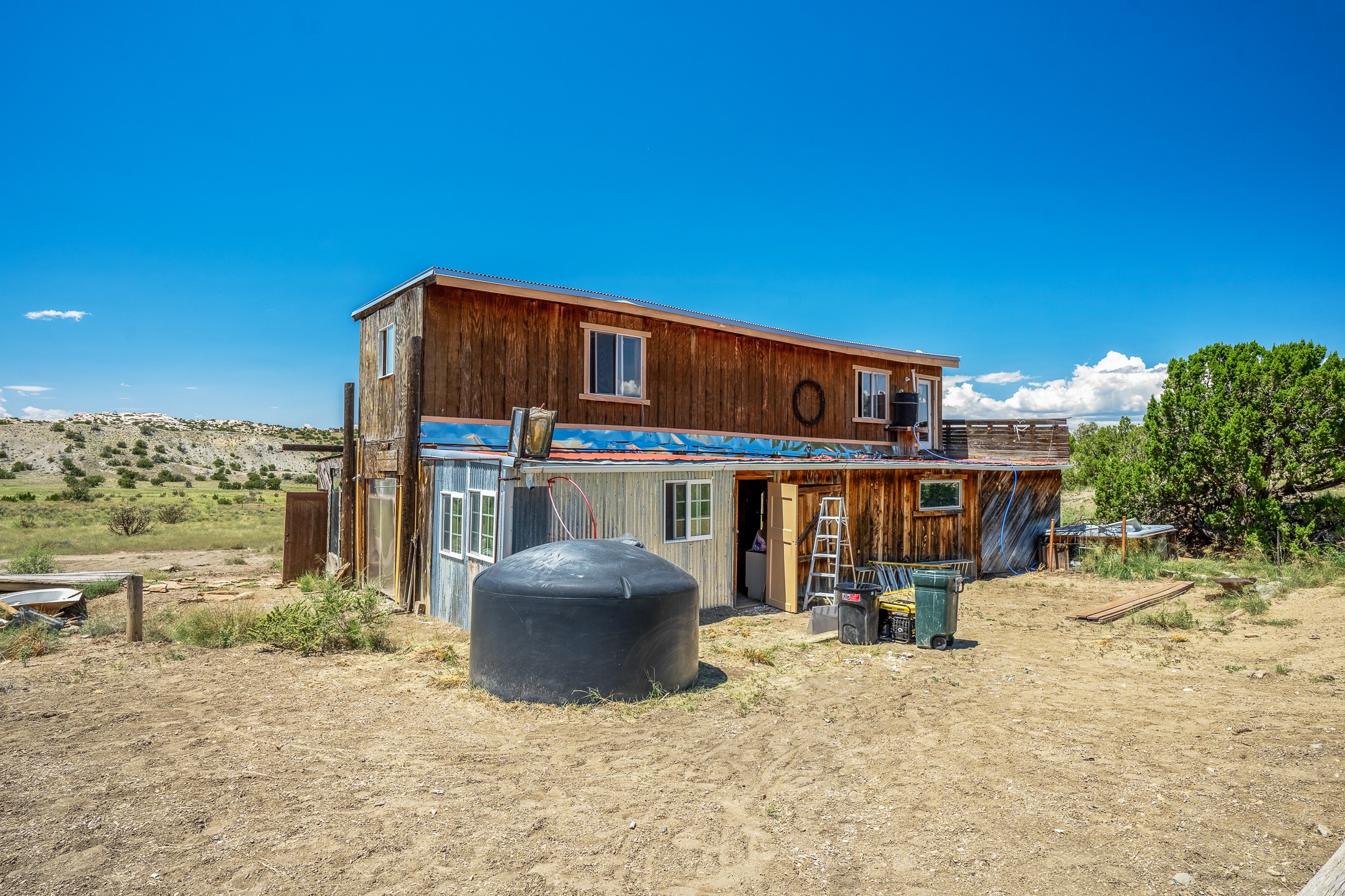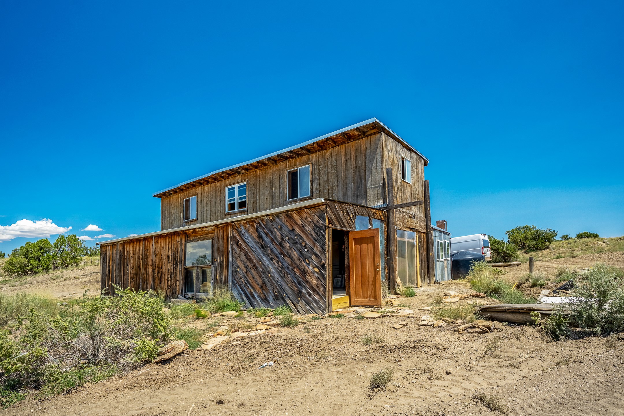 Thirty-nine peaceful and secluded acres with spectacular high desert vistas and large, rustic barnodminium. the 2200+ square foot barndominium consists of a first floor barn, shop or flex space, and a start towards bathroom. A second story apartment sits above. This is a unique opportunity to create your own self-reliant home or get away. The property includes a water tank, two wood stoves, and new roofing. Starry night skies and intense quiet. Room to roam and endless possibilities. Owner will carry with $35,000 down, 8% APR, or offer a discount for a cash purchase.