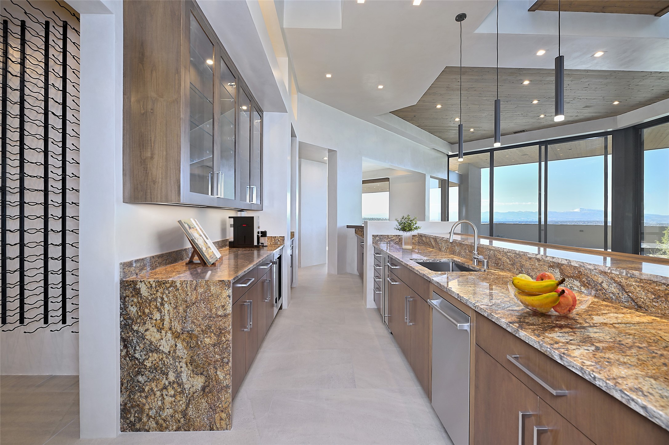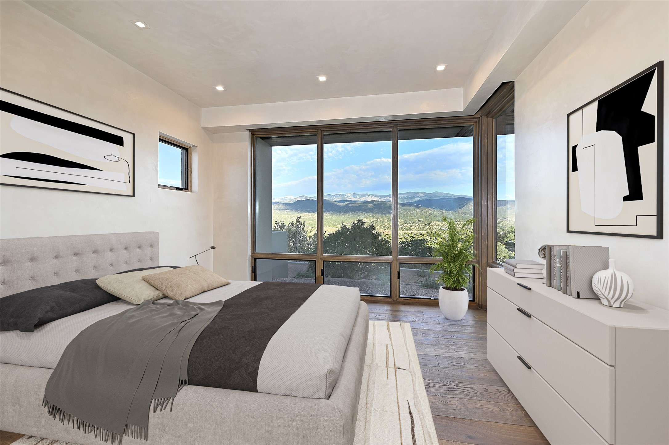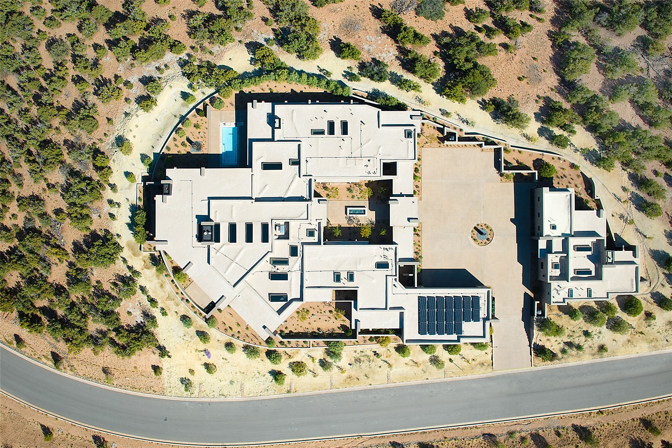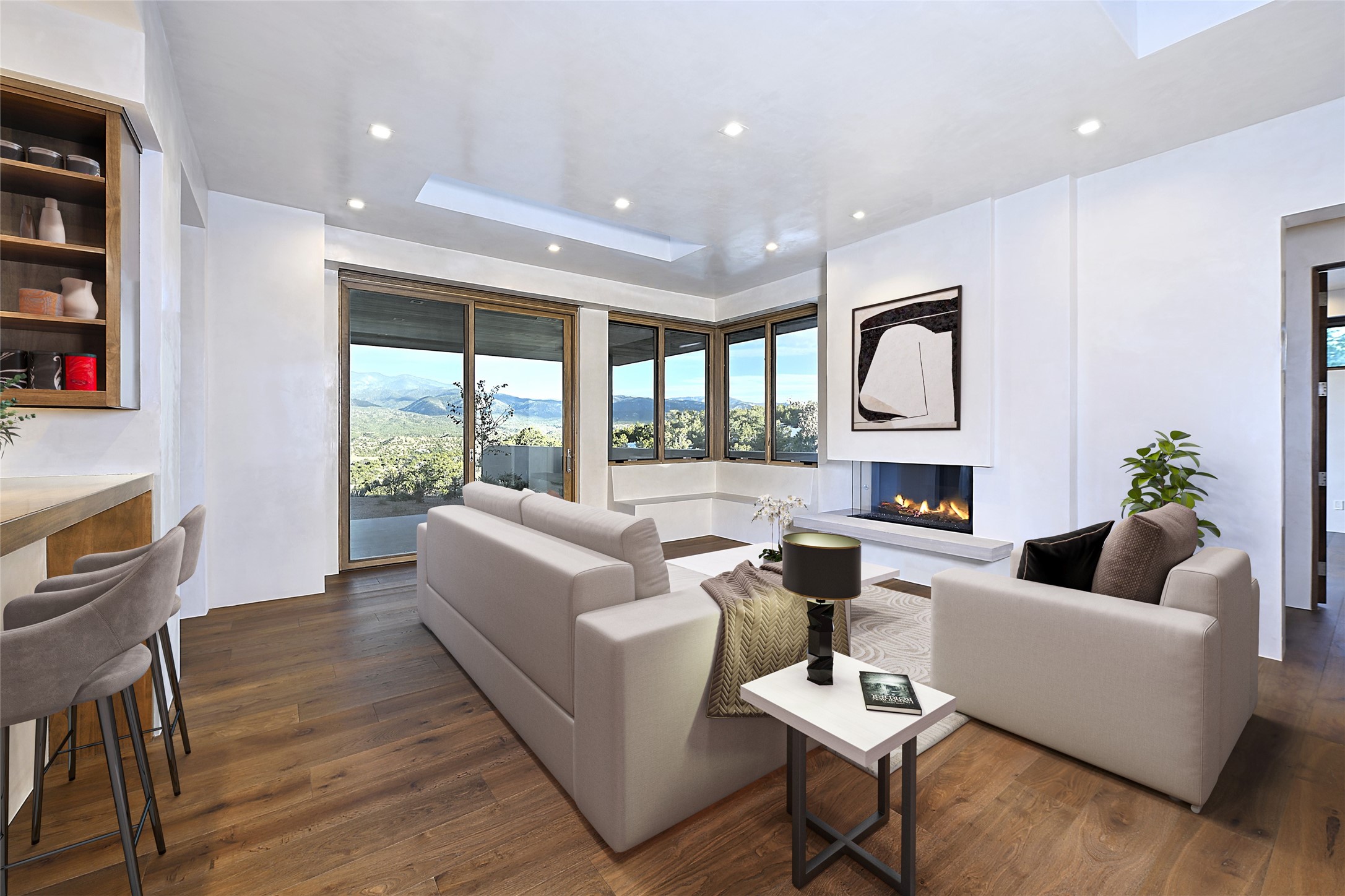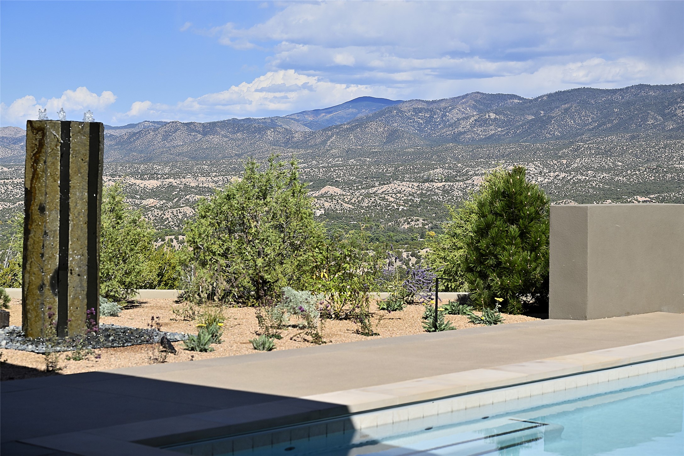 One of the most magnificent contemporary homes in Santa Fe, this new residence and guesthouse in the coveted northside enclave of Monte Sereno was designed and built by Dressel Construction. The heart of the main residence is a spectacular showplace for grand gatherings or quiet moments of private relaxation and reflection while appreciating Santa Fe's impossibly blue skies and the majesty of the Sangre de Cristo and Jemez Mountains and the Badlands. Open, airy, and inviting, it includes a strikingly dramatic wine room, a wet bar, and a vast living space with walls of glass affording a cinematic view and opening to an equally inspiring portal and patio with a pool. A media room and a library or office adjoin, offering more intimate spaces for day-to-day living and tasks. Nearby, an elegant kitchen includes a host of superior appliances and surface along with a well-equipped plating kitchen, a walk-in pantry, and a breakfast area with built-in seating and portal access. The owner's suite and a versatile additional room--ideal for an office or in-law suite--are secluded in their own wing, while a pair of guest bedroom suites enjoy the privacy of their own wing accessed by a sunlit hallway. A three-car garage completes the lavish picture. Across a dramatic motor court with a central fountain is a charming two-bedroom guesthouse with a well-equipped kitchen, laundry facilities, a fireplace, and spaces for outdoor enjoyment. The nearly three-acre property--consisting of a rare combination of two lots--is accessed via a regal gated drive, basks in stunning views from its enviable perch, and enjoys unprecedented peace and privacy. Native flora surrounds the estate, and the hallways of the main residence open to a dazzling landscaped courtyard with a modern water feature. Monte Sereno is a desirable community located near the world-renowned Santa Fe Opera and a short drive from the historic Plaza and other attractions. Images portrayed in this listing are virtually staged, and seller makes no representations that all elements in these images represent what is being sold. Fiber optic through Century Link as well as Comcast/Xfinity.