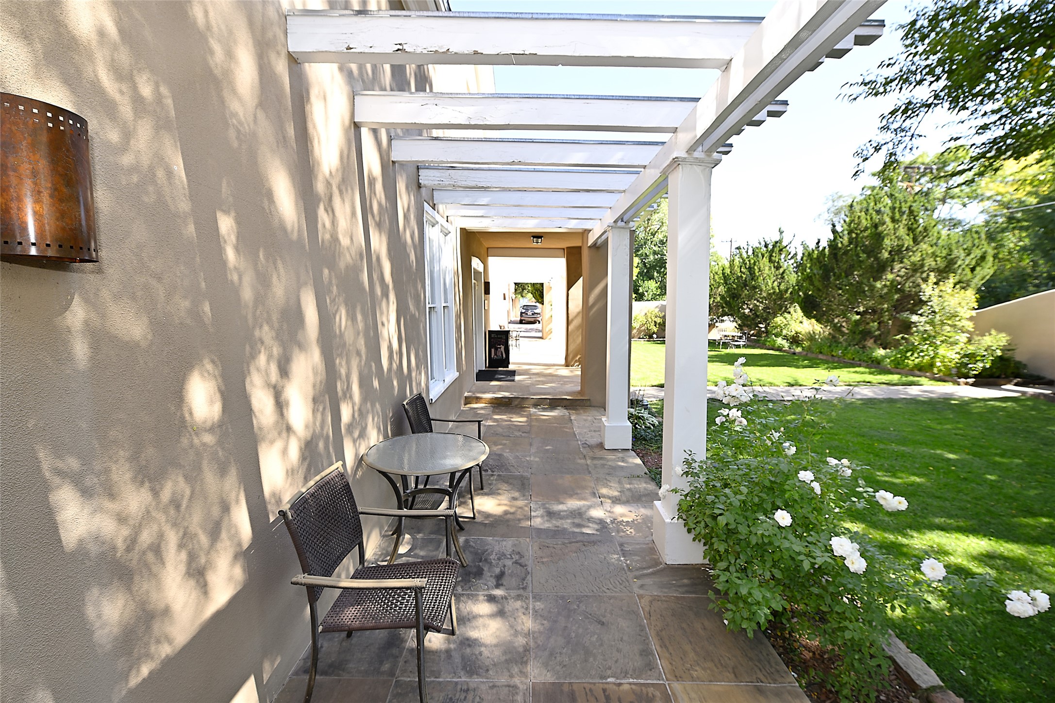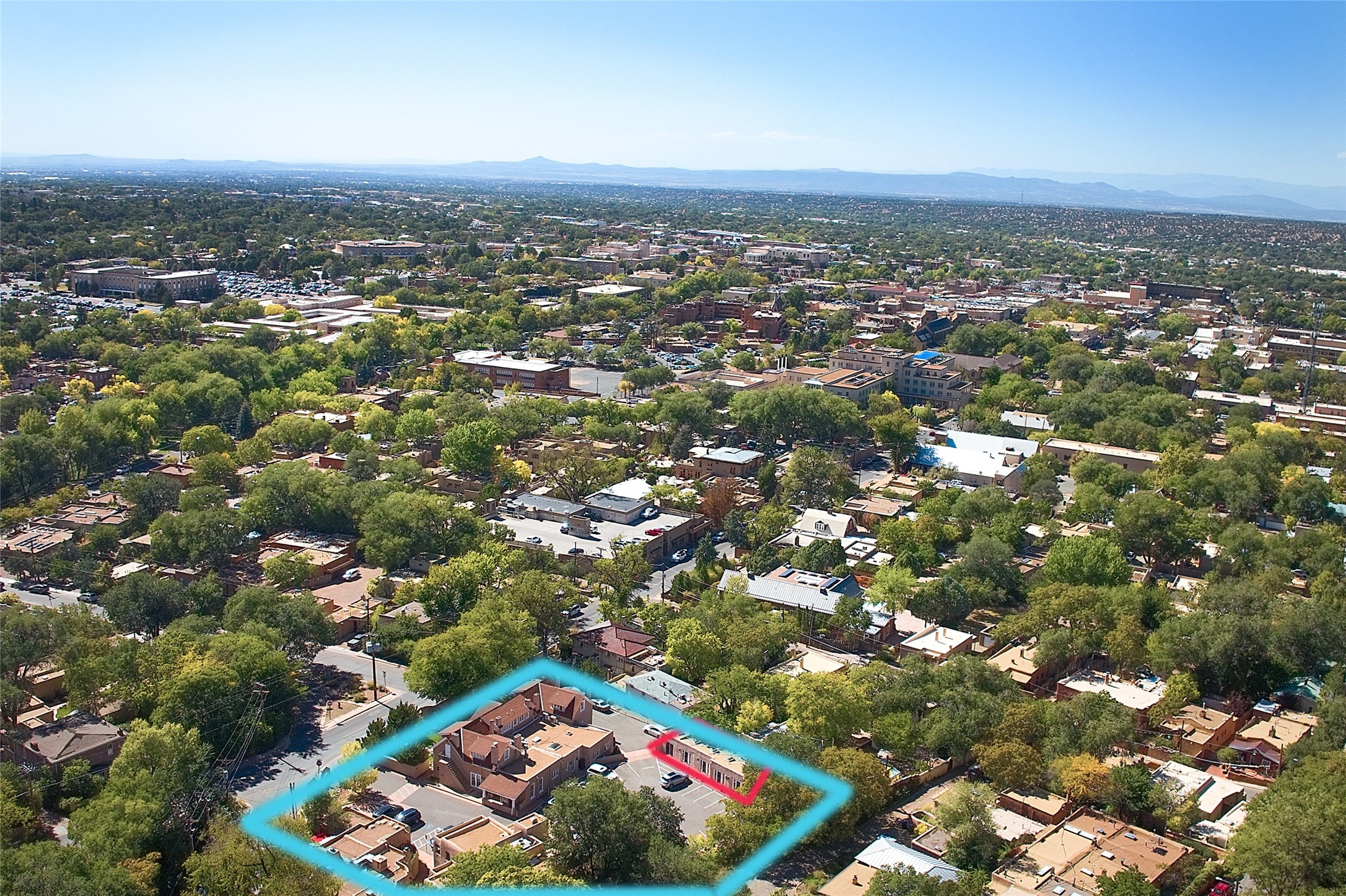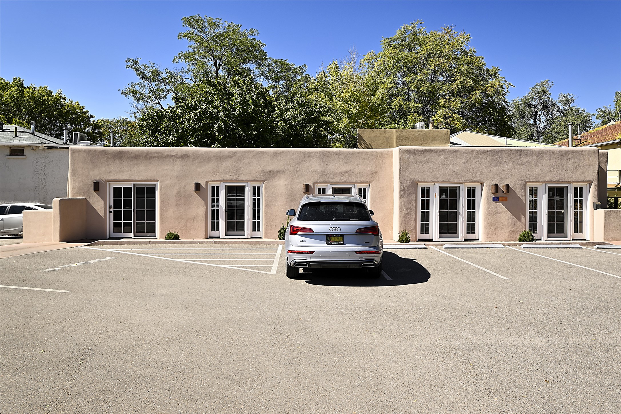 Located in Santa Fe's prestigious Historic Eastside, this Commercial Condo (BCD Business-Capitol District) offers a rare opportunity to experience a beautiful campus-like setting. A drive-up suite that offers all the conveniences of conducting business and being a short distance from the Plaza. Use of a spacious conference room with large screen TV for video presentations and a break room with microwave and refrigerator is included in the monthly condominium fees. Recently paved onsite parking. Uncommon blend of natural beauty, rich local history and distinctive architecture offers an impressive professional environment at an advantageous and convenient location, just minutes from world-class restaurants, shopping, downtown businesses, and the vibrant Santa Fe Plaza.