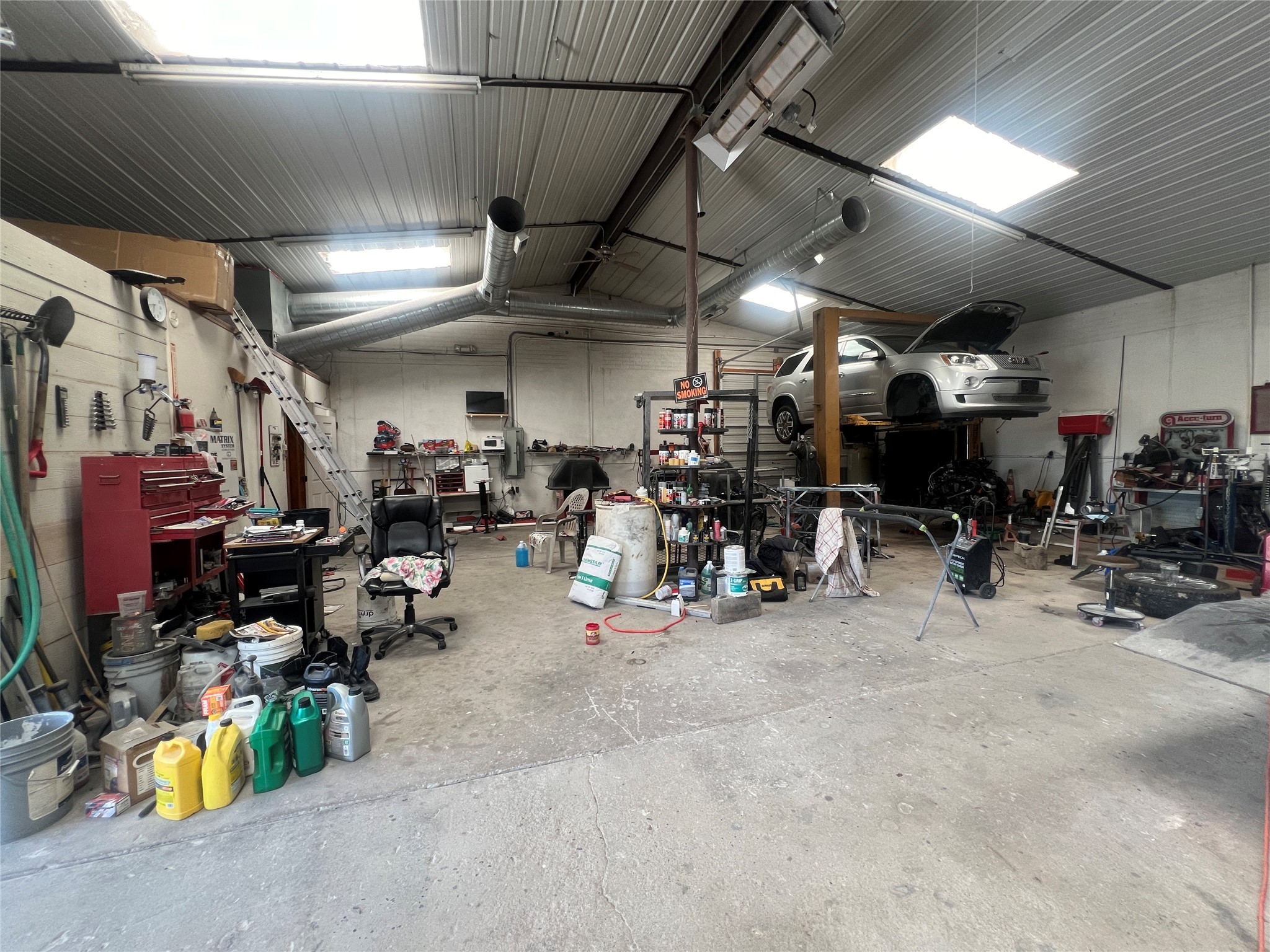 This 3,000 square foot industrial building is currently operating as a successful automotive repair shop, providing a turn-key investment with significant potential. This property combines practicality and visibility, making it an ideal investment for both operational use and future growth. Fully Equipped Automotive Shop: Two (2) lifts, a paint booth, and a compressed air piping system are in place to support a range of automotive services. Additional Storage: A 20-foot shipping container provides ample space for storage. On-Site Office: Includes a functional office area to manage operations efficiently. Residential Component: A 975 square foot single-wide mobile home, currently rented on a month-to-month basis for $700/month gross.Clear Height: 16 feetZoning: CN - Commerical Neighborhood