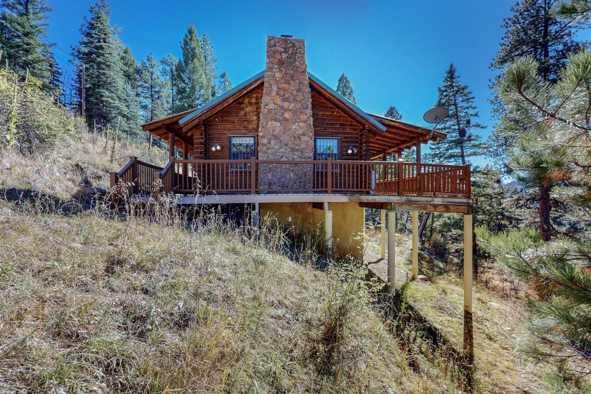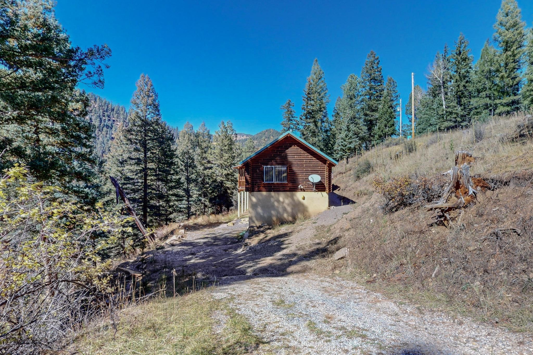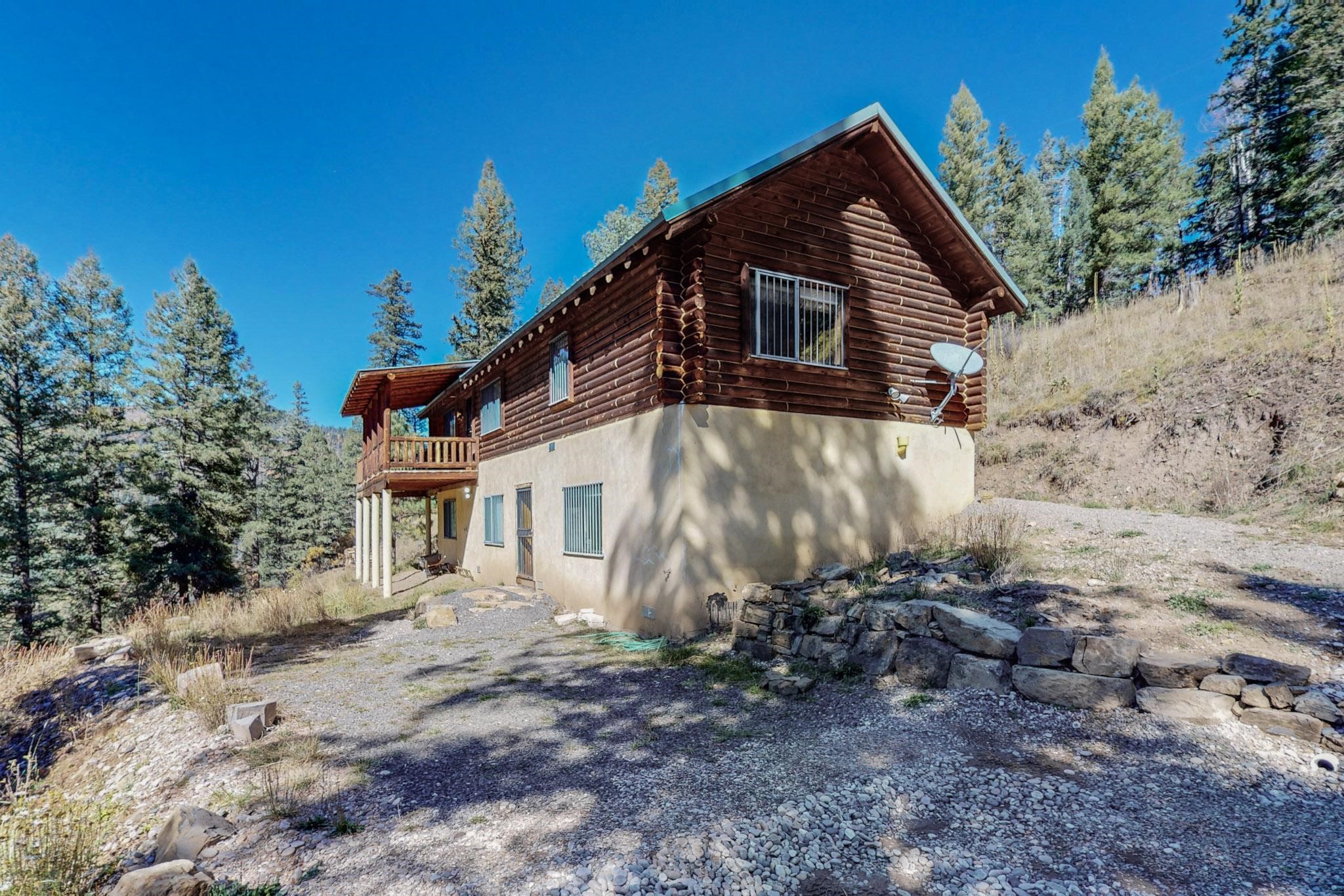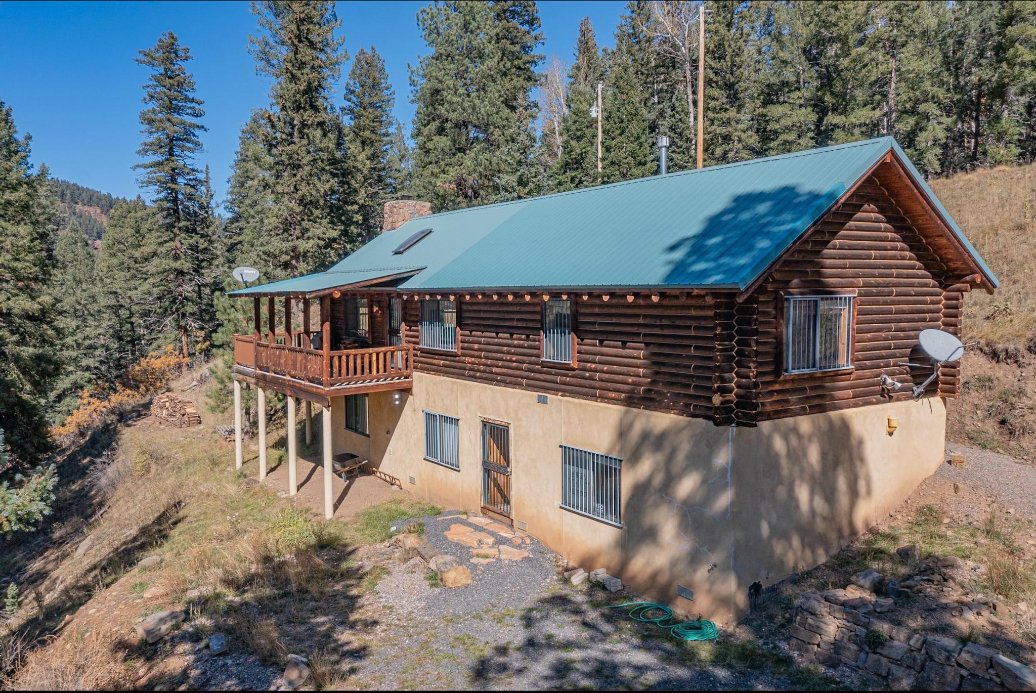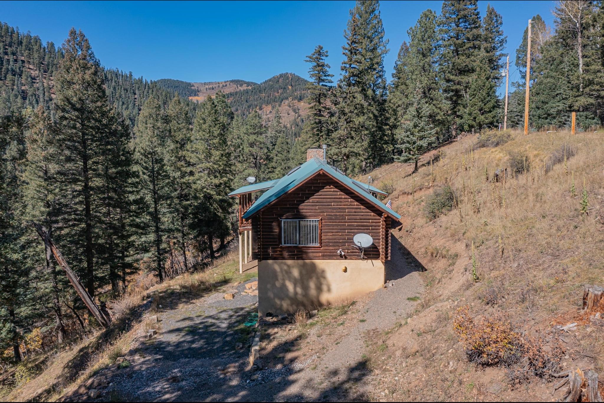 What folks say they want, Mountain cabin with stunning views at Pecos Canyon Estates, an hour east of Santa Fe just before the Pecos Wilderness accessed from Iron Gate Road. The listing includes 5 legal lots of record allowing for additional structures. The construction is log and block, 2 levels and includes private well, wrap around deck, rock fireplace, 1 bedroom and 2 baths. The upper portion is from well regarded Air-Lock Log Homes from Las Vegas, New Mexico. The home is 2/3rds completed, upper level with living room, kitchen, laundry area, primary bedroom and bath is finished and the lower level has finished bathroom and partially completed open spaces, priced at $369,000 accordingly. Additional features include land line telephone, internet with Wi-Fi, lift chair to lower level, propane heat above and baseboard electric heat below, and a private setting at the end of a country lane. There are no CCR's or a home owners association.