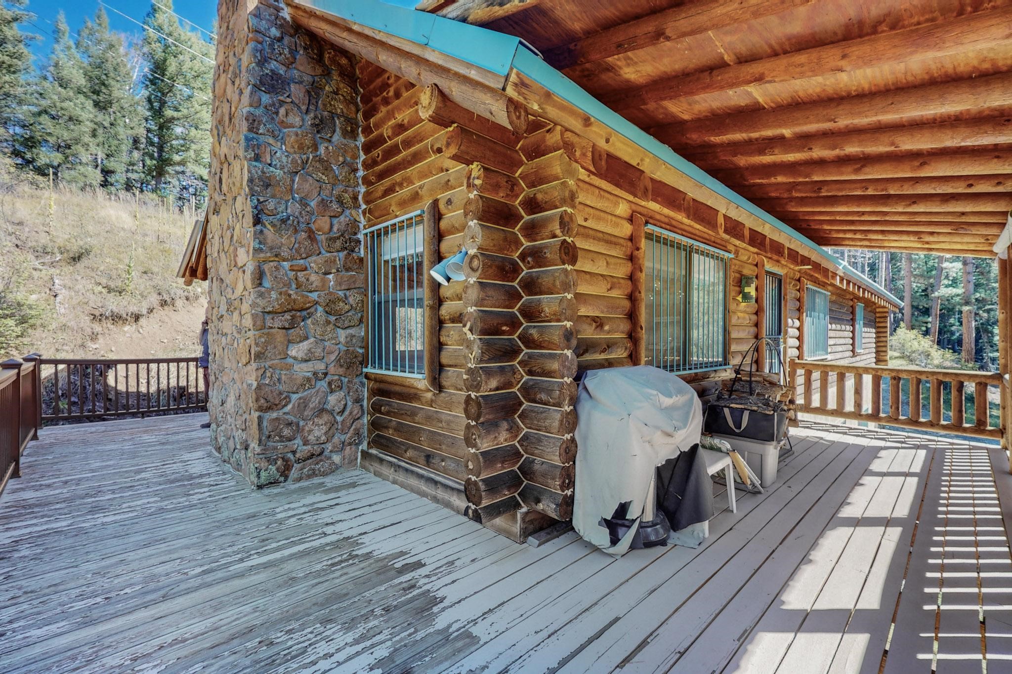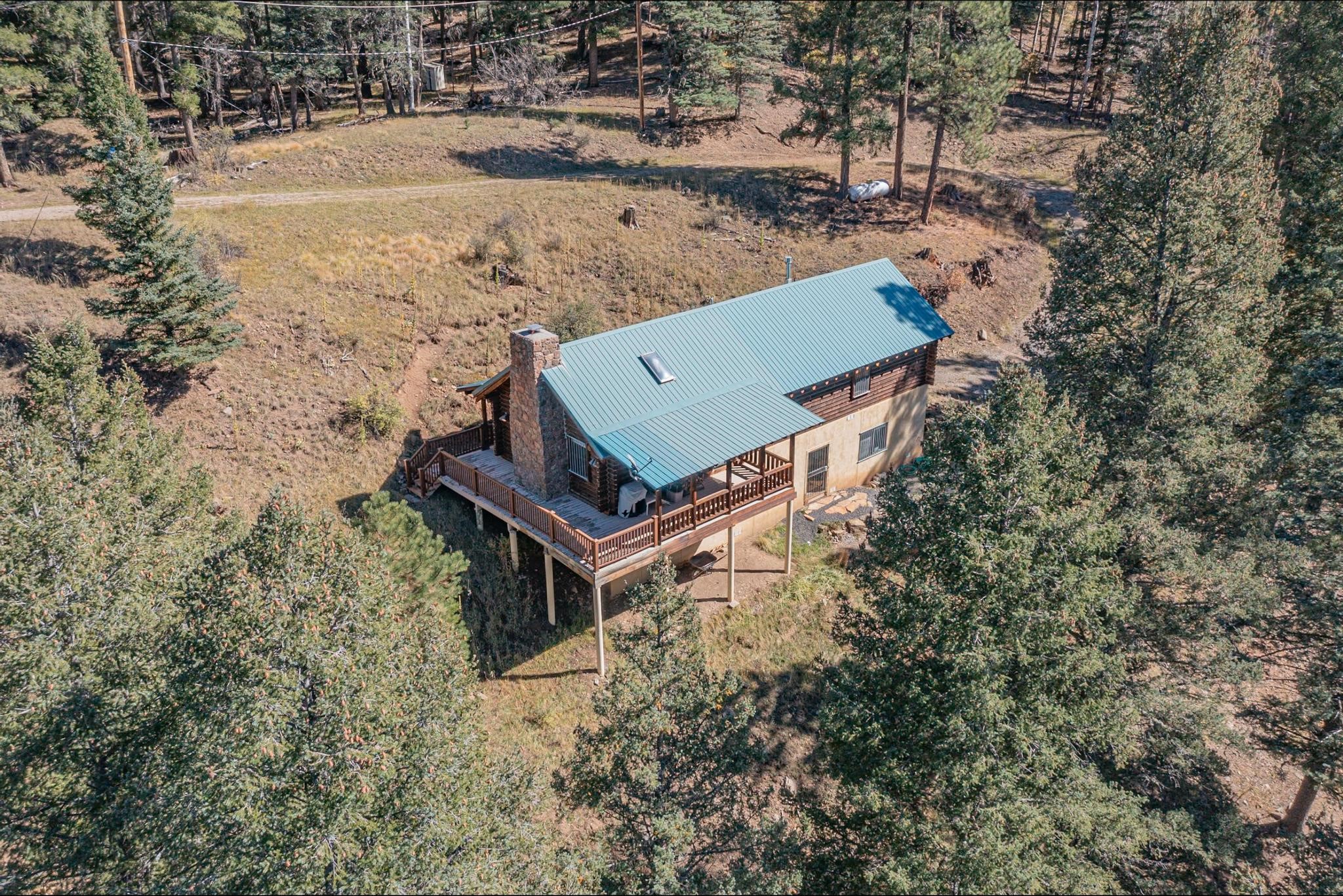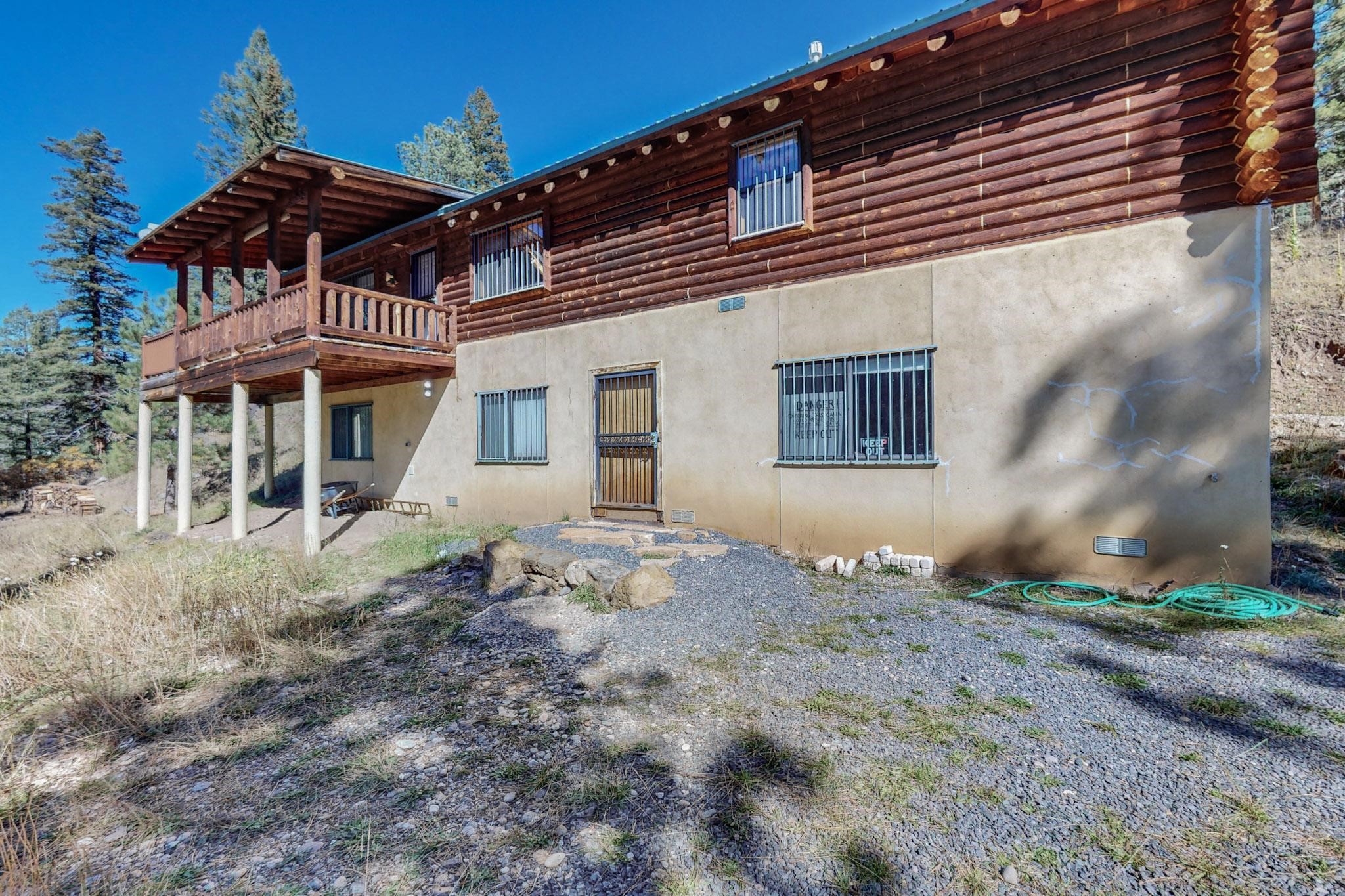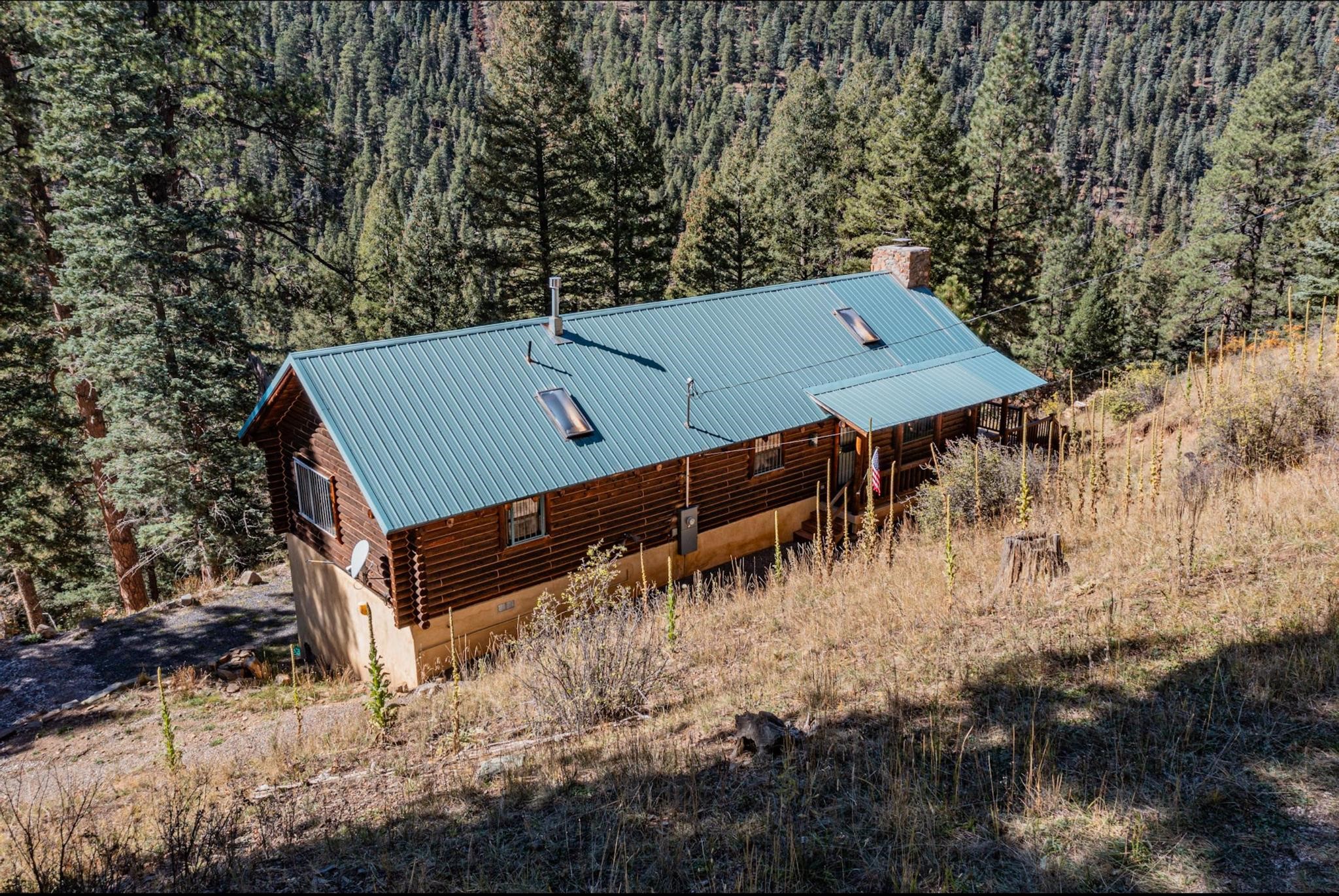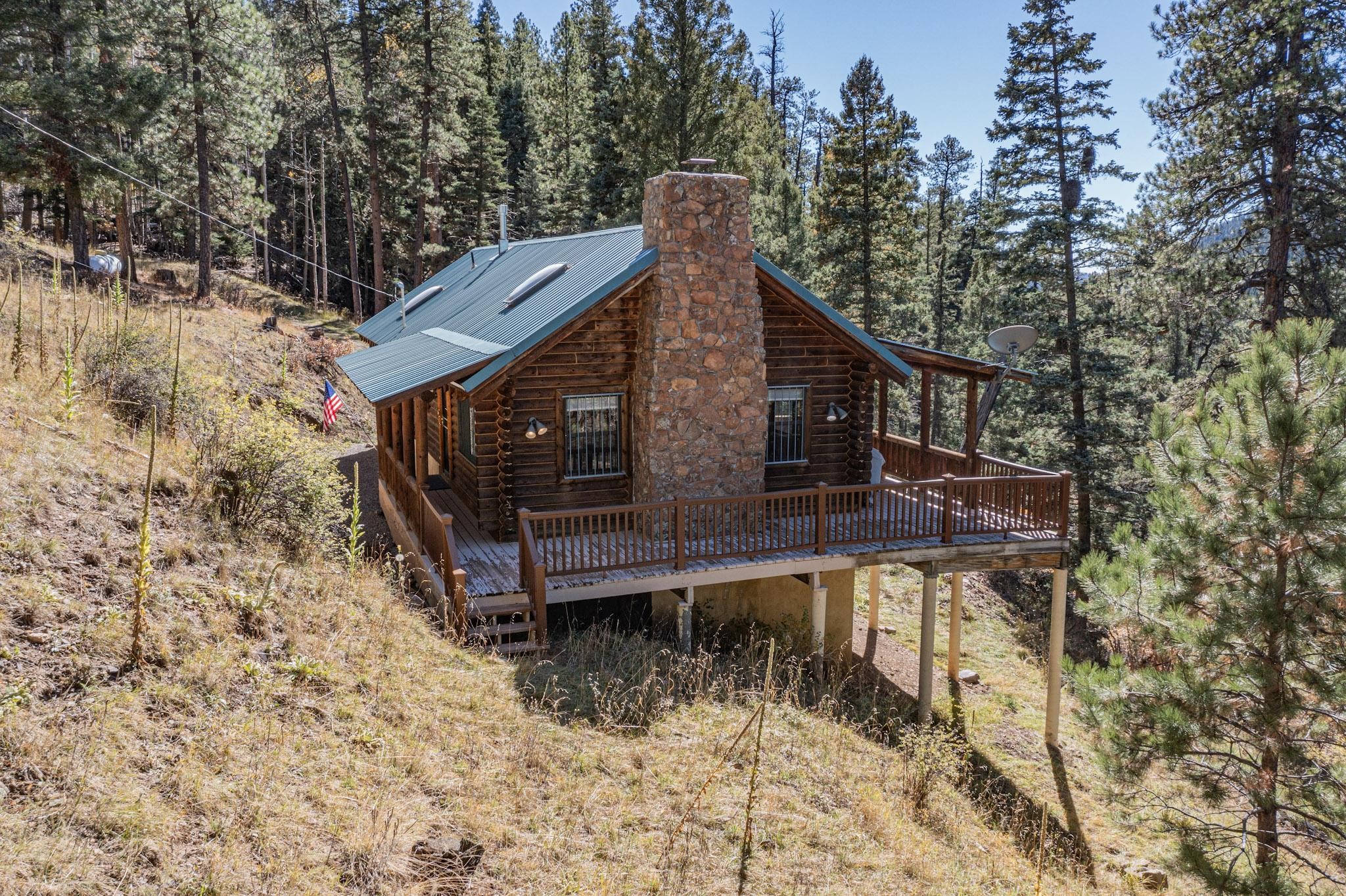 What folks say they want, Mountain cabin with stunning views at Pecos Canyon Estates, an hour east of Santa Fe just before the Pecos Wilderness accessed from Iron Gate Road. The listing includes 5 legal lots of record allowing for additional structures. The construction is log and block, 2 levels and includes private well, wrap around deck, rock fireplace, 1 bedroom and 2 baths. The upper portion is from well regarded Air-Lock Log Homes from Las Vegas, New Mexico. The home is 2/3rds completed, upper level with living room, kitchen, laundry area, primary bedroom and bath is finished and the lower level has finished bathroom and partially completed open spaces, priced at $369,000 accordingly. Additional features include land line telephone, internet with Wi-Fi, lift chair to lower level, propane heat above and baseboard electric heat below, and a private setting at the end of a country lane. There are no CCR's or a home owners association.