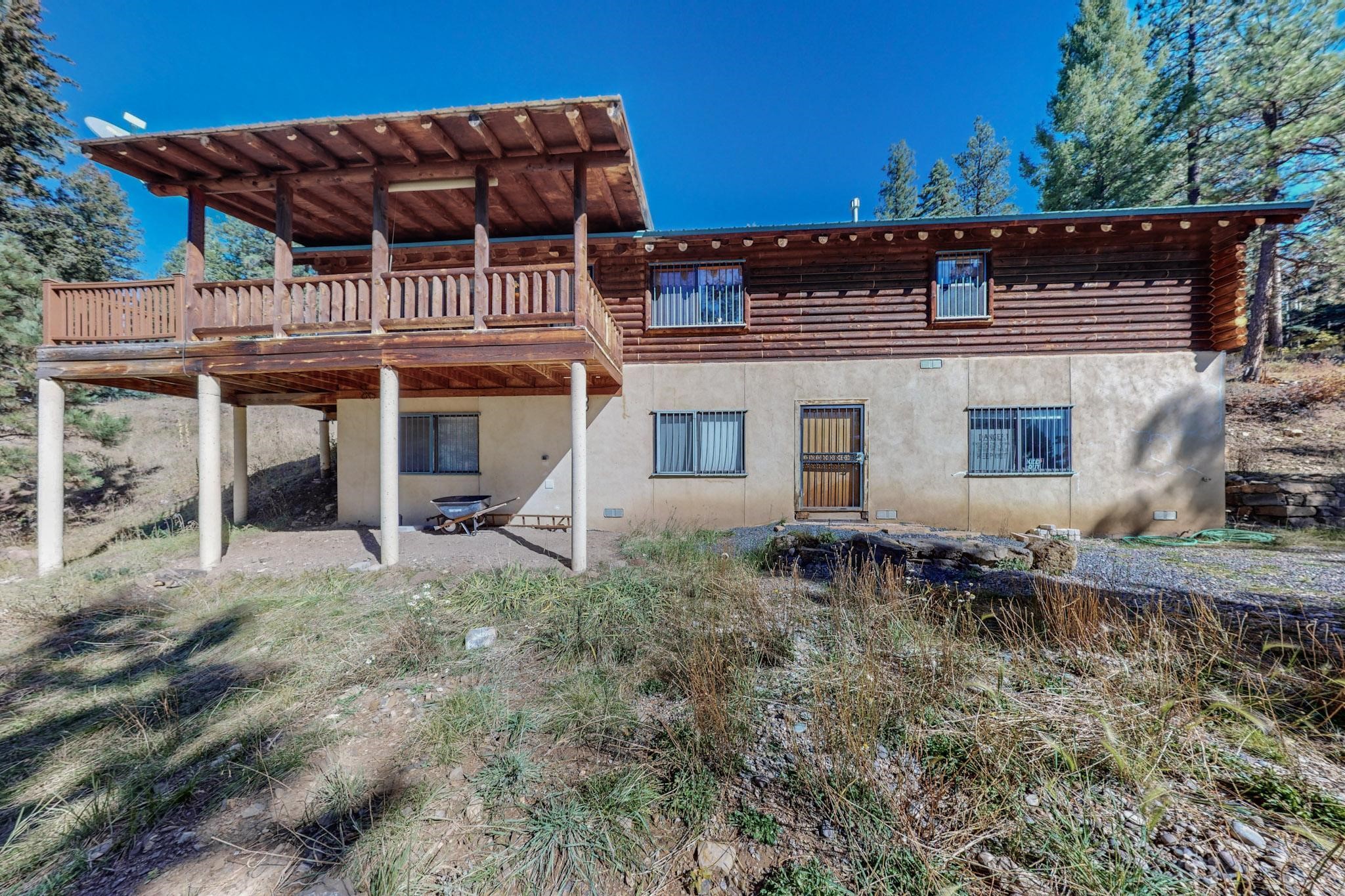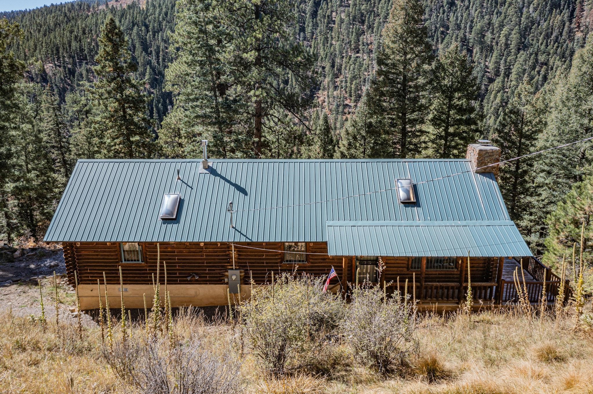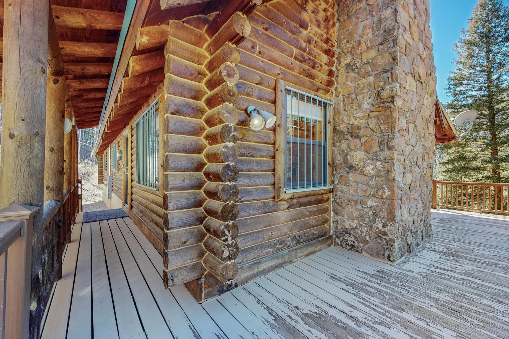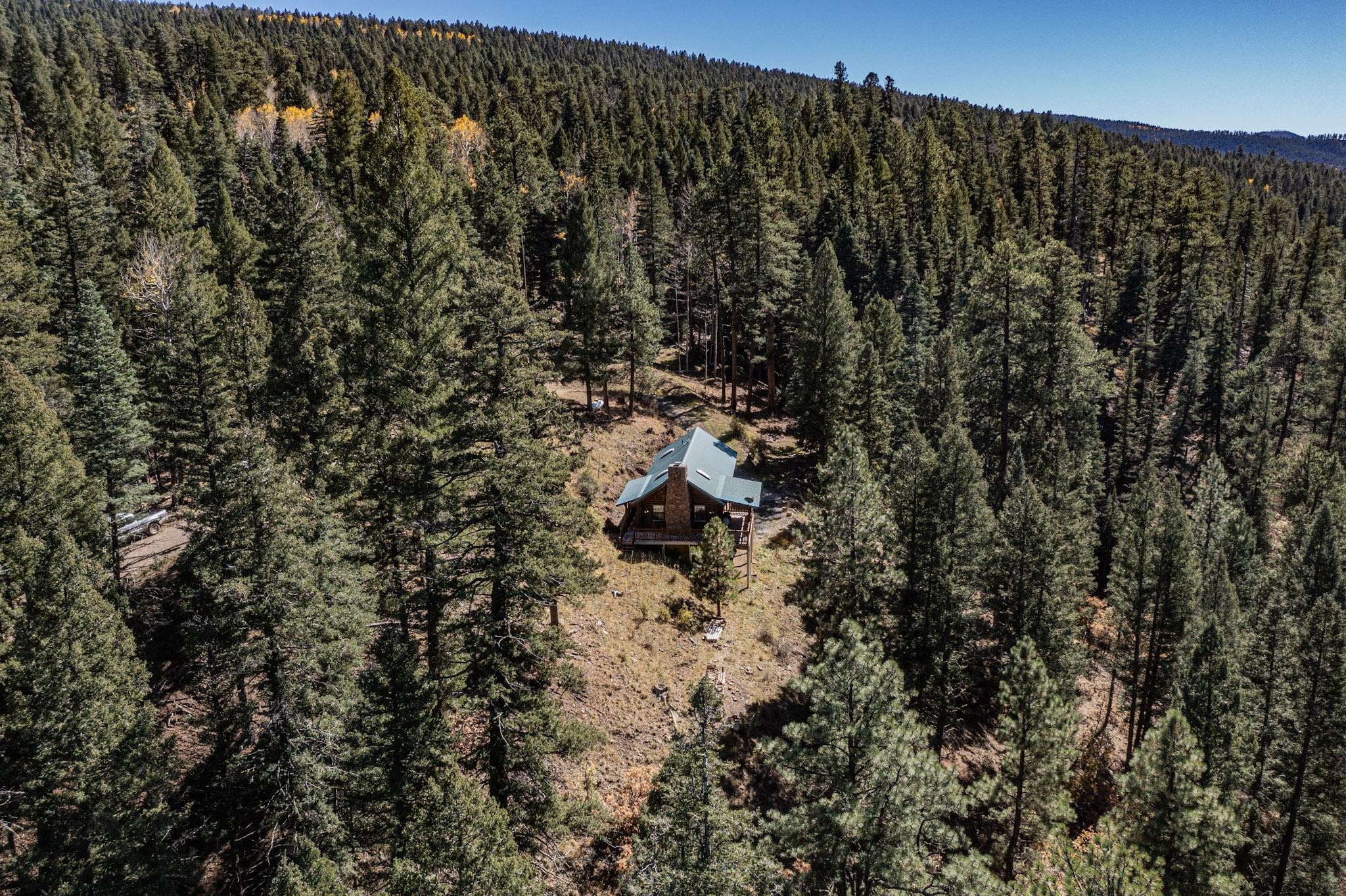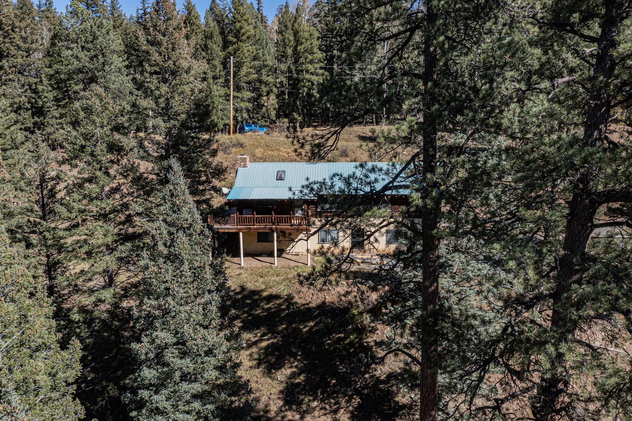 What folks say they want, Mountain cabin with stunning views at Pecos Canyon Estates, an hour east of Santa Fe just before the Pecos Wilderness accessed from Iron Gate Road. The listing includes 5 legal lots of record allowing for additional structures. The construction is log and block, 2 levels and includes private well, wrap around deck, rock fireplace, 1 bedroom and 2 baths. The upper portion is from well regarded Air-Lock Log Homes from Las Vegas, New Mexico. The home is 2/3rds completed, upper level with living room, kitchen, laundry area, primary bedroom and bath is finished and the lower level has finished bathroom and partially completed open spaces, priced at $369,000 accordingly. Additional features include land line telephone, internet with Wi-Fi, lift chair to lower level, propane heat above and baseboard electric heat below, and a private setting at the end of a country lane. There are no CCR's or a home owners association.
