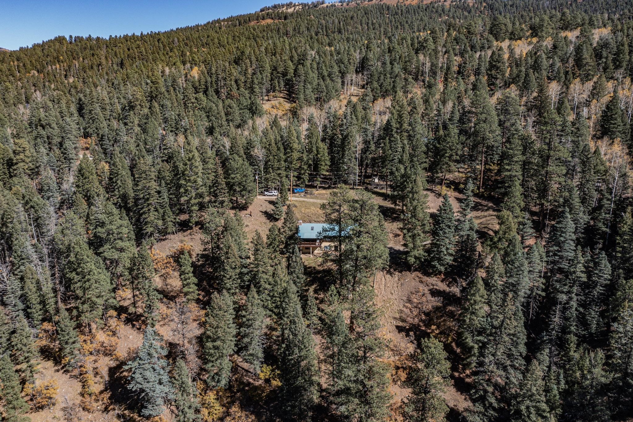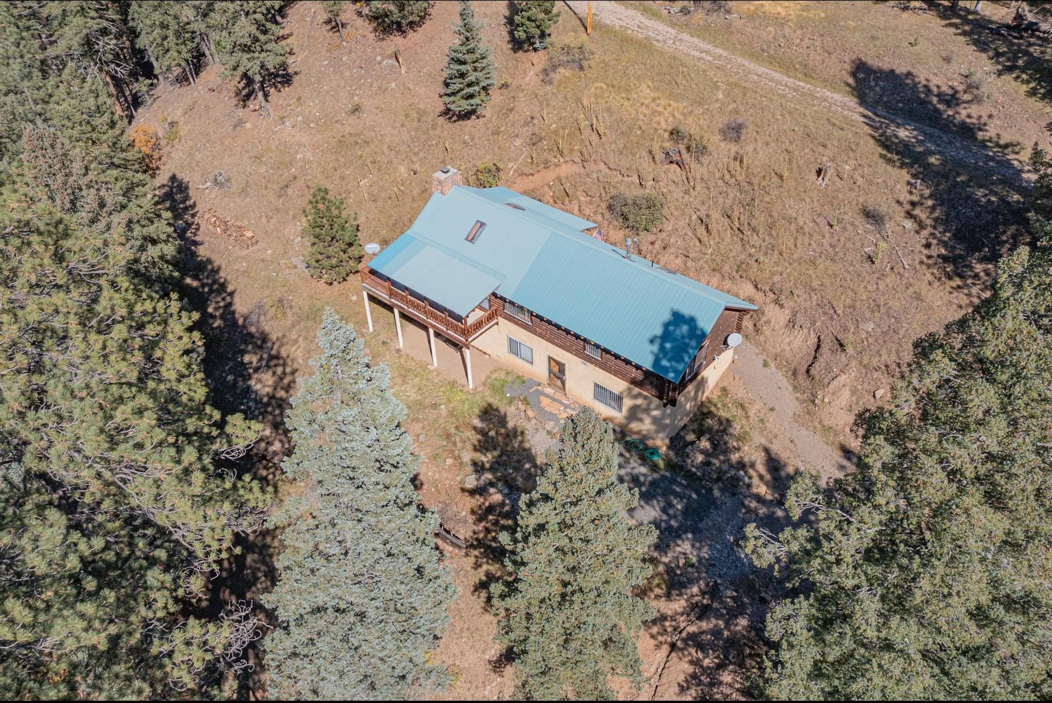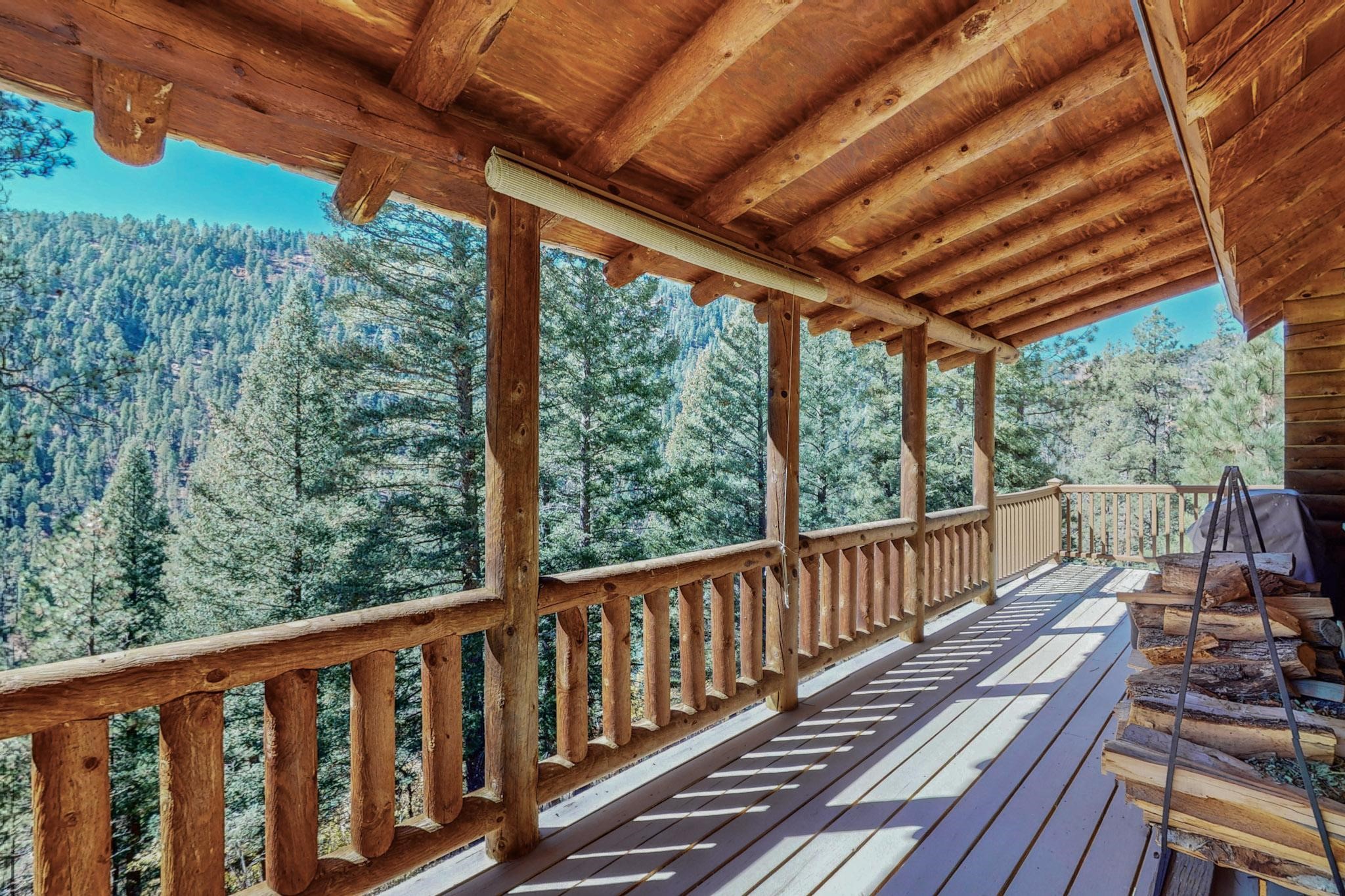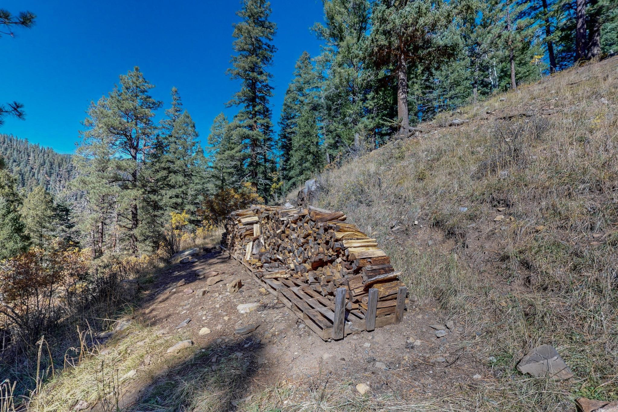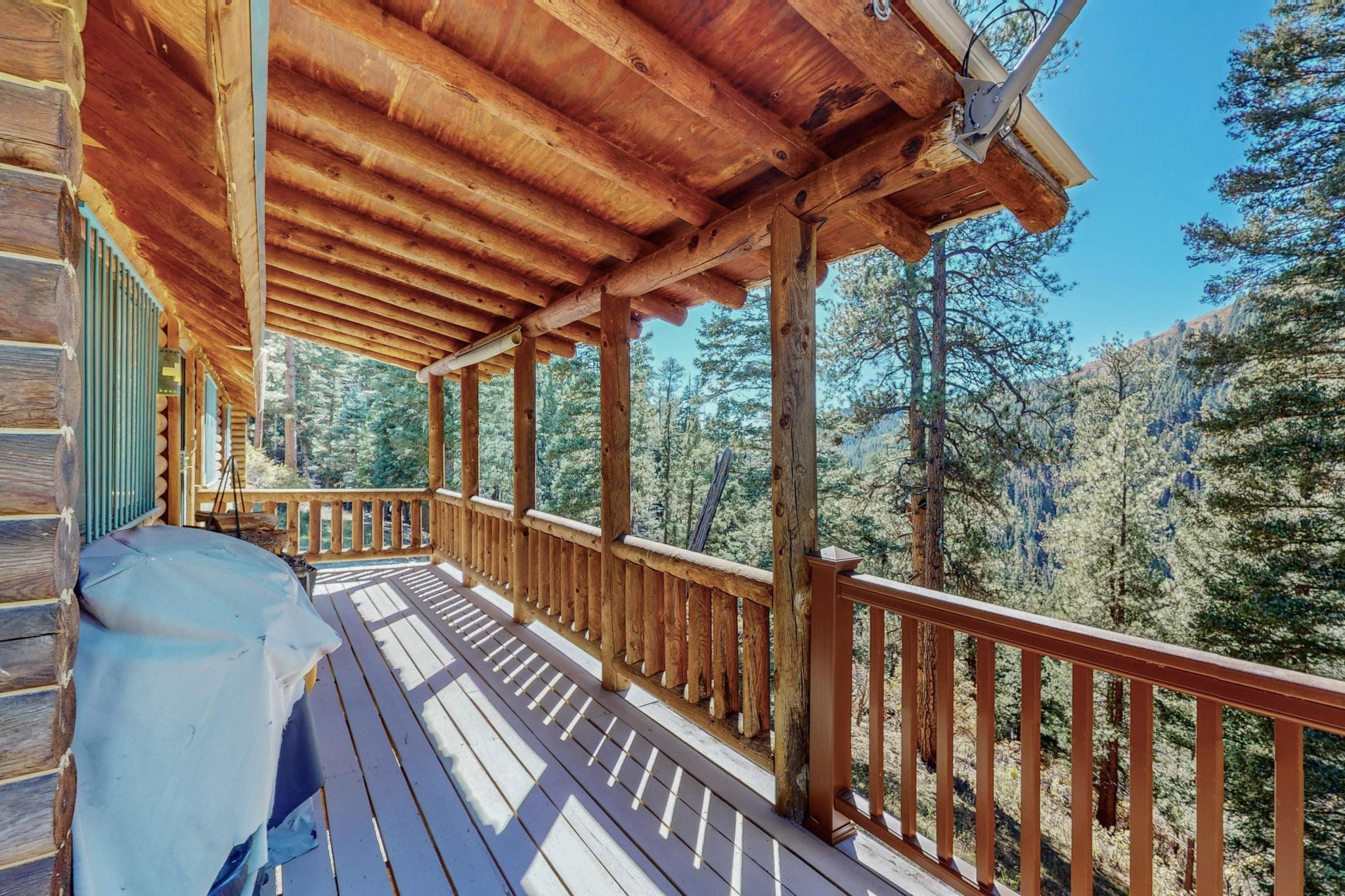 What folks say they want, Mountain cabin with stunning views at Pecos Canyon Estates, an hour east of Santa Fe just before the Pecos Wilderness accessed from Iron Gate Road. The listing includes 5 legal lots of record allowing for additional structures. The construction is log and block, 2 levels and includes private well, wrap around deck, rock fireplace, 1 bedroom and 2 baths. The upper portion is from well regarded Air-Lock Log Homes from Las Vegas, New Mexico. The home is 2/3rds completed, upper level with living room, kitchen, laundry area, primary bedroom and bath is finished and the lower level has finished bathroom and partially completed open spaces, priced at $369,000 accordingly. Additional features include land line telephone, internet with Wi-Fi, lift chair to lower level, propane heat above and baseboard electric heat below, and a private setting at the end of a country lane. There are no CCR's or a home owners association.