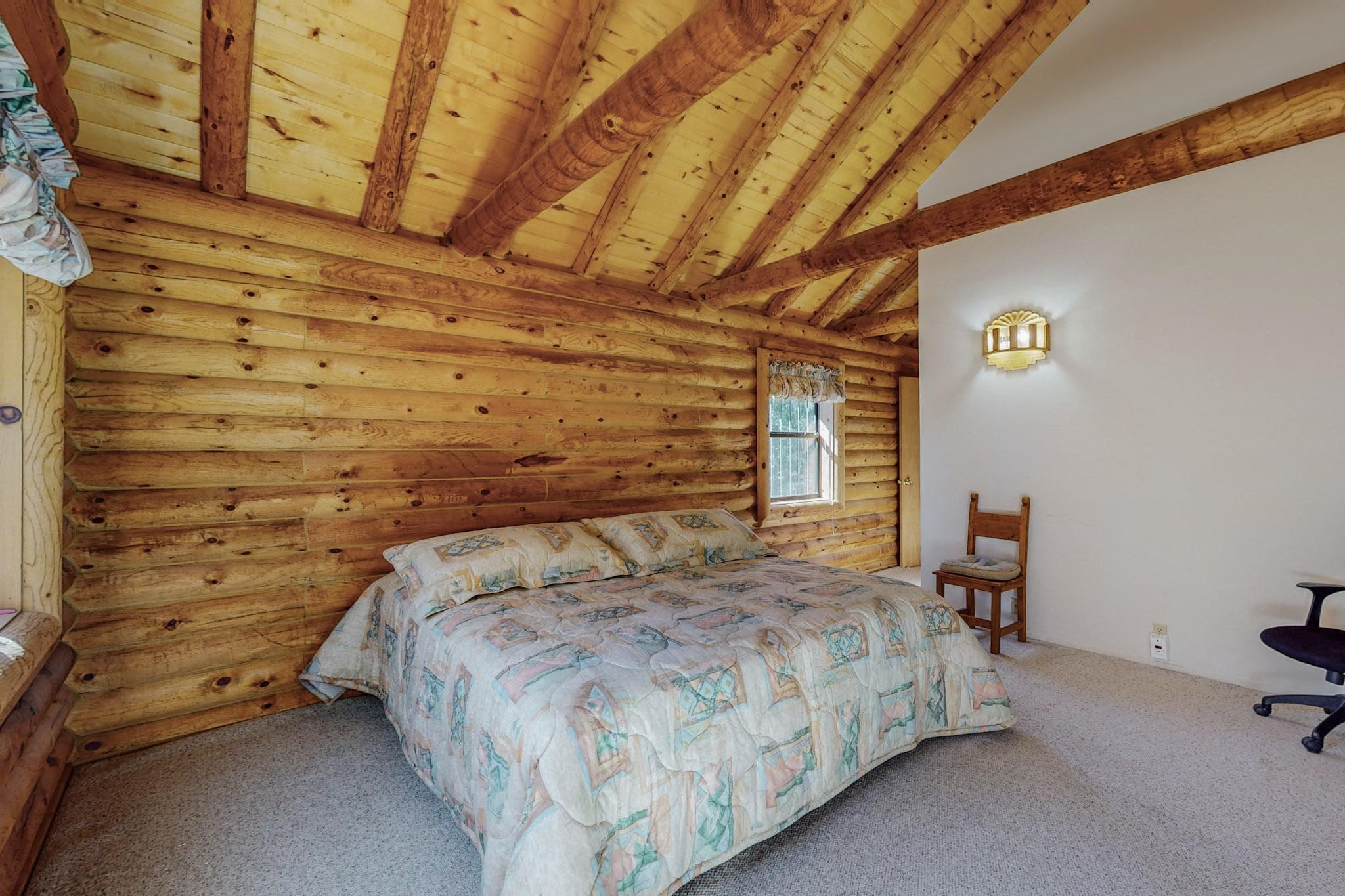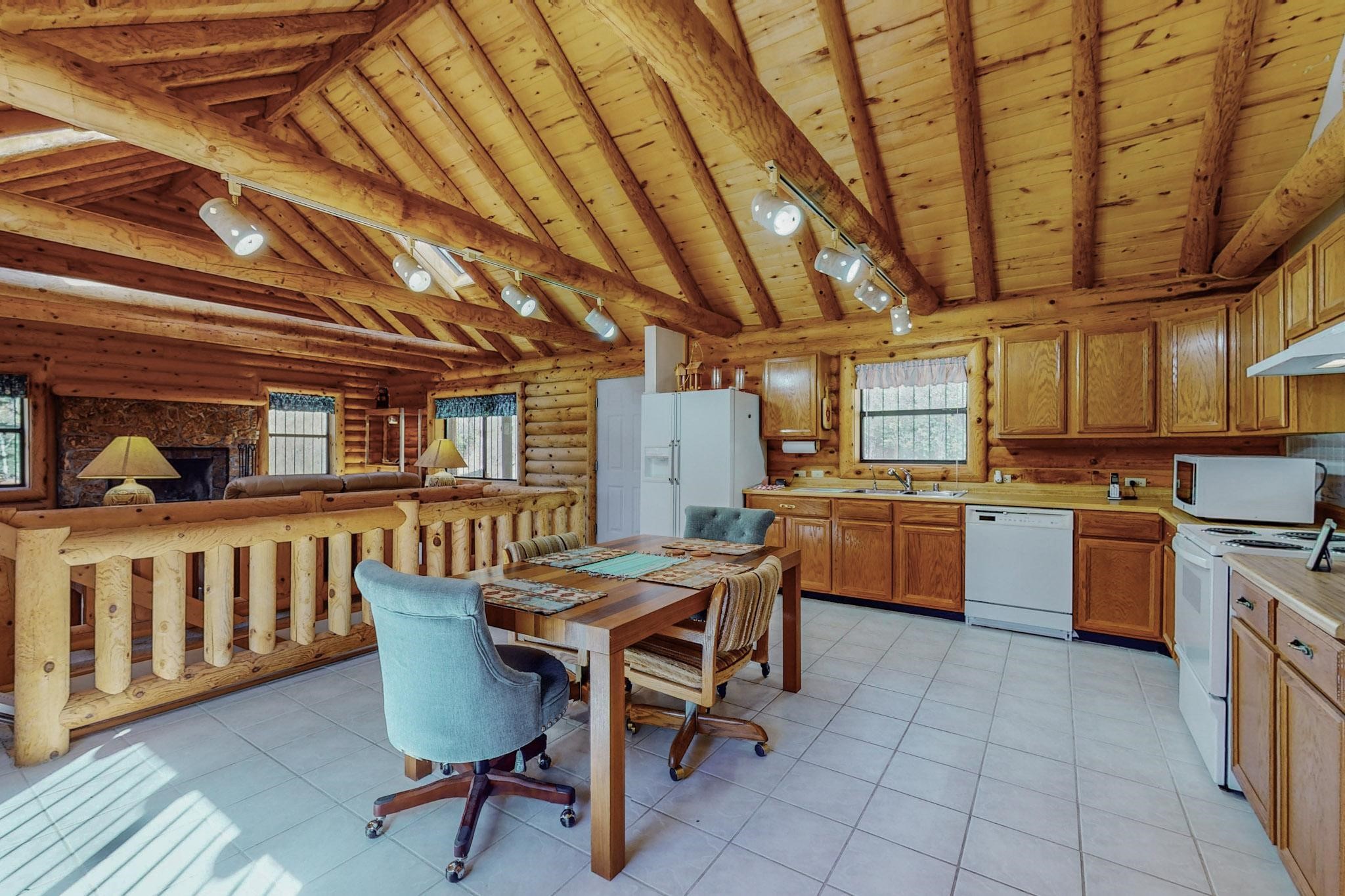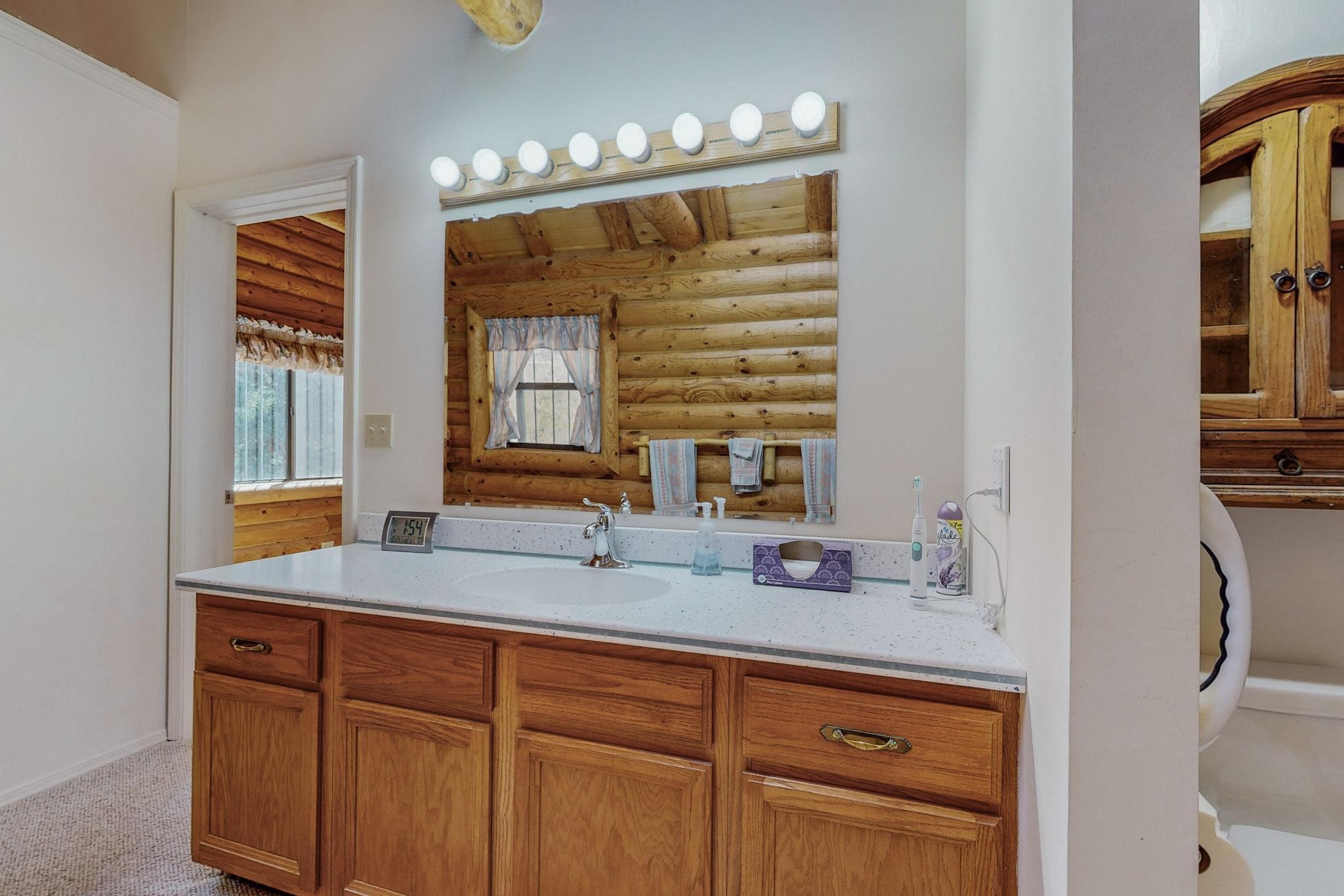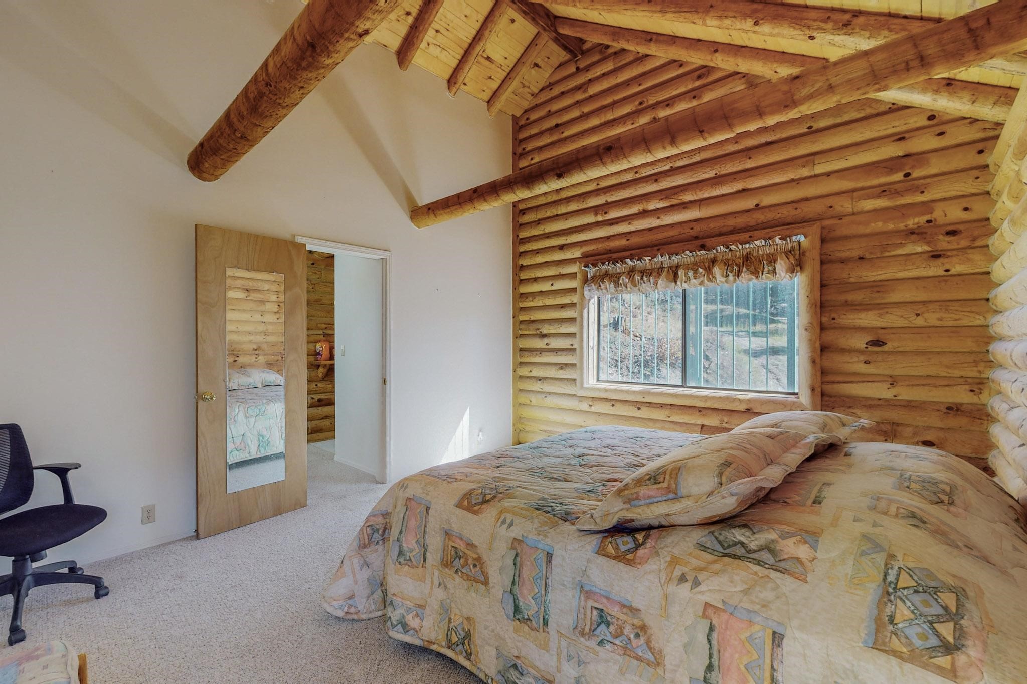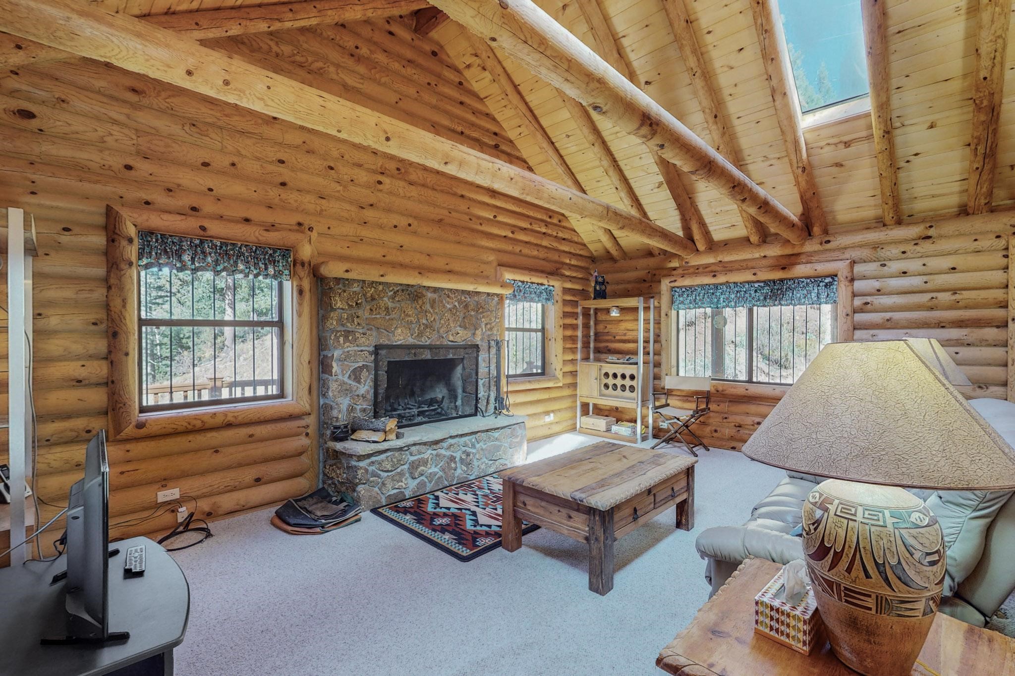 What folks say they want, Mountain cabin with stunning views at Pecos Canyon Estates, an hour east of Santa Fe just before the Pecos Wilderness accessed from Iron Gate Road. The listing includes 5 legal lots of record allowing for additional structures. The construction is log and block, 2 levels and includes private well, wrap around deck, rock fireplace, 1 bedroom and 2 baths. The upper portion is from well regarded Air-Lock Log Homes from Las Vegas, New Mexico. The home is 2/3rds completed, upper level with living room, kitchen, laundry area, primary bedroom and bath is finished and the lower level has finished bathroom and partially completed open spaces, priced at $369,000 accordingly. Additional features include land line telephone, internet with Wi-Fi, lift chair to lower level, propane heat above and baseboard electric heat below, and a private setting at the end of a country lane. There are no CCR's or a home owners association.