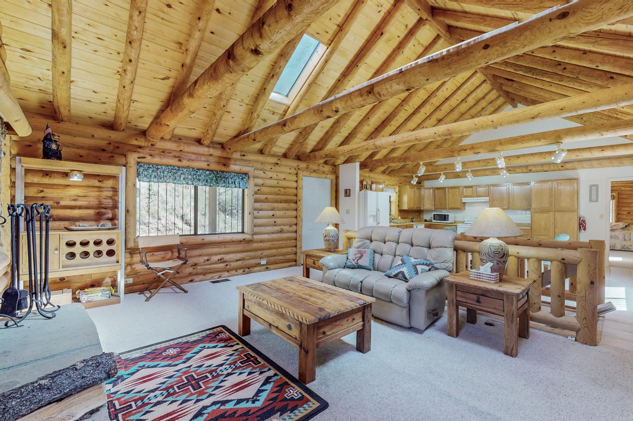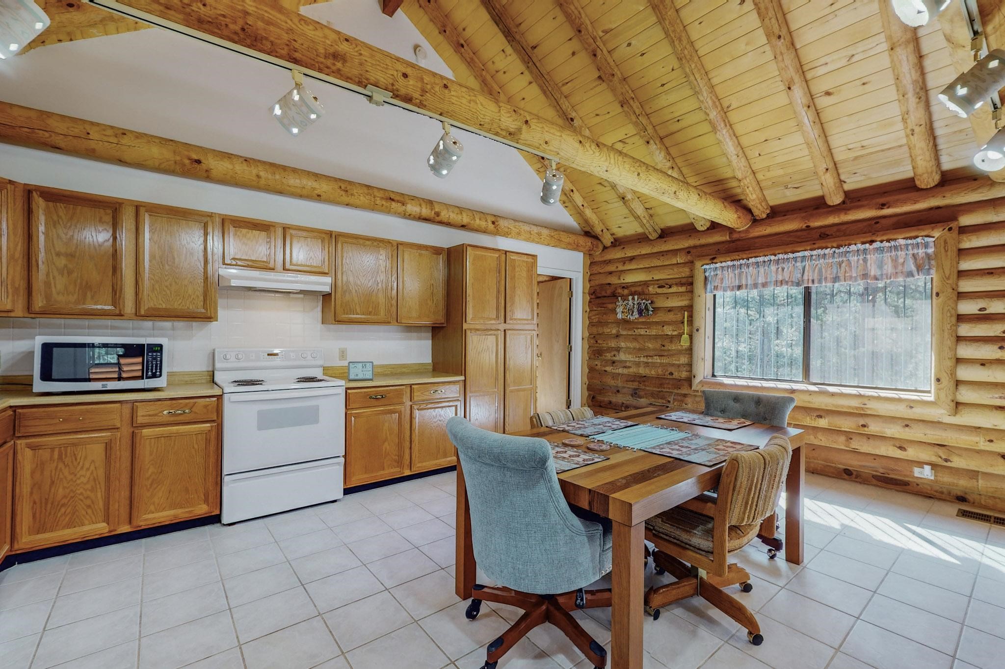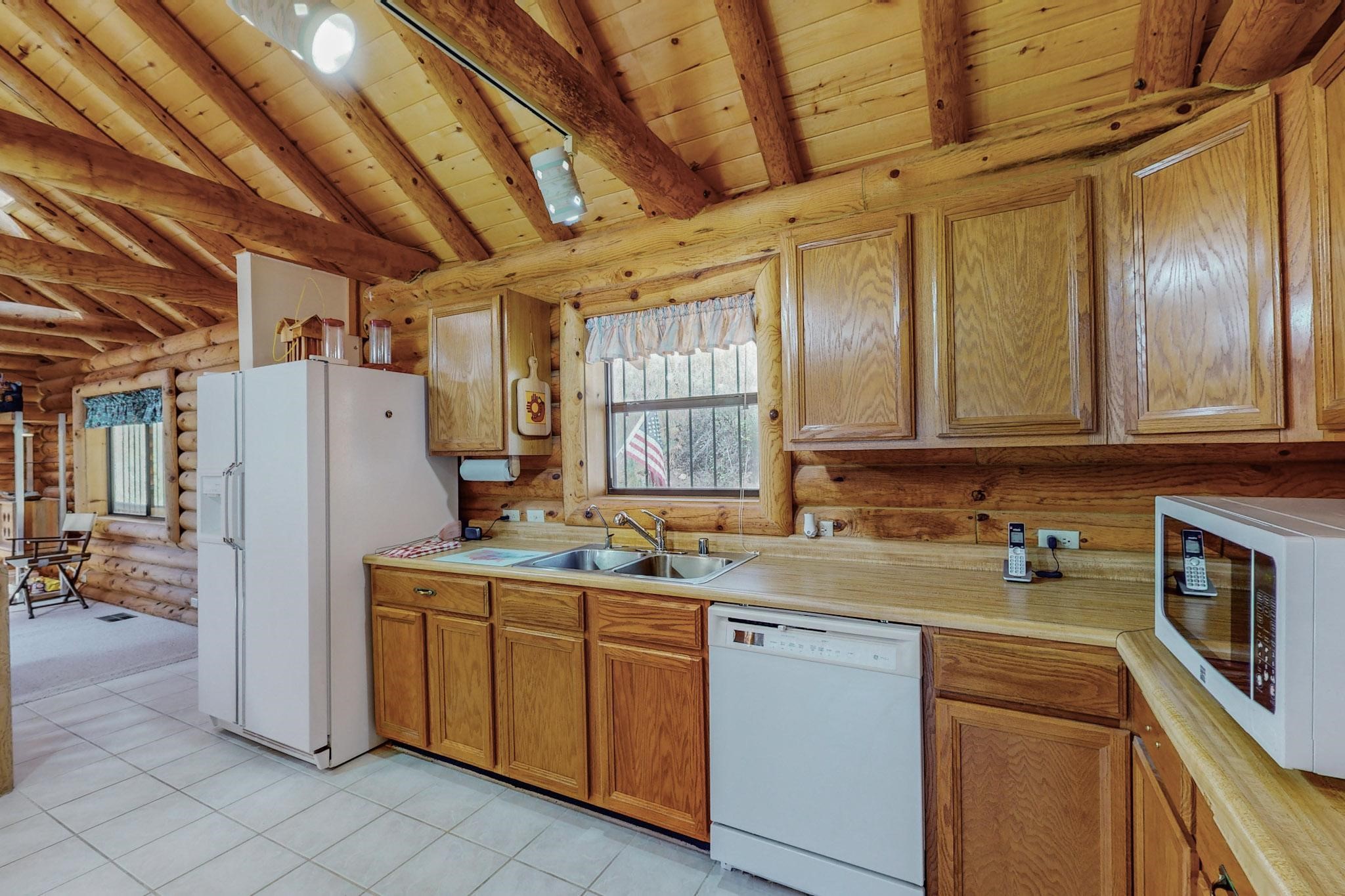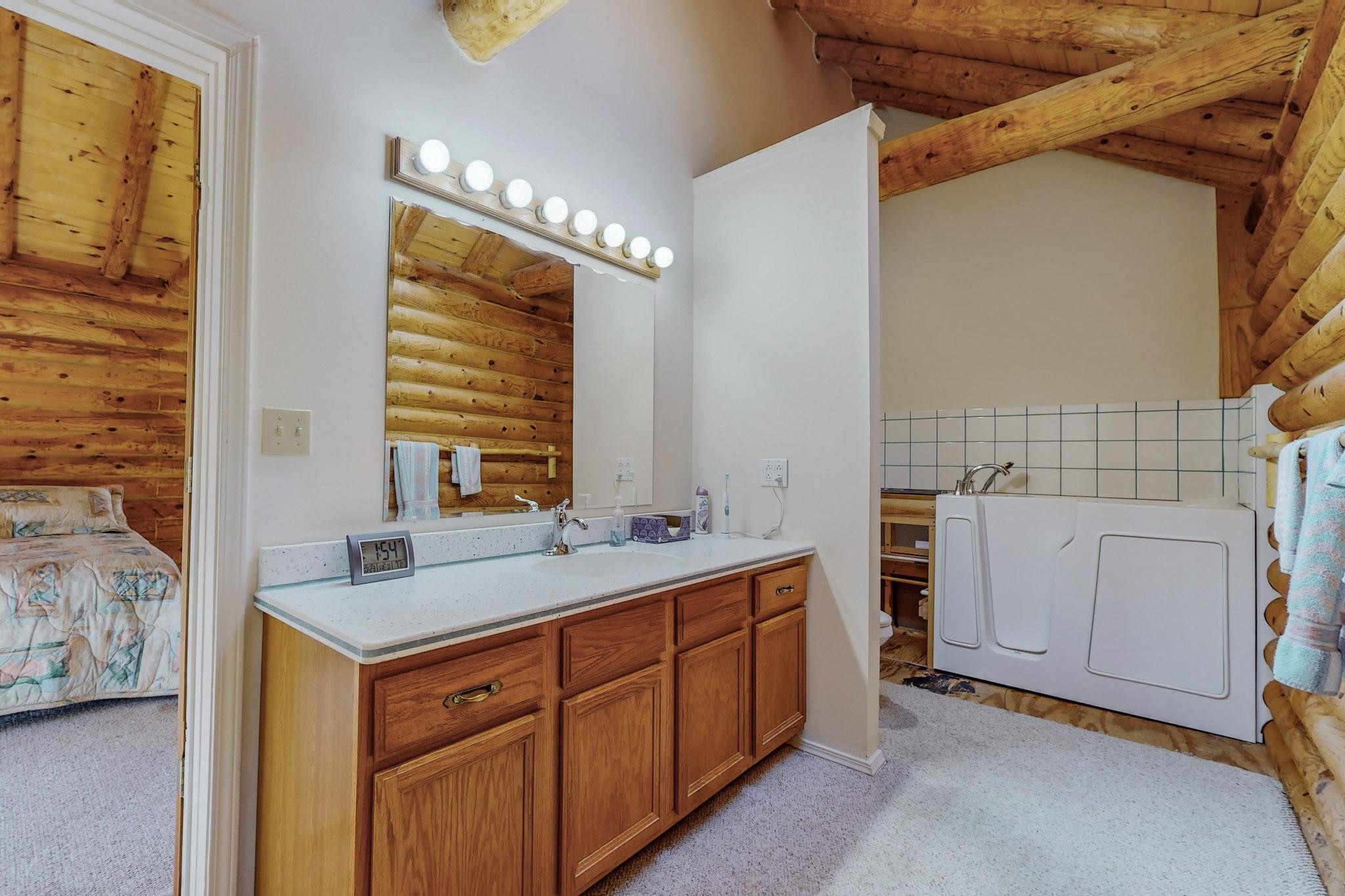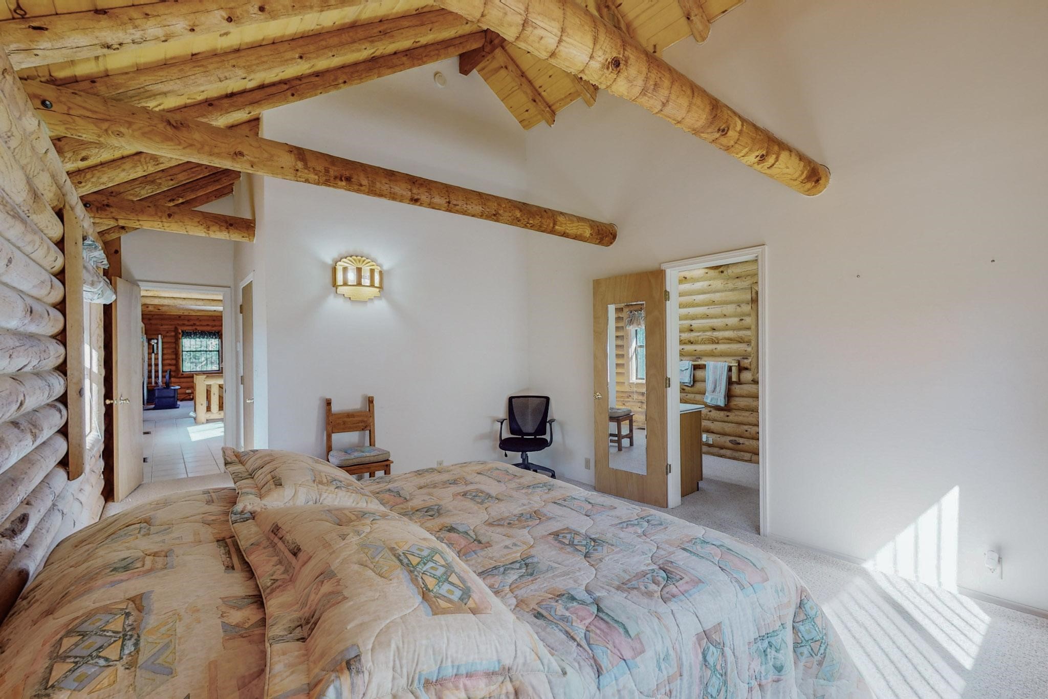 What folks say they want, Mountain cabin with stunning views at Pecos Canyon Estates, an hour east of Santa Fe just before the Pecos Wilderness accessed from Iron Gate Road. The listing includes 5 legal lots of record allowing for additional structures. The construction is log and block, 2 levels and includes private well, wrap around deck, rock fireplace, 1 bedroom and 2 baths. The upper portion is from well regarded Air-Lock Log Homes from Las Vegas, New Mexico. The home is 2/3rds completed, upper level with living room, kitchen, laundry area, primary bedroom and bath is finished and the lower level has finished bathroom and partially completed open spaces, priced at $369,000 accordingly. Additional features include land line telephone, internet with Wi-Fi, lift chair to lower level, propane heat above and baseboard electric heat below, and a private setting at the end of a country lane. There are no CCR's or a home owners association.