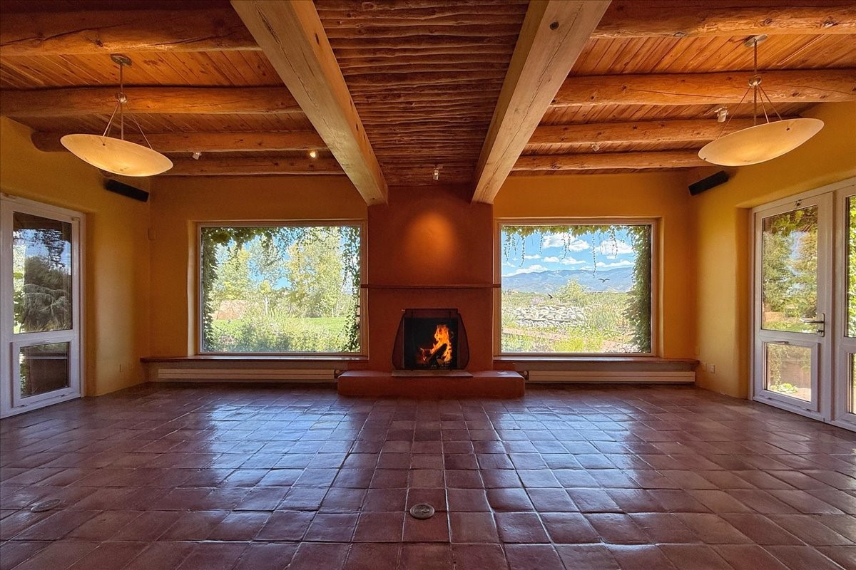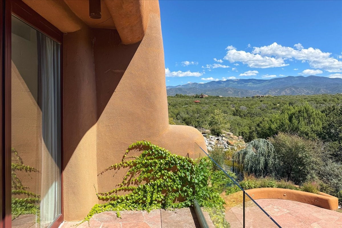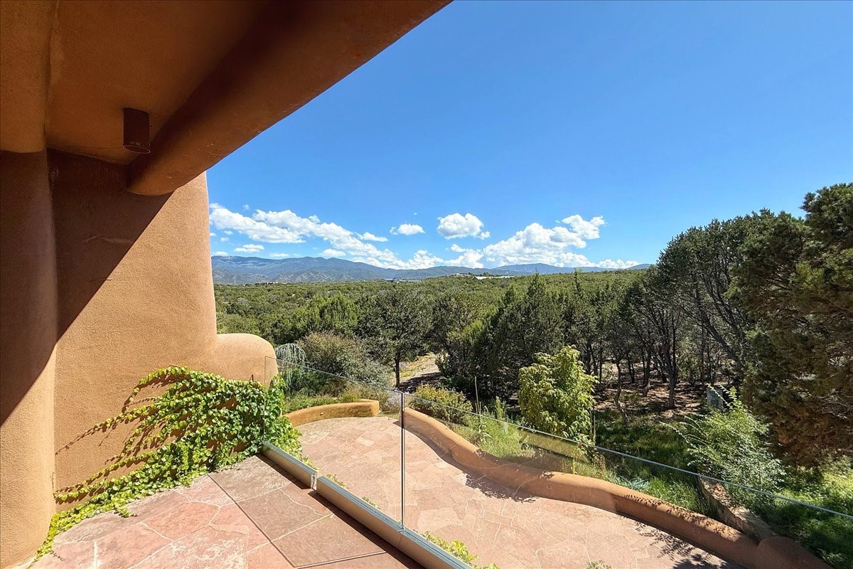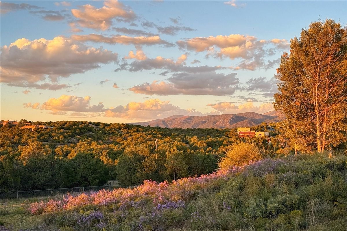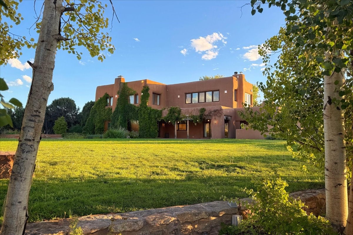 Welcome to Sleeping Beauty, a truly exceptional estate tucked away on 11.9 acres of serene, wooded land in Santa Fe. This enchanting adobe property features a 4-bedroom main house and a charming 2-bedroom guest house, offering the ultimate private sanctuary. The owner's retreat is located upstairs, where you'll enjoy breathtaking views of the lush green lawn, bordered by graceful aspen trees, a tranquil pond, and the majestic Sangre de Cristo Mountains beyond. Off the bedroom, you'll find a beautifully appointed bathroom and a spacious office/studio with wonderful natural light and expansive views to the north and south. The main level offers an inviting, social kitchen opening onto the portal with a cozy fireplace, an elegant living room with large picture windows offer exceptional views, an office, a den, and a guest wing with three bedrooms--perfect for family and friends. A short walk away, the charming guest casita provides additional space for visitors or quiet reflection. This property is brimming with potential and will inspire you at every turn. With love and vision, Sleeping Beauty is ready to be awakened. The offering adjoins two of tracts of land - 23 acre lot offered at $2,300,000 and a 5.2 acre lot offered at $600,000. There is a video link attached to this listing.