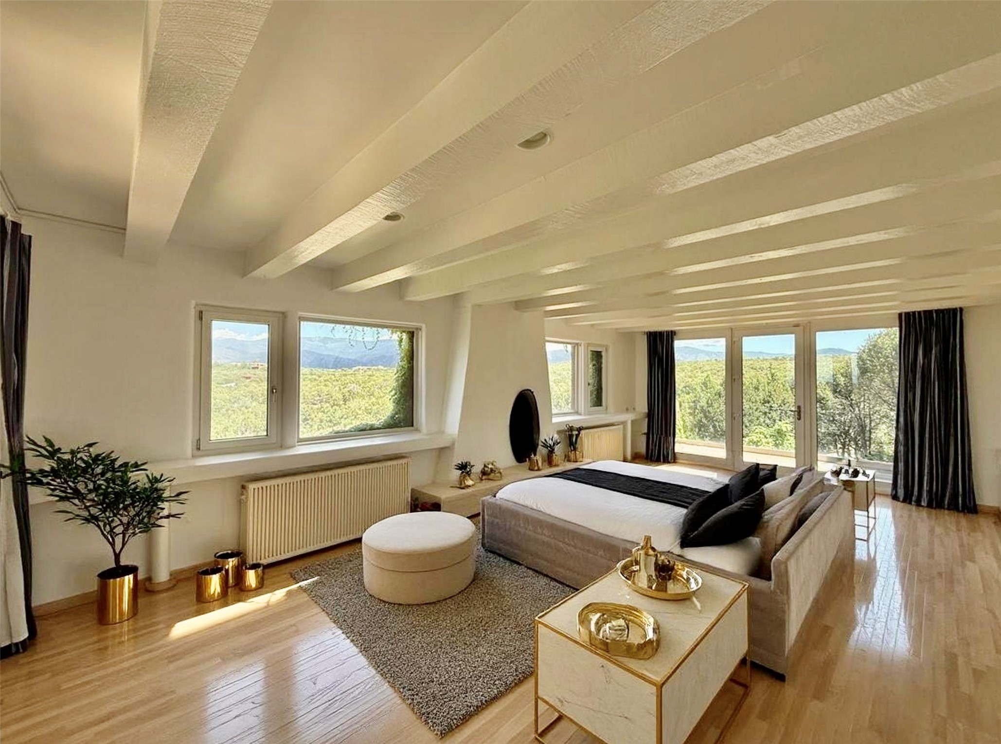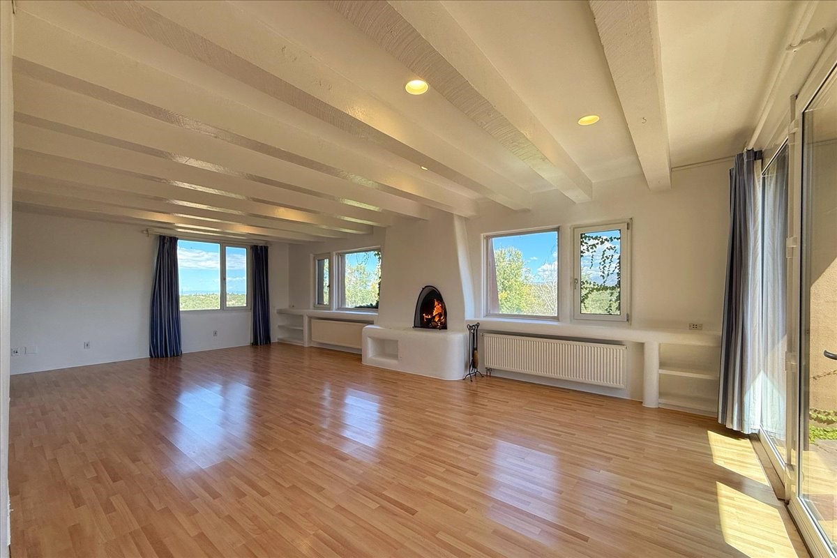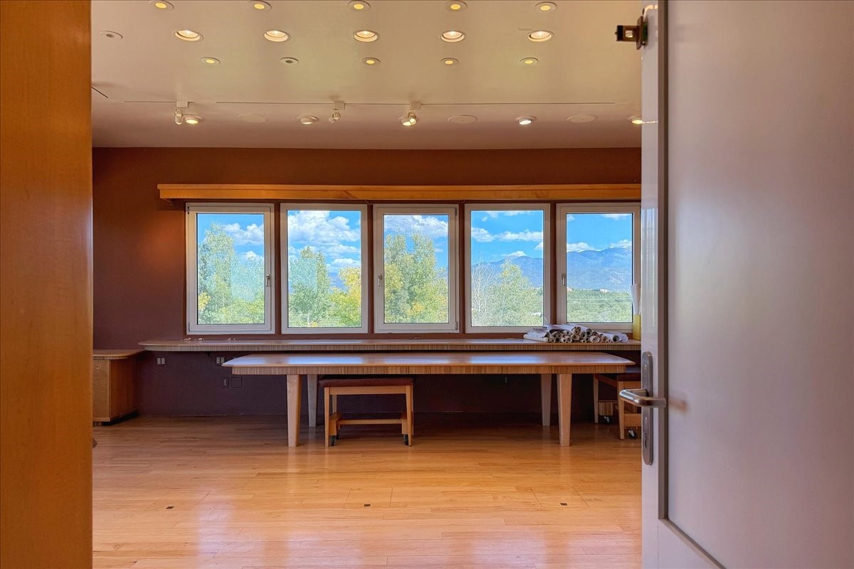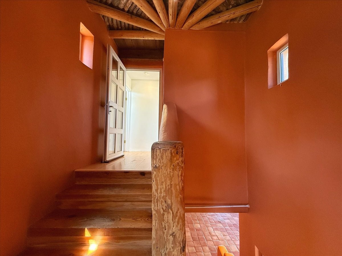 Welcome to Sleeping Beauty, a truly exceptional estate tucked away on 11.9 acres of serene, wooded land in Santa Fe. This enchanting adobe property features a 4-bedroom main house and a charming 2-bedroom guest house, offering the ultimate private sanctuary. The owner's retreat is located upstairs, where you'll enjoy breathtaking views of the lush green lawn, bordered by graceful aspen trees, a tranquil pond, and the majestic Sangre de Cristo Mountains beyond. Off the bedroom, you'll find a beautifully appointed bathroom and a spacious office/studio with wonderful natural light and expansive views to the north and south. The main level offers an inviting, social kitchen opening onto the portal with a cozy fireplace, an elegant living room with large picture windows offer exceptional views, an office, a den, and a guest wing with three bedrooms--perfect for family and friends. A short walk away, the charming guest casita provides additional space for visitors or quiet reflection. This property is brimming with potential and will inspire you at every turn. With love and vision, Sleeping Beauty is ready to be awakened. The offering adjoins two of tracts of land - 23 acre lot offered at $2,300,000 and a 5.2 acre lot offered at $600,000. There is a video link attached to this listing.