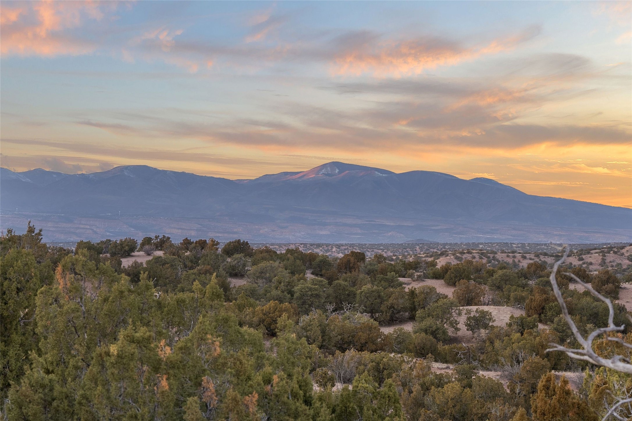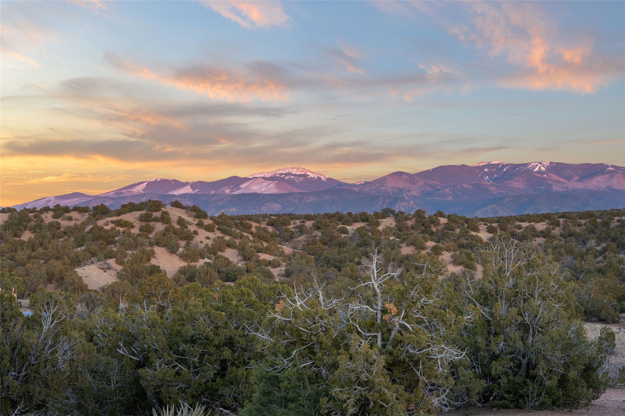 This 12-acre tranquil, expansive view lot is located in the established Las Dos community. It has aa registered well and transformer already in place, ready for your plans to build a home. Las Dos residential lots are all ten acres or more. Horses are allowed with bridle path easements throughout the subdivision. The lot has a captivating buildable area atop its gentle hill with Sangre de Cristo sunrise views and Jemez Mountain sunset views. There is room for a home, Casita, and stable. Enjoy hiking, night star gazing, and exploring the Los Dos private 4.7 acre petroglyph park in the subdivision. Sensible covenants for building your home in this secluded country living sanctuary, yet close to Santa Fe. Las Dos is a historic subdivision. The Las Dos community was homesteaded in the 1930's by Adelina "Nina" Otero-Warren(featured in 2022 by the U.S. Mint's American Women Quarters program) and Mamie Meadors, (The Two Women).