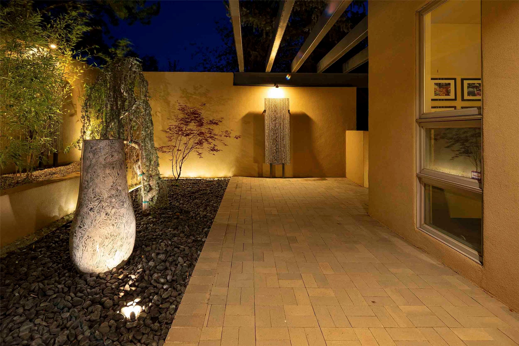 Remarkable. To be on Old Santa Fe Trail with majestic, panoramic views overlooking dedicated open space towards the Sangre de Cristo Mountains in a one-level, light filled Contemporary Masterpiece that had a major renovations done in 2021 is a singular opportunity. The home features a gleaming new kitchen, spectacular new baths in the main suites, expansive open spaces and your own private resort in the backyard. The current owners lovingly and intelligently renovated and elevated this bright, open space that lets the outside in - from the views to the private backyard featuring koi pond, plunge pool, fire pit and gazebo. - this home surprises on every level. The kitchen/living room arrangement now flows to match today's lifestyle and provides a wonderful backdrop for art lovers as well as a grand entertaining space. The large, totally renovated kitchen has a 16' island with Wolf/Sub Zero appliances, including an induction cooktop and steam oven. The new butler pantry provides additional storage, a freezer, second oven, and second microwave. A chef's kitchen perfect for entertaining. The library off the primary bedroom, along with an attached bedroom or workout space and additional bath - make for a private suite area that is comfortable for day-to-day living.The extraordinary north area with 2nd primary suite, is rare to say the least. The area, with one of Santa Fe's great media rooms, has soaring ceiling height, great walls for the largest flat screens, and walls of glass that frame the magnificent views of the rear of the property and the Sangres. The next space in the north section of the house functions as a ceramics studio for the current owners, but could be a command-central home office sharing the attributes of the media room as well or an extended master closet. The great primary suite with views and volume, is cloistered away from the rest of the home for privacy and quiet and is serviced by a brand new bathroom. The attached guest quarters is ideal for many living situations, maintaining privacy and comfort. One cannot overestimate the convenience of being close-in Old Santa Fe Trail and the ability to enjoy downtown Santa Fe on a moment's notice. All in all, this is one of the most extraordinary offerings in the entire Santa Fe marketplace with views of the Sangre's that can never be obstructed.