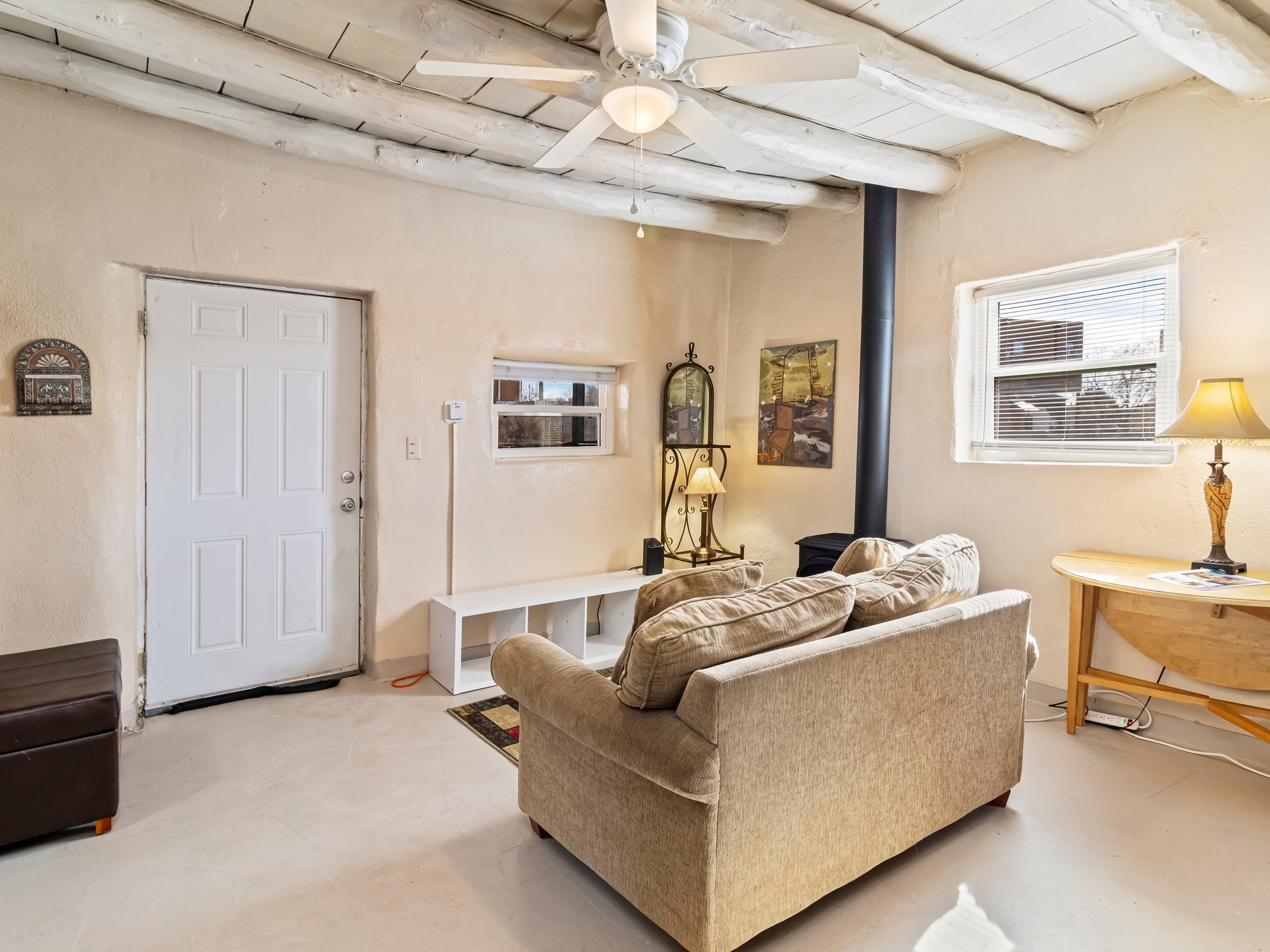 Welcome to 1217 Agua Fra Street, a versatile and charming adobe property that offers endless possibilities for families, multigenerational living, or investment opportunities.The main home features 2 bedrooms and 1 bath, complemented by a 1-bedroom, 1-bath attached unit. The main living area showcases Saltillo tile flooring, known for its durability AND scratch resistance making it a practical yet stylish choice. Lots of Santa fe Charm with wood ceilings and Vegas.In the back, you'll find a spacious 2-bedroom, 1-bath casita that exudes the same quintessential Santa Fe charm. Both homes highlight stunning adobe walls and authentic wood vigas, creating a warm and inviting atmosphere.Situated in the heart of Santa Fe, this property is perfectly positioned for easy access to local attractions, dining, and shopping. Ample parking and flexible zoning (C-1) add to its appeal, offering potential for additional development or creative uses.Don't miss the opportunity to own a piece of Santa Fe's rich heritage and vibrant culture. Schedule your private tour today!