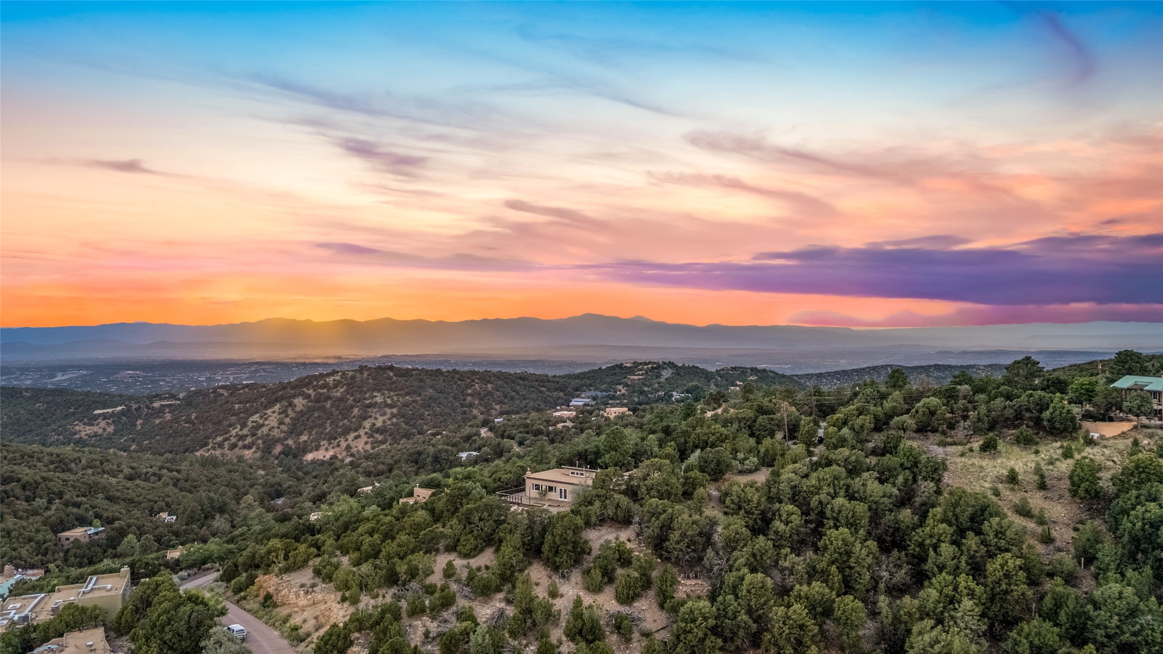 This home has been a successful rental property for many years and also offers an excellent opportunity for a long-term residence. Nestled among the pions with sweeping views of the valley and Sangre de Cristo Mountains, it provides a rare blend of privacy and convenience--just 10 minutes from the Plaza yet peacefully removed.Inside, custom fireplaces and quality finishes bring warmth and elegance throughout. The main residence connects seamlessly to an attached casita, ideal for guests, extended stays, or flexible living. Outdoor spaces invite you to enjoy dramatic light and stunning sunsets, making this home a true Santa Fe retreat.