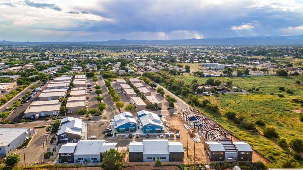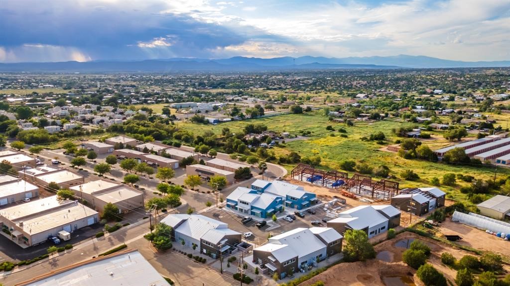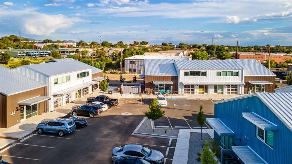The Studios at Parkway is Santa Fe's newest commercial, industrial, and flex-use condominium development, ideally located in the burgeoning Warehouse and Arts District of Siler/Rufina. Designed to inspire creativity and support growth, the community will total 29 units, with Phase II's 14 units scheduled for completion in Spring 2026. Already home to thriving businesses including Wild Leaven, F1 Cyclery, and 2Faded Barbershop, The Studios offers durable metal buildings with an industrial aesthetic and contemporary design. Each unit features 1,677 heated square feet with soaring 24-foot ceilings, expansive storefront windows, and roll-up aluminum glass garage doors that flood the interiors with natural light. Thoughtful finishes include polished concrete floors, LED lighting, smooth drywall, and handcrafted steel staircases with oak treads, while provisions are stubbed for kitchens and showers to allow flexible use. Wide sidewalks provide opportunities for seating, shipping, and receiving, and the landscaped grounds create an inviting atmosphere for both visitors and tenants. Zoned I-1, the property accommodates a wide range of uses--from offices and galleries to light industry, wellness studios, and artisan workshops--and with solar-ready rooftops and its location within a Federal Opportunity Zone, The Studios at Parkway presents both a dynamic environment for businesses and a compelling opportunity for investors. Multiple units can be combined together for larger spaces.